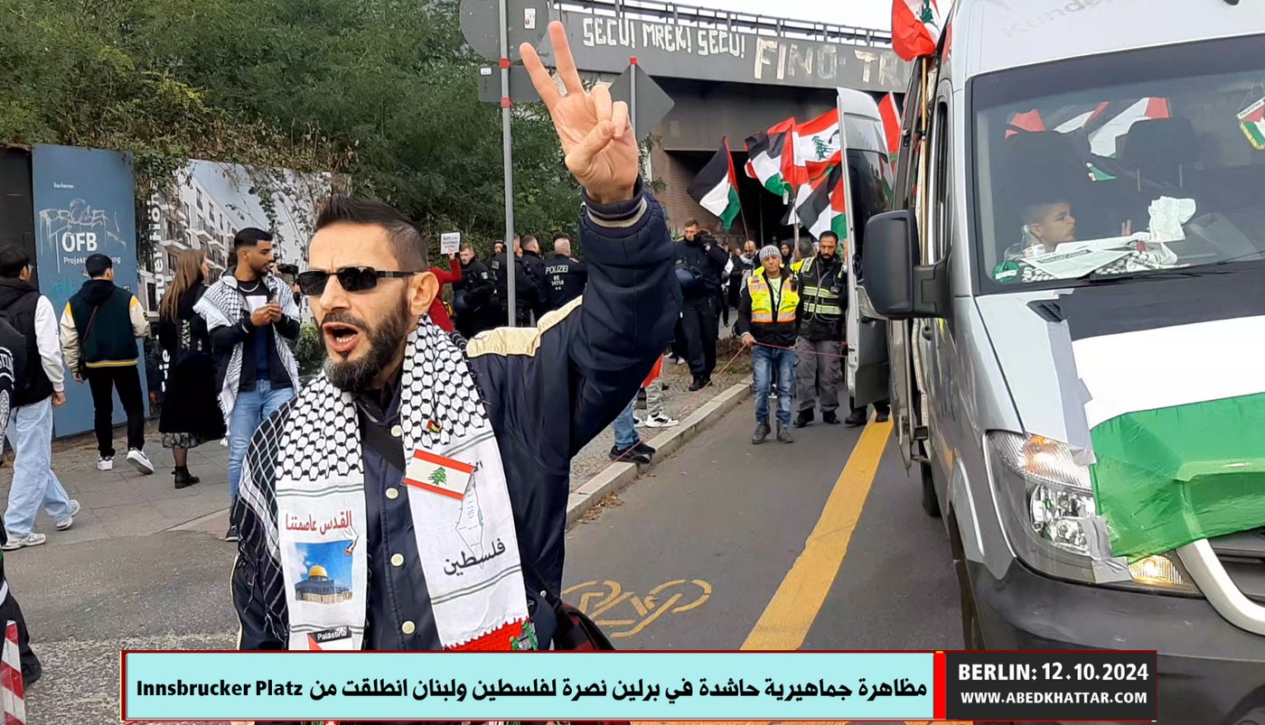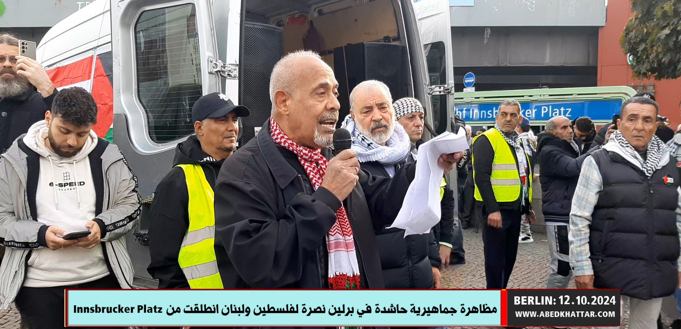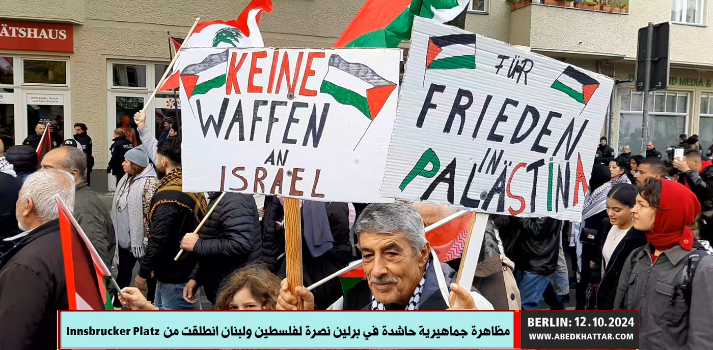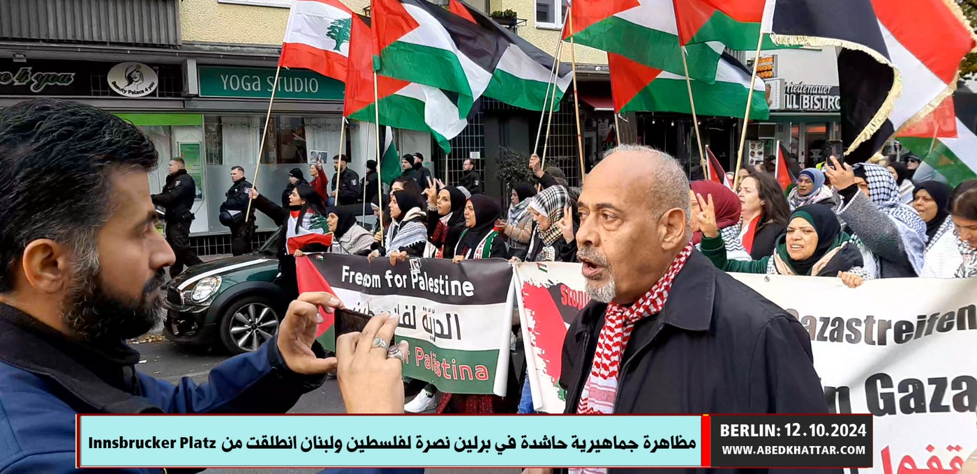 بدعوة من اللجنة الوطنية الفلسطينية الموحدة في برلين اقيمت مظاهرة جماهيرية حاشدة في برلين نصرة لفلسطين ولبنان انطلقت من Innsbrucker Platz