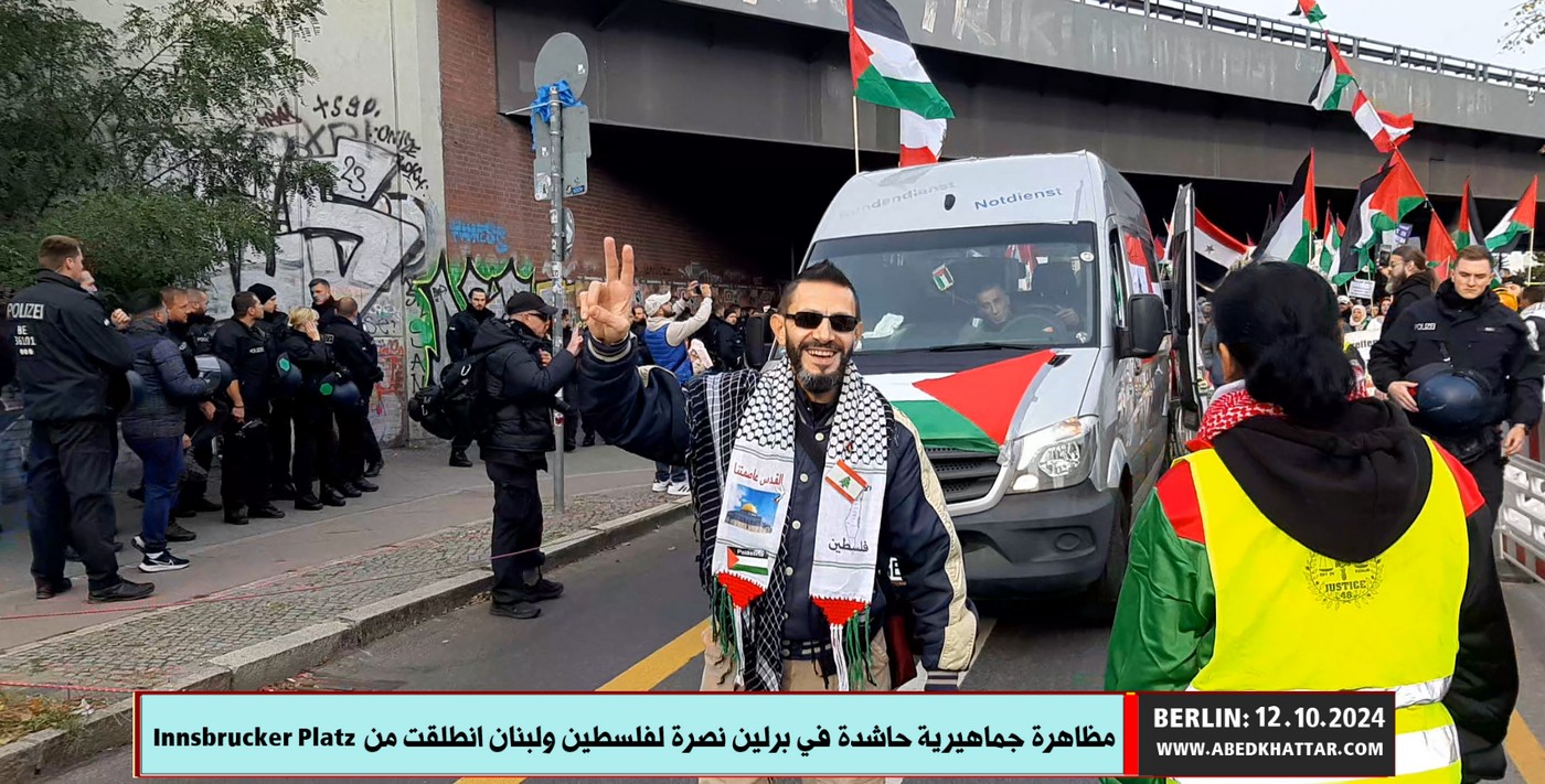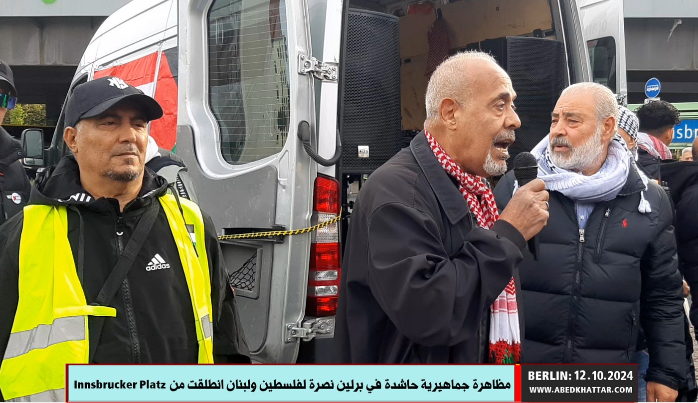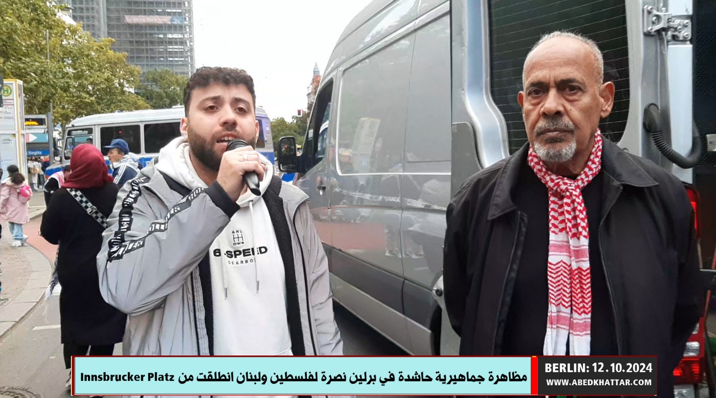 بدعوة من اللجنة الوطنية الفلسطينية الموحدة في برلين اقيمت مظاهرة جماهيرية حاشدة في برلين نصرة لفلسطين ولبنان انطلقت من Innsbrucker Platz