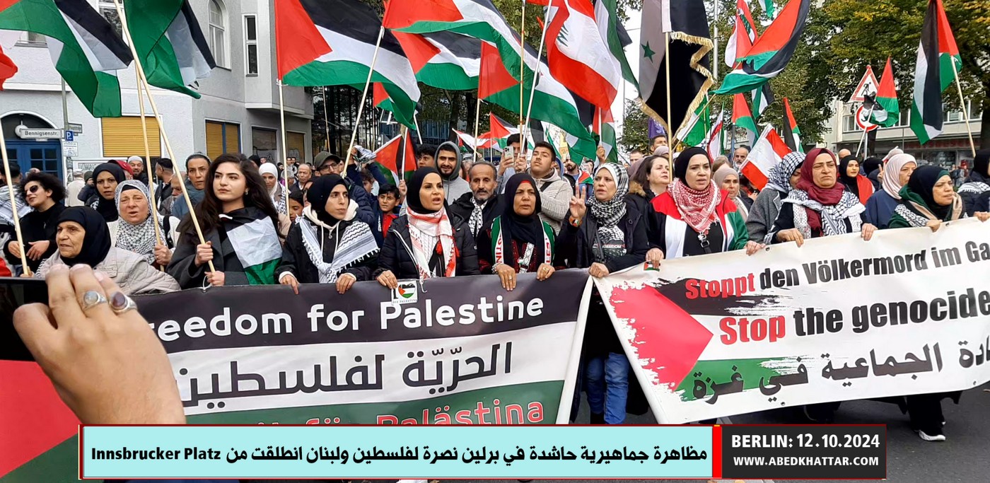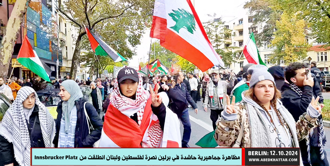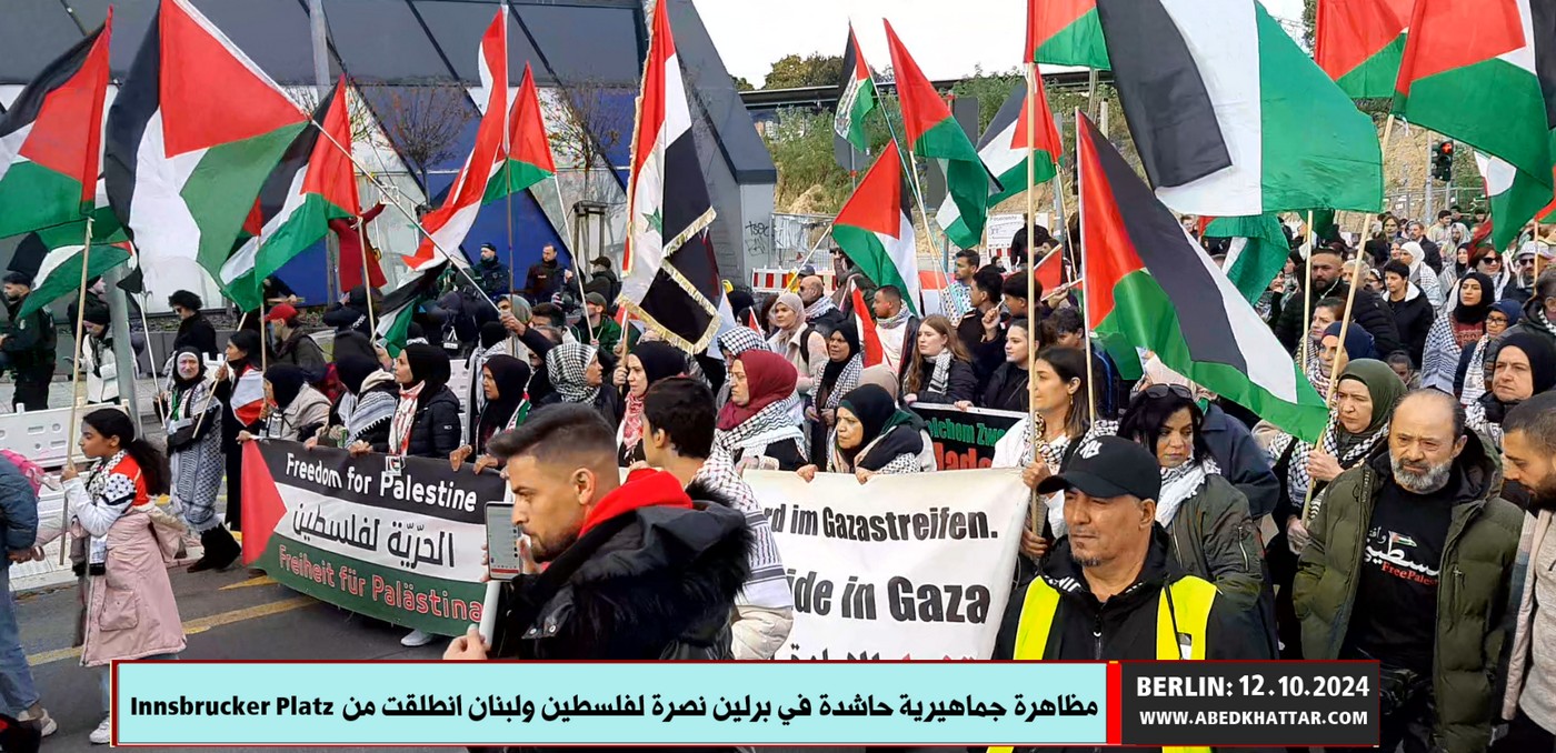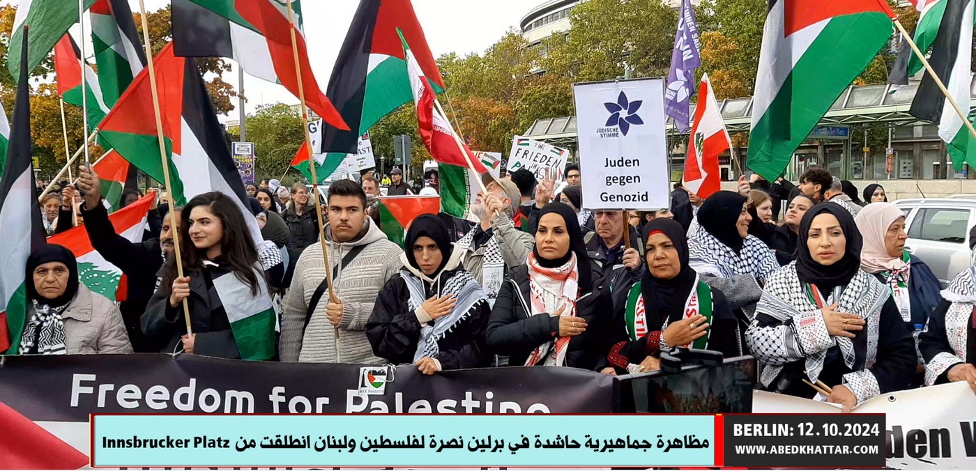 بدعوة من اللجنة الوطنية الفلسطينية الموحدة في برلين اقيمت مظاهرة جماهيرية حاشدة في برلين نصرة لفلسطين ولبنان انطلقت من