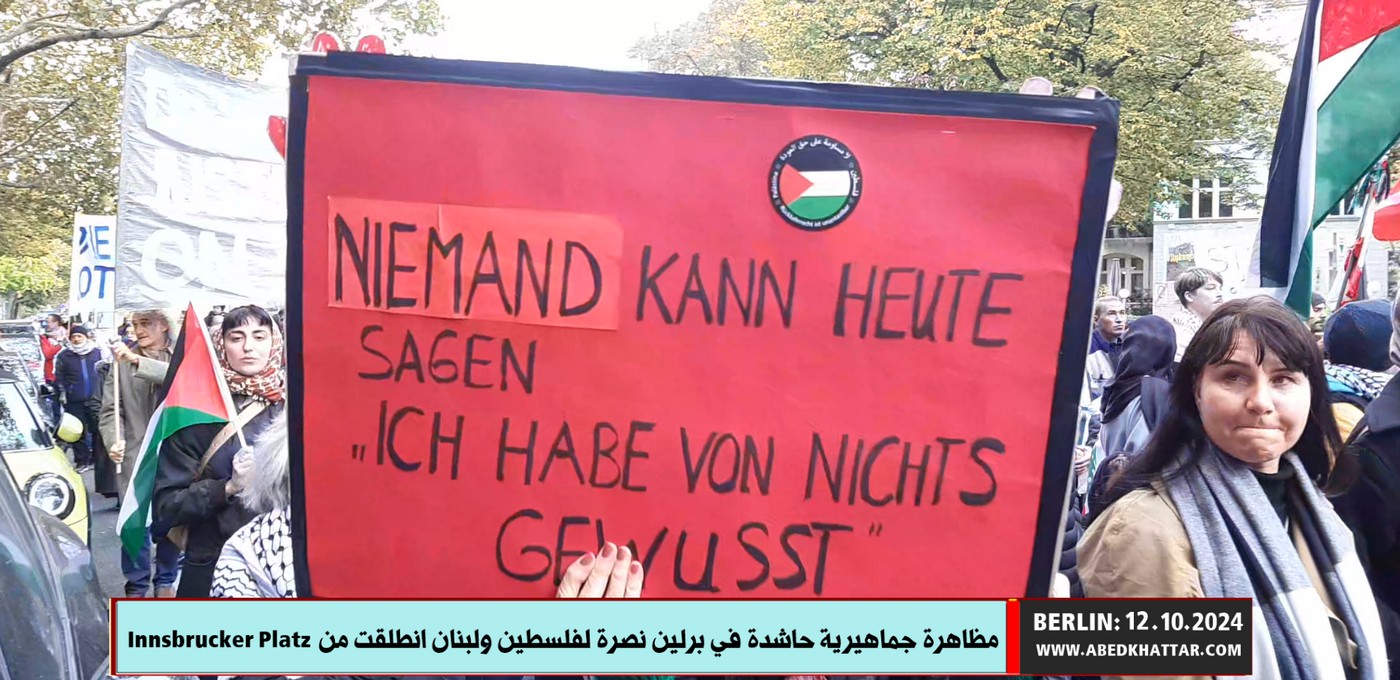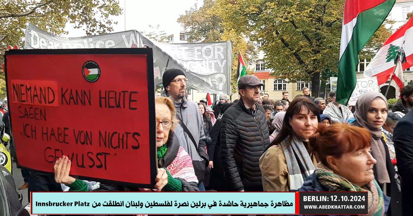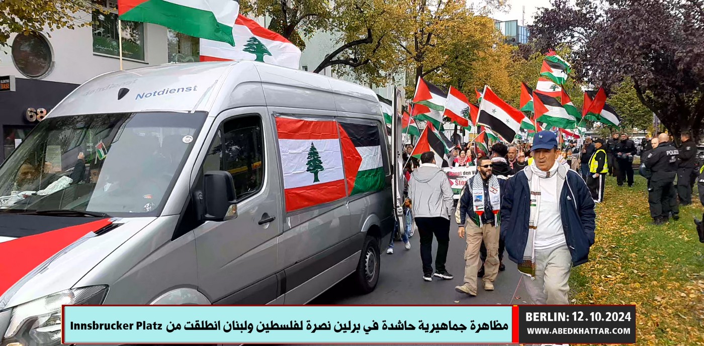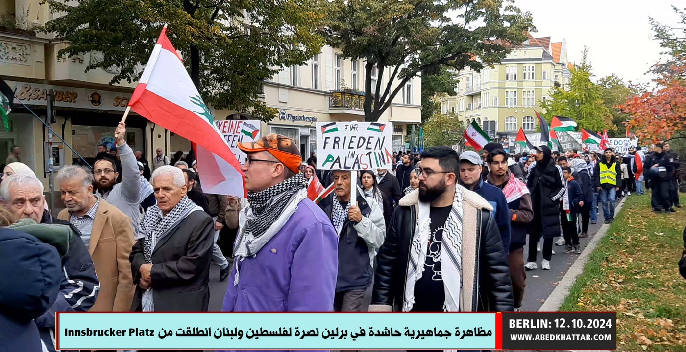 بدعوة من اللجنة الوطنية الفلسطينية الموحدة في برلين اقيمت مظاهرة جماهيرية حاشدة في برلين نصرة لفلسطين ولبنان انطلقت من
