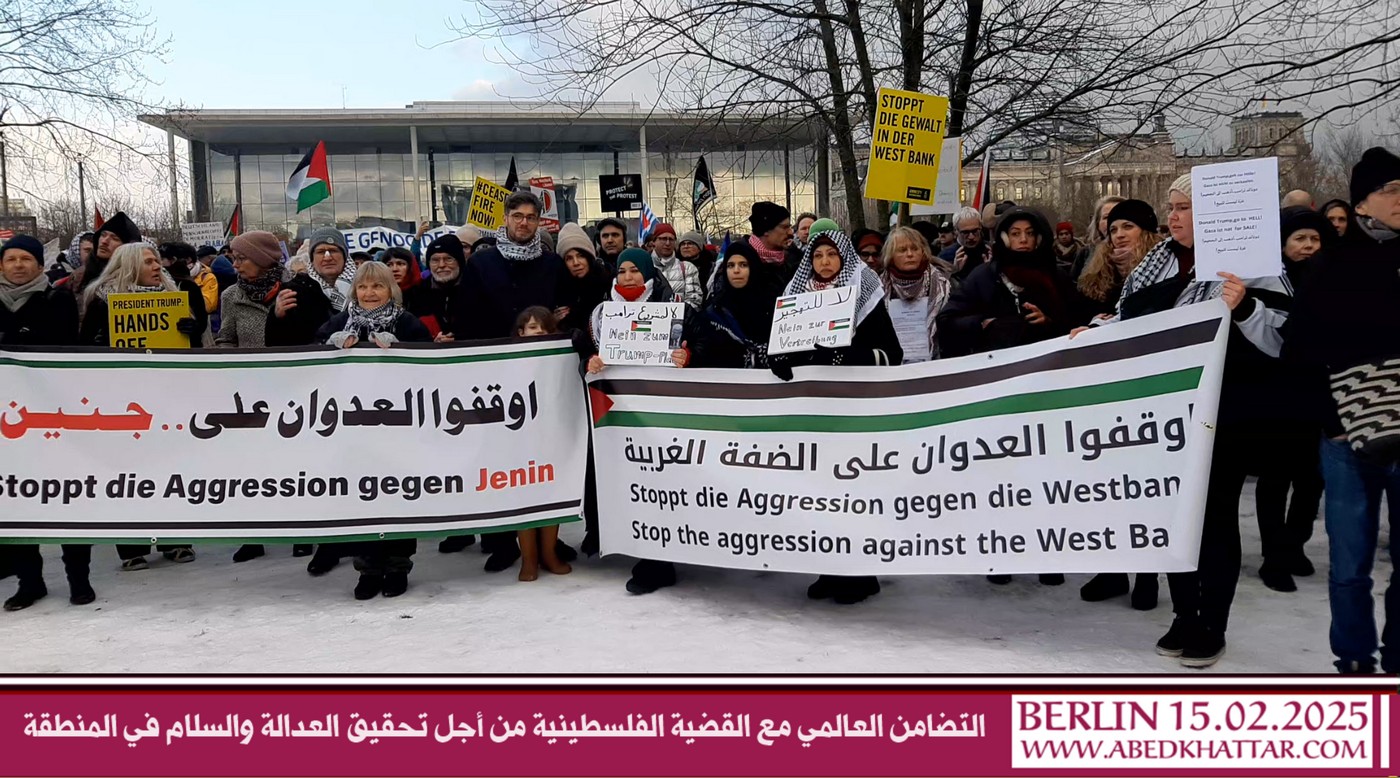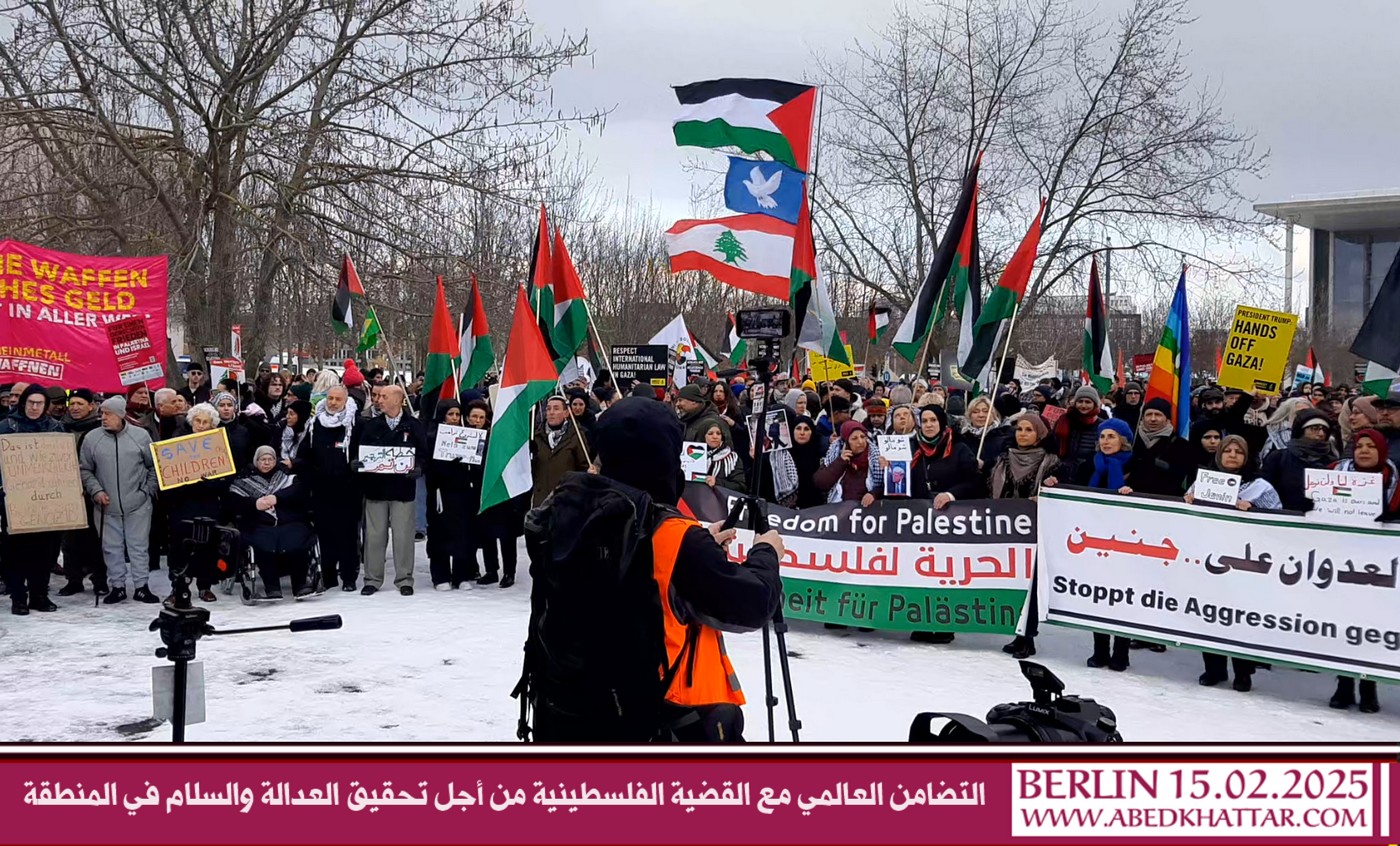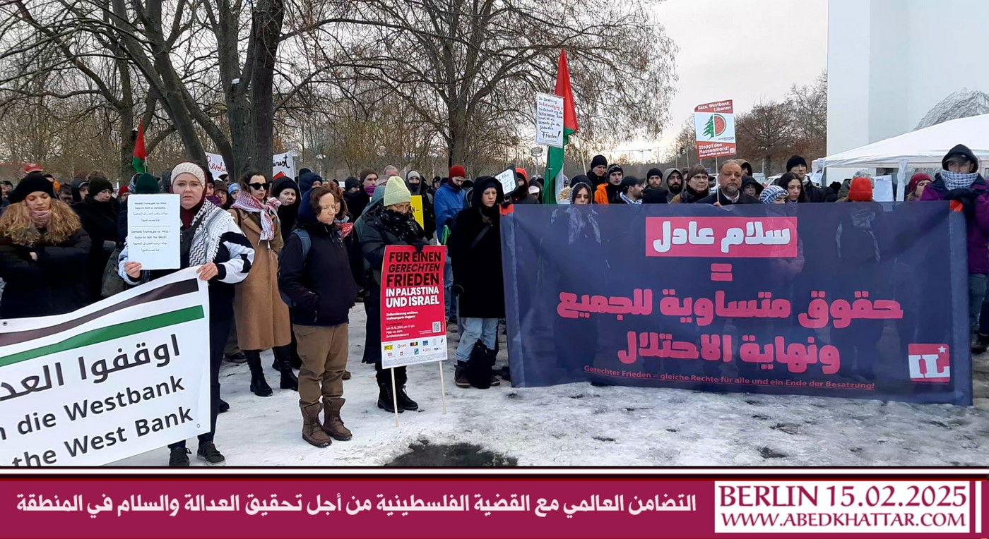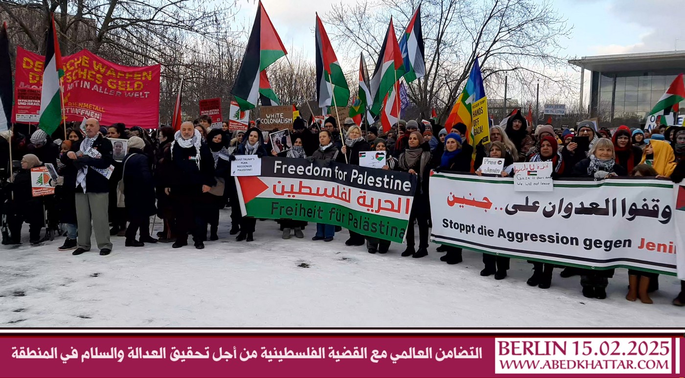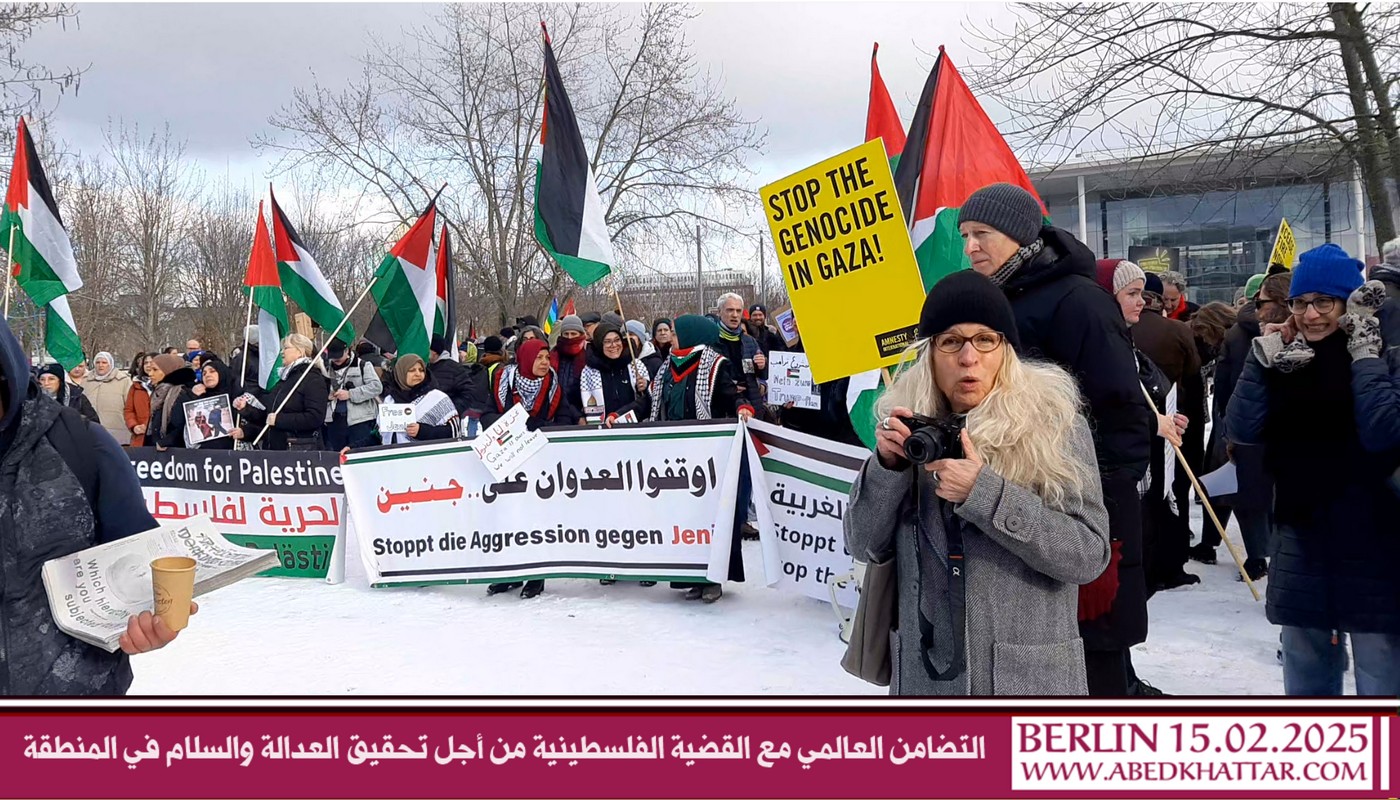 برلين، 15 فبراير 2025 – بدعوة من منظمة العفو الدولية ومنظمات ألمانية عديدة وبمشاركة اللجنة الوطنية الفلسطينية الموحدة في برلين، شهدت العاصمة الألمانية اليوم وقفة حاشدة تدعو إلى السلام العادل والشامل للجميع وليس مع الحكومات .