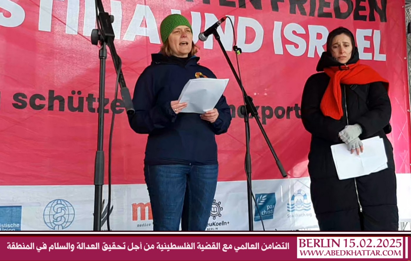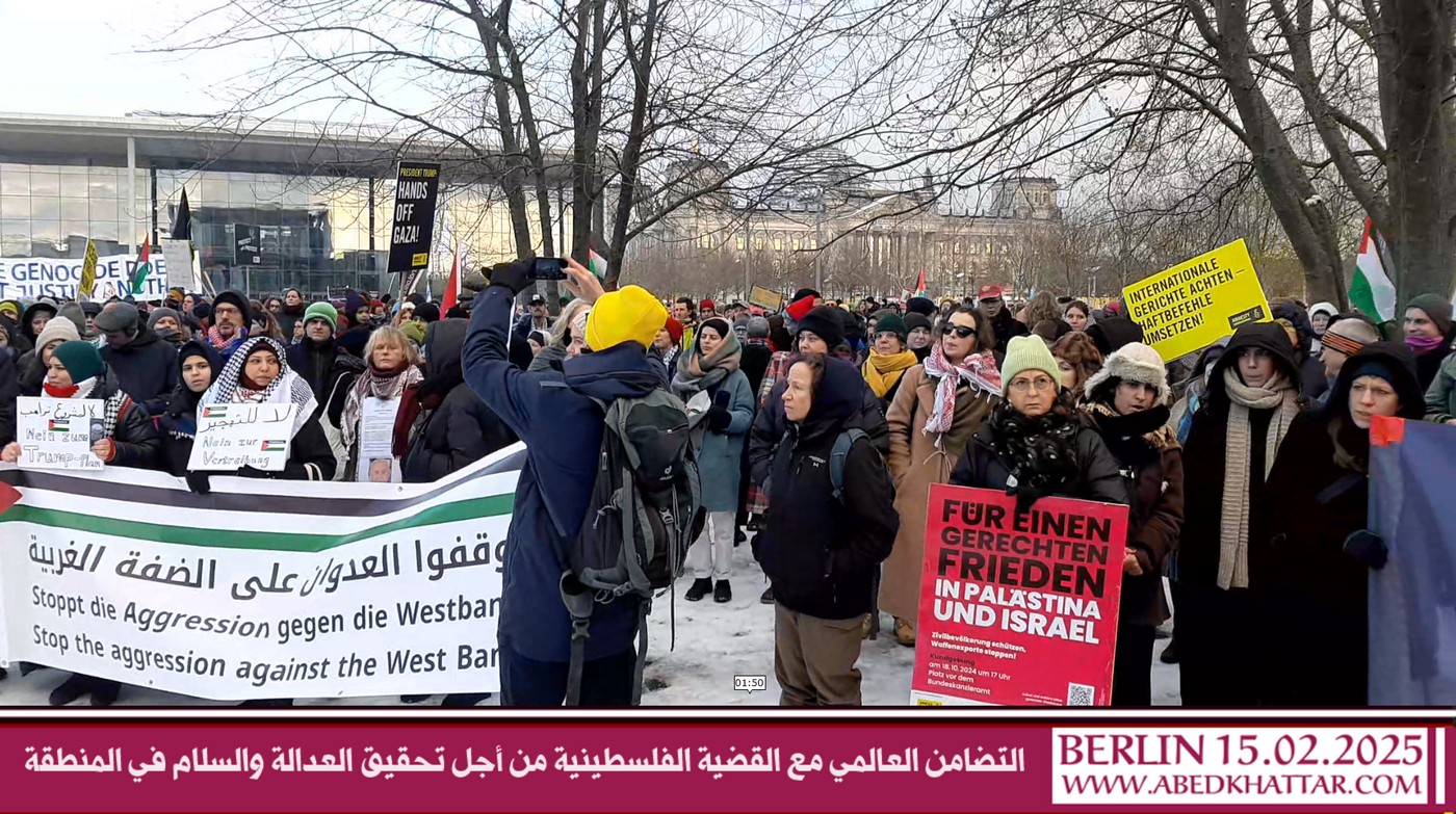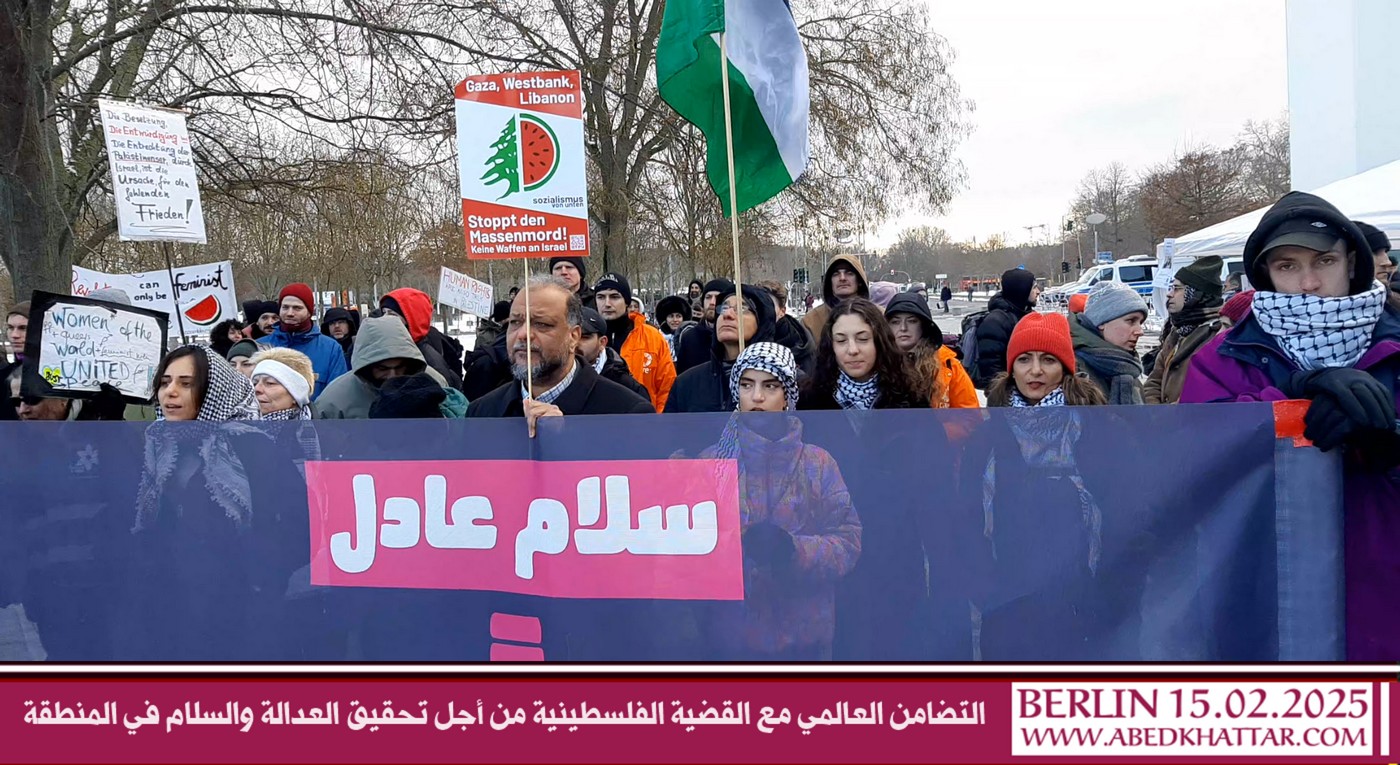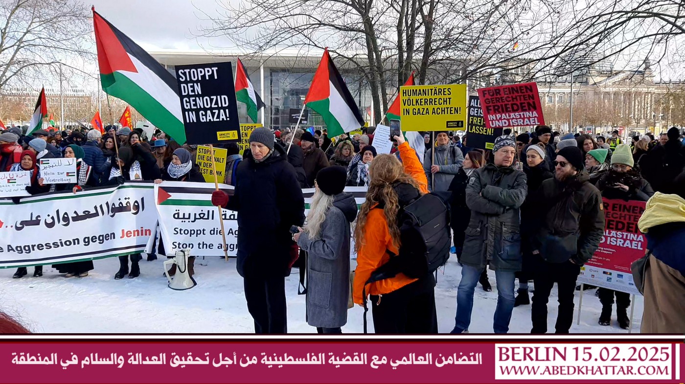 برلين، 15 فبراير 2025 – بدعوة من منظمة العفو الدولية ومنظمات ألمانية عديدة وبمشاركة اللجنة الوطنية الفلسطينية الموحدة في برلين، شهدت العاصمة الألمانية اليوم وقفة حاشدة تدعو إلى السلام العادل والشامل للجميع وليس مع الحكومات .