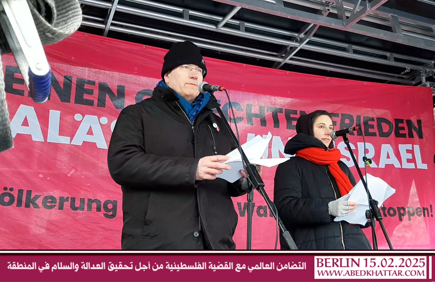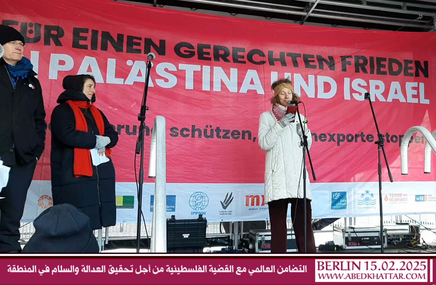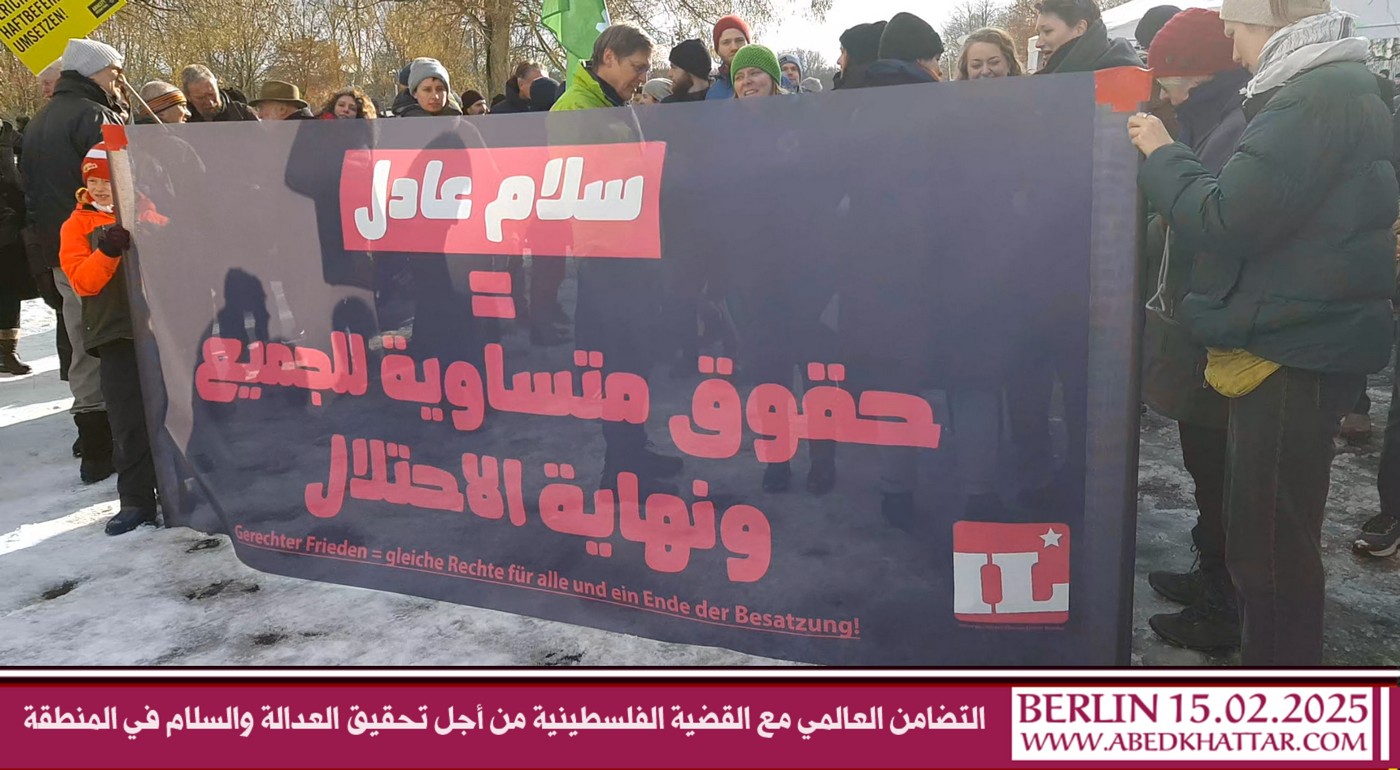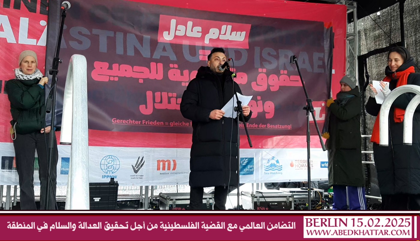 برلين، 15 فبراير 2025 – بدعوة من منظمة العفو الدولية ومنظمات ألمانية عديدة وبمشاركة اللجنة الوطنية الفلسطينية الموحدة في برلين، شهدت العاصمة الألمانية اليوم وقفة حاشدة تدعو إلى السلام العادل والشامل للجميع وليس مع الحكومات .