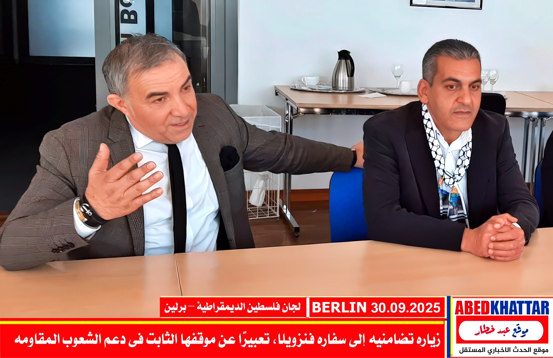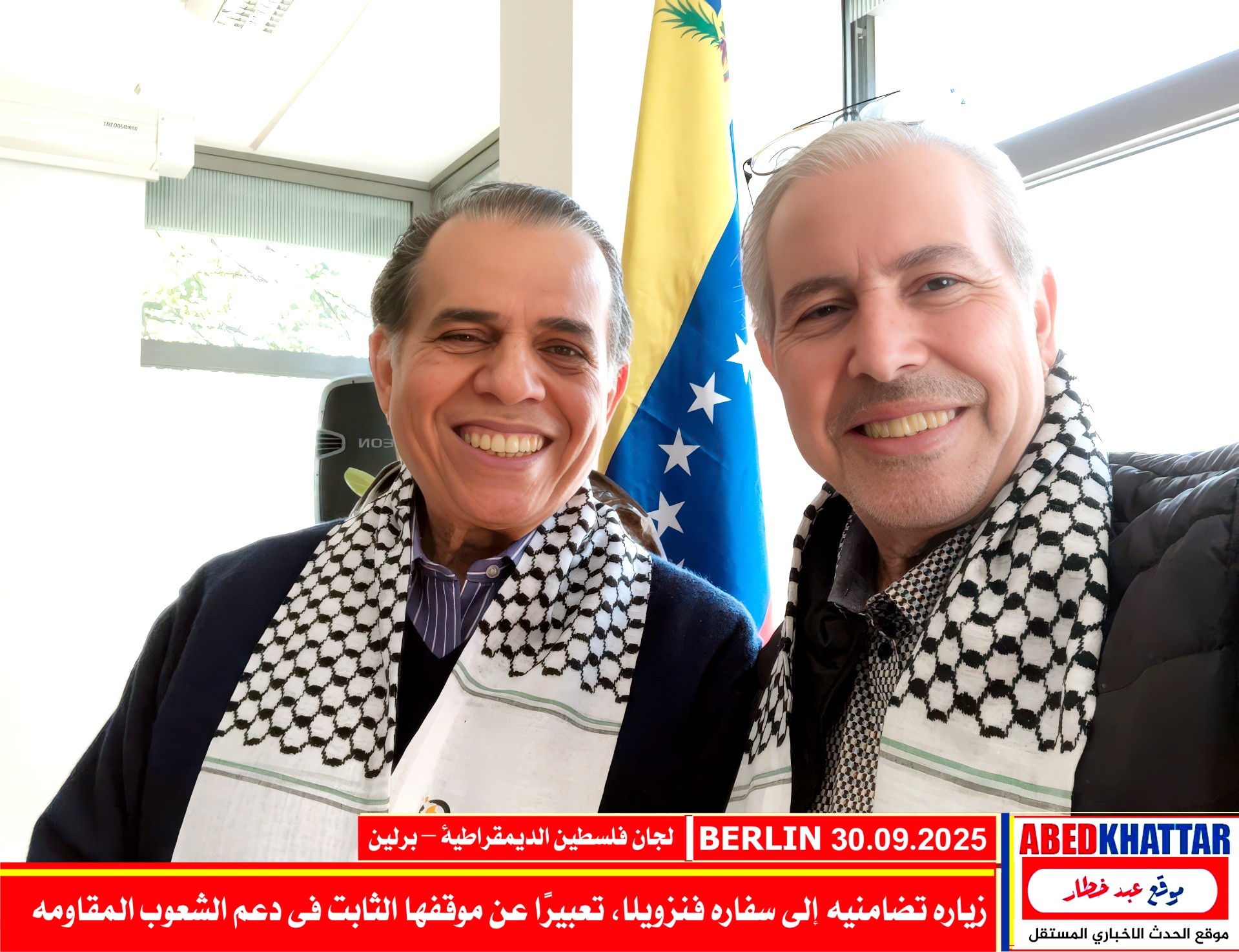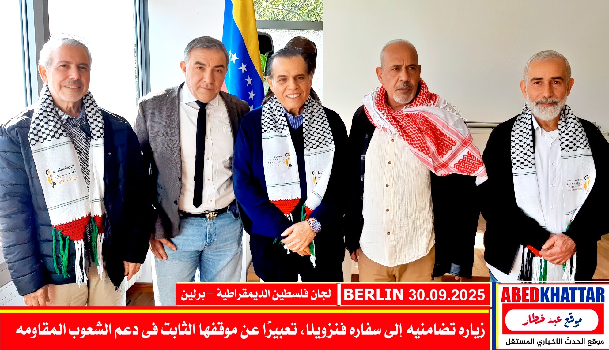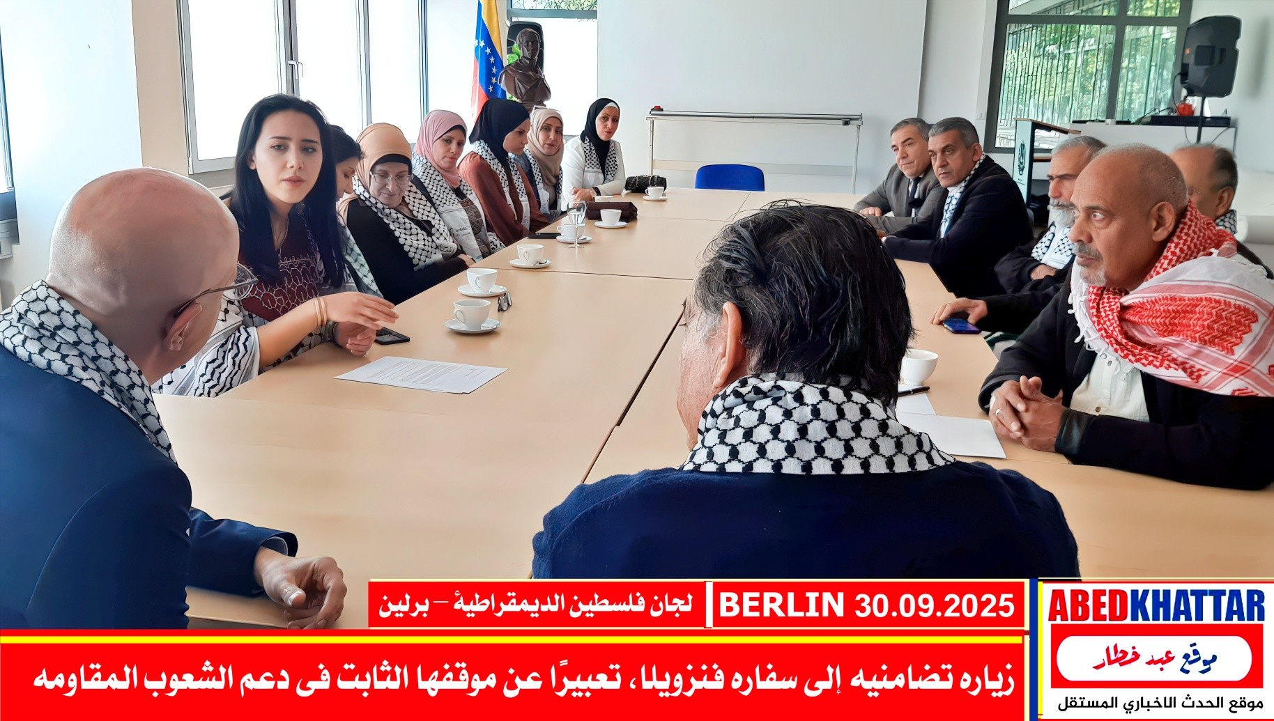 > “نحن في لجان فلسطين الديمقراطية في برلين، نعبّر عن تضامننا الكامل مع فنزويلا حكومةً وشعبًا في وجه التحضير الأمريكي لعدوان جديد، والذي يتجلى في التهديدات البحرية والتدخلات السافرة في الشؤون الداخلية. إننا نرفض هذه السياسات العدوانية التي تهدف إلى زعزعة استقرار فنزويلا، ونؤكد أن الشعوب الحرة لن ترضخ للابتزاز الإمبريالي.