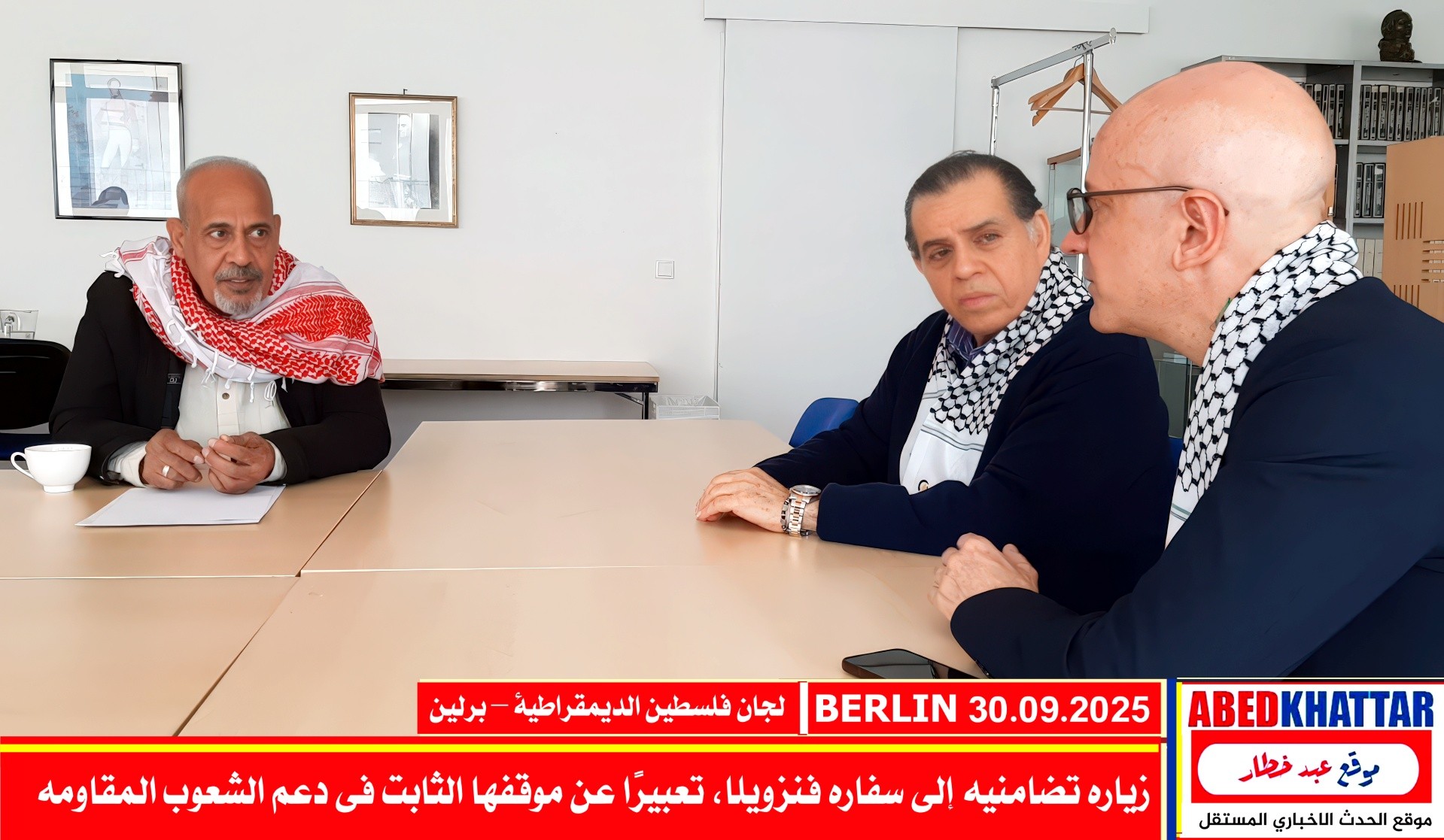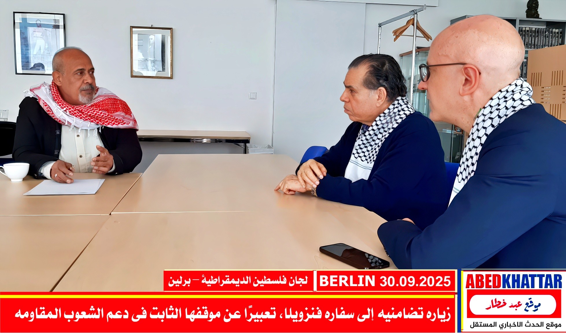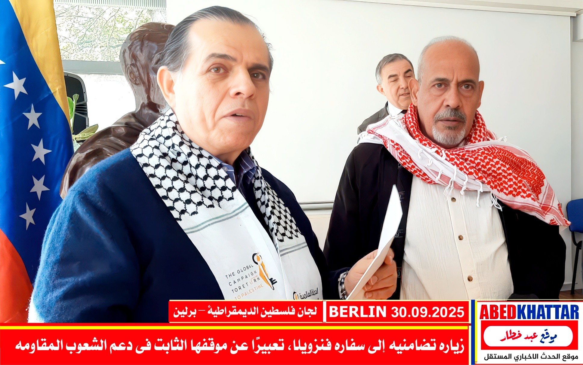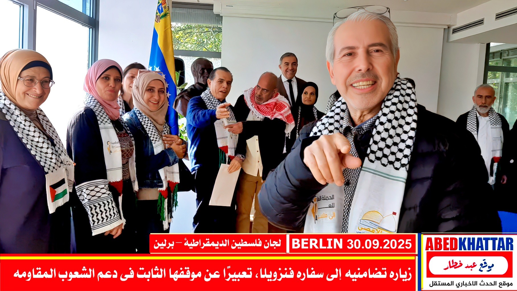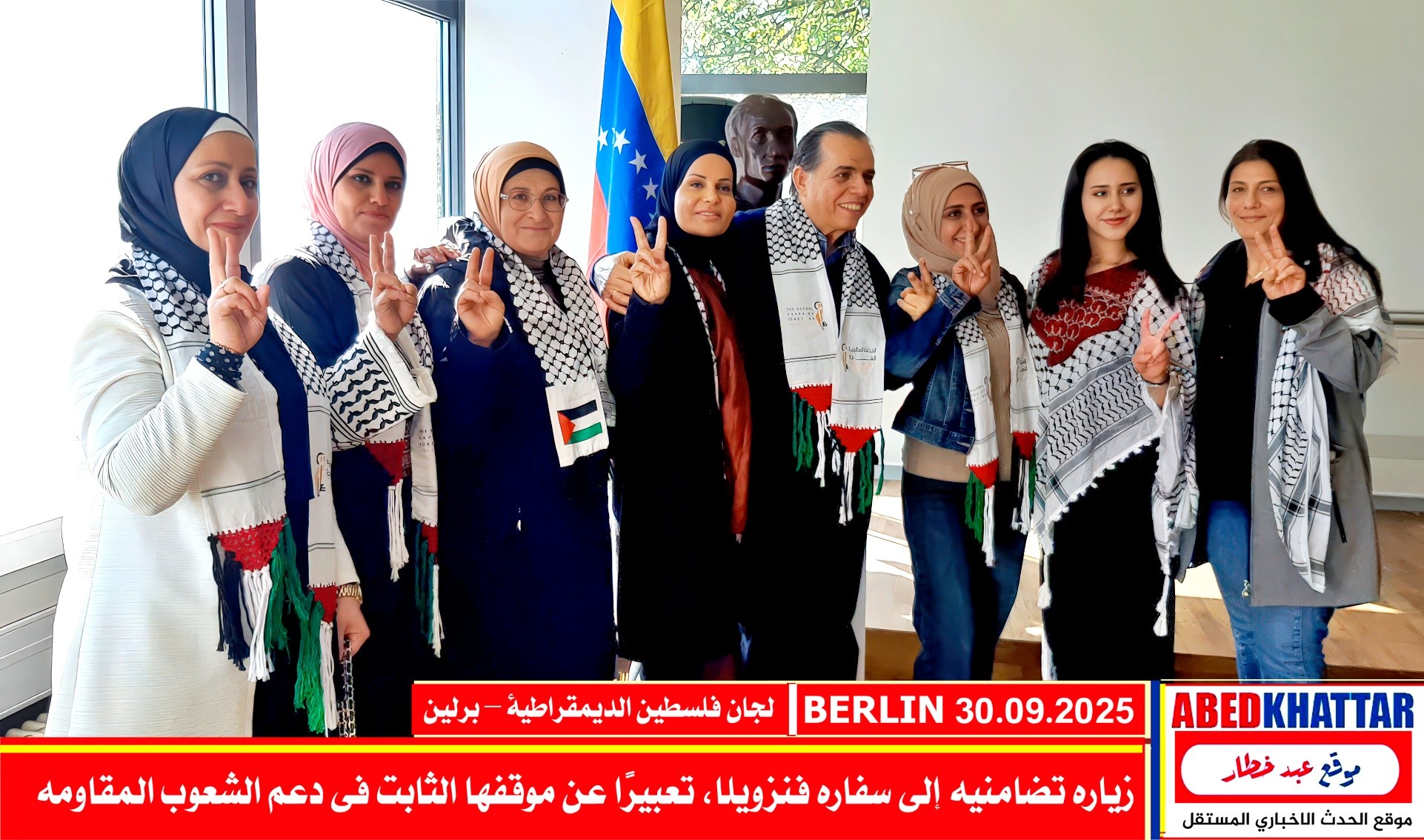 > “نحن في لجان فلسطين الديمقراطية في برلين، نعبّر عن تضامننا الكامل مع فنزويلا حكومةً وشعبًا في وجه التحضير الأمريكي لعدوان جديد، والذي يتجلى في التهديدات البحرية والتدخلات السافرة في الشؤون الداخلية. إننا نرفض هذه السياسات العدوانية التي تهدف إلى زعزعة استقرار فنزويلا، ونؤكد أن الشعوب الحرة لن ترضخ للابتزاز الإمبريالي.
