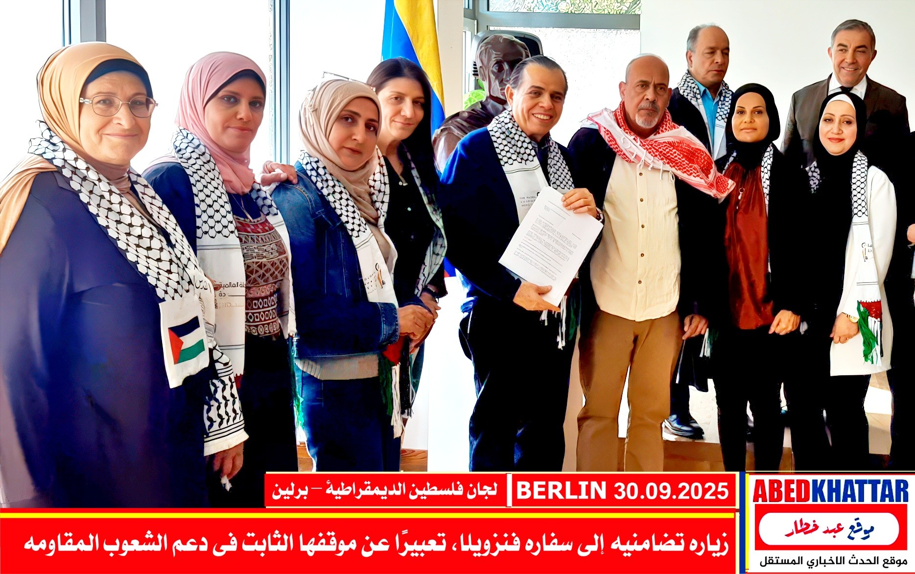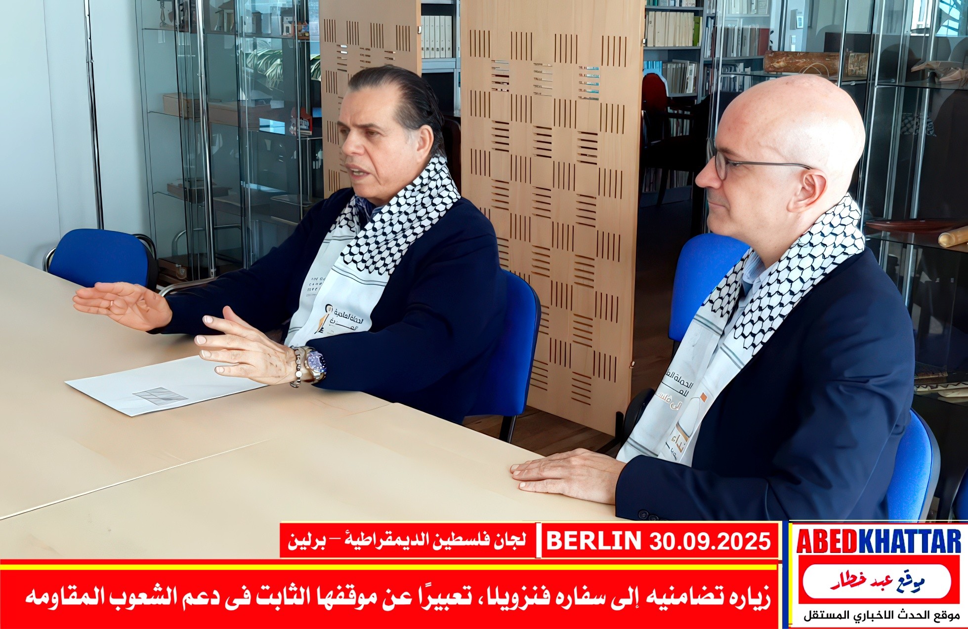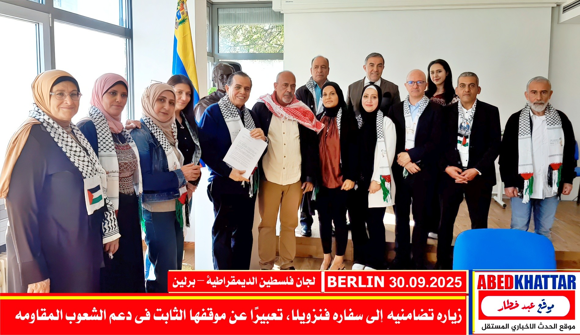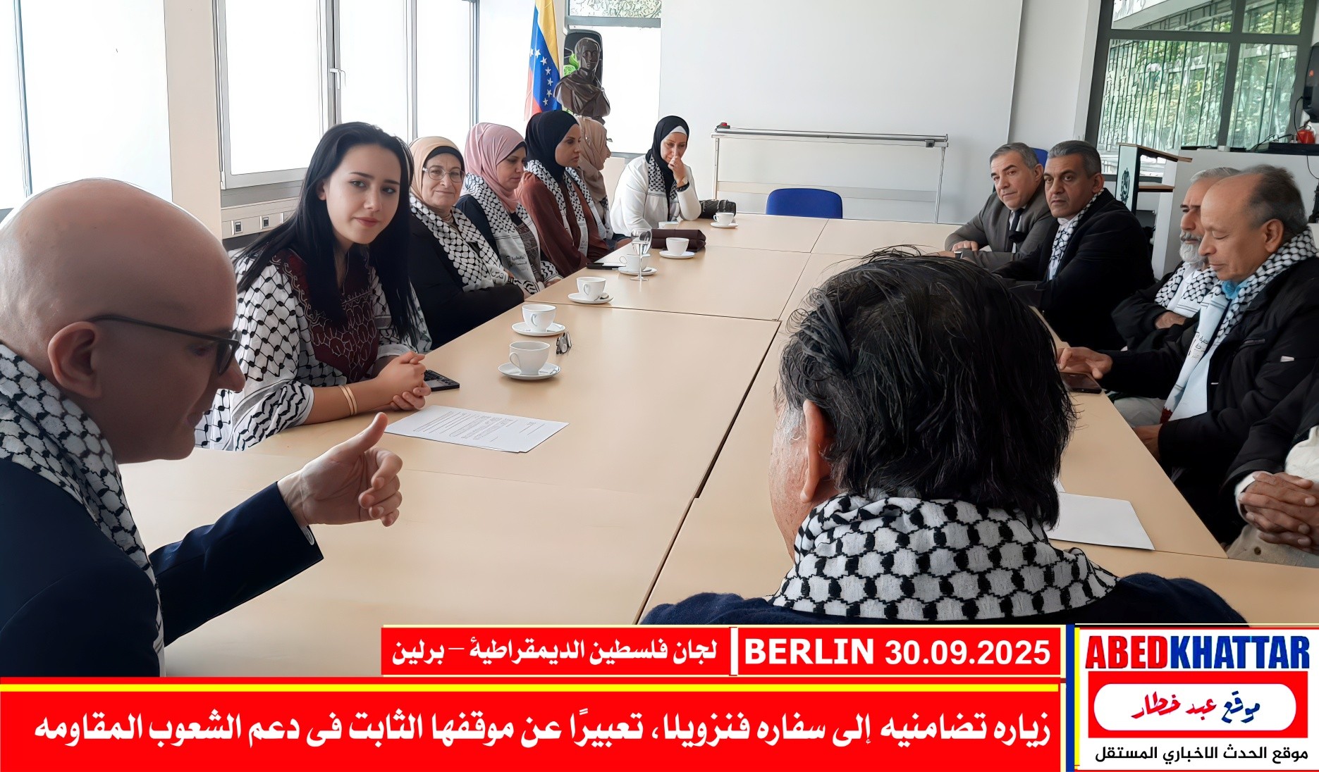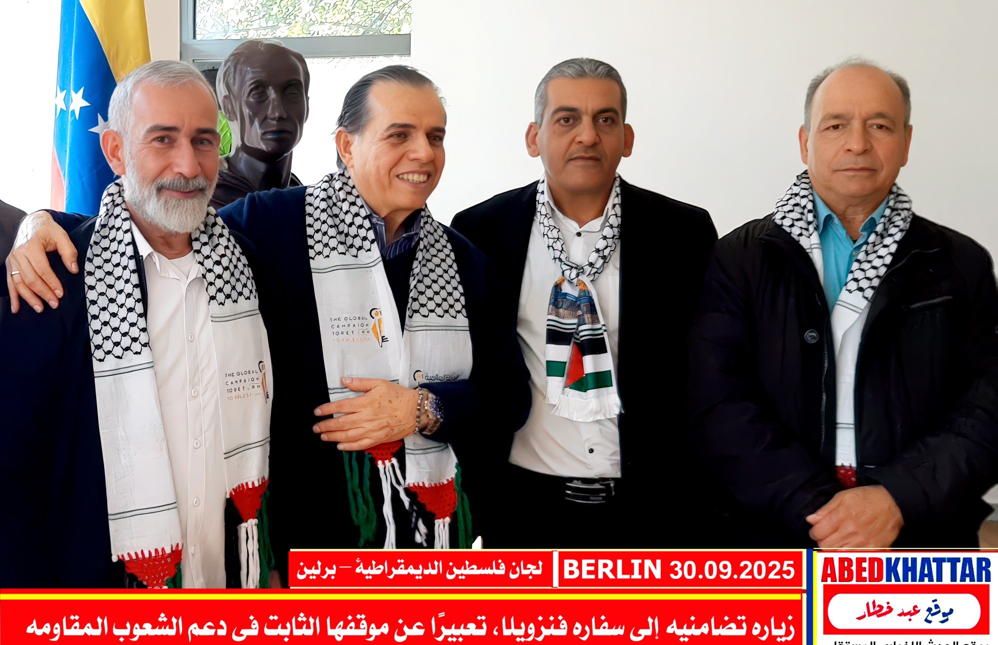 في ظل التصعيد الأمريكي المتواصل ضد فنزويلا، والذي تجلّى مؤخرًا في تهديدات بحرية وتدخلات مباشرة في الشؤون الداخلية بهدف زعزعة الاستقرار، نظّمت لجان فلسطين الديمقراطية في ألمانيا. زيارة تضامنية إلى سفارة فنزويلا، تعبيرًا عن موقفها الثابت في دعم الشعوب المقاومة للهيمنة الإمبريالية، وتأكيدًا على وحدة النضال بين فنزويلا وفلسطين في مواجهة الاستعمار والعدوان.