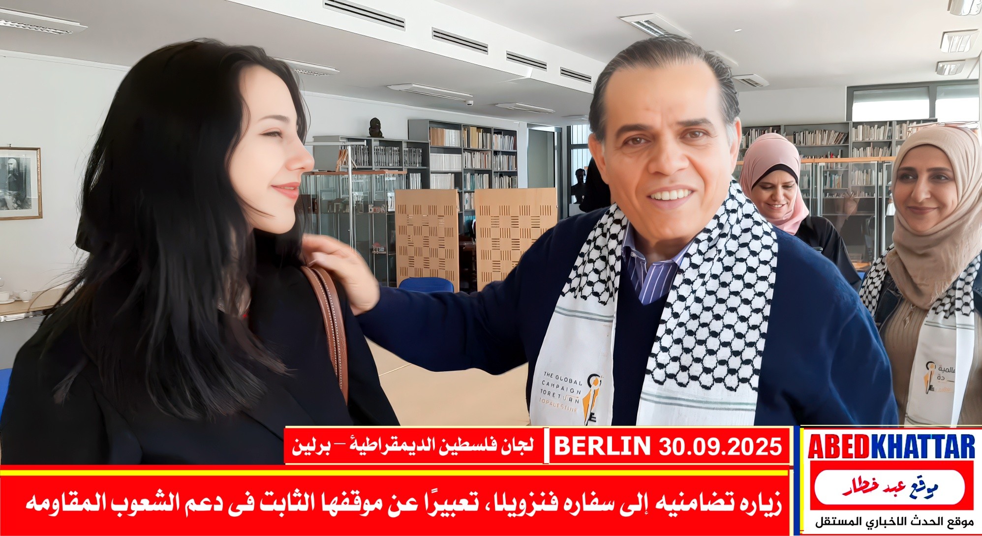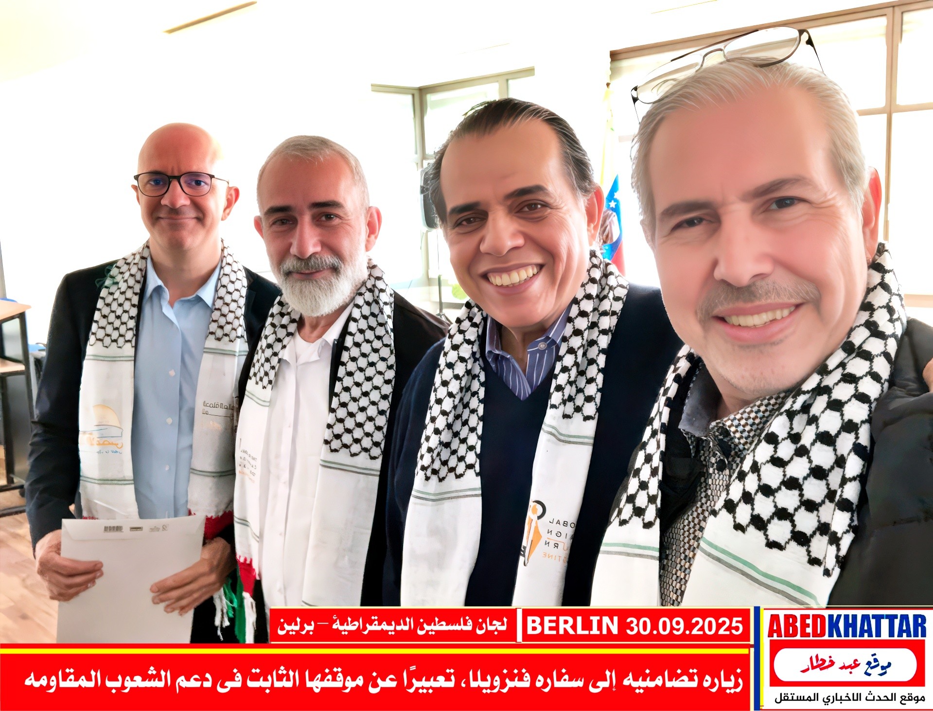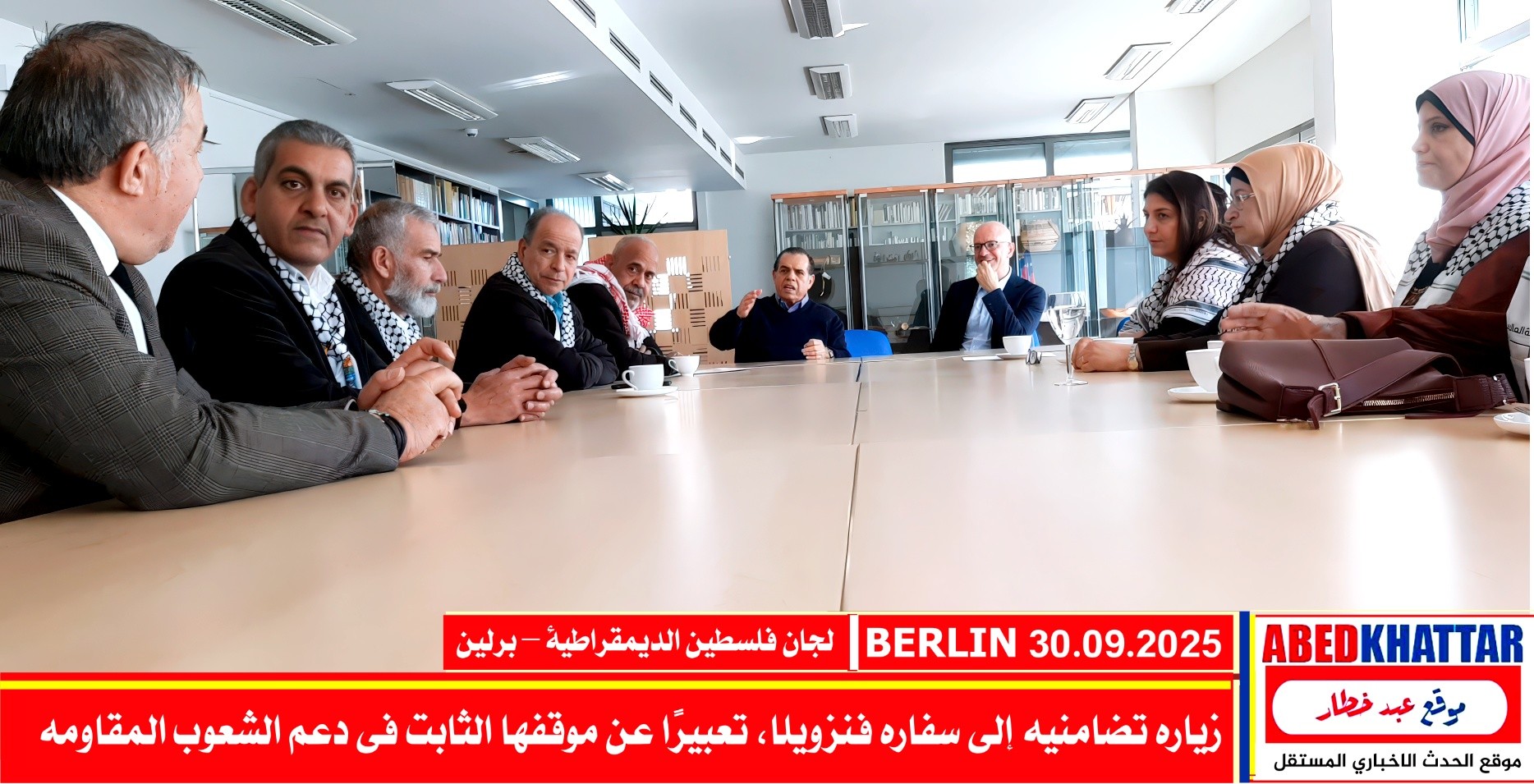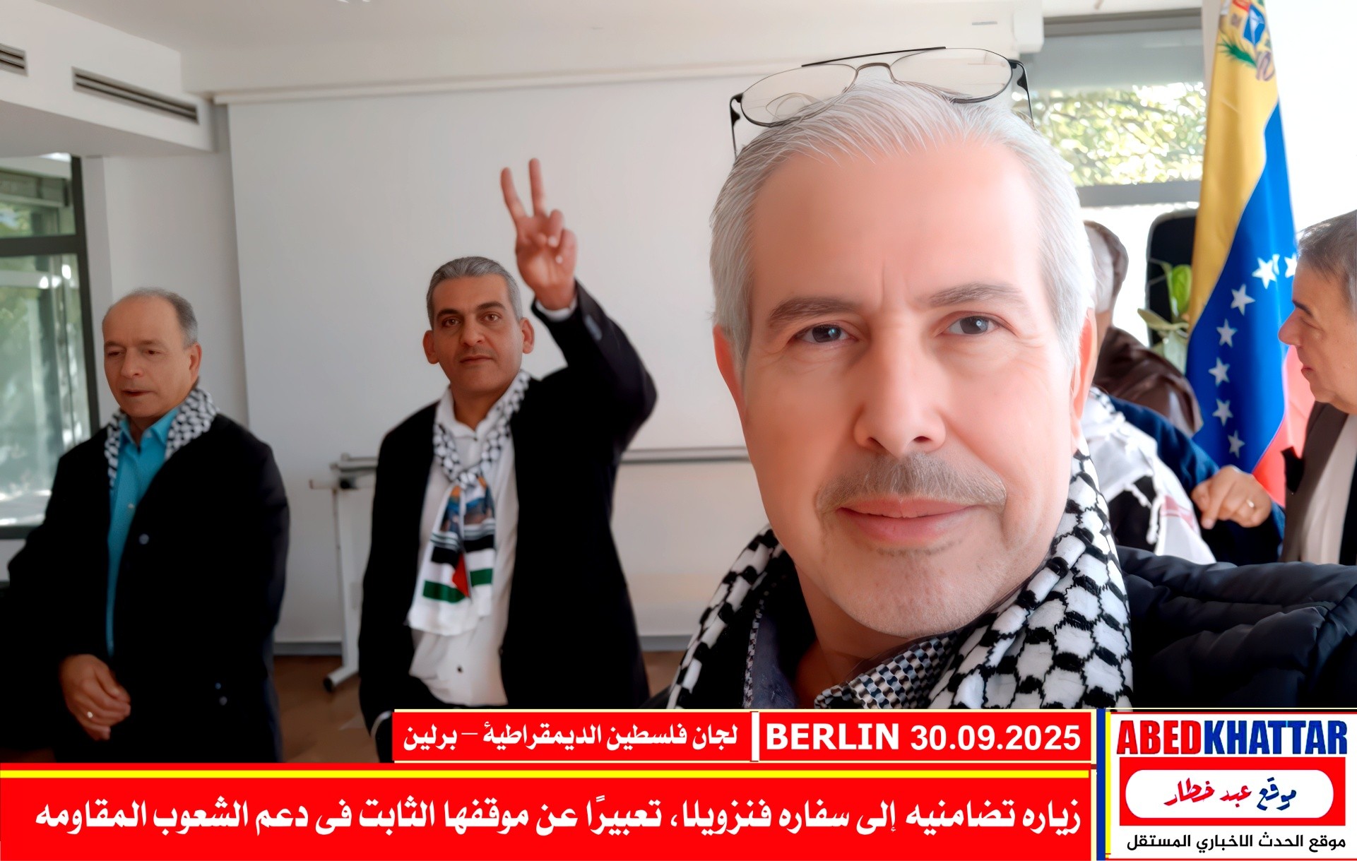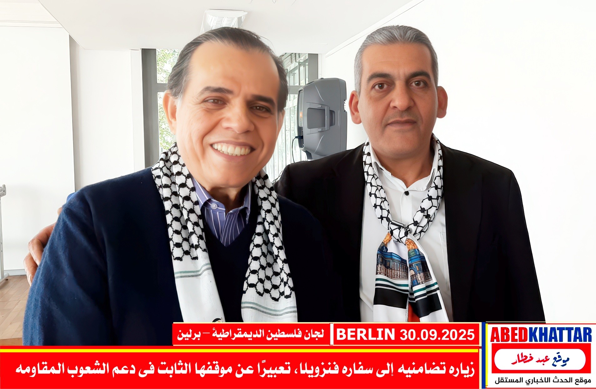 في ظل التصعيد الأمريكي المتواصل ضد فنزويلا، والذي تجلّى مؤخرًا في تهديدات بحرية وتدخلات مباشرة في الشؤون الداخلية بهدف زعزعة الاستقرار، نظّمت لجان فلسطين الديمقراطية في ألمانيا. زيارة تضامنية إلى سفارة فنزويلا، تعبيرًا عن موقفها الثابت في دعم الشعوب المقاومة للهيمنة الإمبريالية، وتأكيدًا على وحدة النضال بين فنزويلا وفلسطين في مواجهة الاستعمار والعدوان.