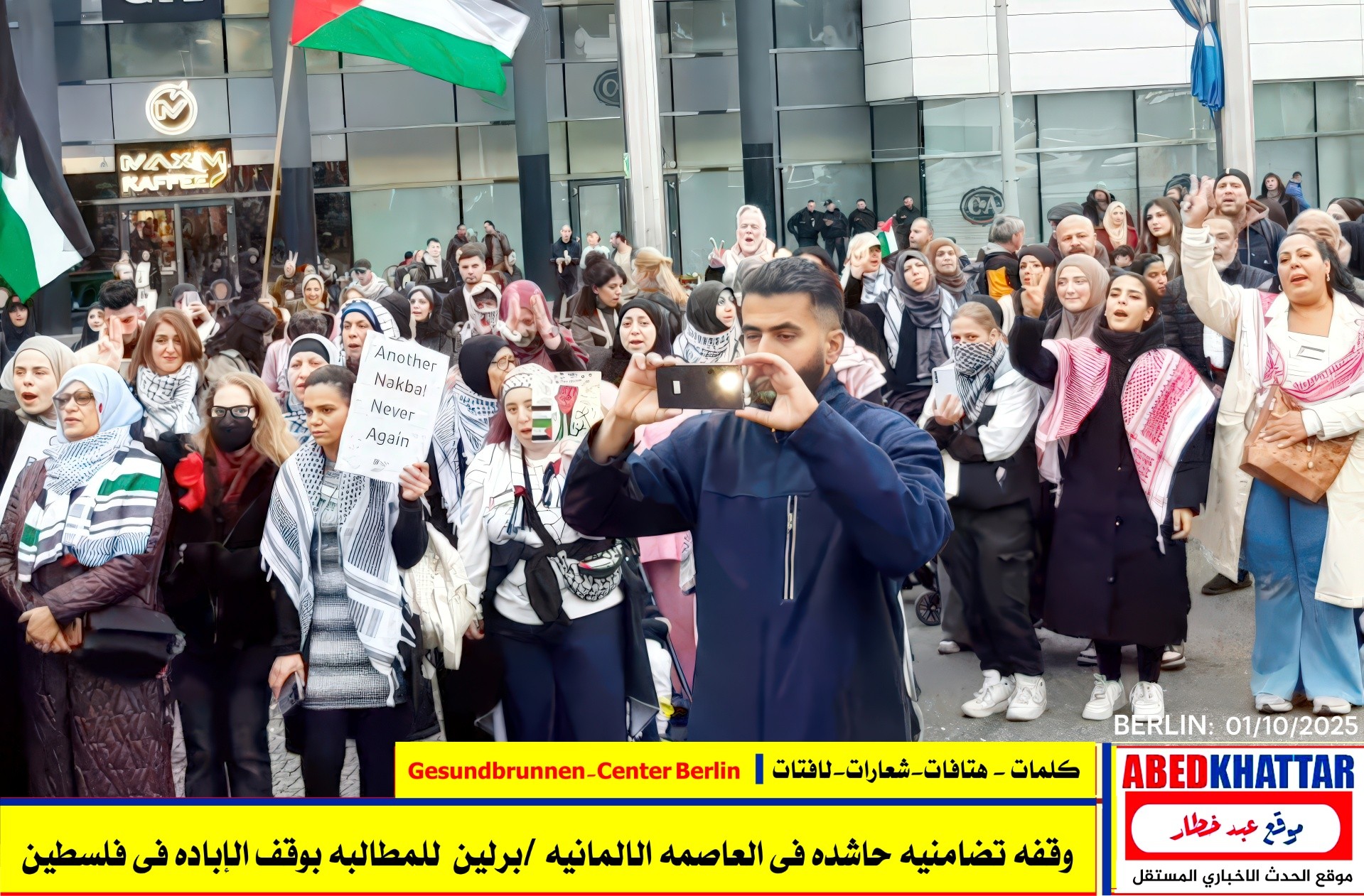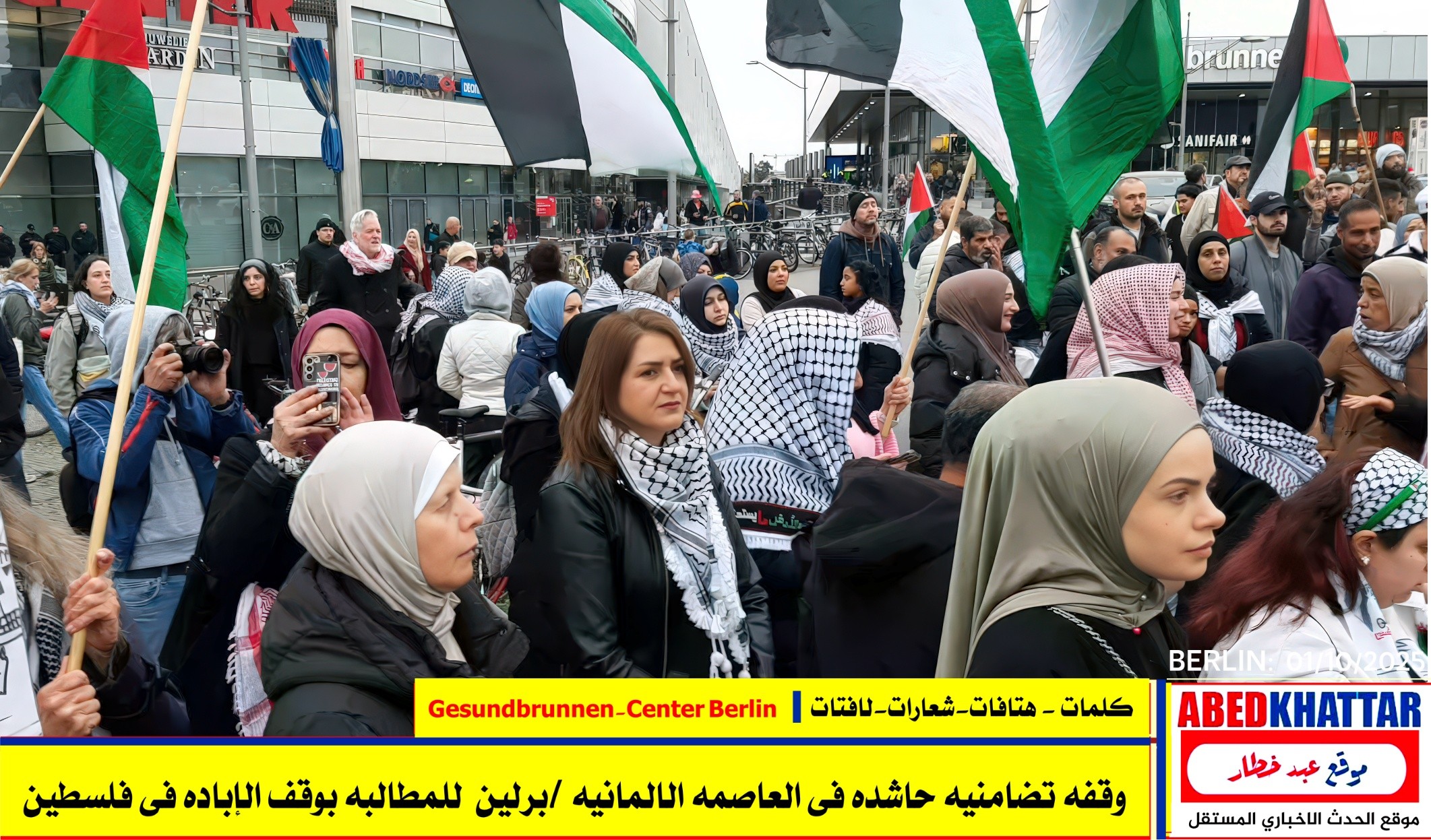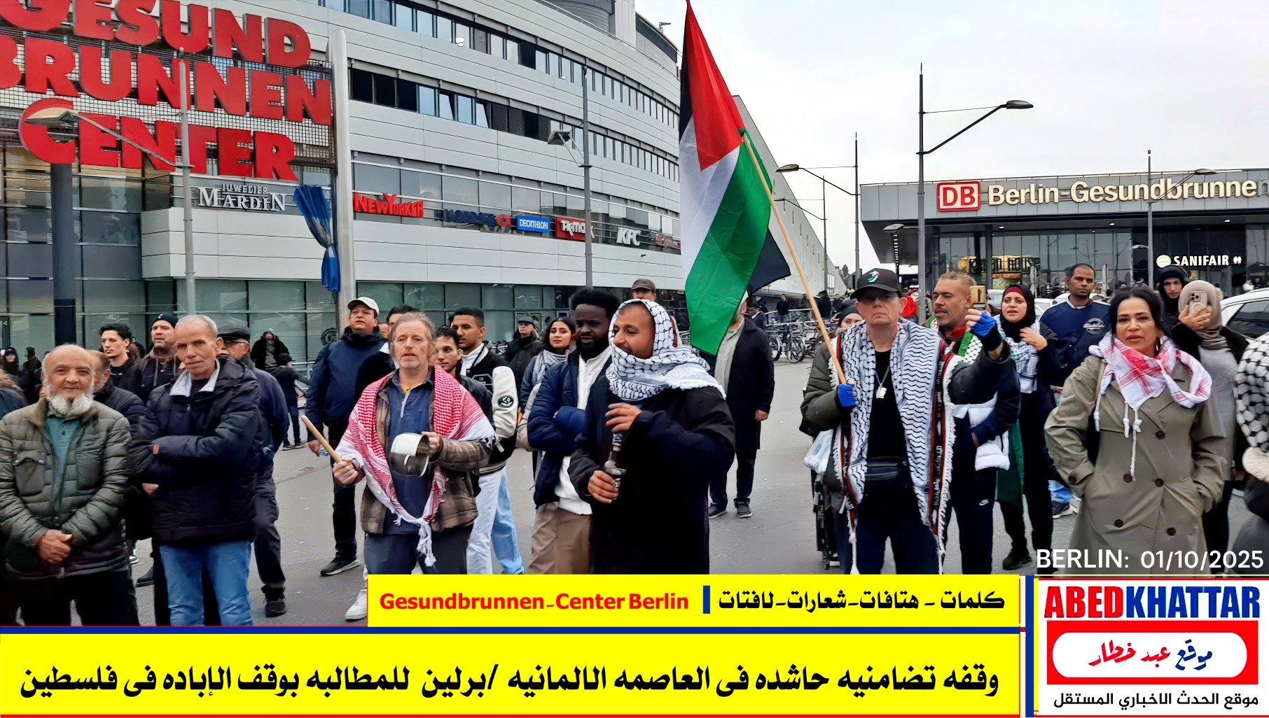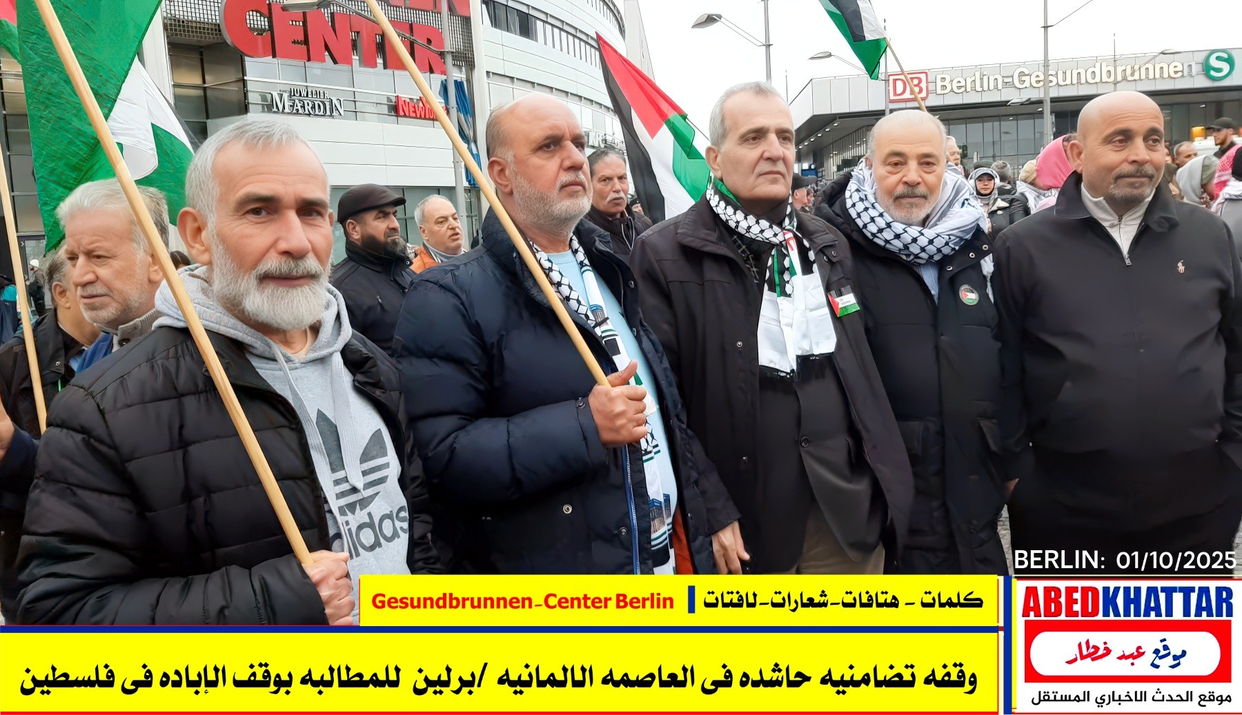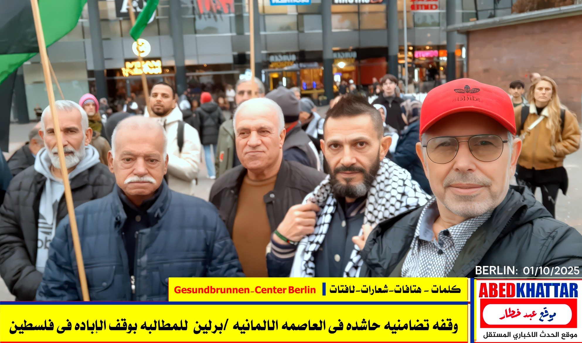 بالصور والفيديو : نظّمت اللجنة الوطنية الفلسطينية الموحدة في برلين اليوم، 1 /10/ 2025، وقفة تضامنية في ساحة Gesundbrunnen-Center Berlin