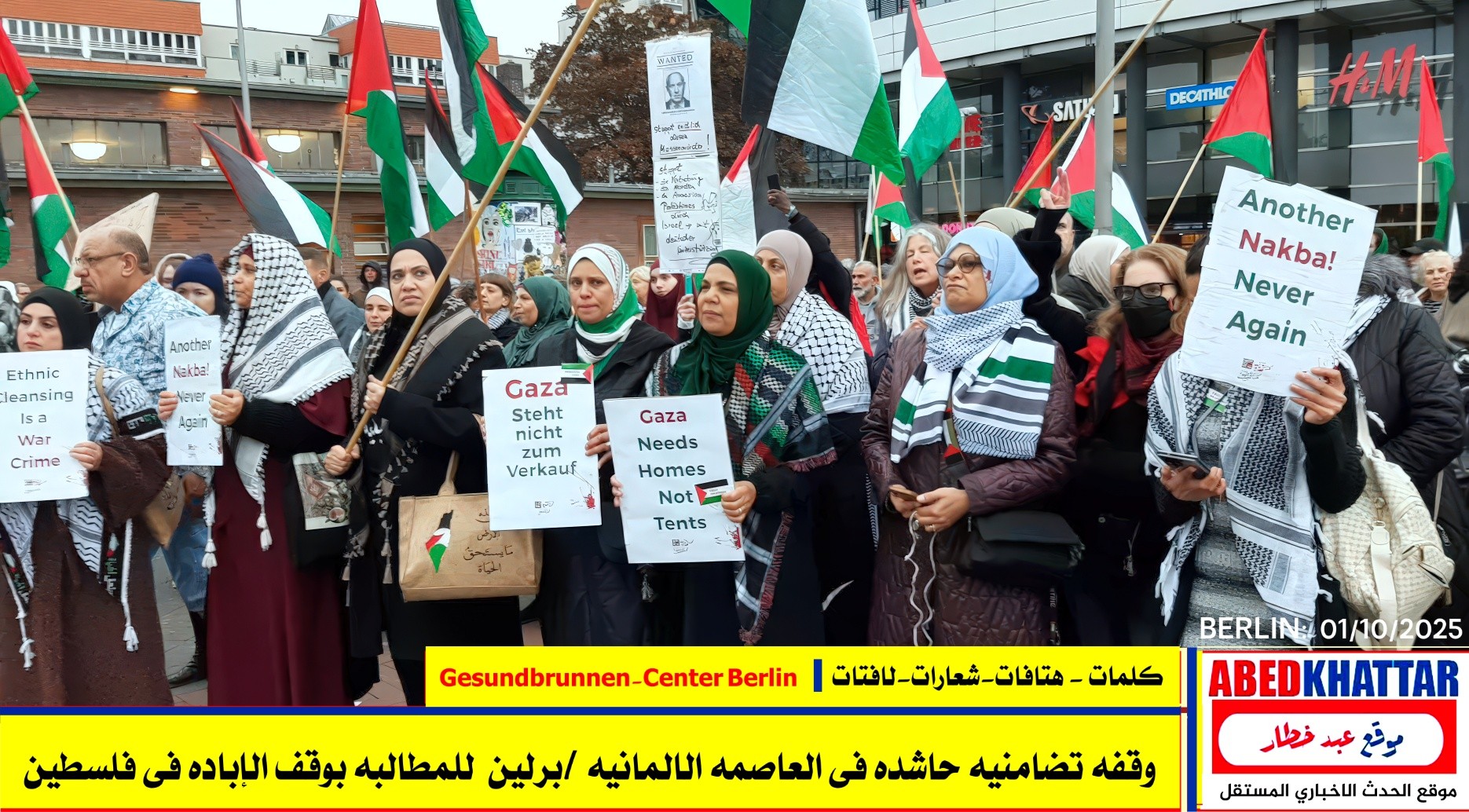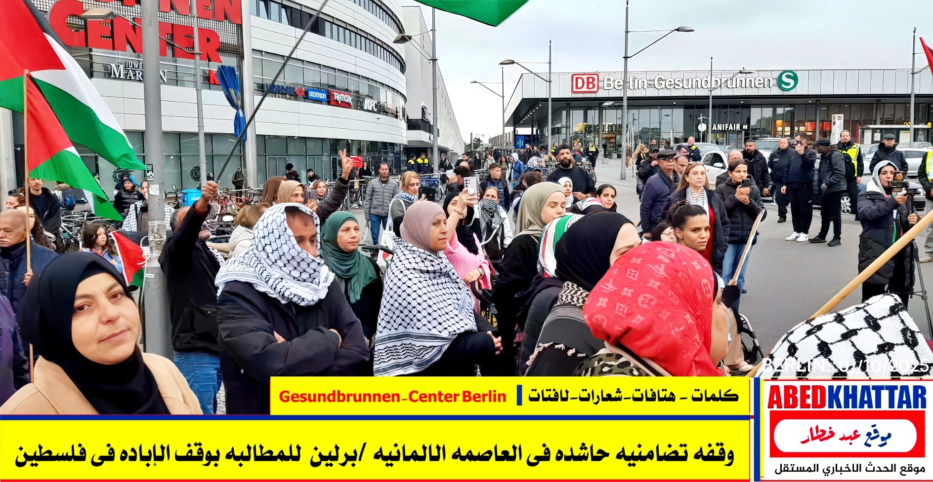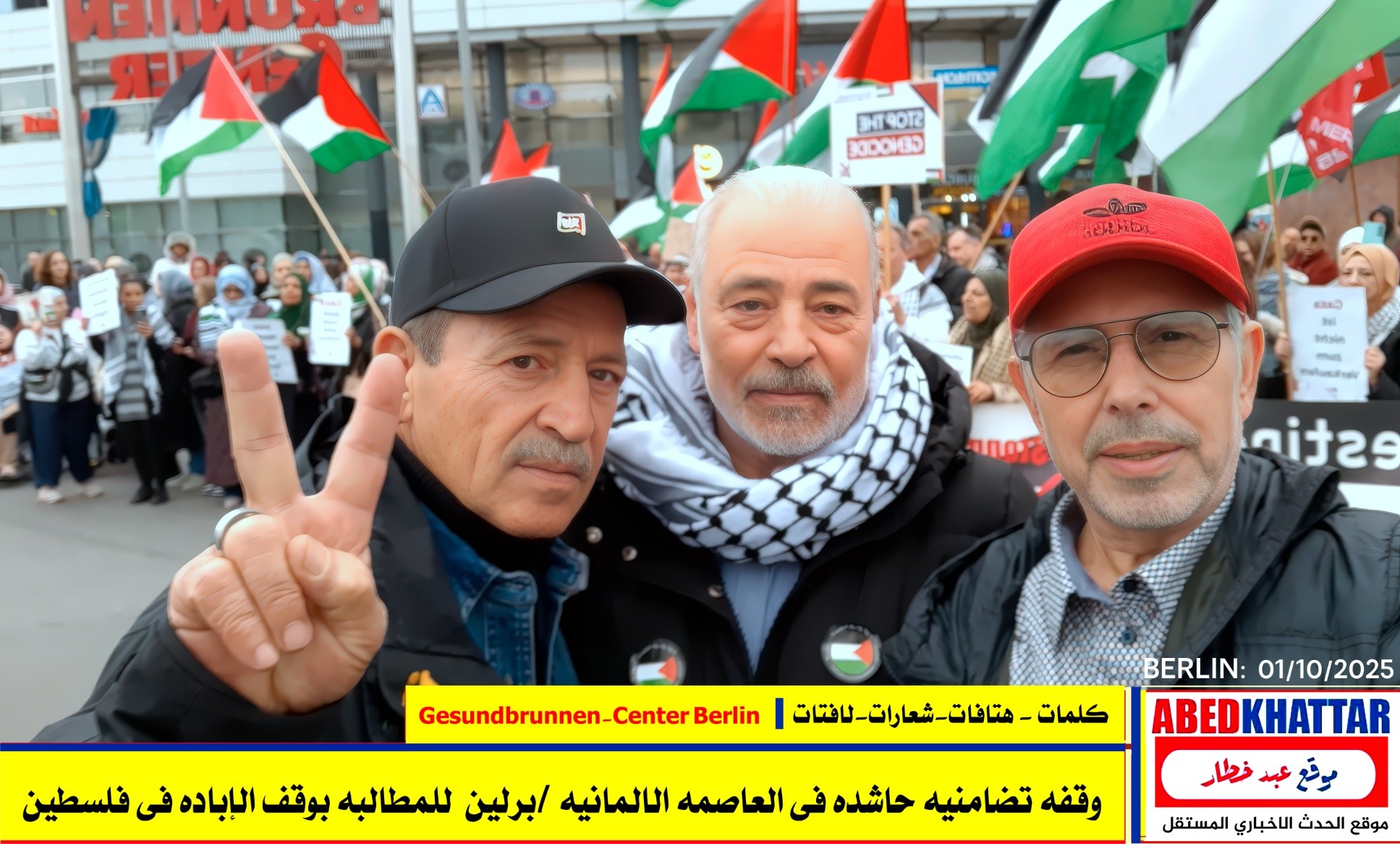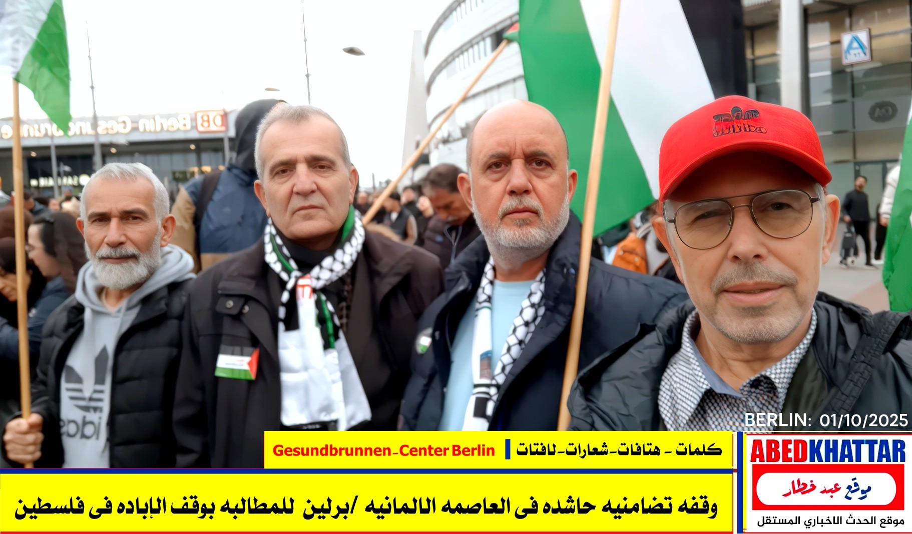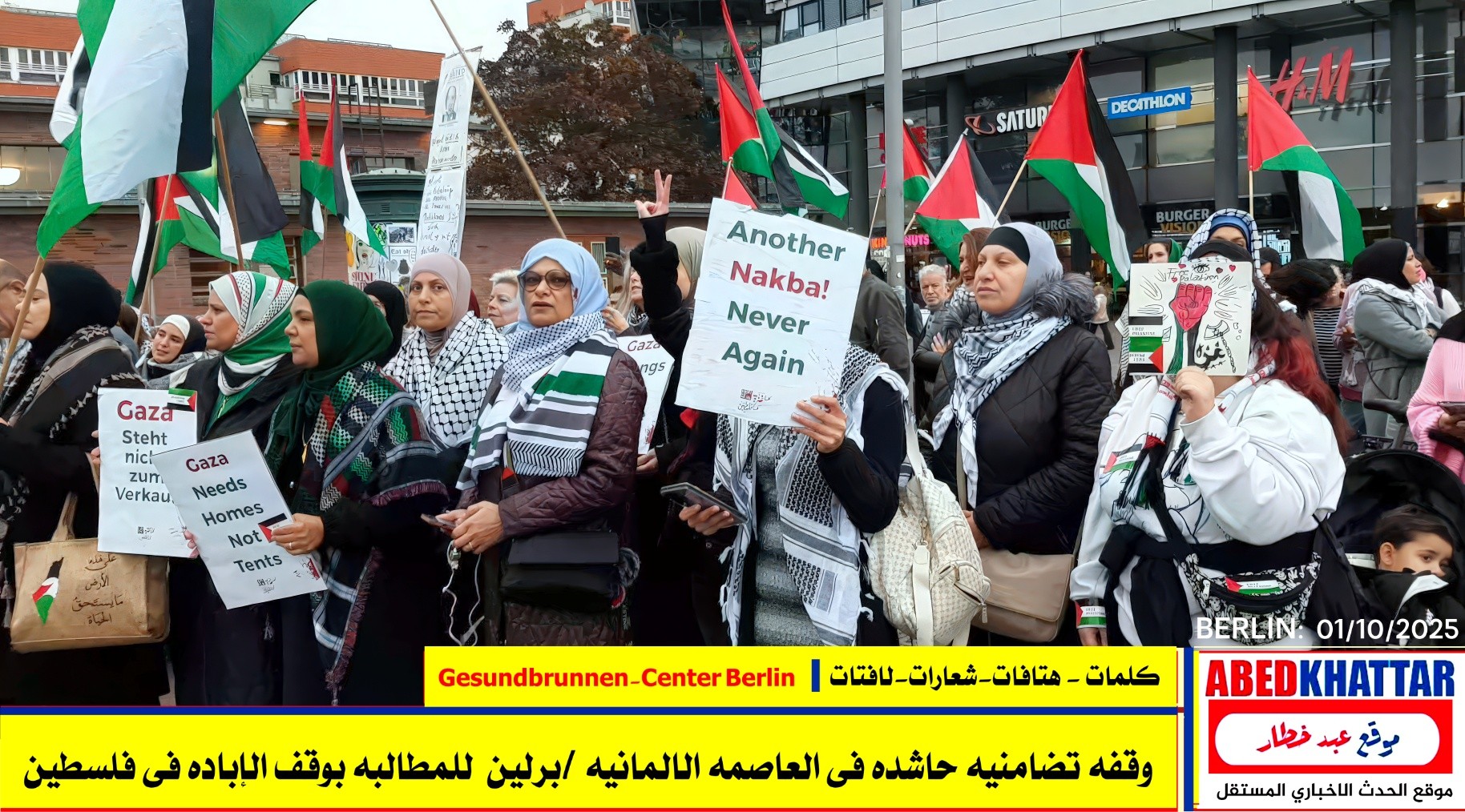 بالصور والفيديو : نظّمت اللجنة الوطنية الفلسطينية الموحدة في برلين اليوم، 1 /10/ 2025، وقفة تضامنية في ساحة Gesundbrunnen-Center Berlin