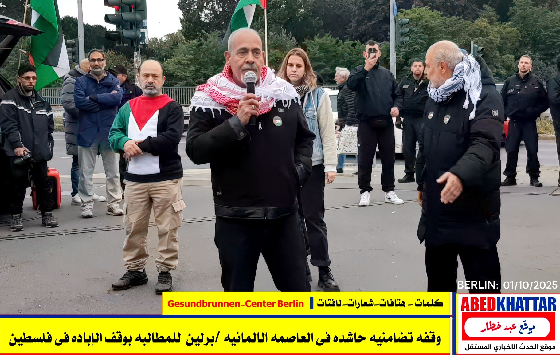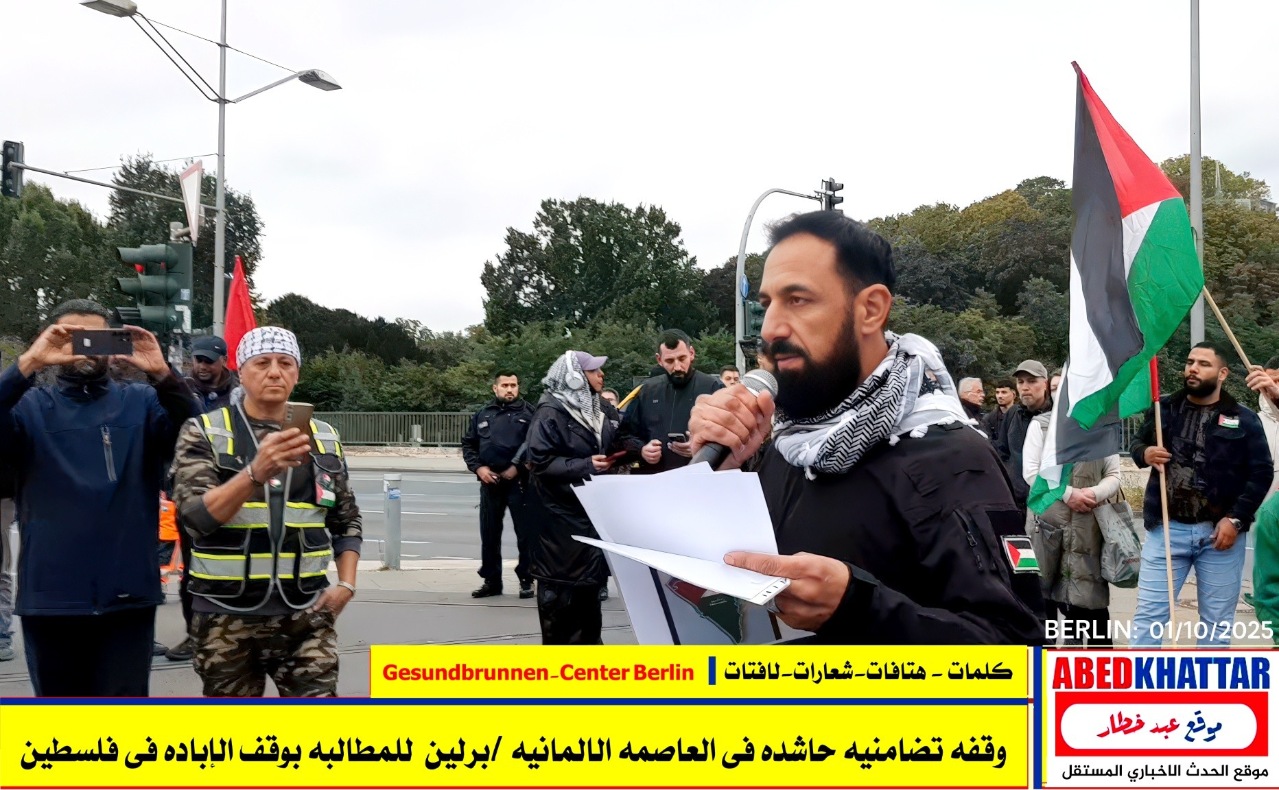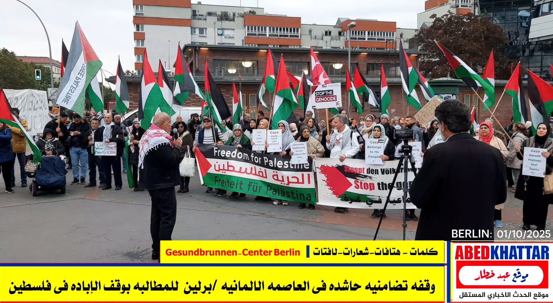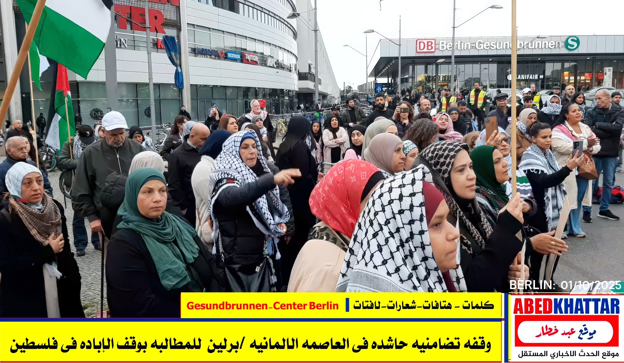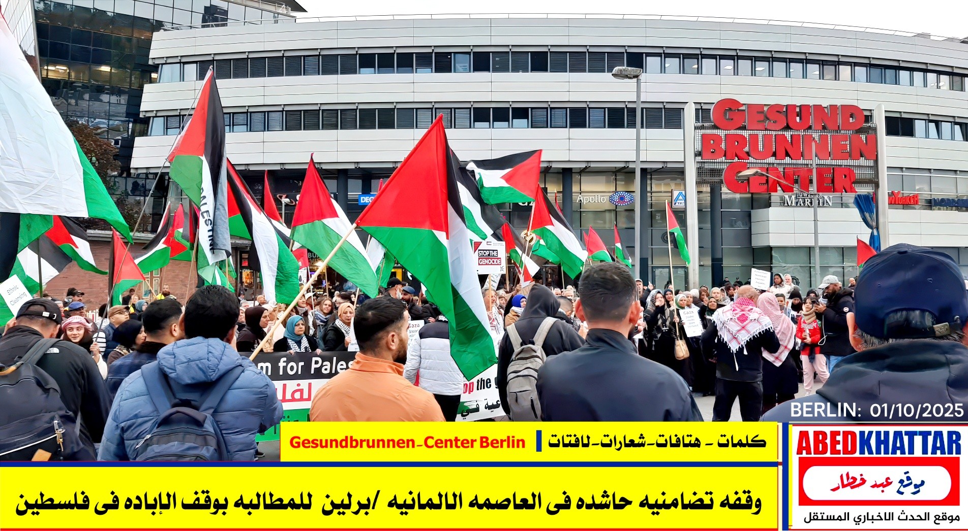 بالصور والفيديو : نظّمت اللجنة الوطنية الفلسطينية الموحدة في برلين اليوم، 1 /10/ 2025، وقفة تضامنية في ساحة Gesundbrunnen-Center Berlin