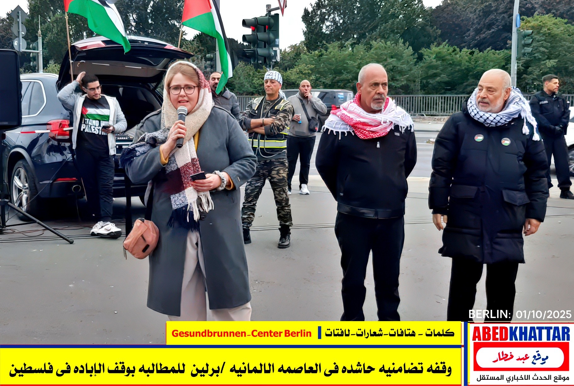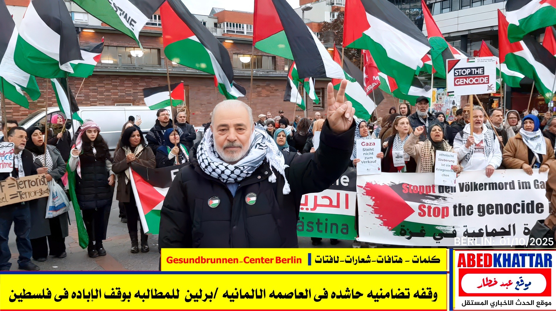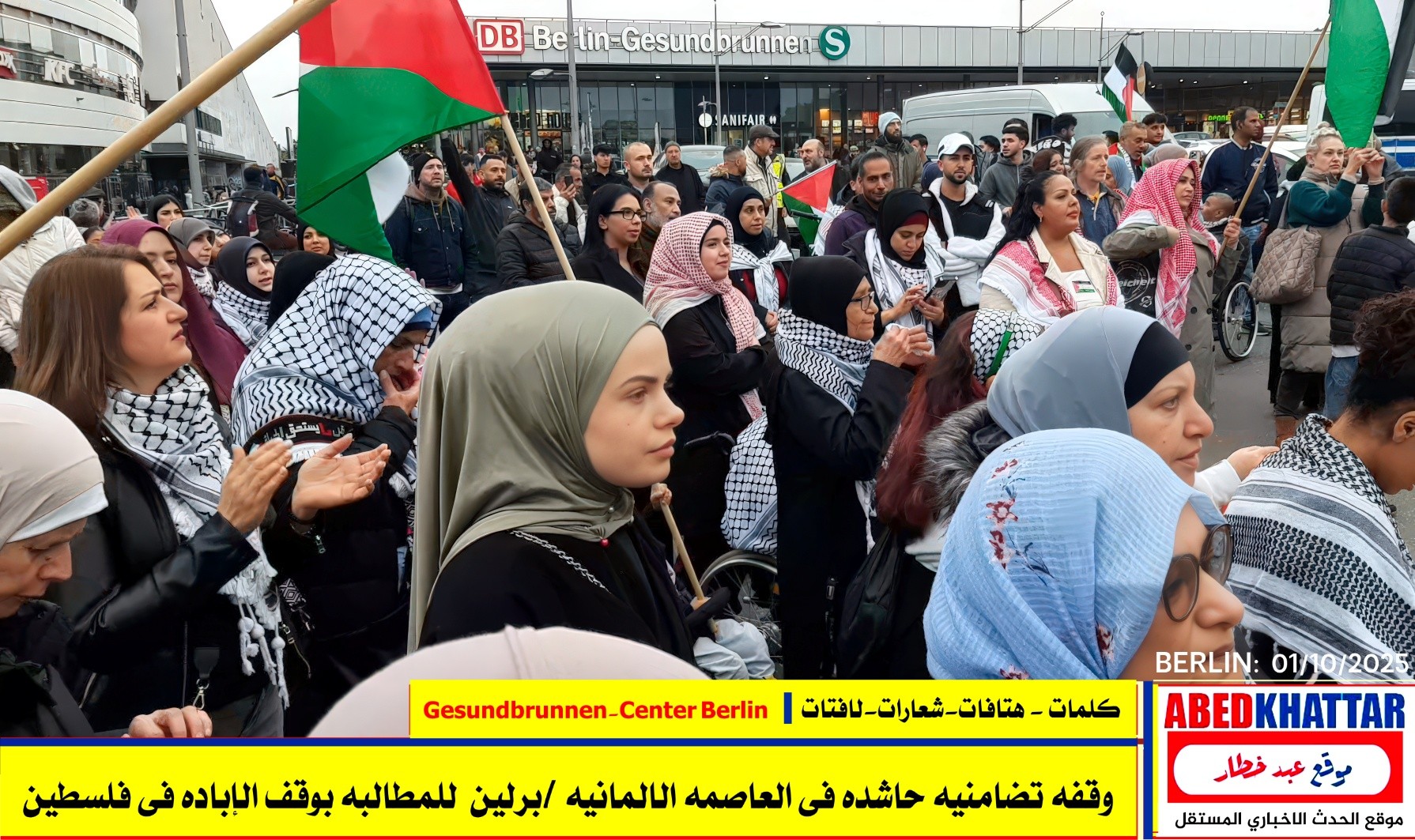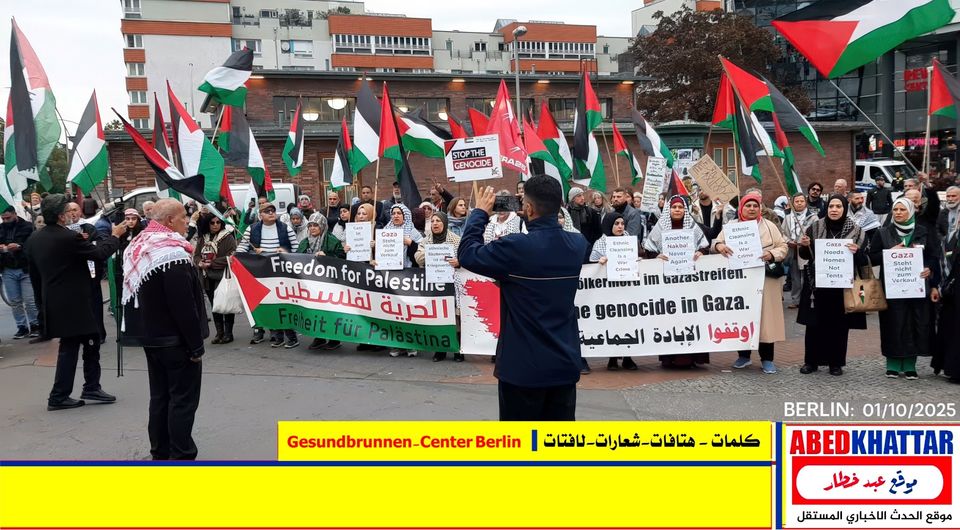 بالصور والفيديو : نظّمت اللجنة الوطنية الفلسطينية الموحدة في برلين اليوم، 1 /10/ 2025، وقفة تضامنية في ساحة Gesundbrunnen-Center Berlin