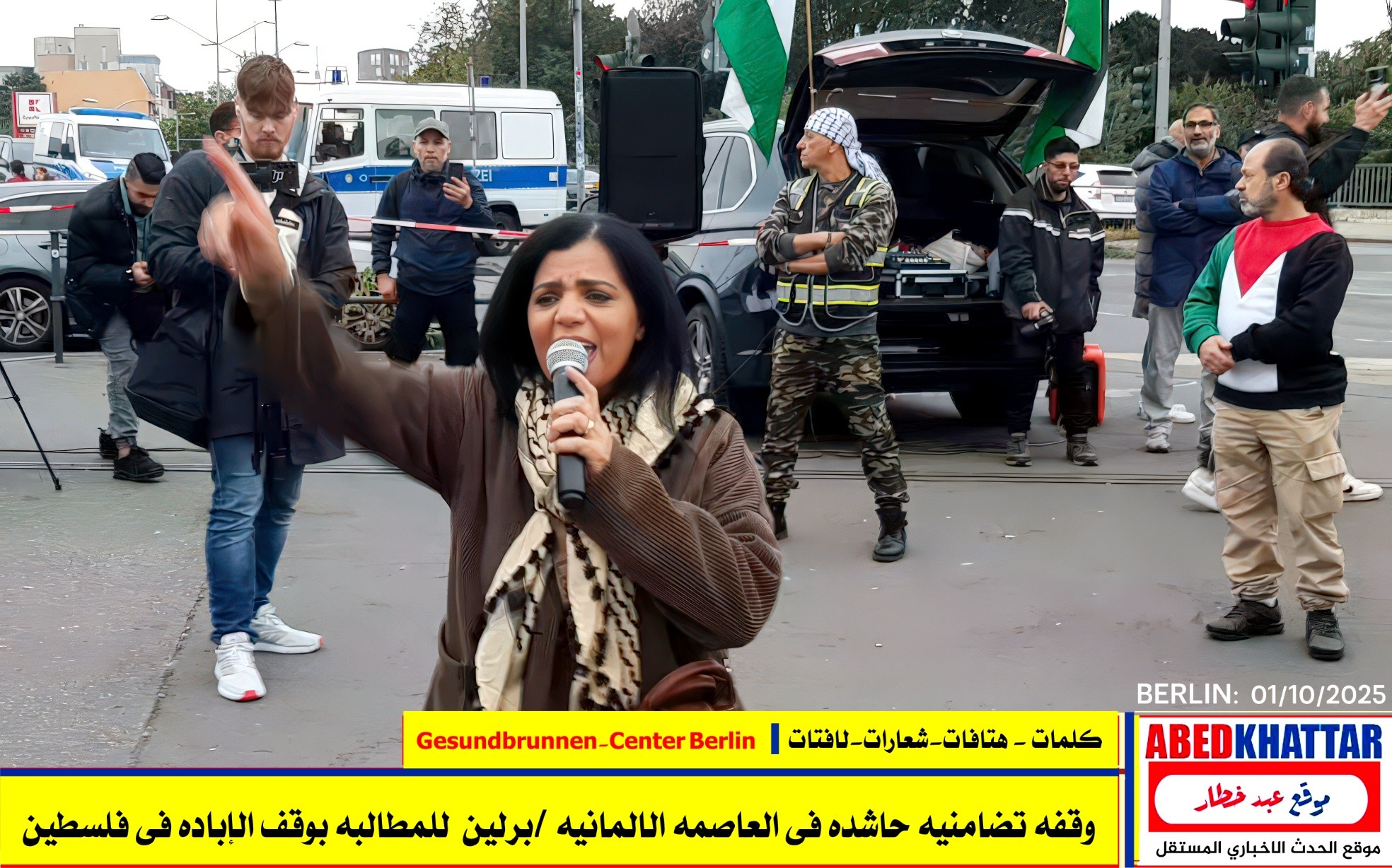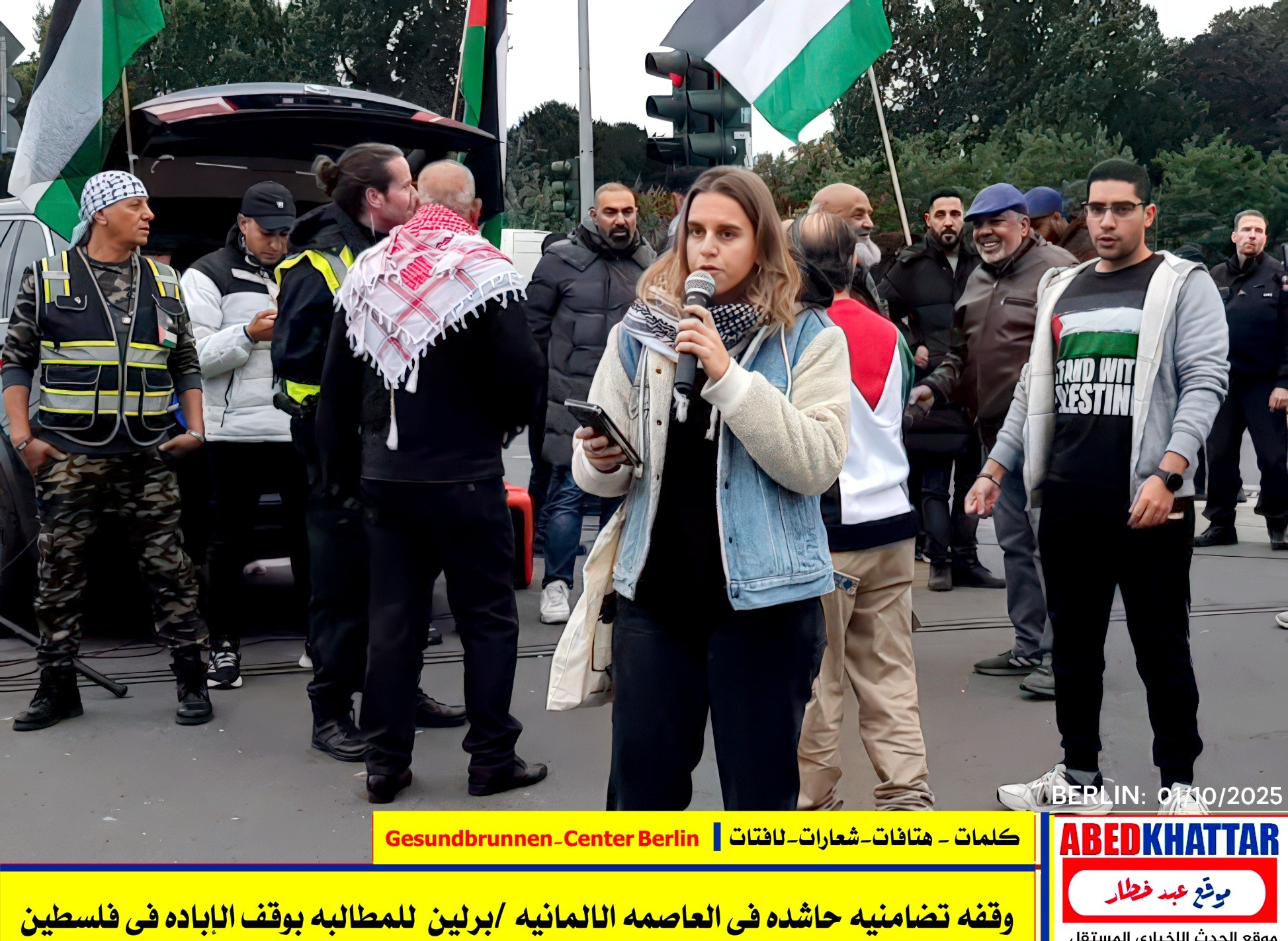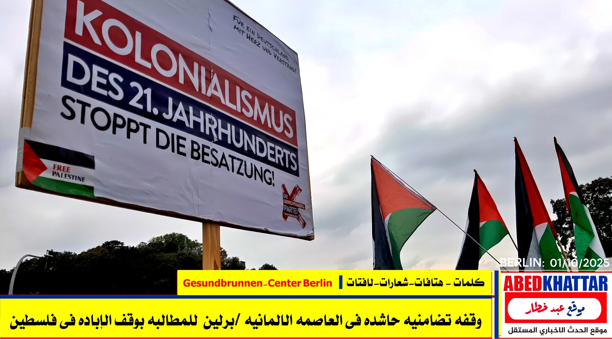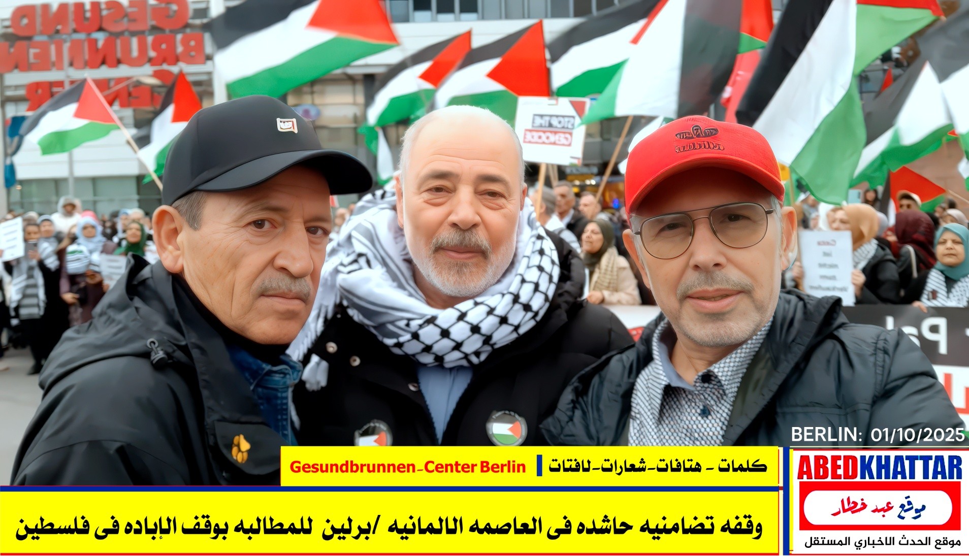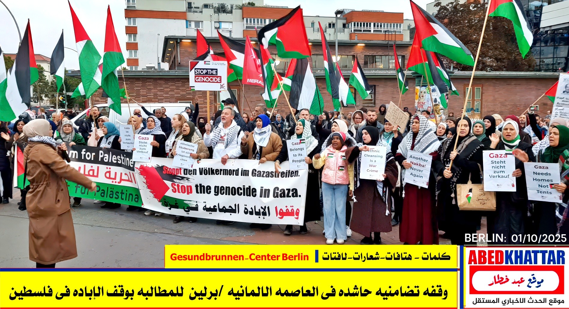 بالصور والفيديو : نظّمت اللجنة الوطنية الفلسطينية الموحدة في برلين اليوم، 1 /10/ 2025، وقفة تضامنية في ساحة Gesundbrunnen-Center Berlin
