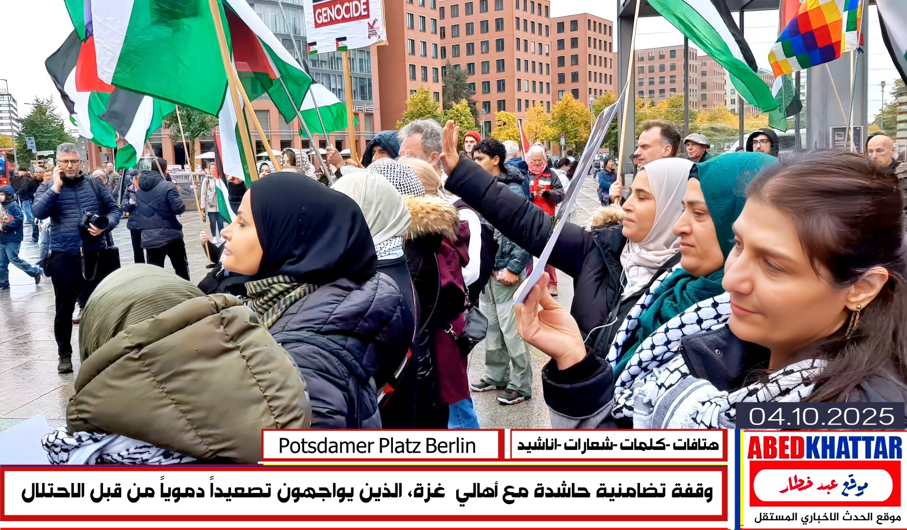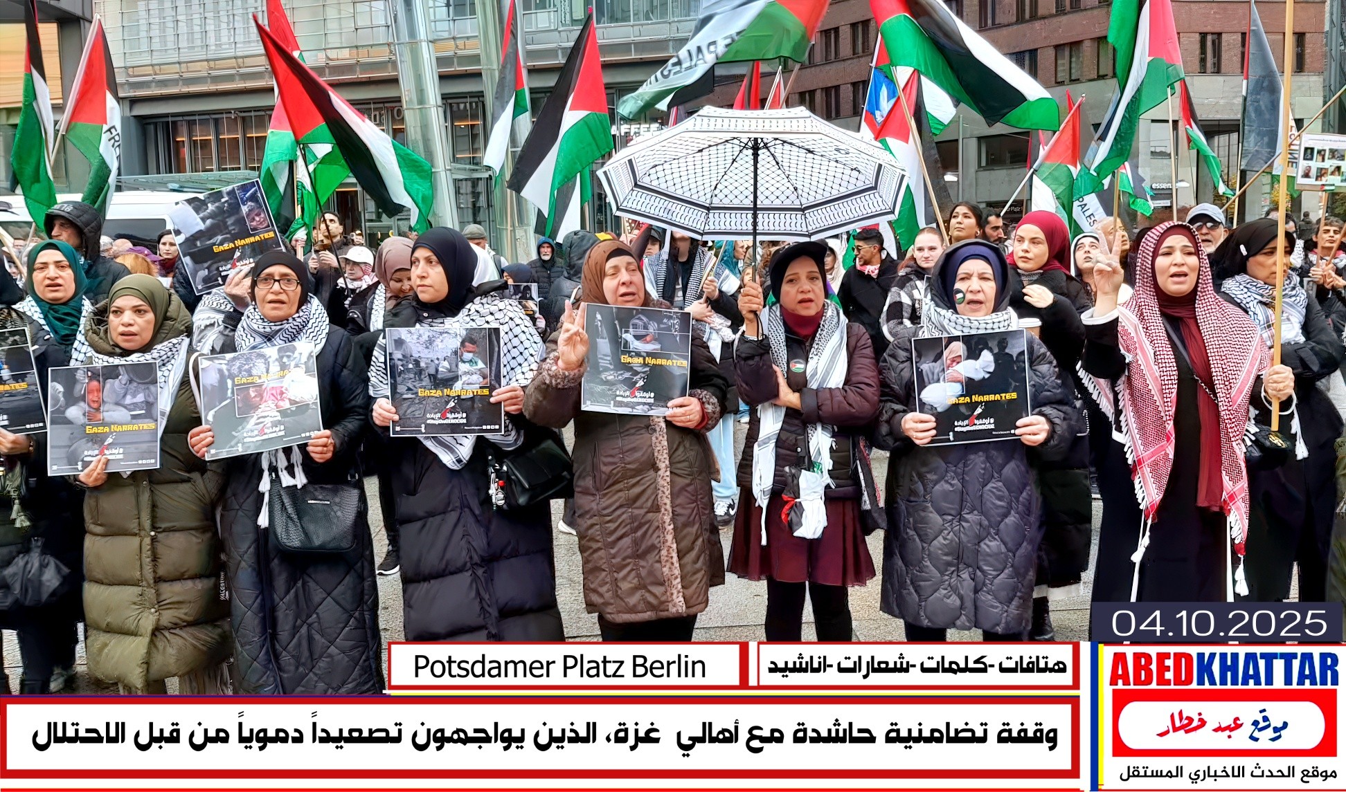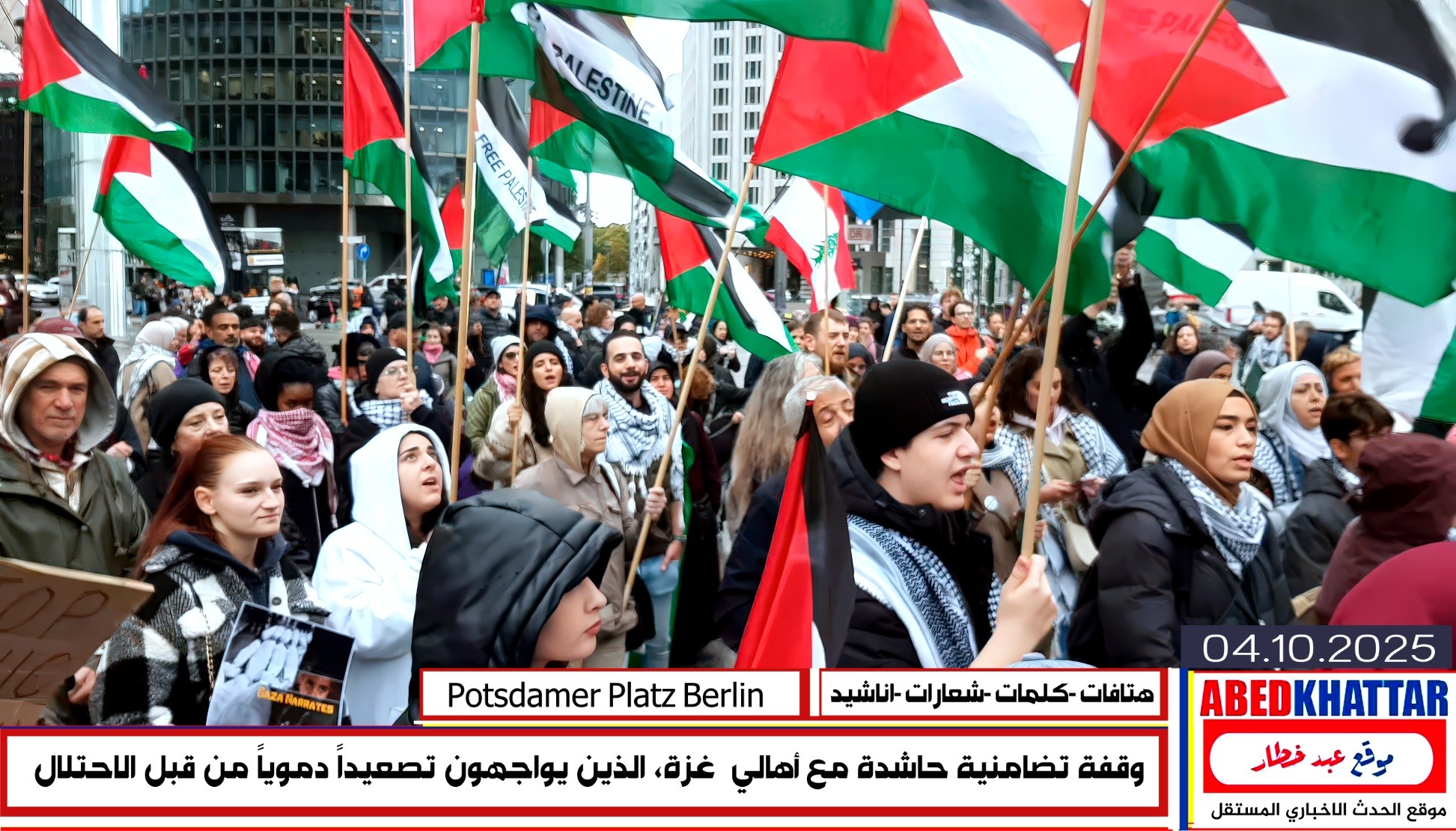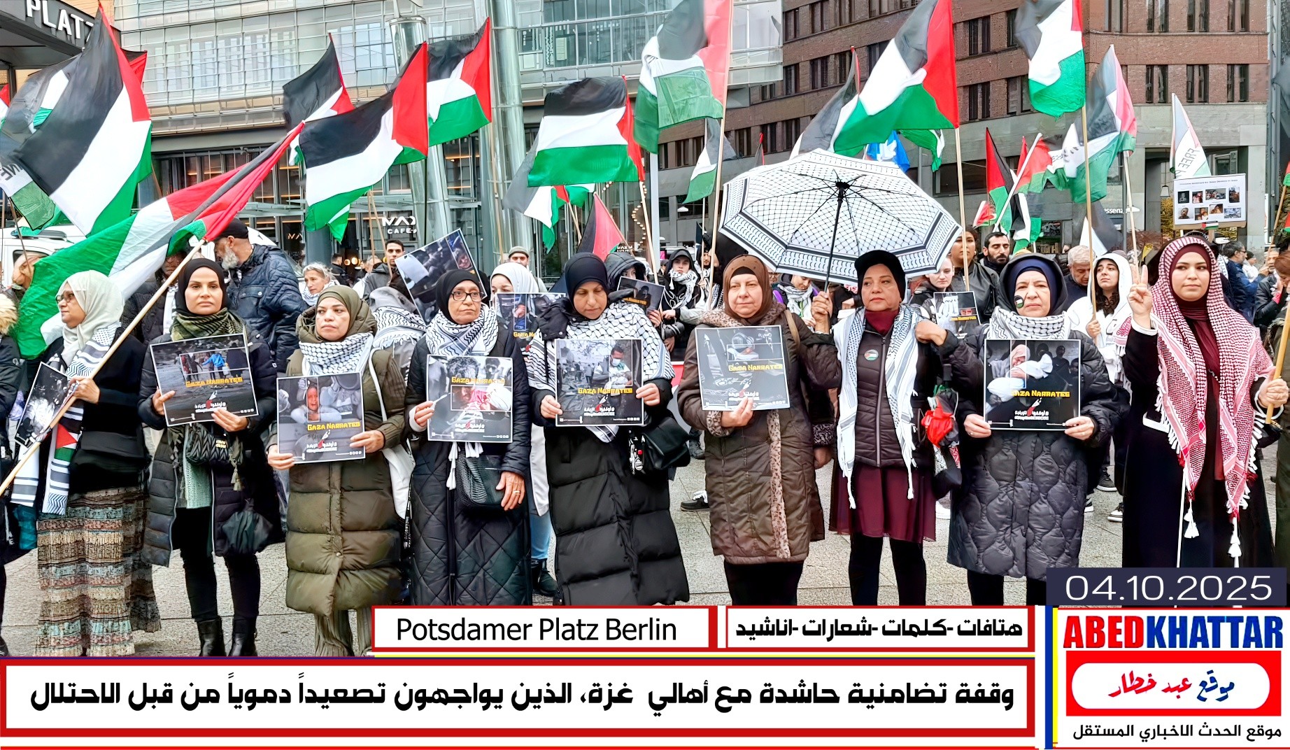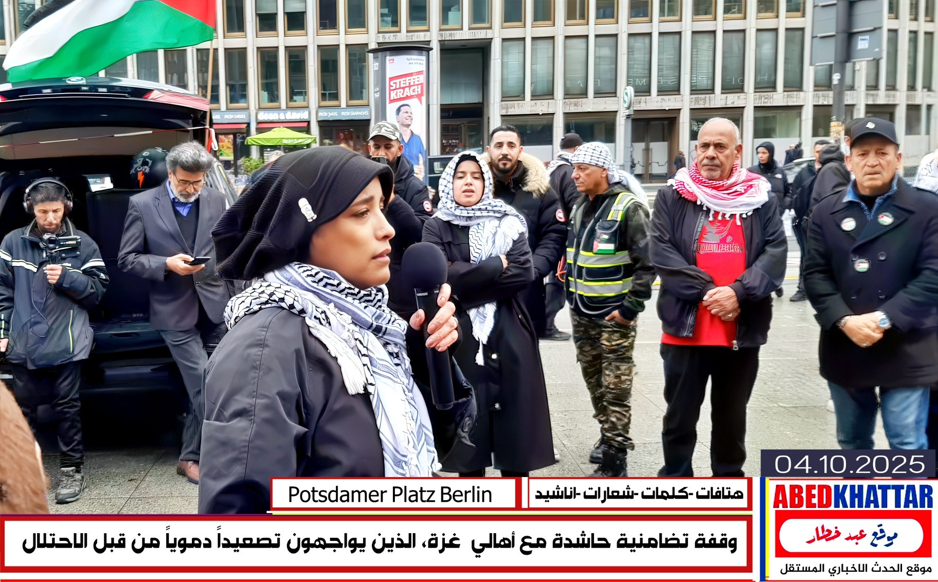 بدعوة من اللجنة الوطنية الفلسطينية الموحدة في برلين ، وقفة تضامنية حاشدة مع أهالي غزة، الذين يواجهون تصعيداً دموياً من قبل الاحتلال الصهيوني في ساحة البوسدامربلاتس