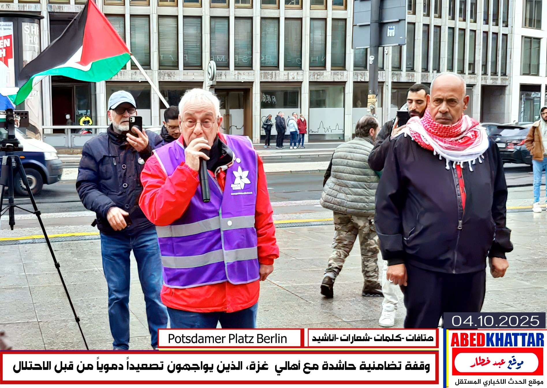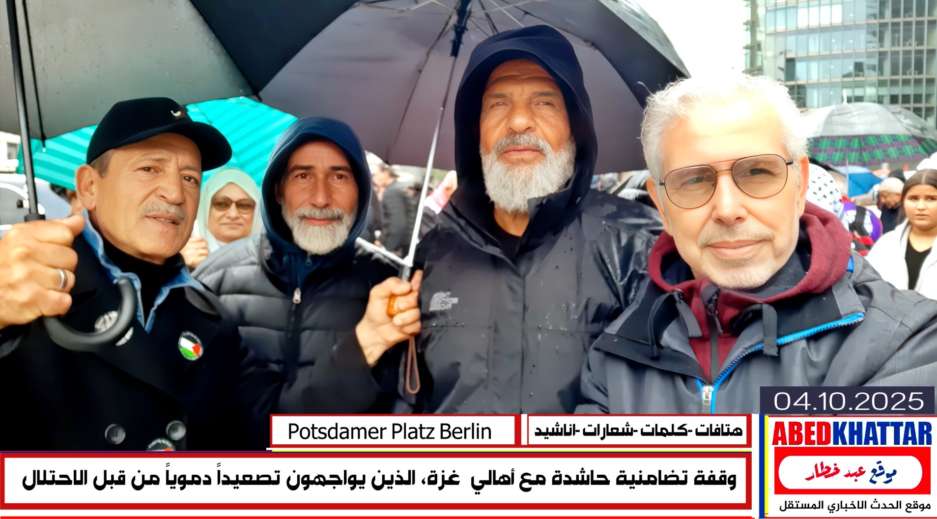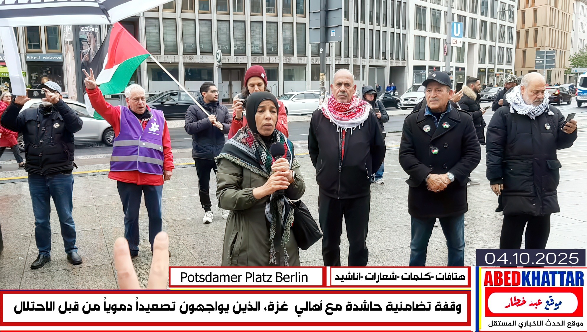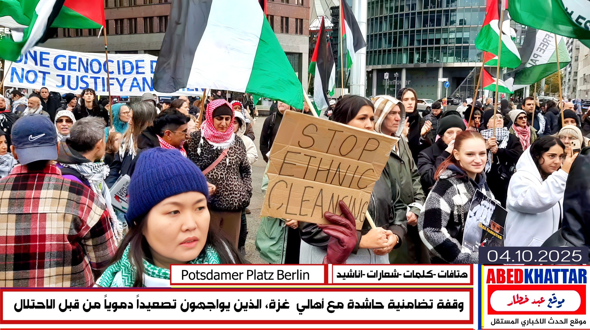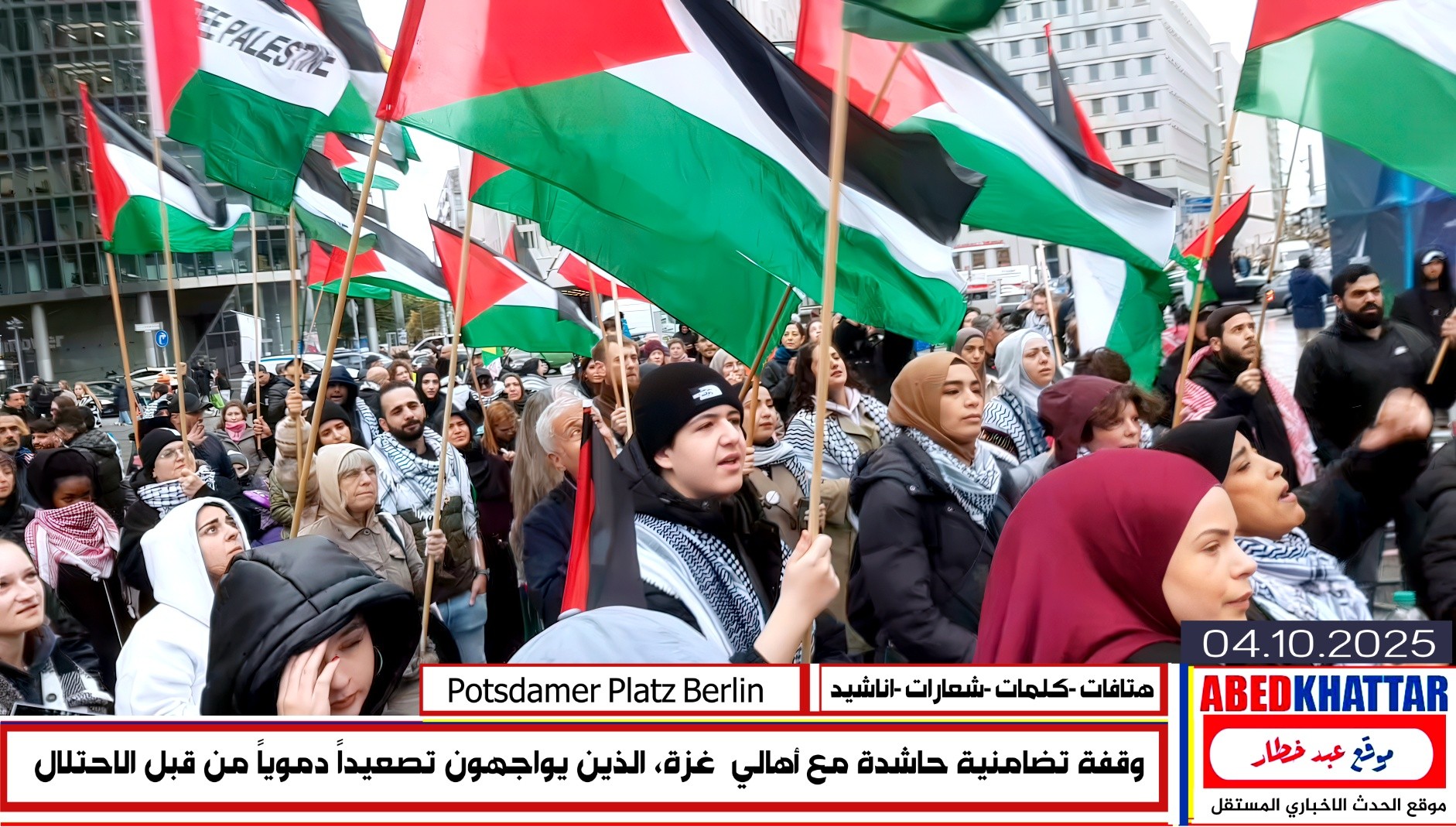 بدعوة من اللجنة الوطنية الفلسطينية الموحدة في برلين ، وقفة تضامنية حاشدة مع أهالي غزة، الذين يواجهون تصعيداً دموياً من قبل الاحتلال الصهيوني في ساحة البوسدامربلاتس