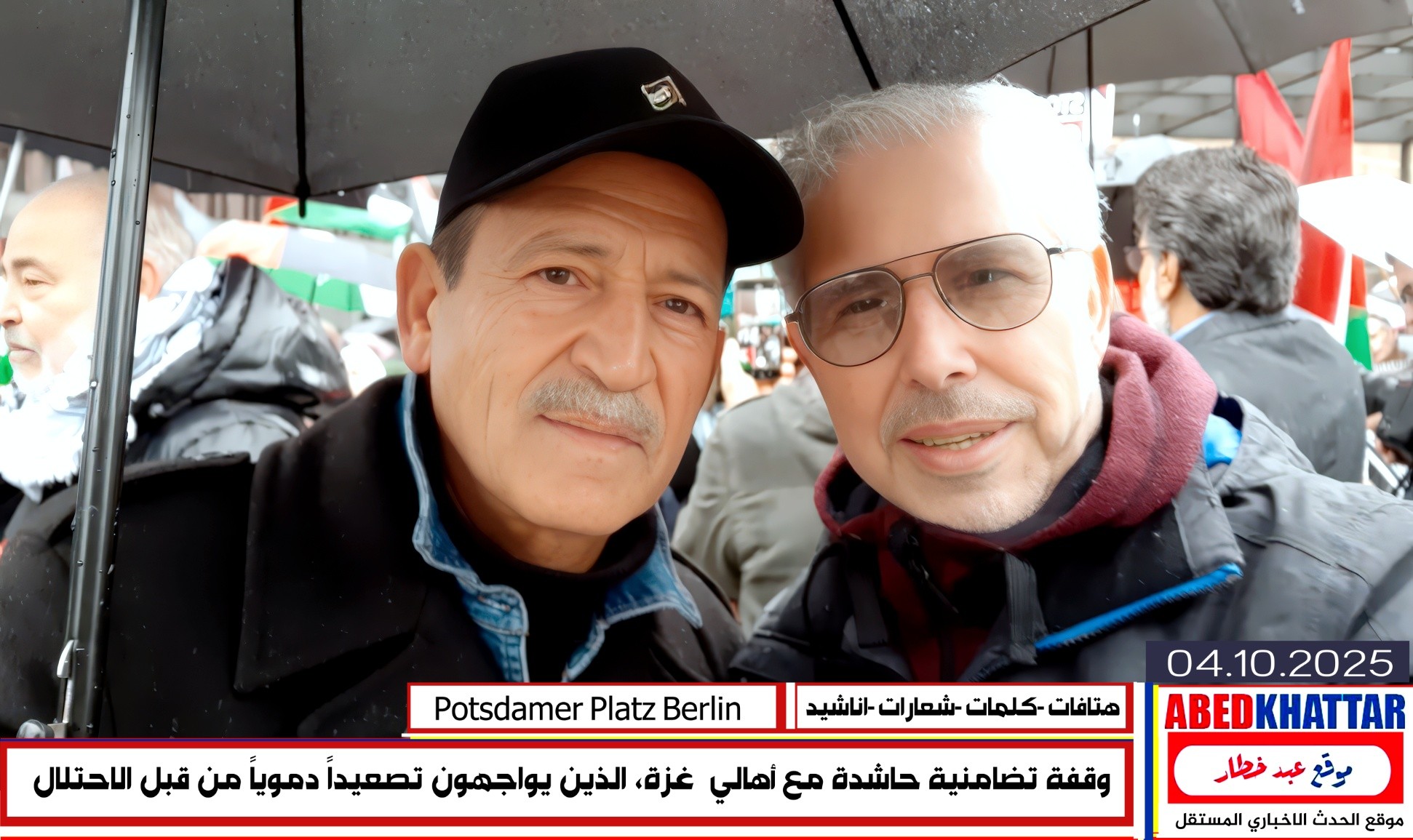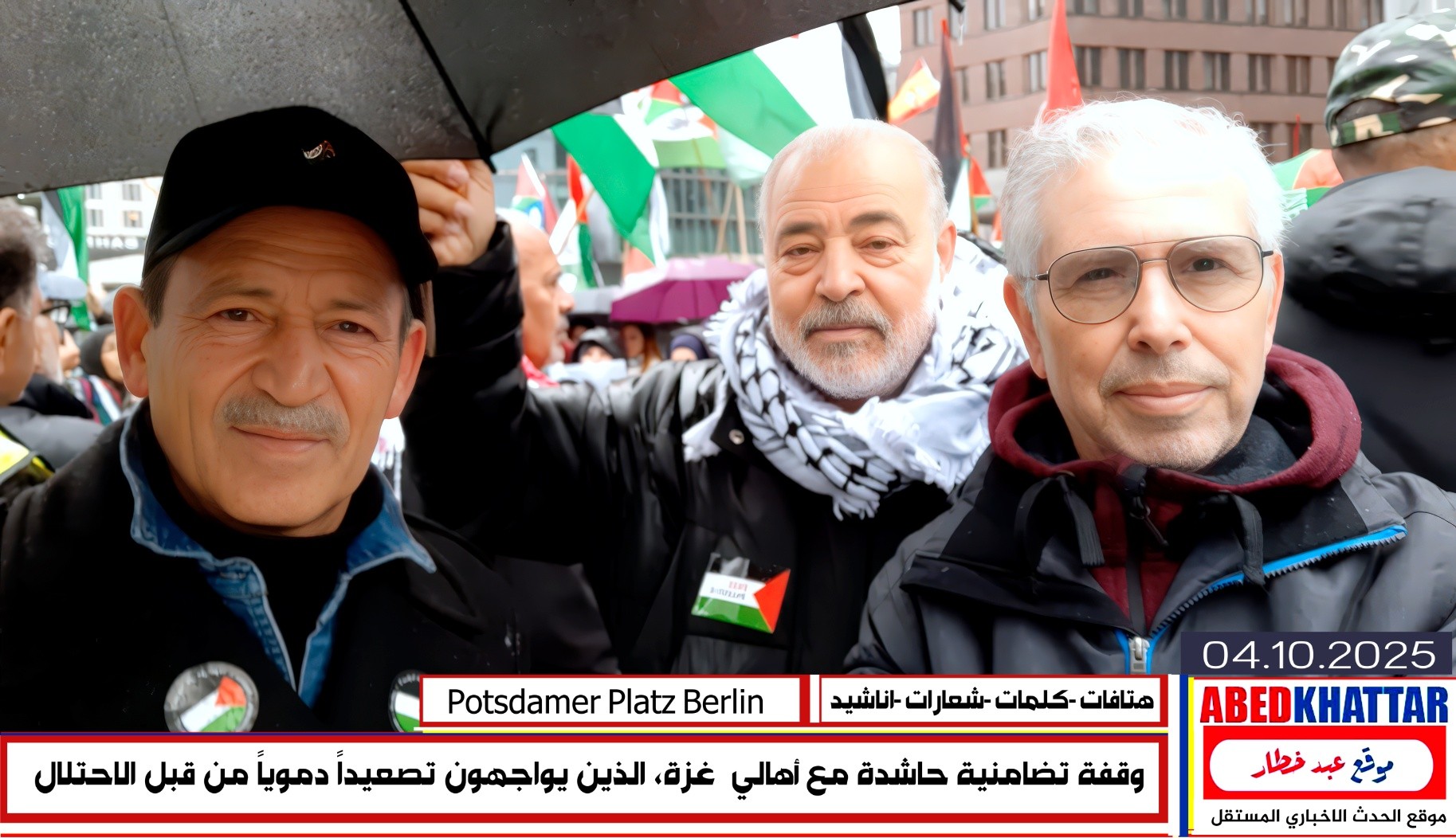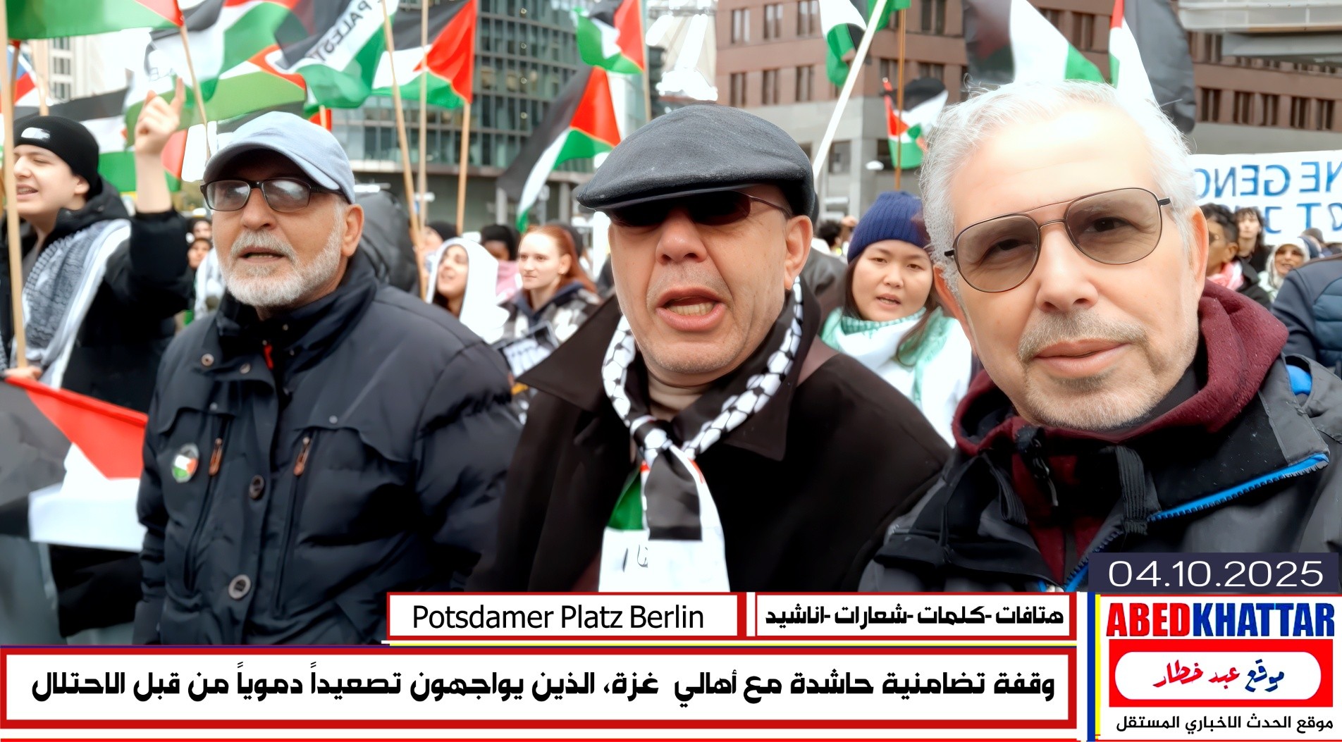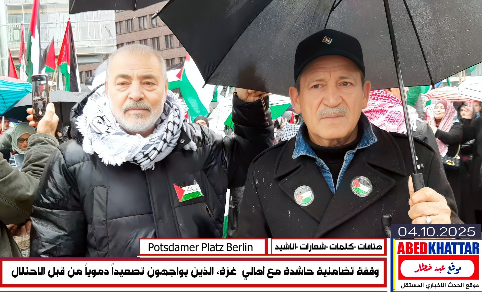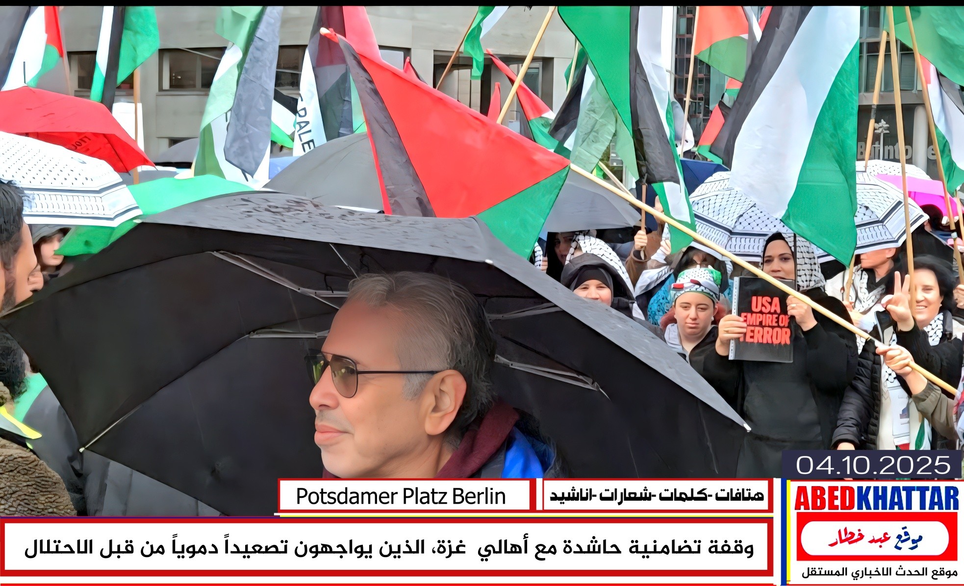 بدعوة من اللجنة الوطنية الفلسطينية الموحدة في برلين ، وقفة تضامنية حاشدة مع أهالي غزة، الذين يواجهون تصعيداً دموياً من قبل الاحتلال الصهيوني في ساحة البوسدامربلاتس