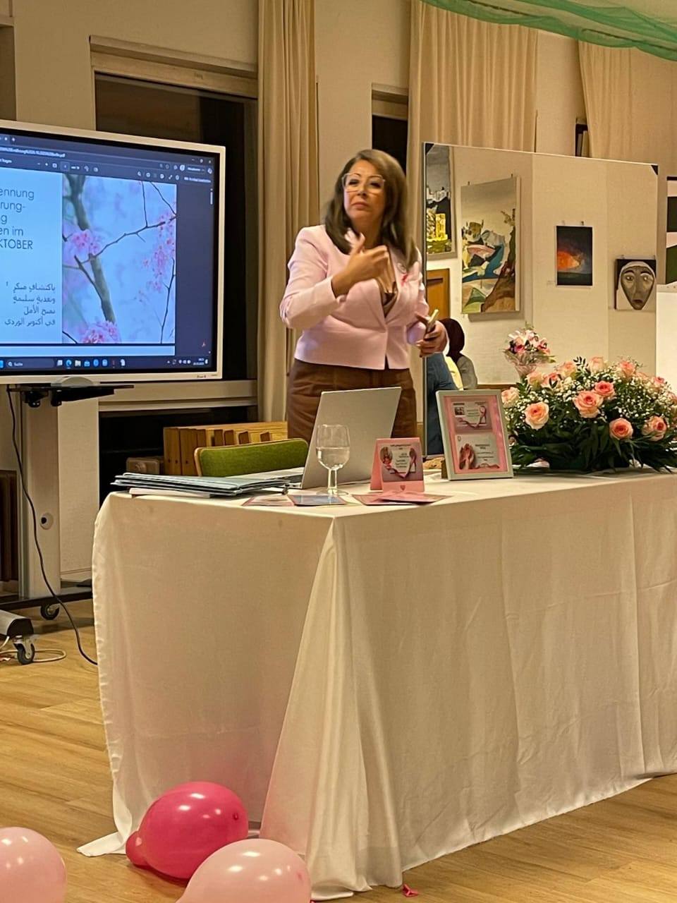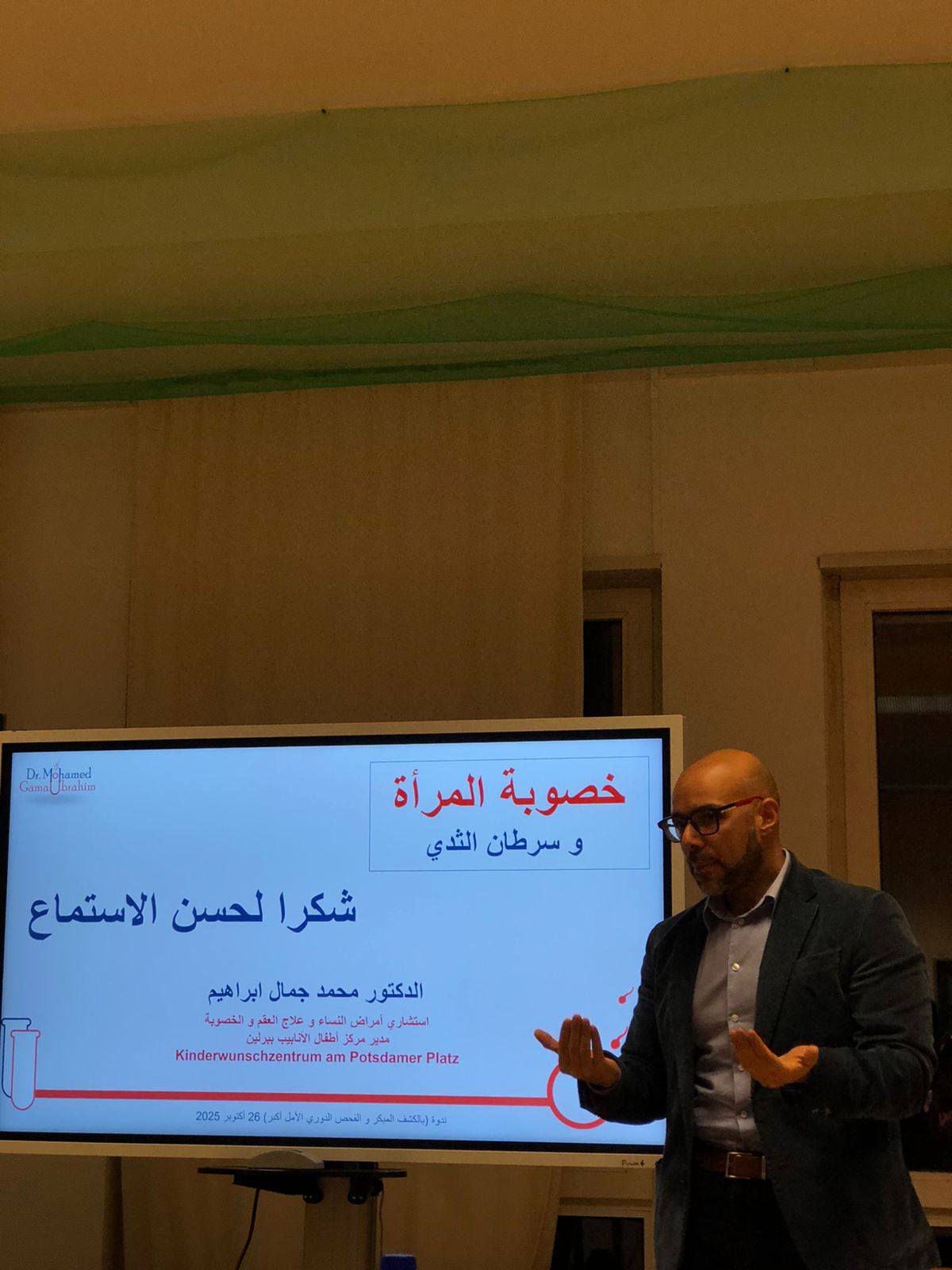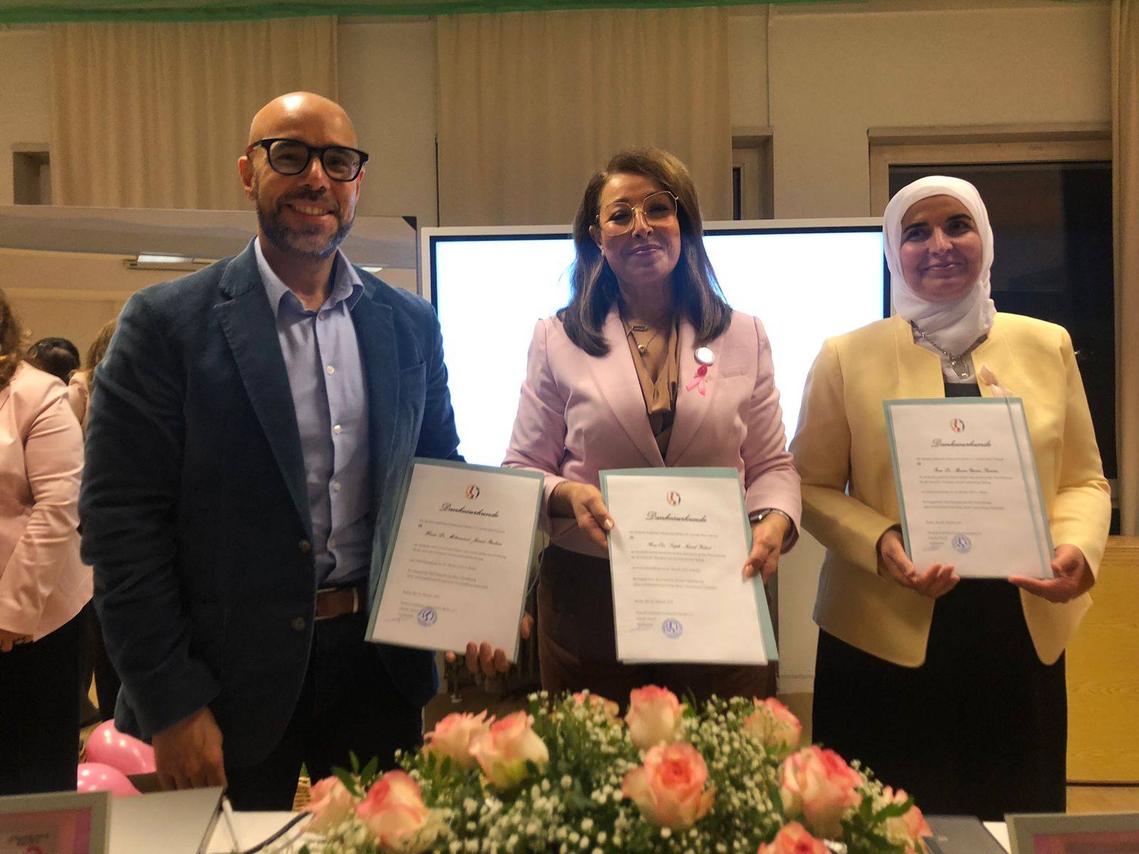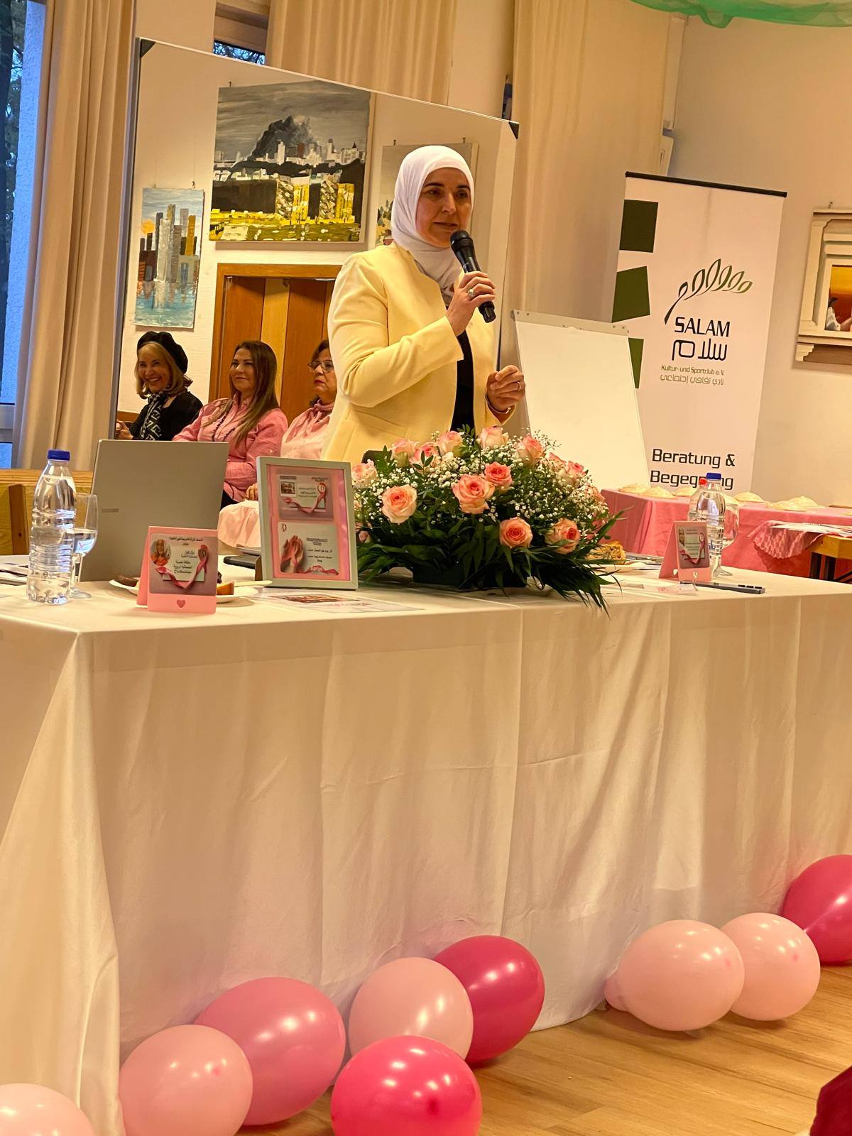 نظم اتحاد المرأة العربية في برلين بمناسبة الاحتفال باليوم العالمي بأكتوبر الوردي للحماية من سرطان الثدي باستضافة الدكتورة منى ياسين قصاب/ استشارة أمراض النساء والولادة وجراحتهما، والدكتور/ محمد جمال ابراهيم – استشاري أمراض العقم والمدير الطبي لمركز أطفال الأنابيب، والسيدة / نوال كلول – خبيرة بالتغذية السليمة.