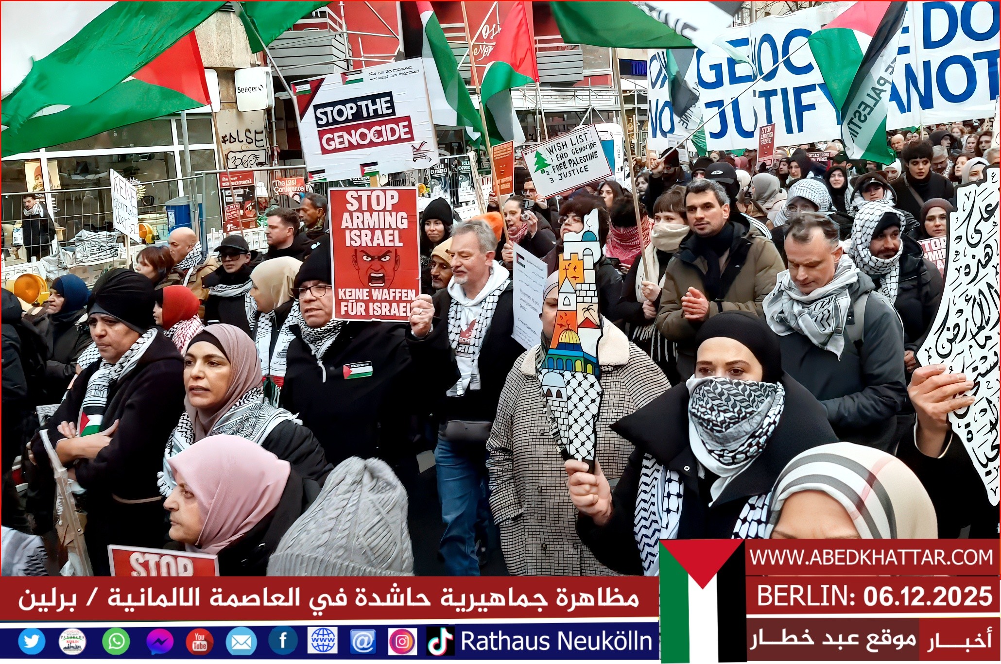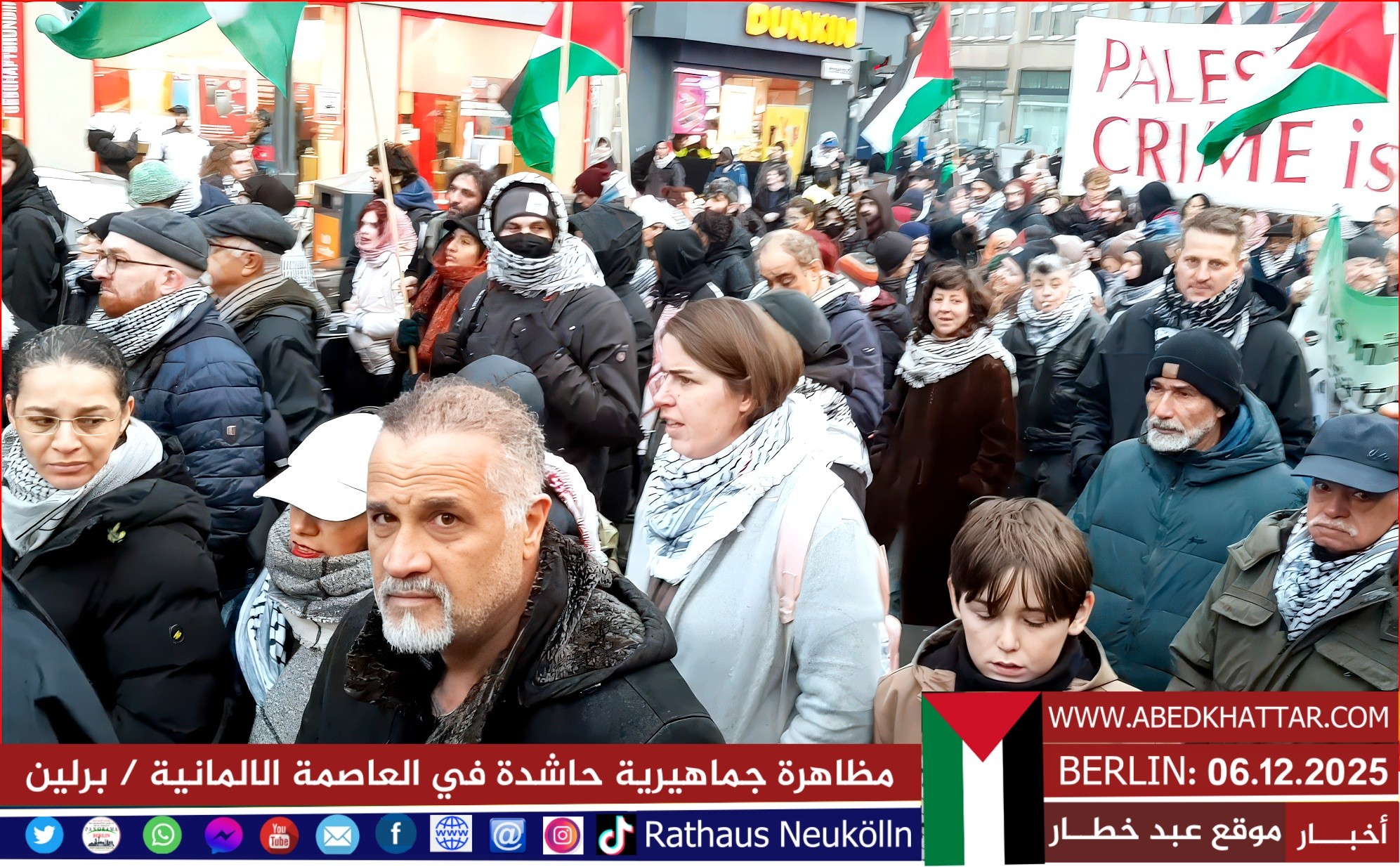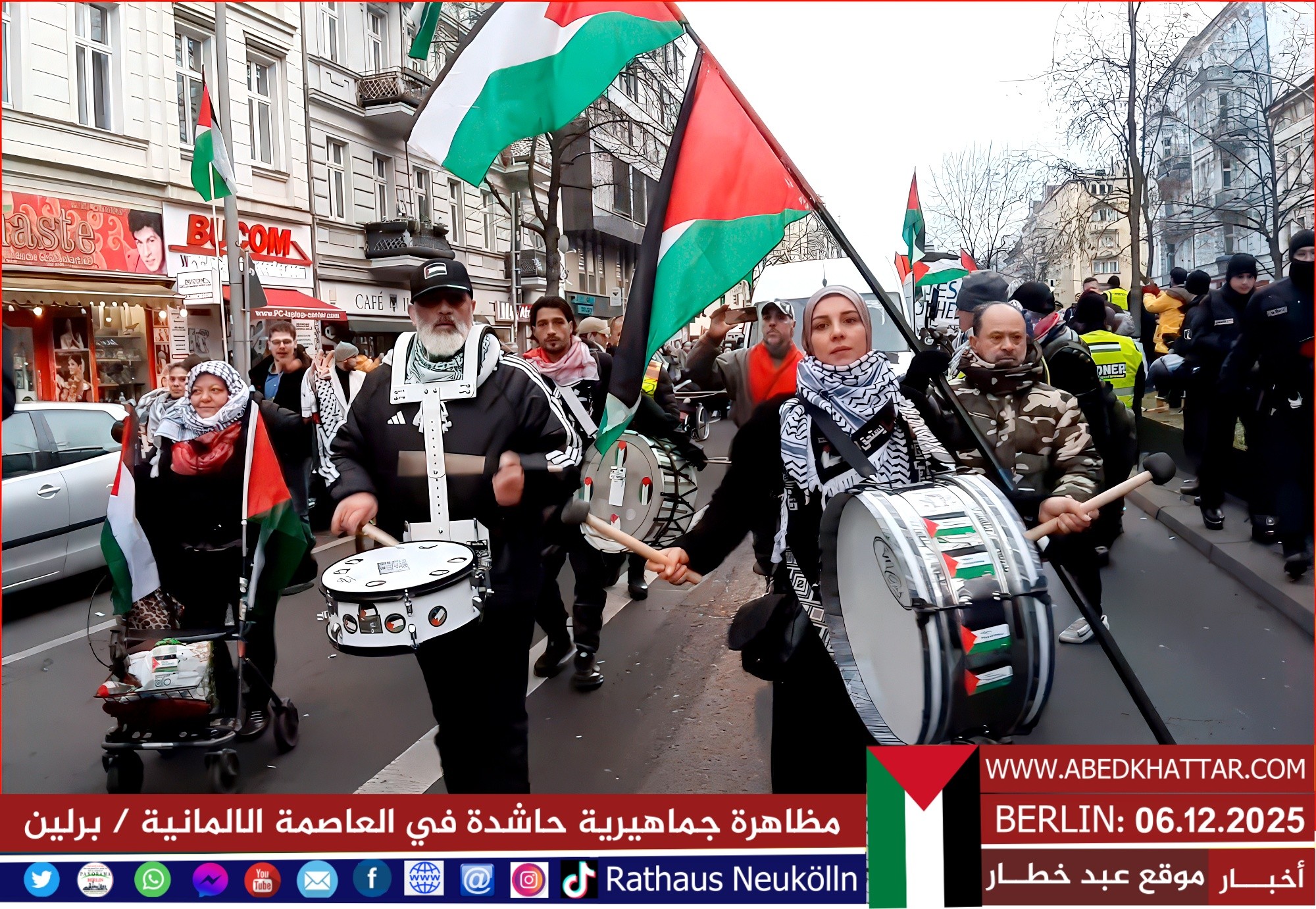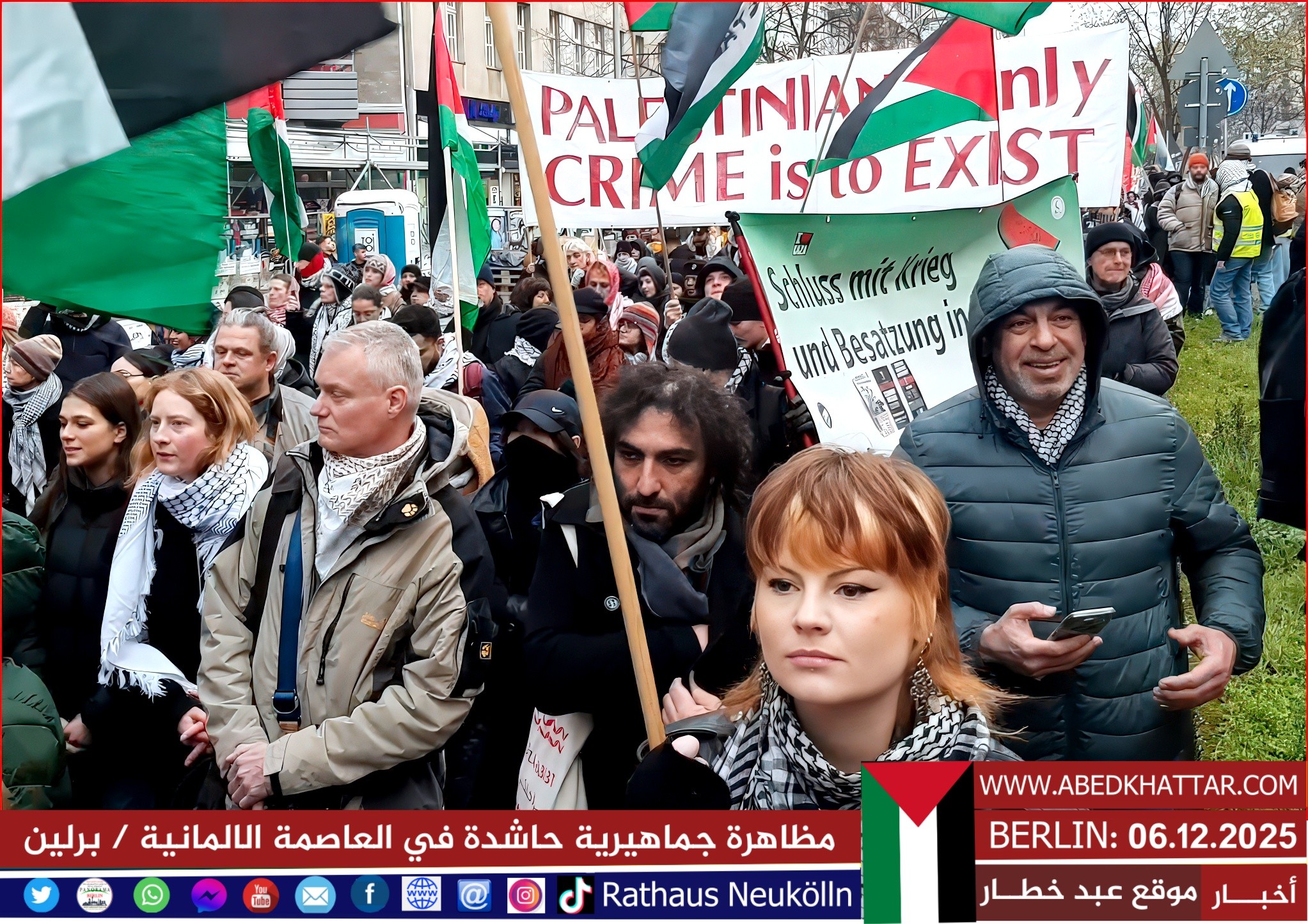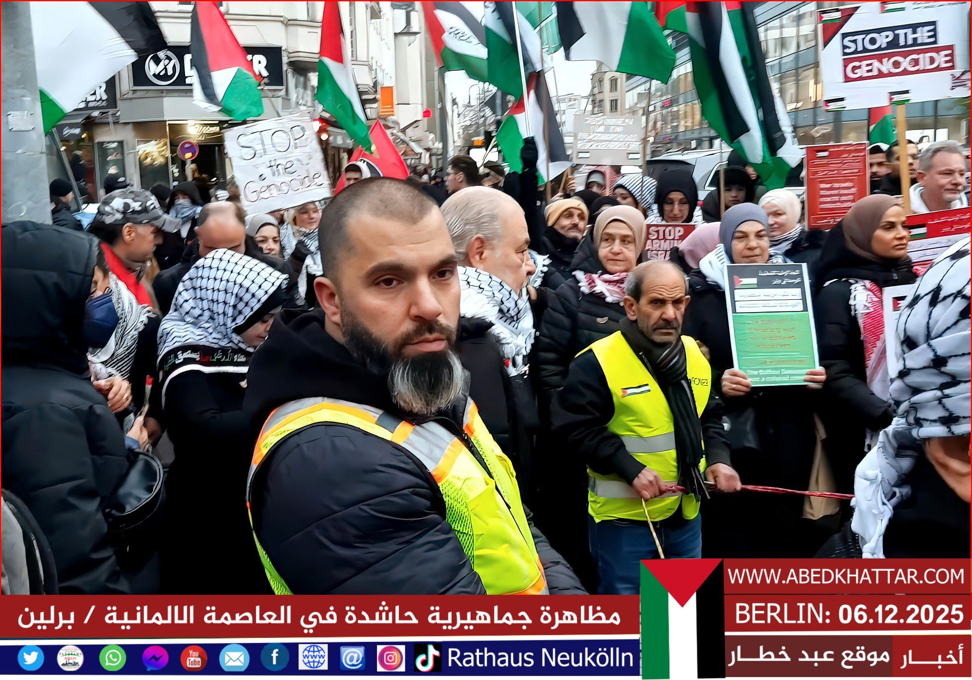 بدعوة من اللجنة الوطنية الفلسطينية الموحدة وبمشاركة مجموعات ألمانية ونشطاء فلسطينيين وألمان، خرجت مظاهرة جماهيرية شارك فيها المئات في قلب العاصمة برلين، لتجديد التضامن مع الشعب الفلسطيني والتنديد بجرائم الاحتلال الإسرائيلي. ارتفعت الأعلام الفلسطينية، وتعالت الهتافات المطالبة بالحرية والعدالة، وسط حضور واسع من أبناء الجالية العربية والمتضامنين الألمان والدوليين.