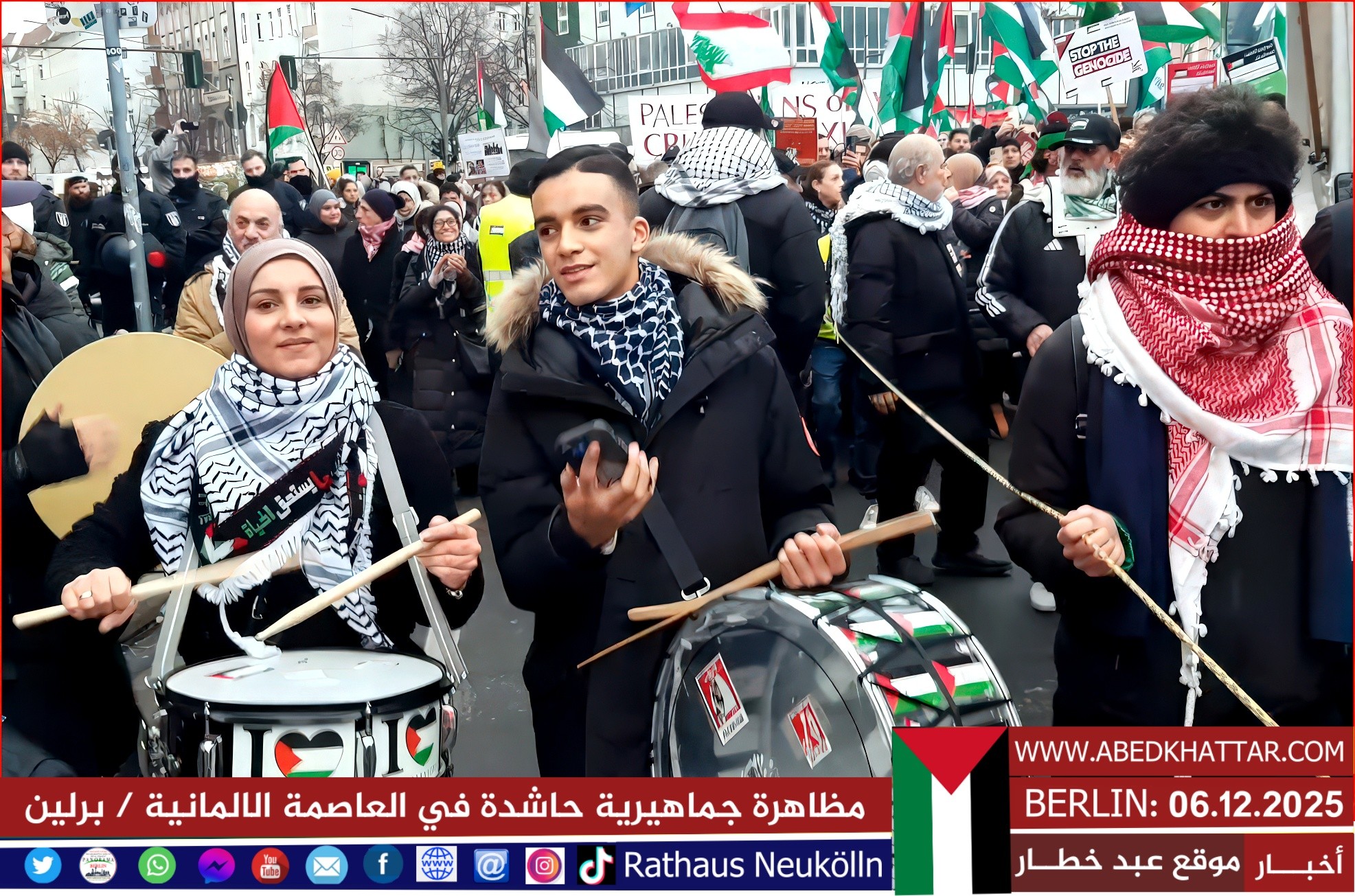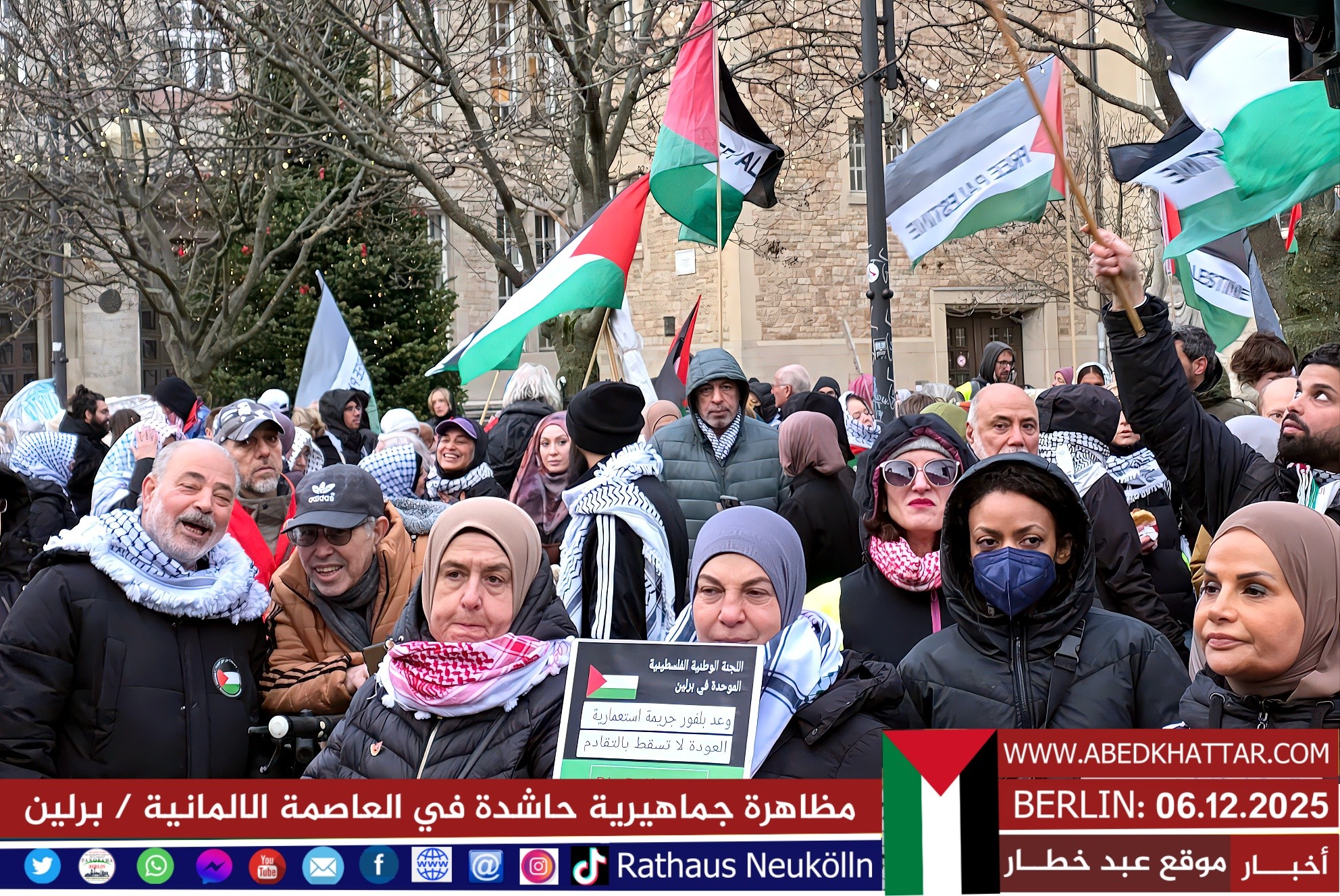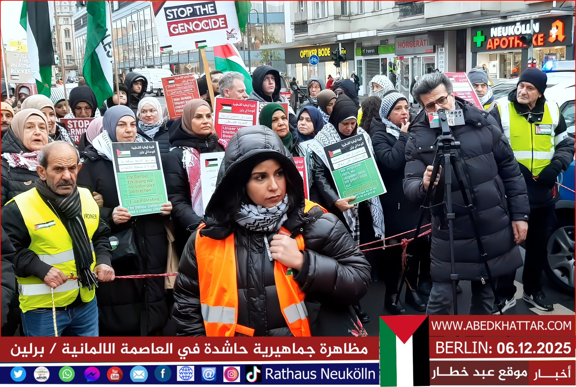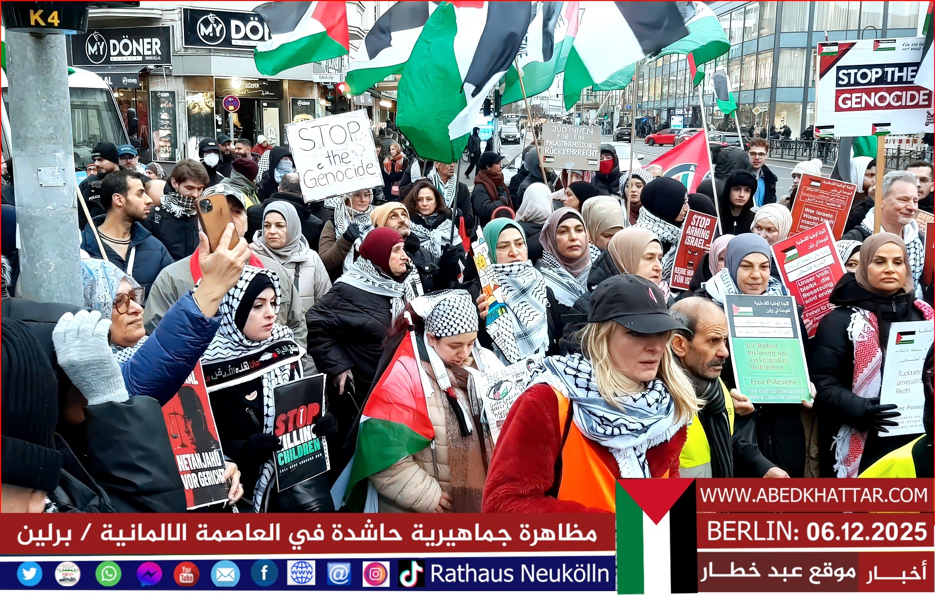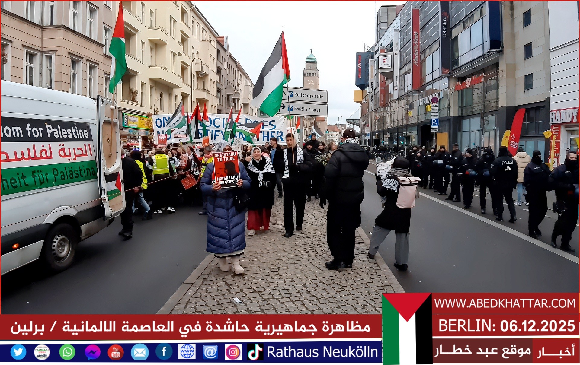 بدعوة من اللجنة الوطنية الفلسطينية الموحدة وبمشاركة مجموعات ألمانية ونشطاء فلسطينيين وألمان، خرجت مظاهرة جماهيرية شارك فيها المئات في قلب العاصمة برلين، لتجديد التضامن مع الشعب الفلسطيني والتنديد بجرائم الاحتلال الإسرائيلي. ارتفعت الأعلام الفلسطينية، وتعالت الهتافات المطالبة بالحرية والعدالة، وسط حضور واسع من أبناء الجالية العربية والمتضامنين الألمان والدوليين.