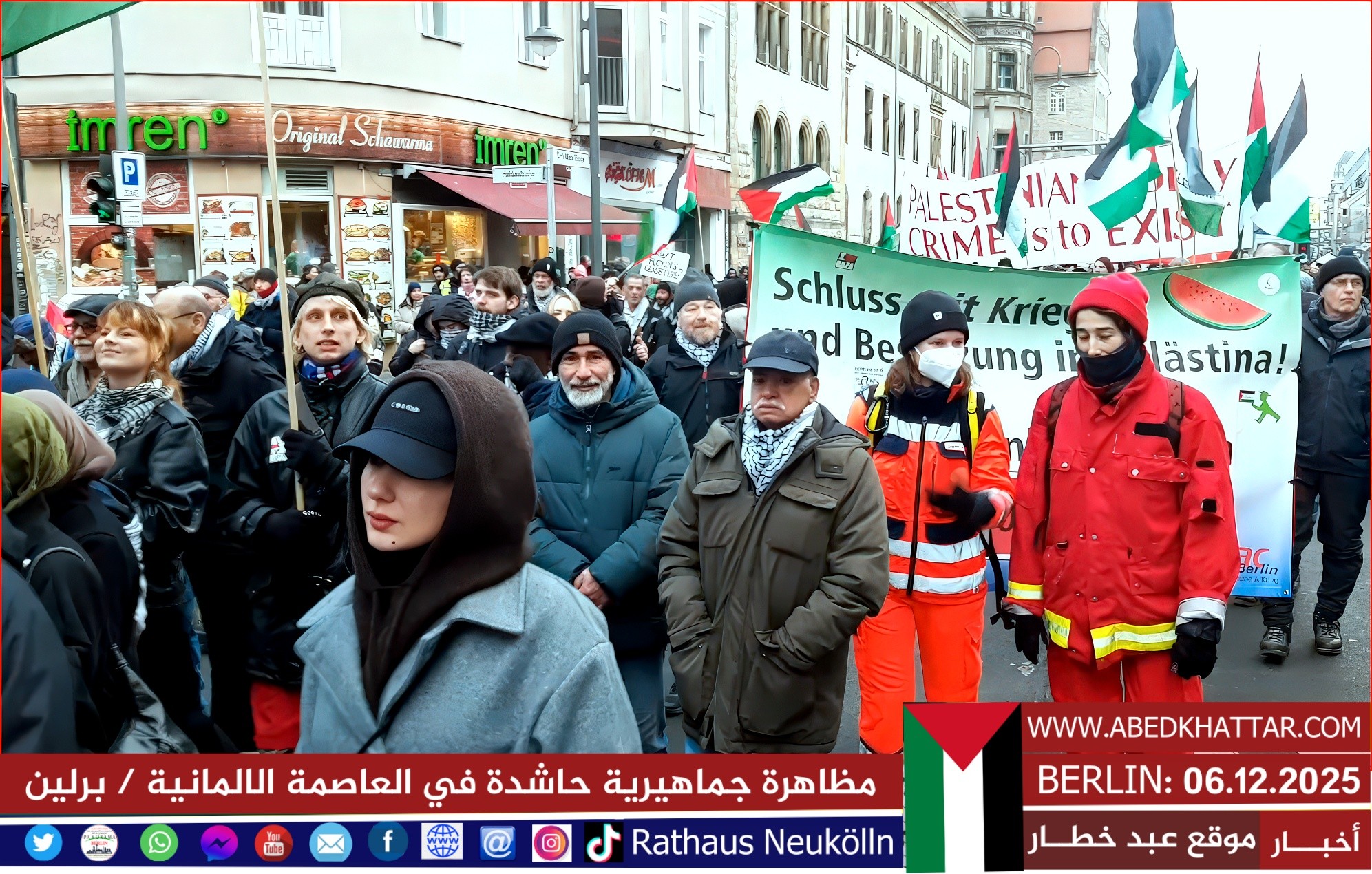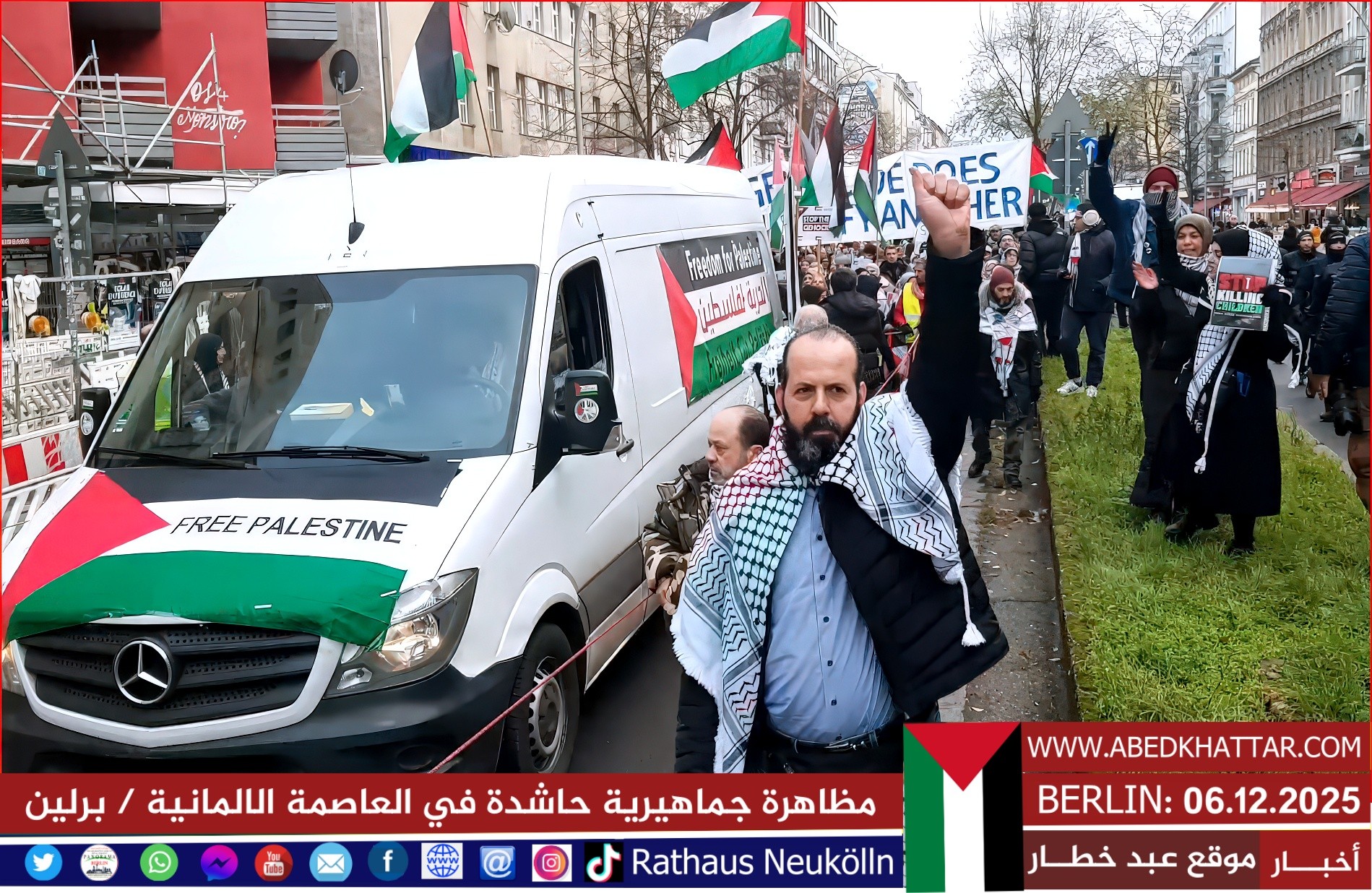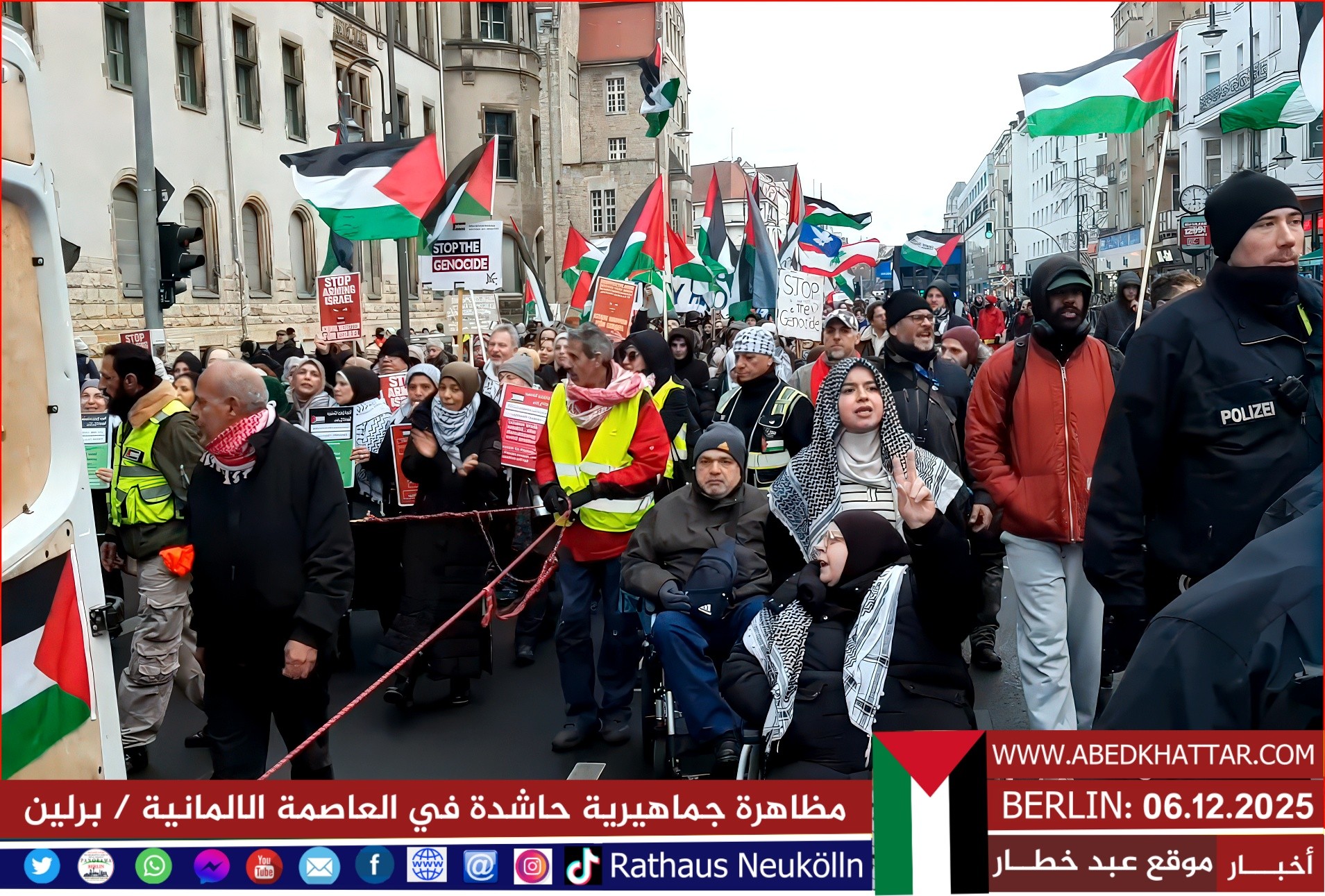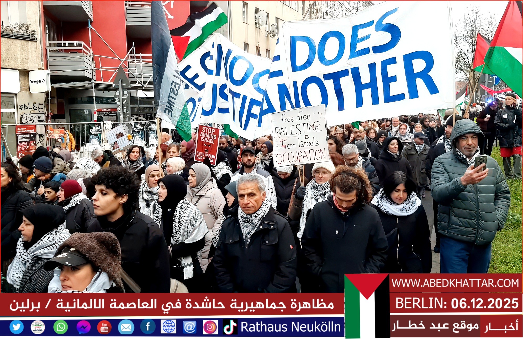 بدعوة من اللجنة الوطنية الفلسطينية الموحدة وبمشاركة مجموعات ألمانية ونشطاء فلسطينيين وألمان، خرجت مظاهرة جماهيرية شارك فيها المئات في قلب العاصمة برلين، لتجديد التضامن مع الشعب الفلسطيني والتنديد بجرائم الاحتلال الإسرائيلي. ارتفعت الأعلام الفلسطينية، وتعالت الهتافات المطالبة بالحرية والعدالة، وسط حضور واسع من أبناء الجالية العربية والمتضامنين الألمان والدوليين.