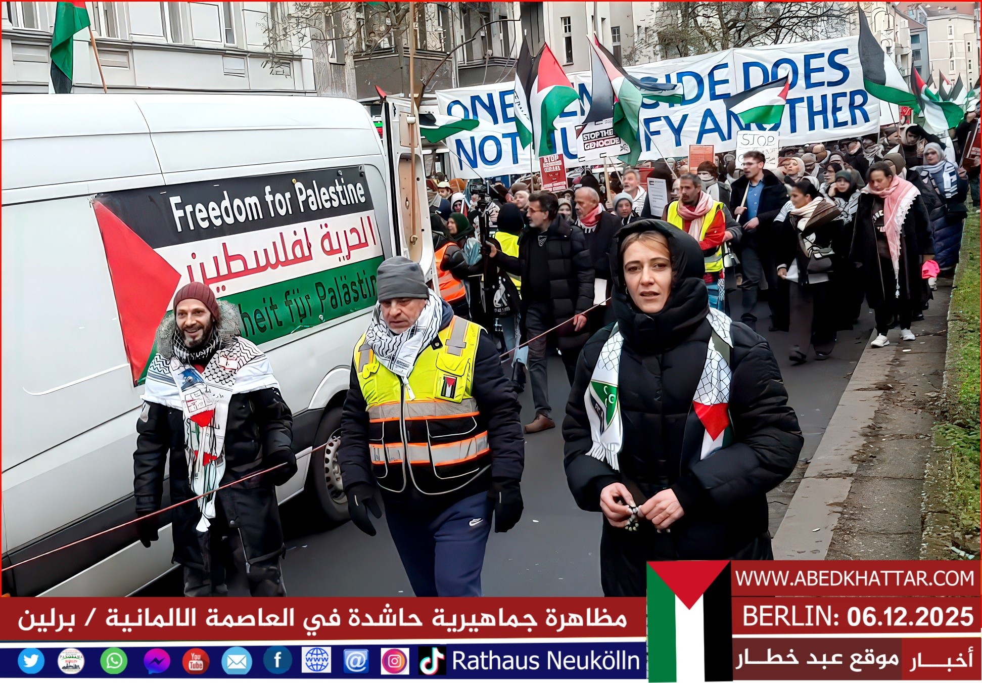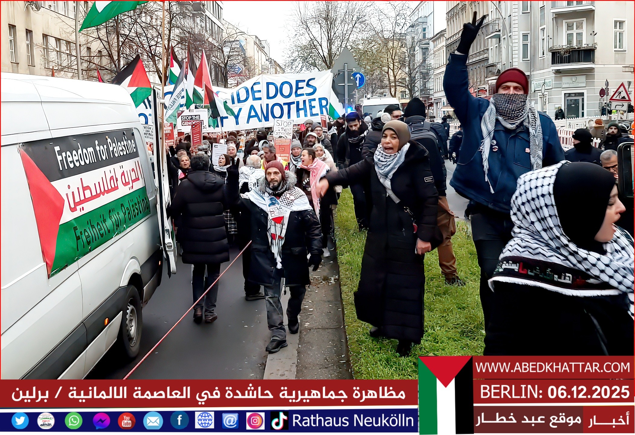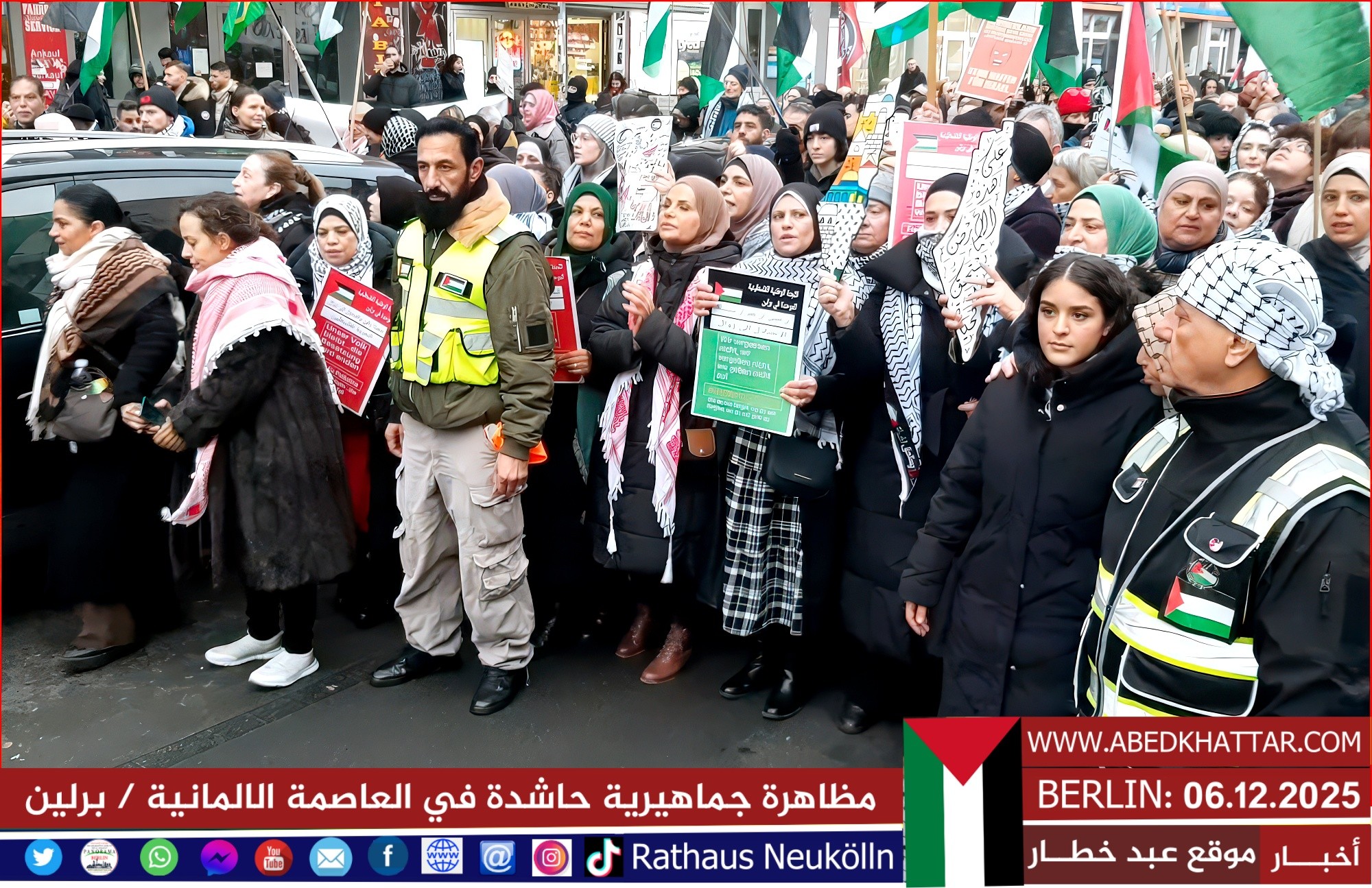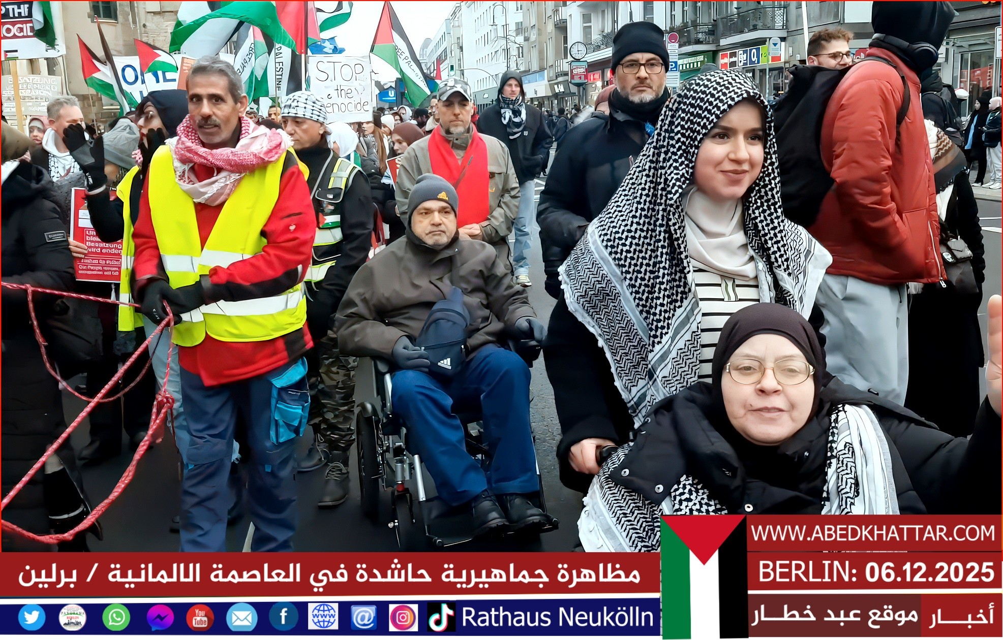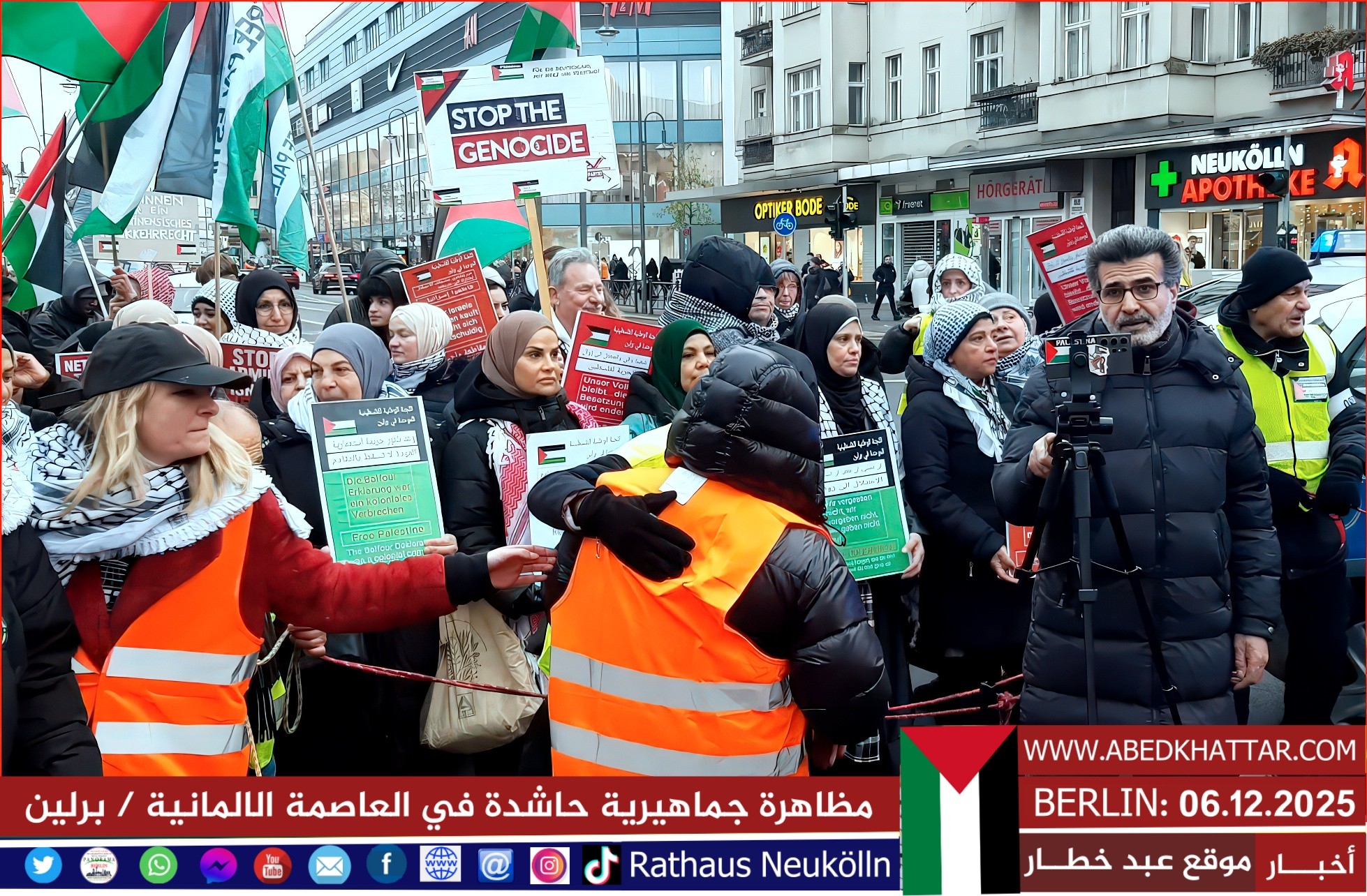 بدعوة من اللجنة الوطنية الفلسطينية الموحدة وبمشاركة مجموعات ألمانية ونشطاء فلسطينيين وألمان، خرجت مظاهرة جماهيرية شارك فيها المئات في قلب العاصمة برلين، لتجديد التضامن مع الشعب الفلسطيني والتنديد بجرائم الاحتلال الإسرائيلي. ارتفعت الأعلام الفلسطينية، وتعالت الهتافات المطالبة بالحرية والعدالة، وسط حضور واسع من أبناء الجالية العربية والمتضامنين الألمان والدوليين.