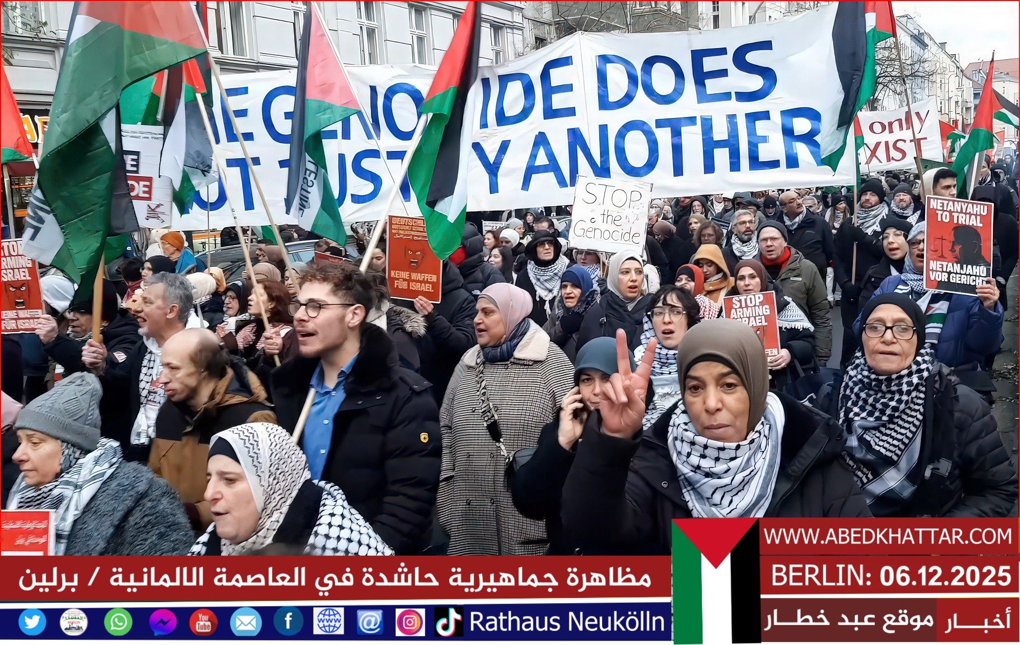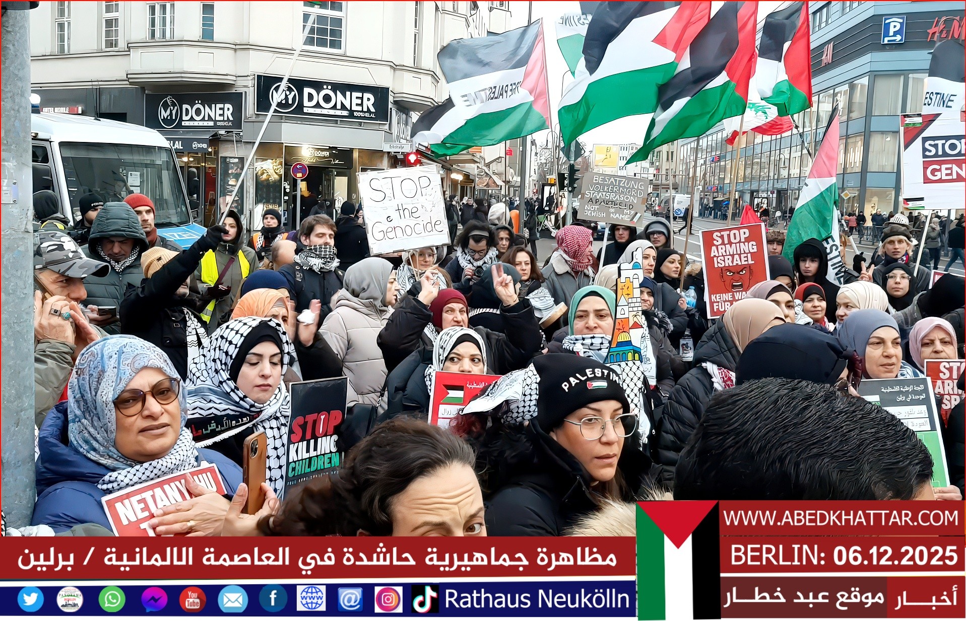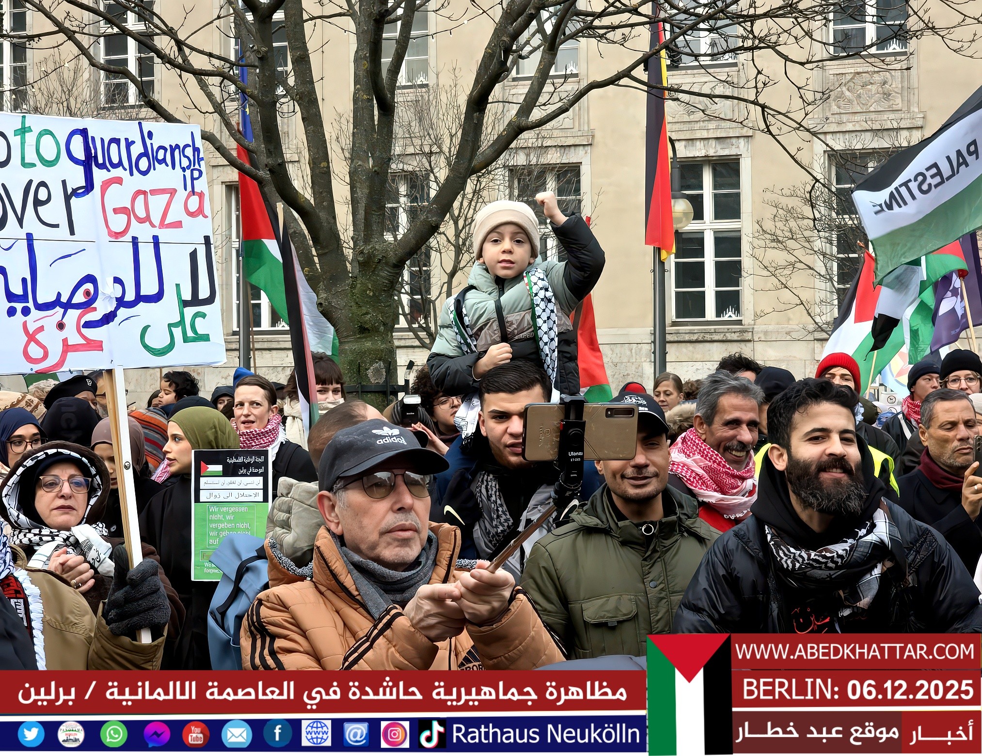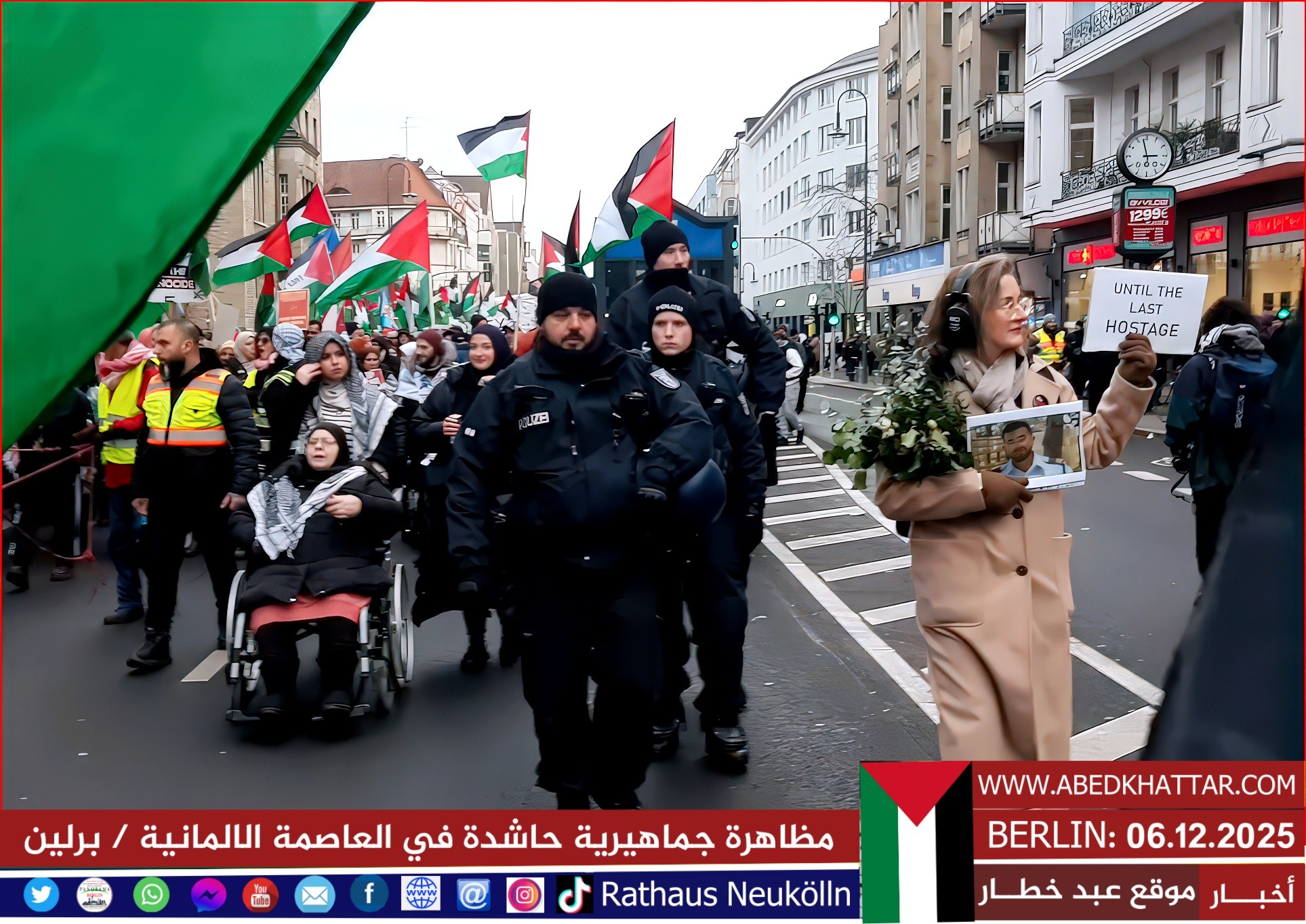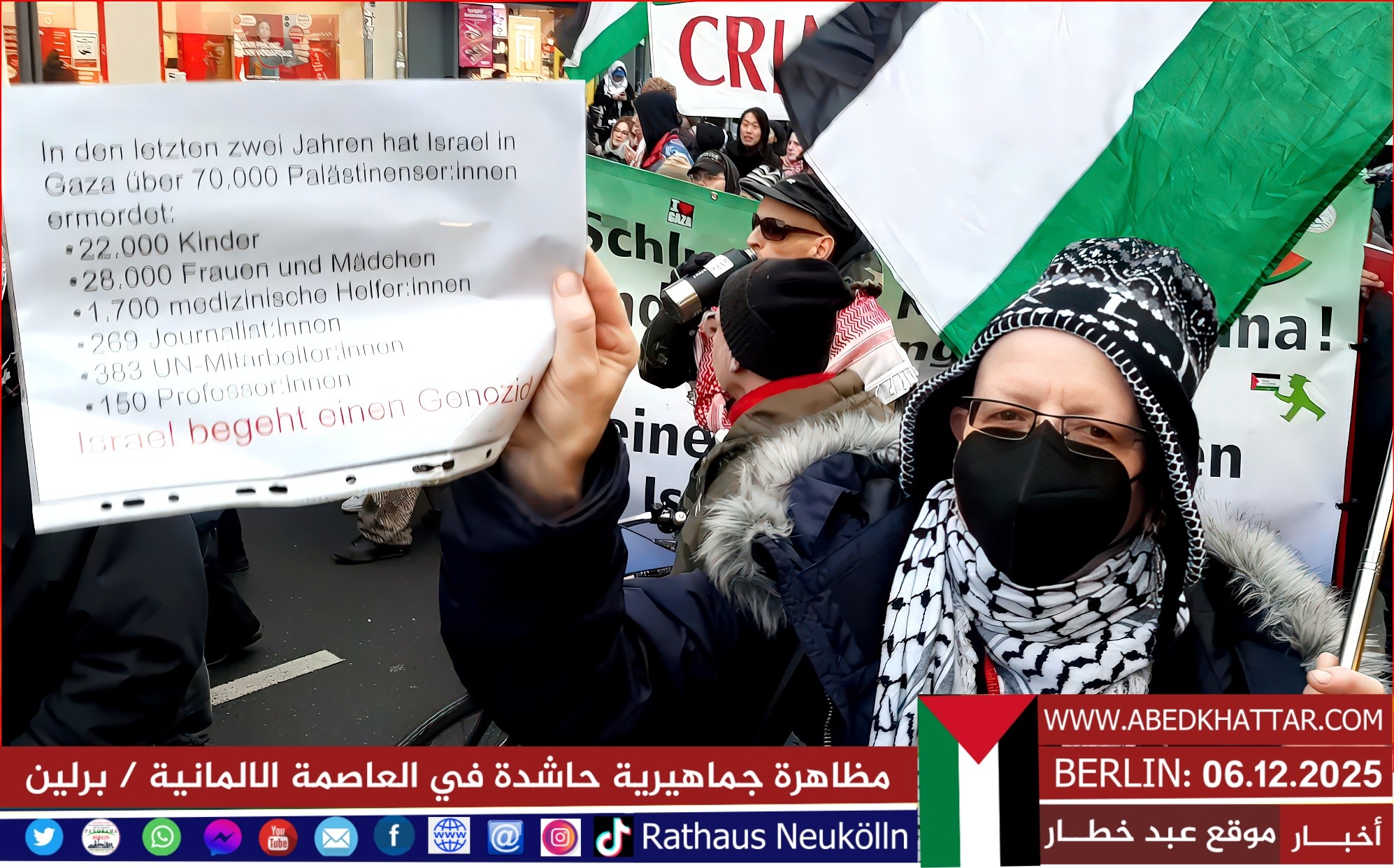 بدعوة من اللجنة الوطنية الفلسطينية الموحدة وبمشاركة مجموعات ألمانية ونشطاء فلسطينيين وألمان، خرجت مظاهرة جماهيرية شارك فيها المئات في قلب العاصمة برلين، لتجديد التضامن مع الشعب الفلسطيني والتنديد بجرائم الاحتلال الإسرائيلي. ارتفعت الأعلام الفلسطينية، وتعالت الهتافات المطالبة بالحرية والعدالة، وسط حضور واسع من أبناء الجالية العربية والمتضامنين الألمان والدوليين.