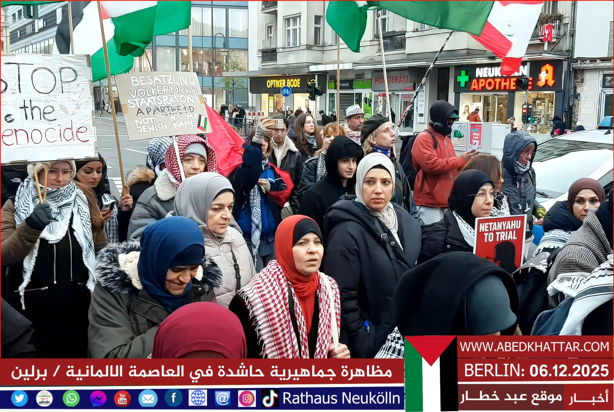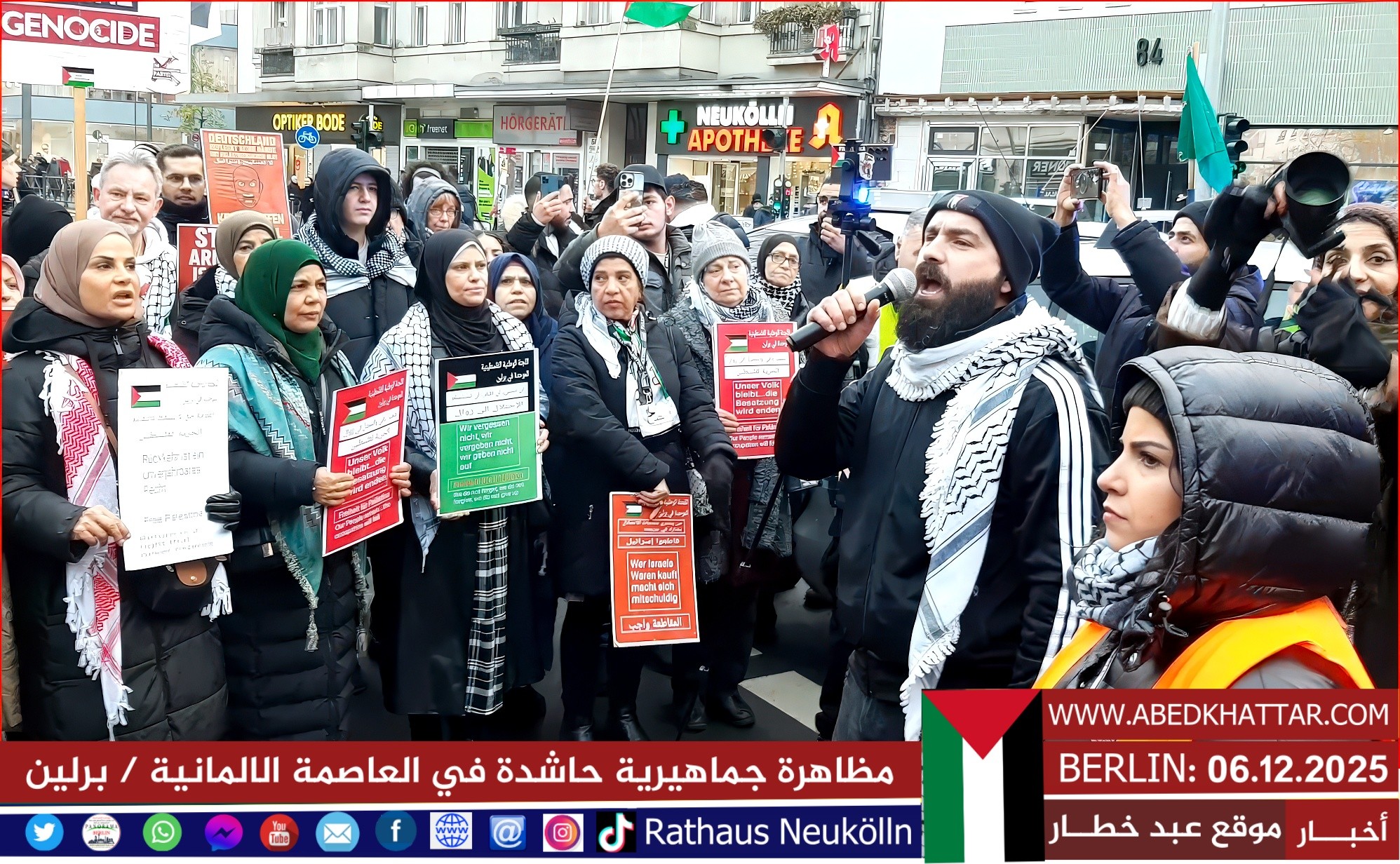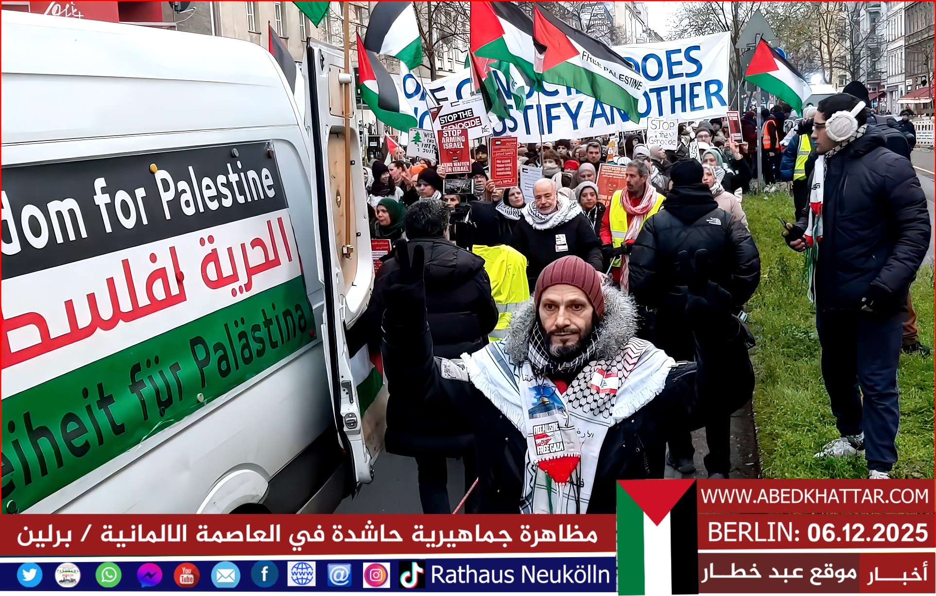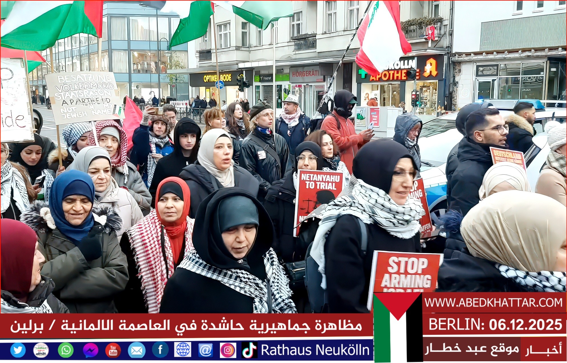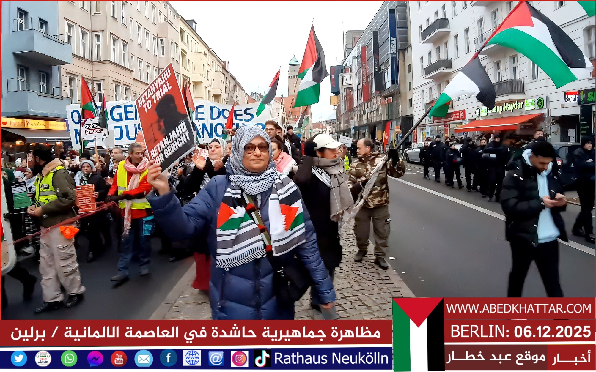 بدعوة من اللجنة الوطنية الفلسطينية الموحدة وبمشاركة مجموعات ألمانية ونشطاء فلسطينيين وألمان، خرجت مظاهرة جماهيرية شارك فيها المئات في قلب العاصمة برلين، لتجديد التضامن مع الشعب الفلسطيني والتنديد بجرائم الاحتلال الإسرائيلي. ارتفعت الأعلام الفلسطينية، وتعالت الهتافات المطالبة بالحرية والعدالة، وسط حضور واسع من أبناء الجالية العربية والمتضامنين الألمان والدوليين.