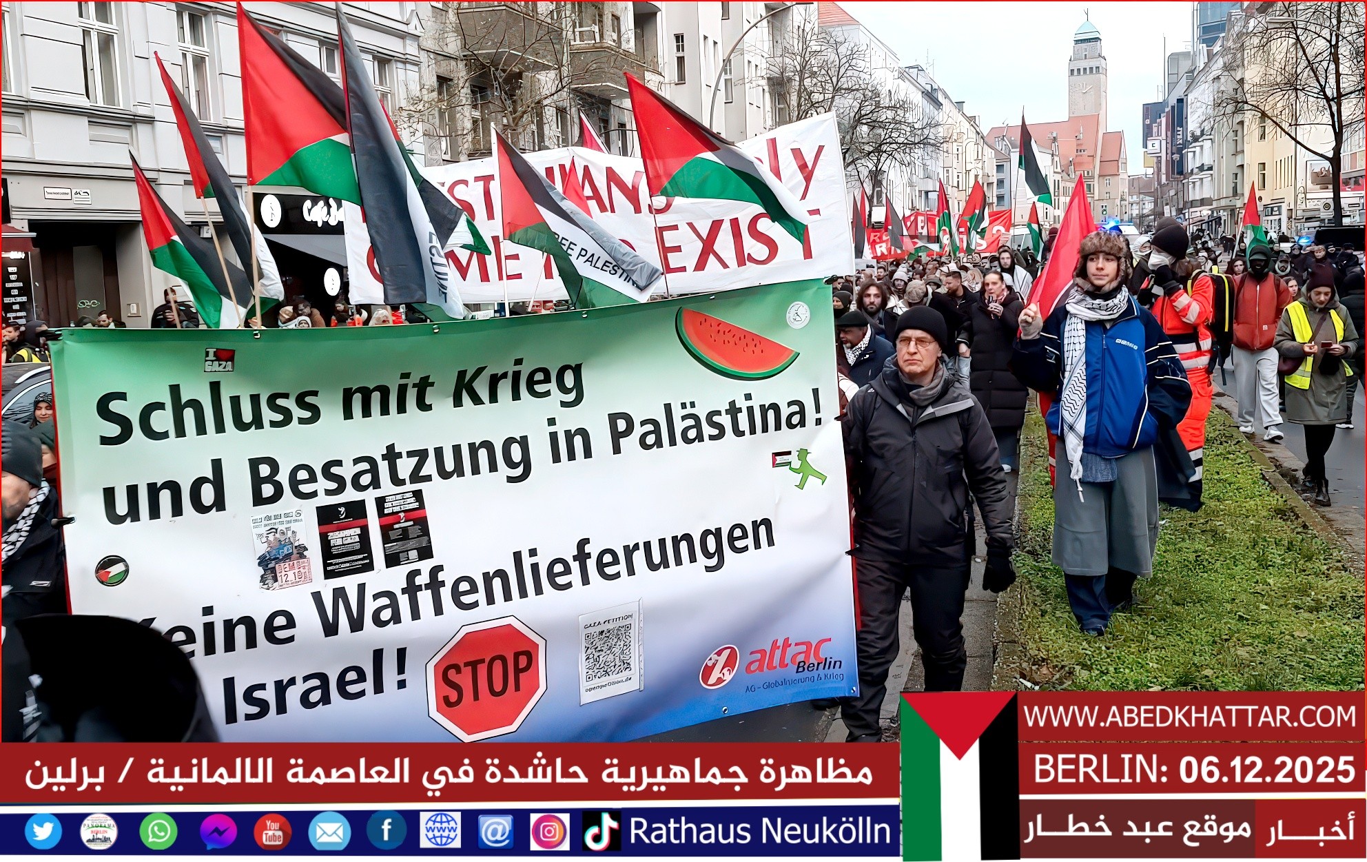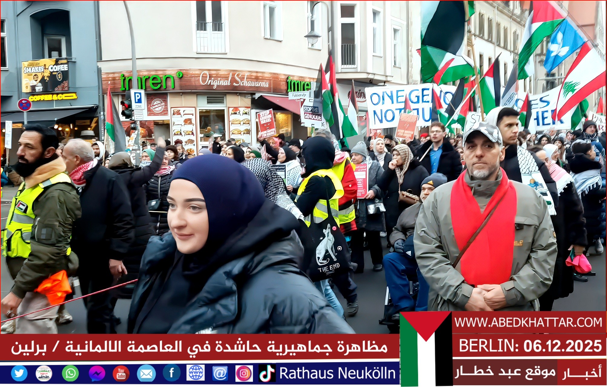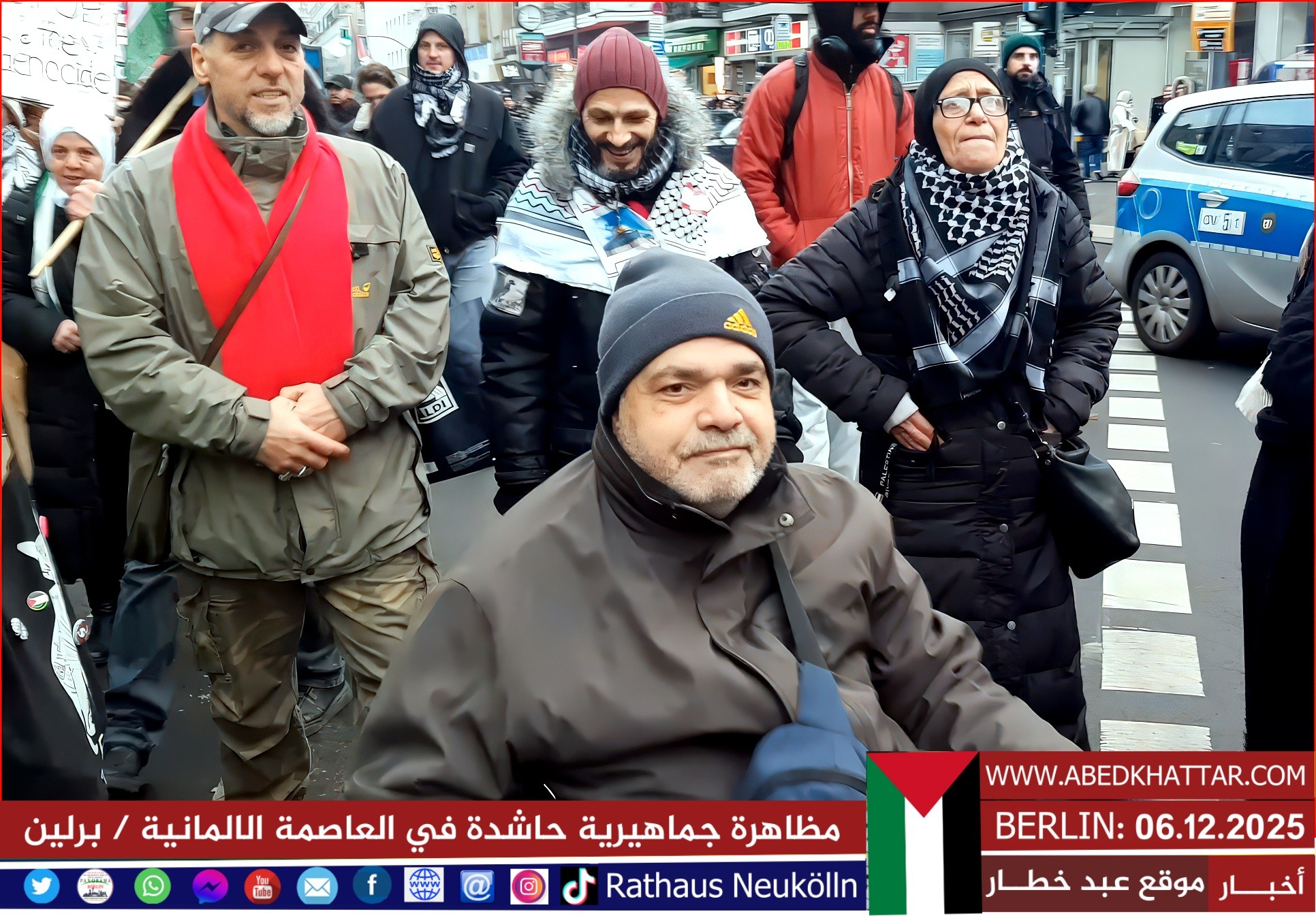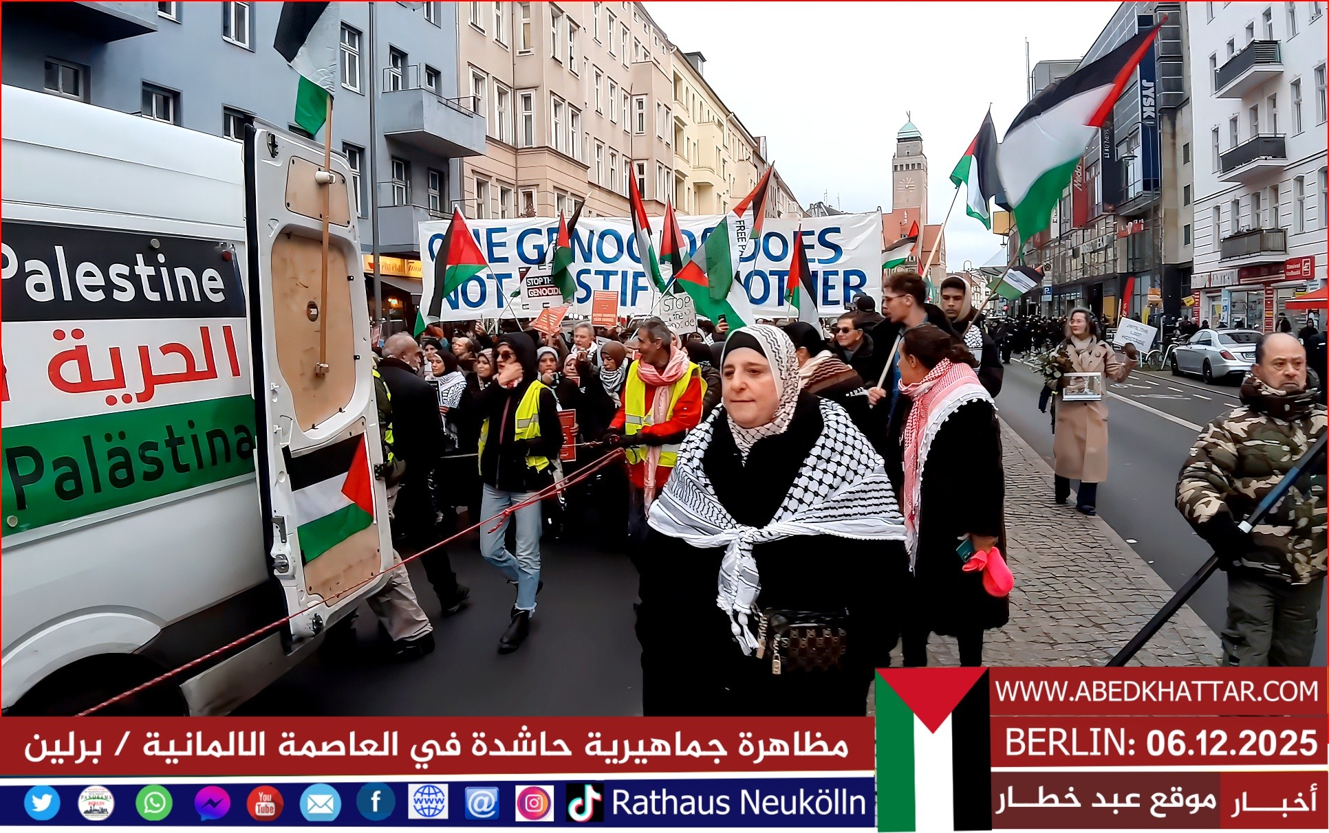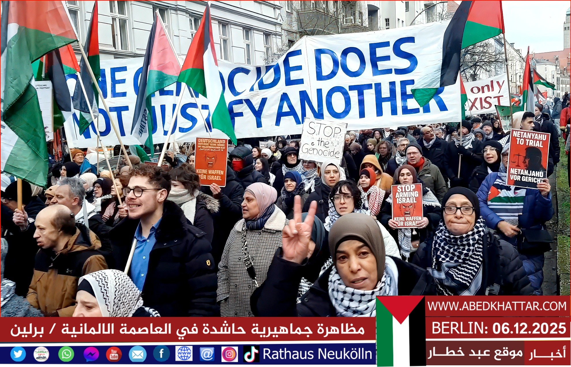 بدعوة من اللجنة الوطنية الفلسطينية الموحدة وبمشاركة مجموعات ألمانية ونشطاء فلسطينيين وألمان، خرجت مظاهرة جماهيرية شارك فيها المئات في قلب العاصمة برلين، لتجديد التضامن مع الشعب الفلسطيني والتنديد بجرائم الاحتلال الإسرائيلي. ارتفعت الأعلام الفلسطينية، وتعالت الهتافات المطالبة بالحرية والعدالة، وسط حضور واسع من أبناء الجالية العربية والمتضامنين الألمان والدوليين.
