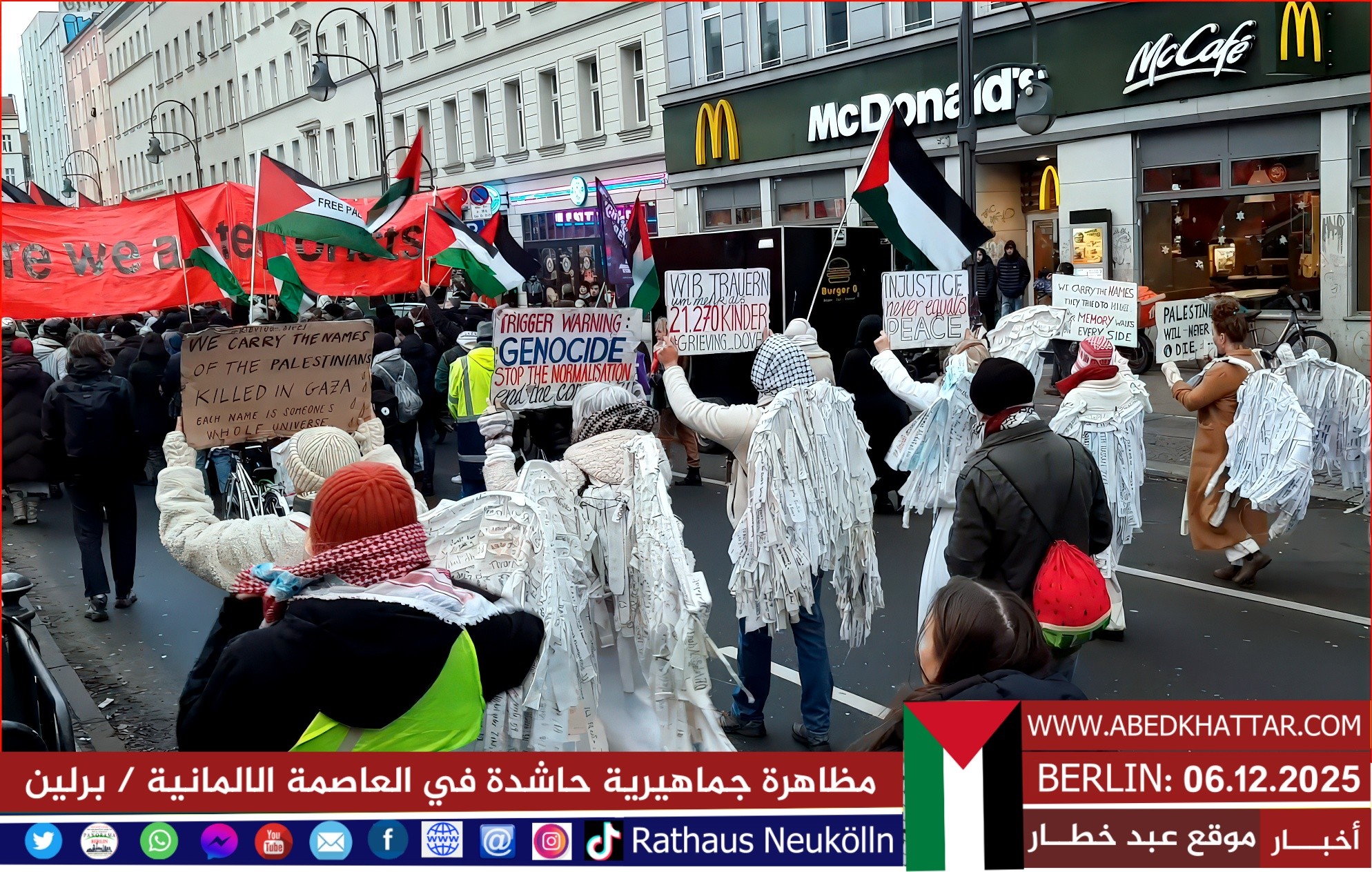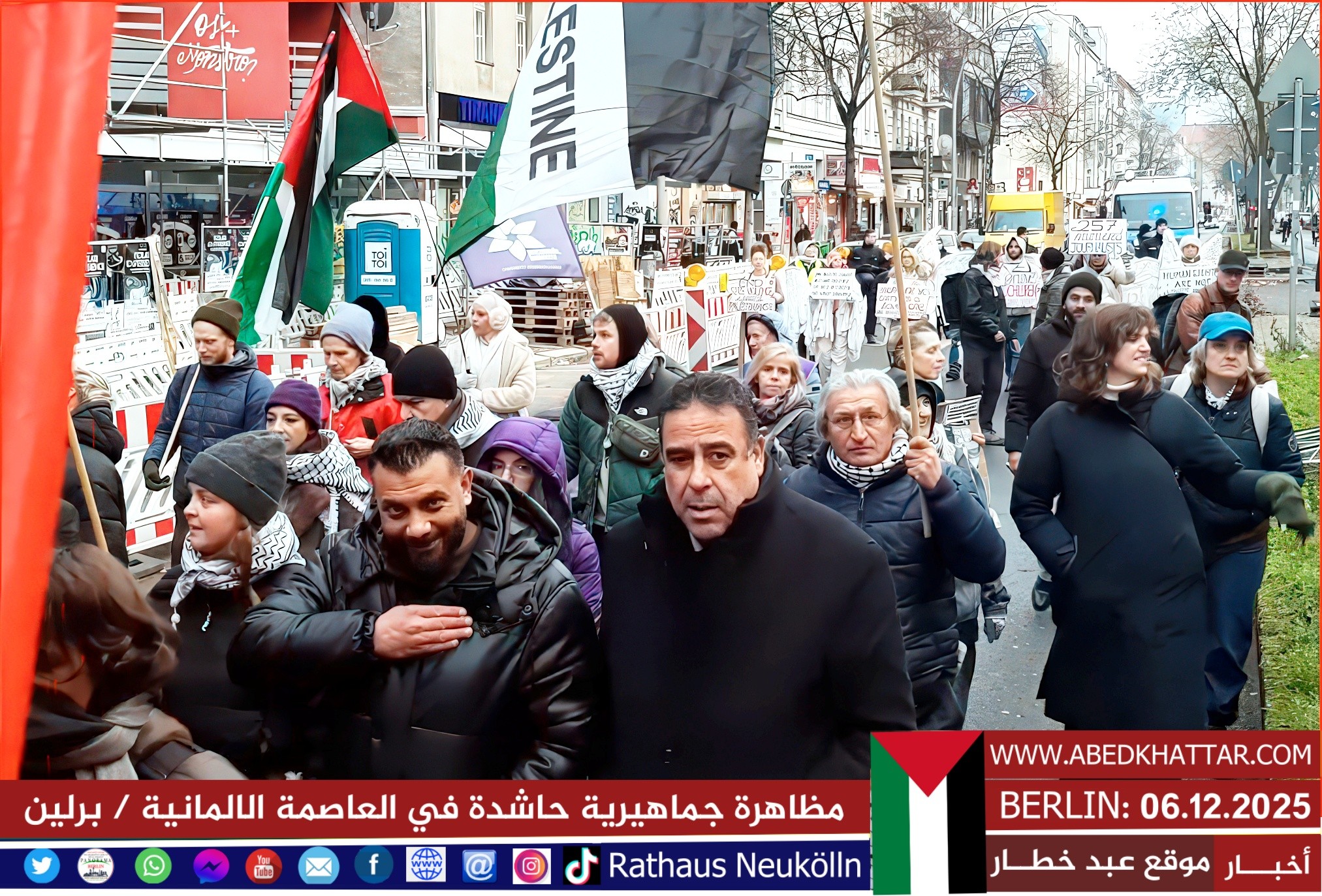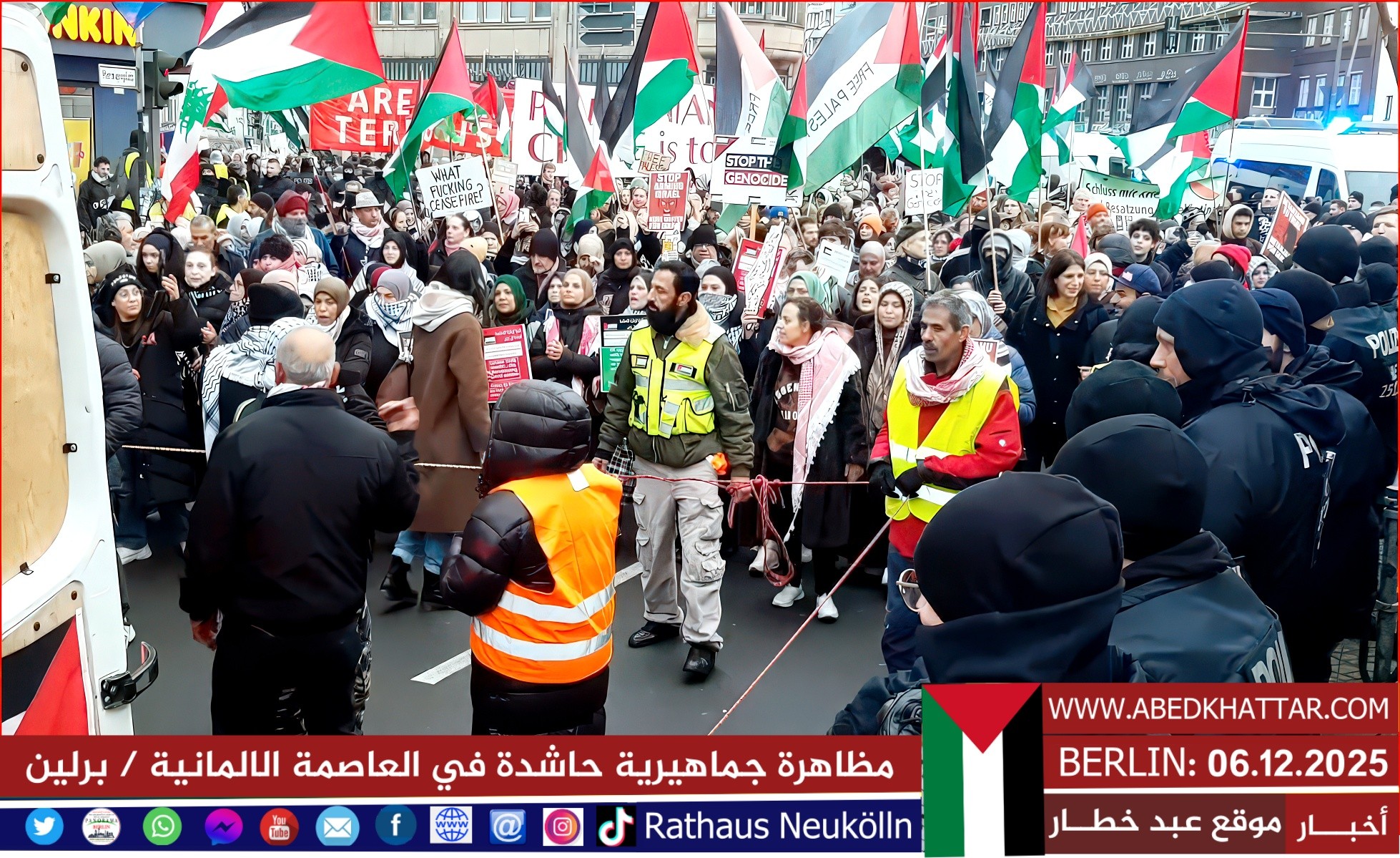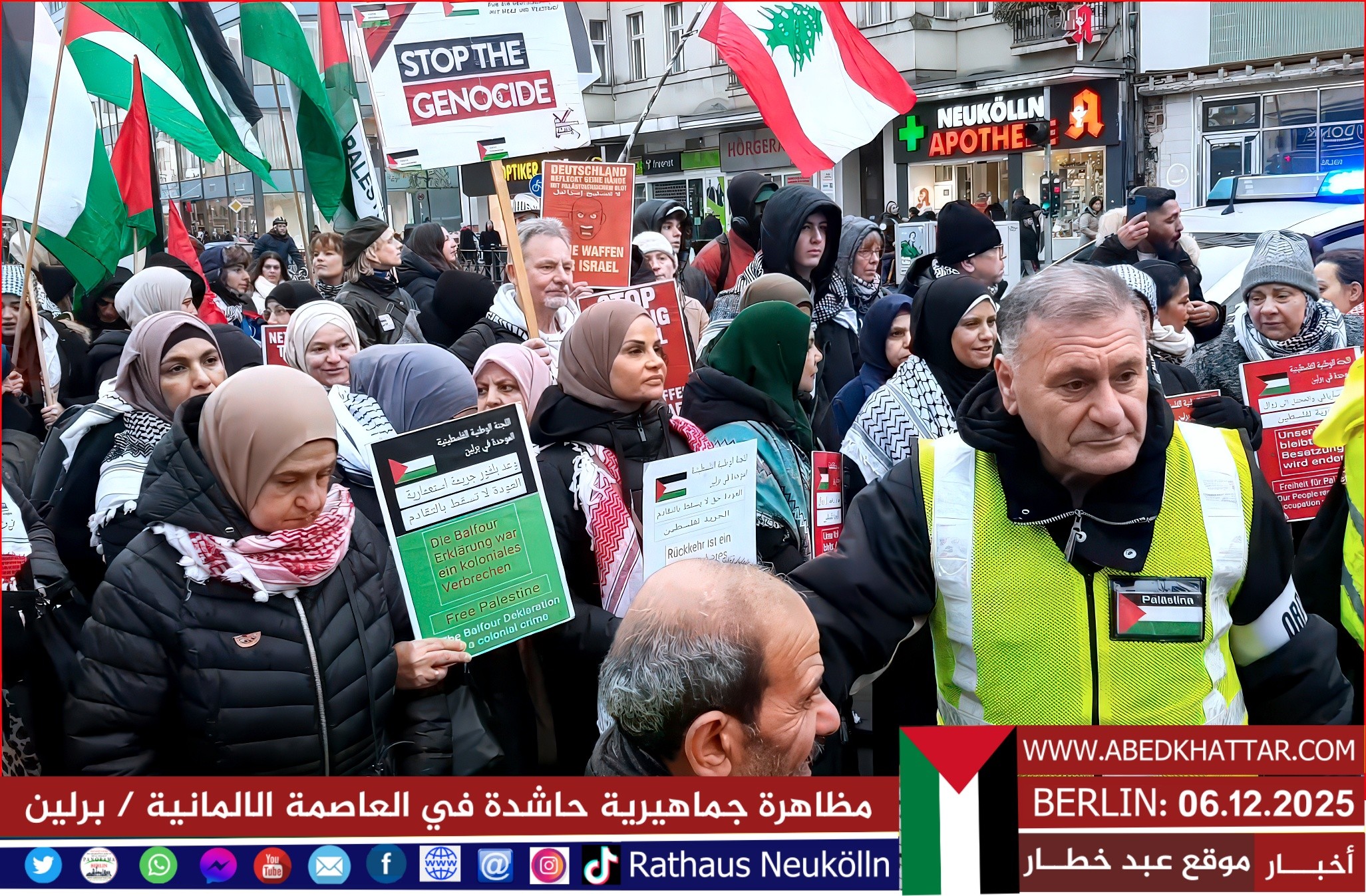 بدعوة من اللجنة الوطنية الفلسطينية الموحدة وبمشاركة مجموعات ألمانية ونشطاء فلسطينيين وألمان، خرجت مظاهرة جماهيرية شارك فيها المئات في قلب العاصمة برلين، لتجديد التضامن مع الشعب الفلسطيني والتنديد بجرائم الاحتلال الإسرائيلي. ارتفعت الأعلام الفلسطينية، وتعالت الهتافات المطالبة بالحرية والعدالة، وسط حضور واسع من أبناء الجالية العربية والمتضامنين الألمان والدوليين.