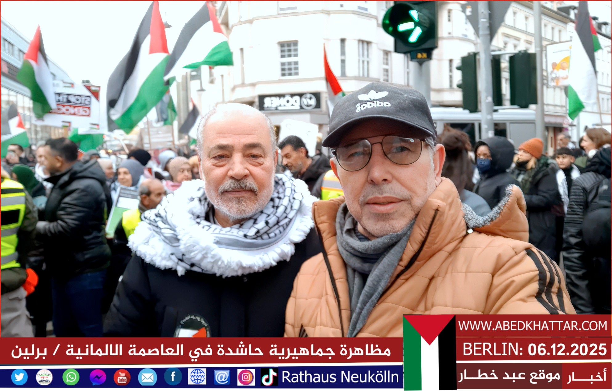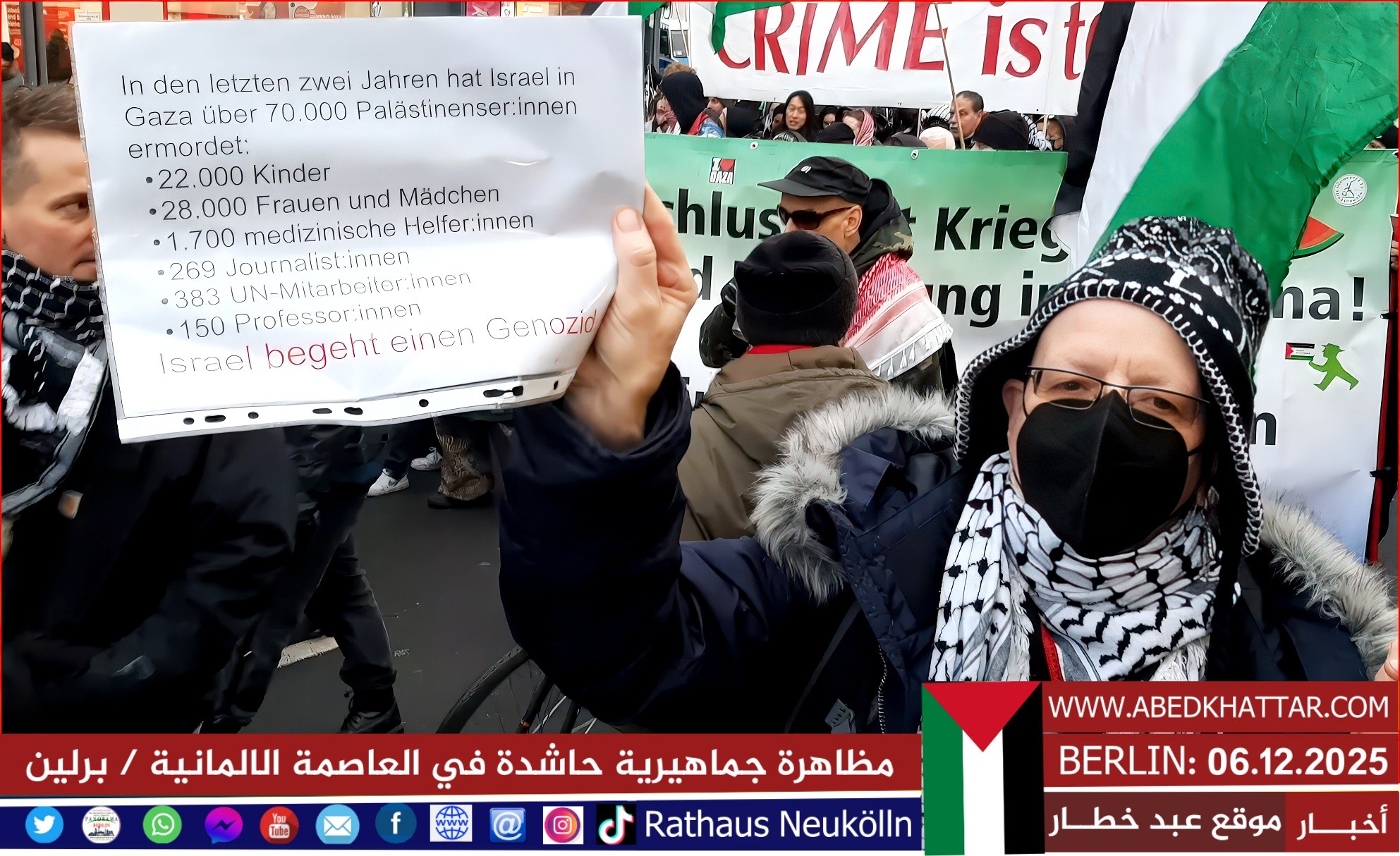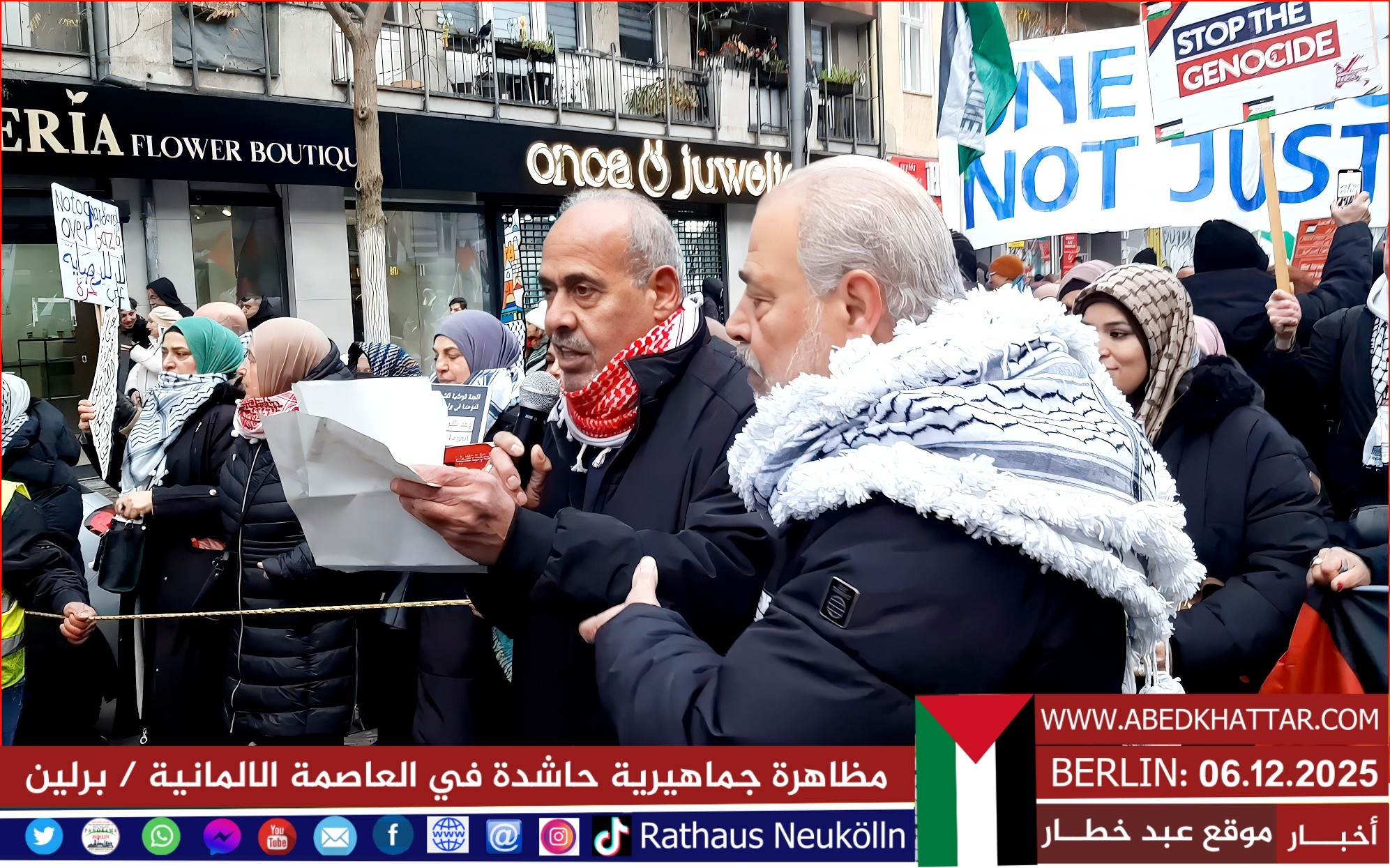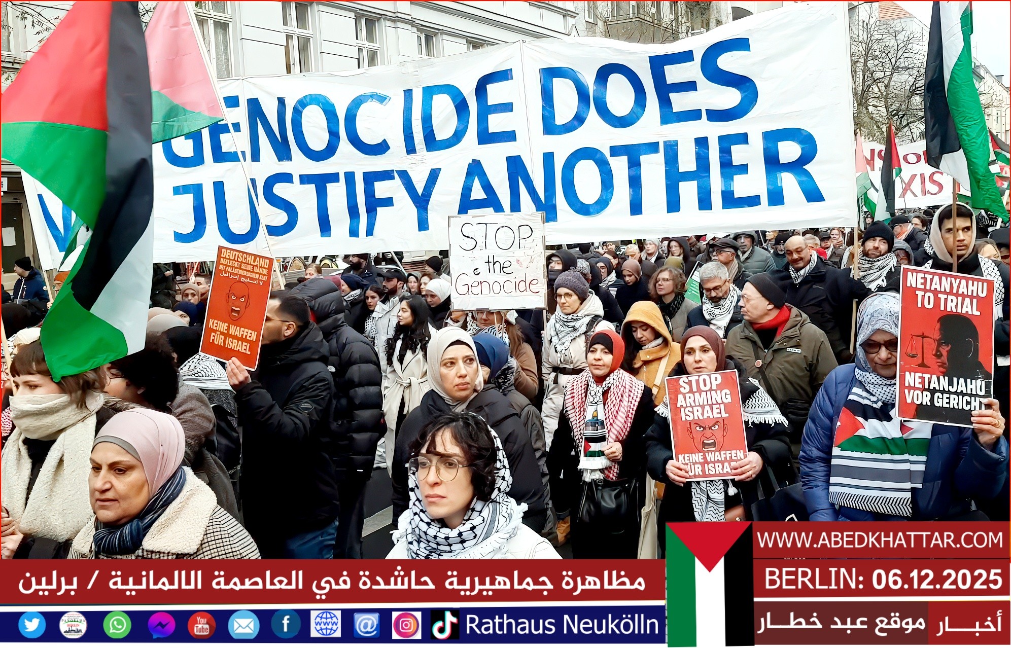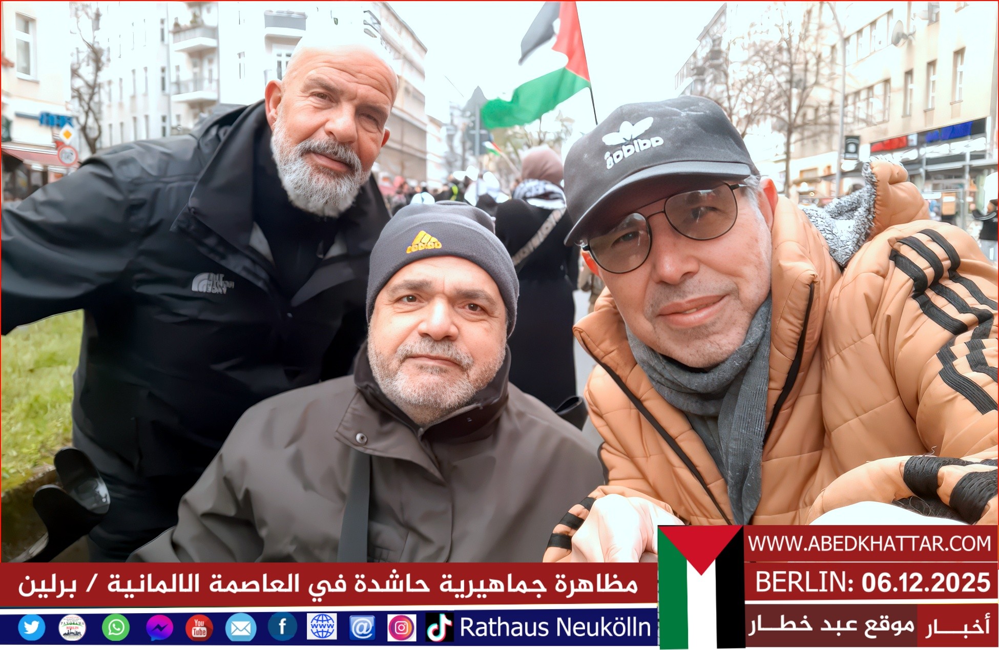 بدعوة من اللجنة الوطنية الفلسطينية الموحدة وبمشاركة مجموعات ألمانية ونشطاء فلسطينيين وألمان، خرجت مظاهرة جماهيرية شارك فيها المئات في قلب العاصمة برلين، لتجديد التضامن مع الشعب الفلسطيني والتنديد بجرائم الاحتلال الإسرائيلي. ارتفعت الأعلام الفلسطينية، وتعالت الهتافات المطالبة بالحرية والعدالة، وسط حضور واسع من أبناء الجالية العربية والمتضامنين الألمان والدوليين.