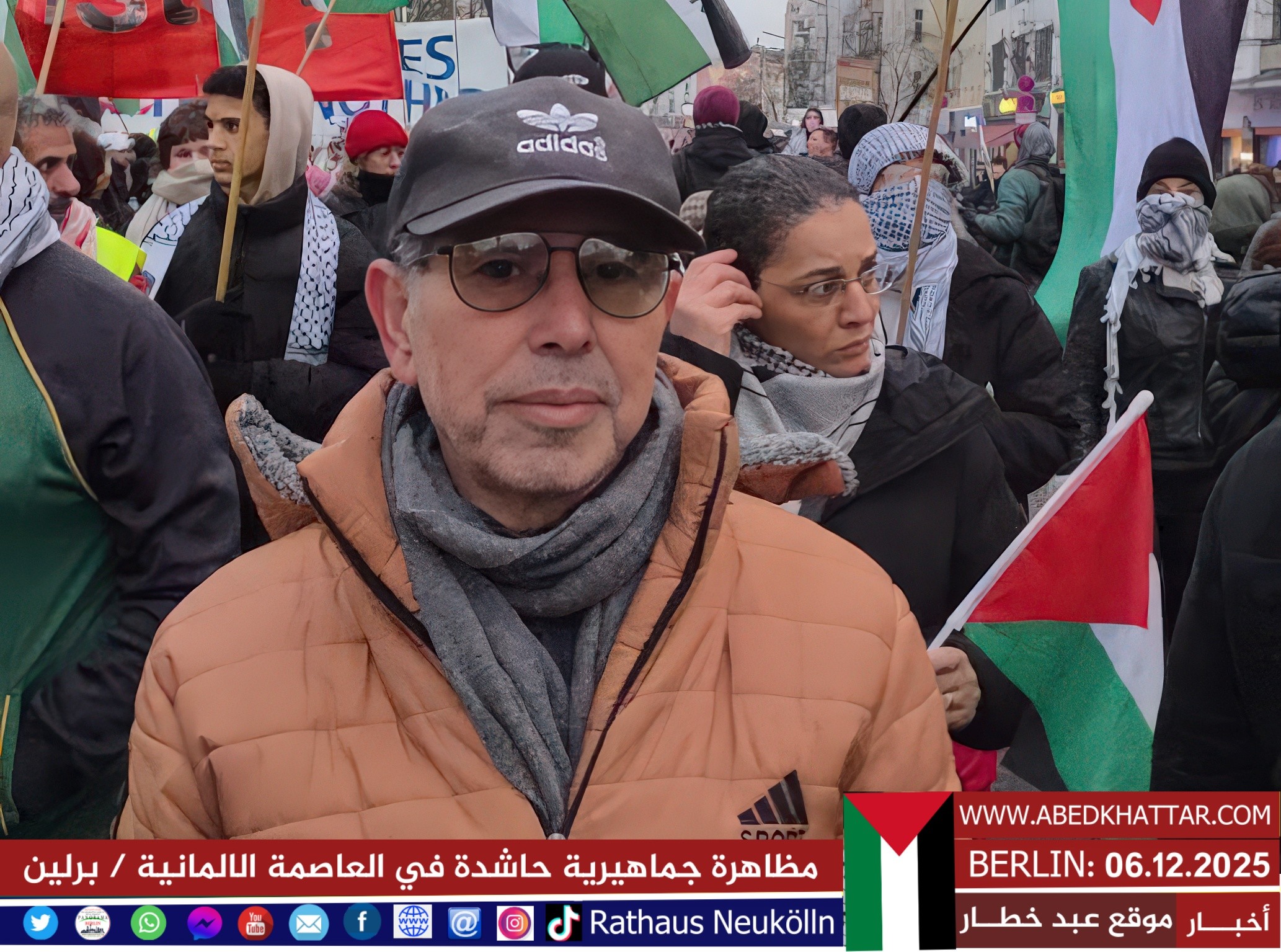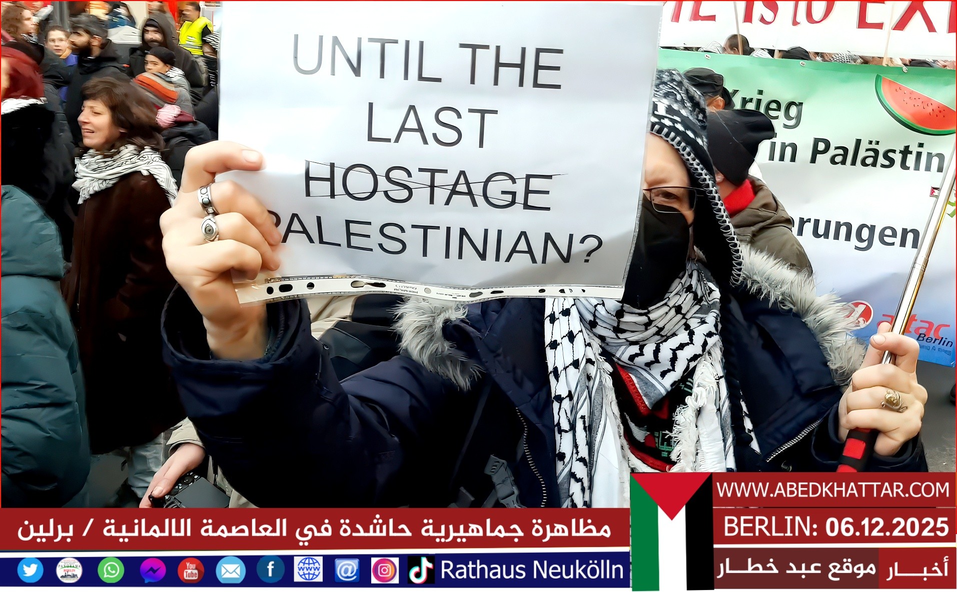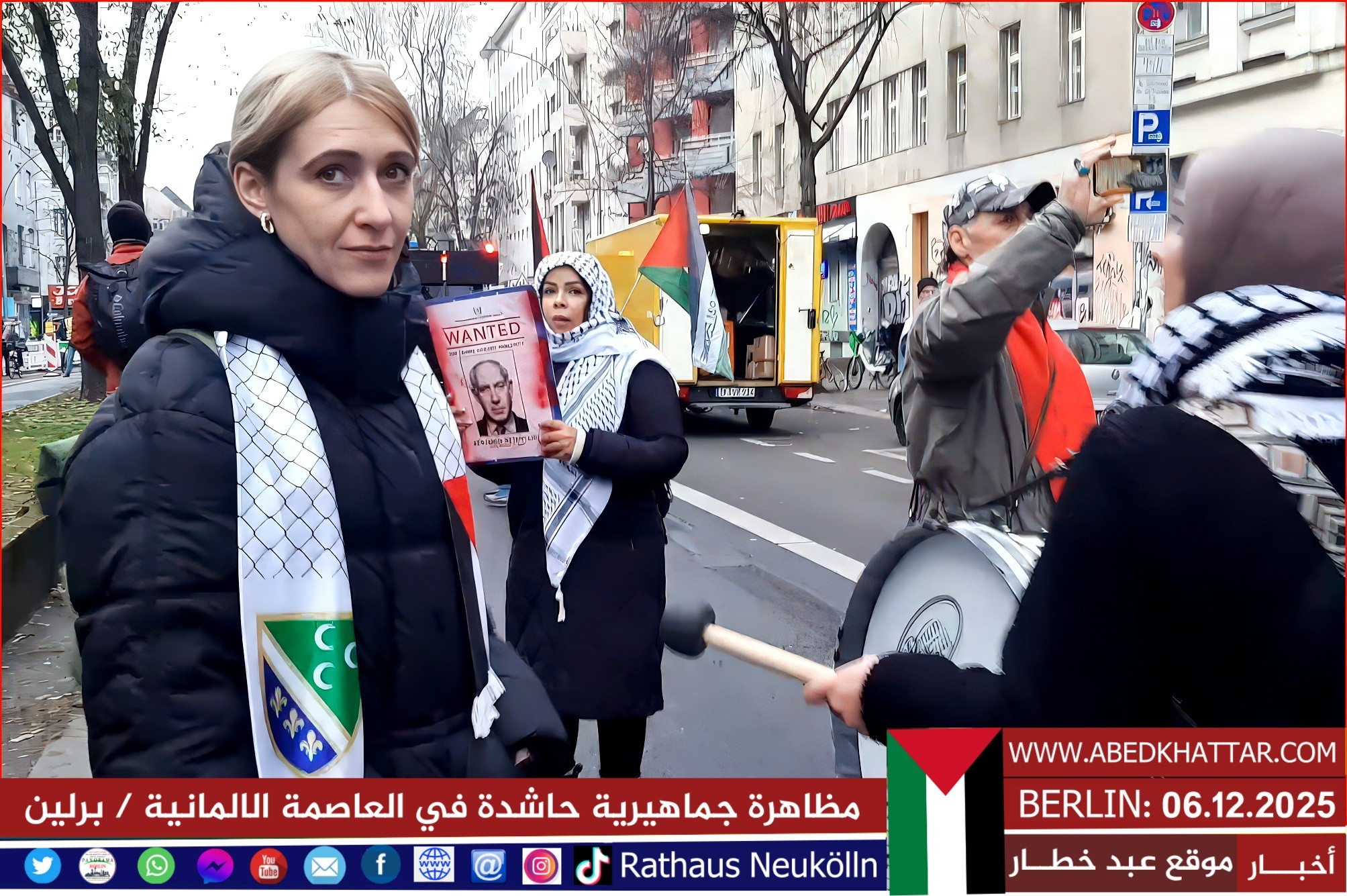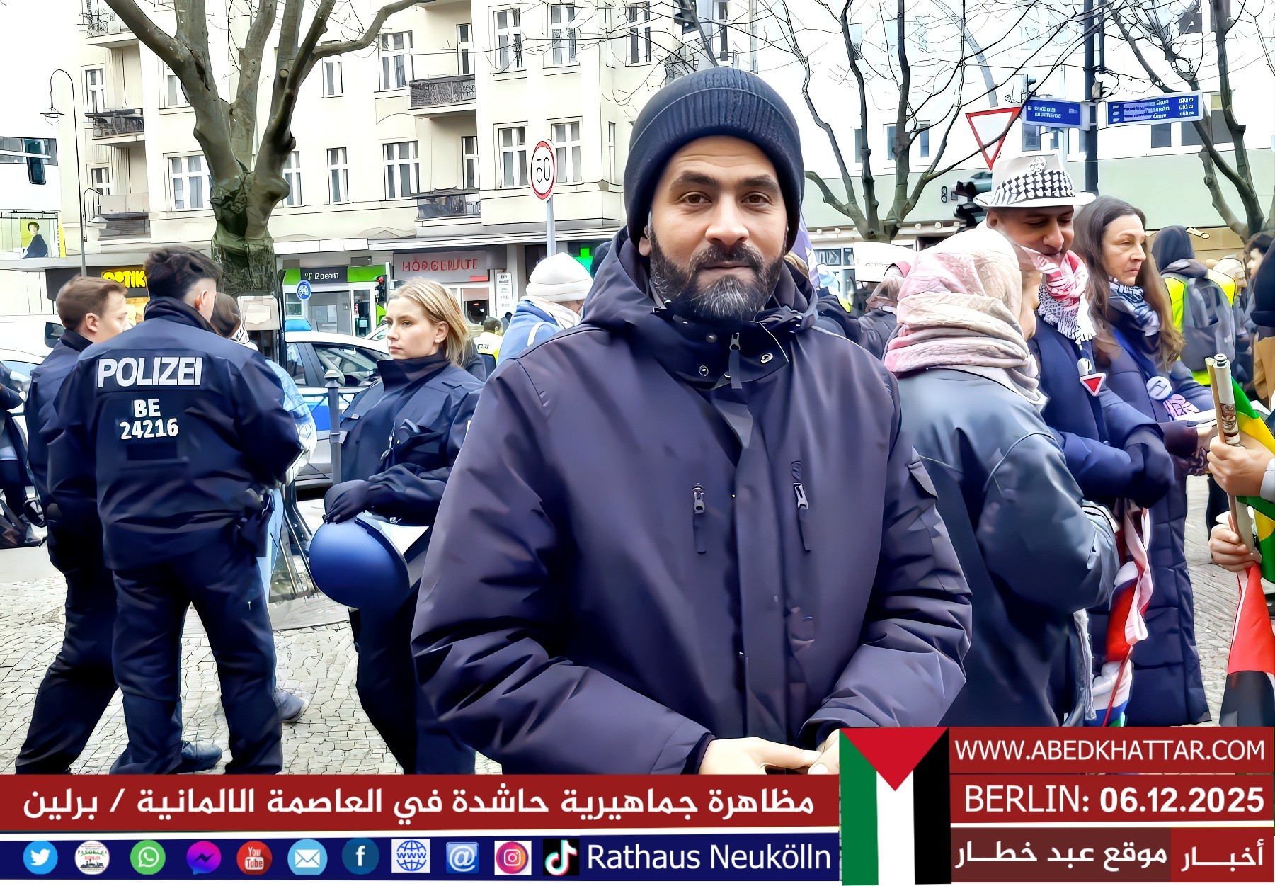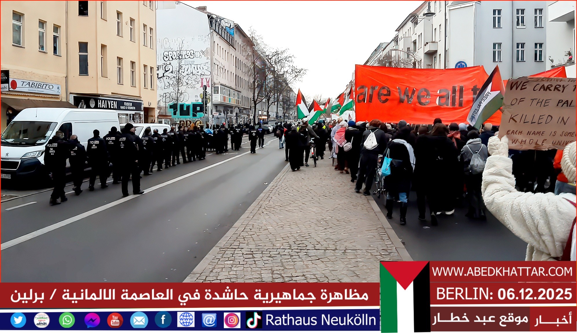 بدعوة من اللجنة الوطنية الفلسطينية الموحدة وبمشاركة مجموعات ألمانية ونشطاء فلسطينيين وألمان، خرجت مظاهرة جماهيرية شارك فيها المئات في قلب العاصمة برلين، لتجديد التضامن مع الشعب الفلسطيني والتنديد بجرائم الاحتلال الإسرائيلي. ارتفعت الأعلام الفلسطينية، وتعالت الهتافات المطالبة بالحرية والعدالة، وسط حضور واسع من أبناء الجالية العربية والمتضامنين الألمان والدوليين.