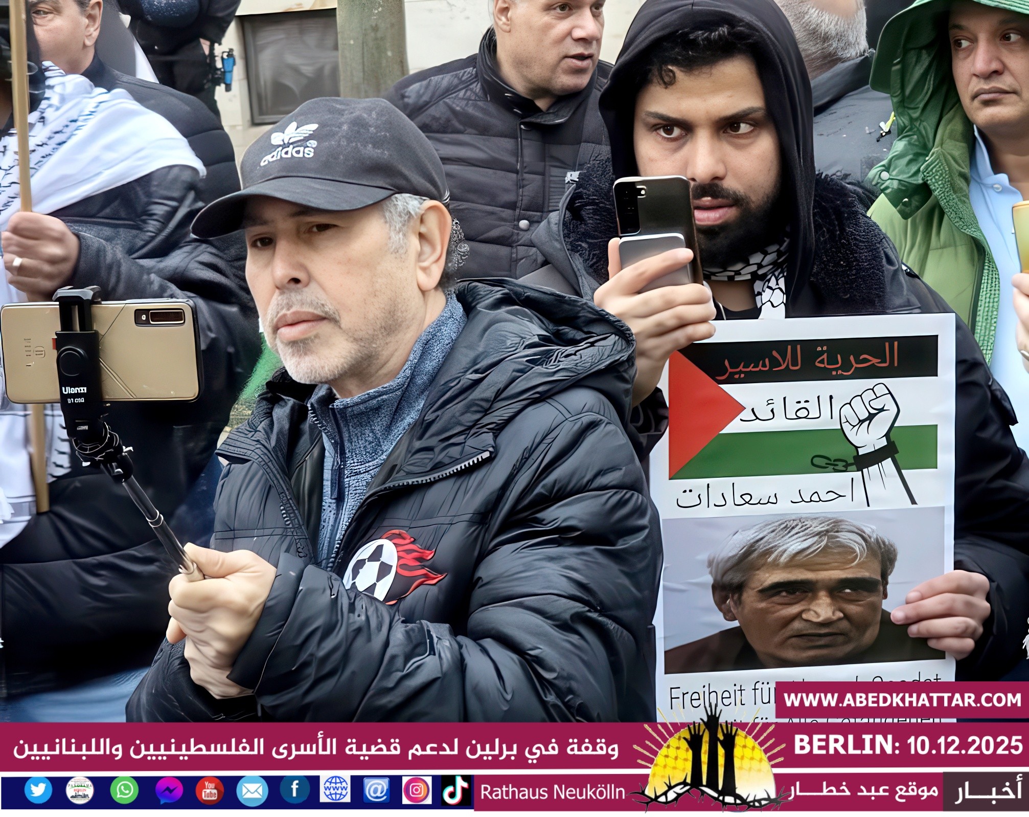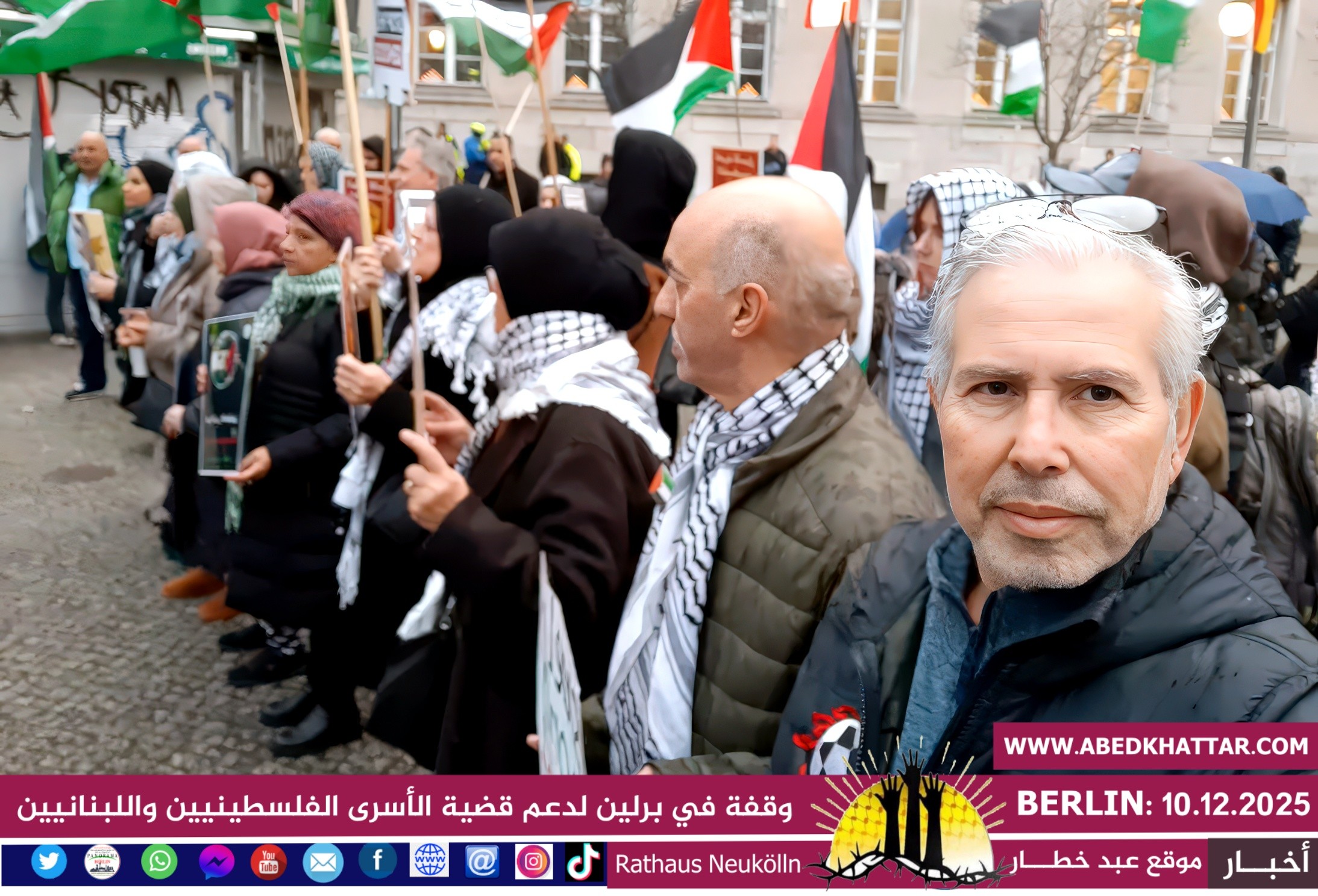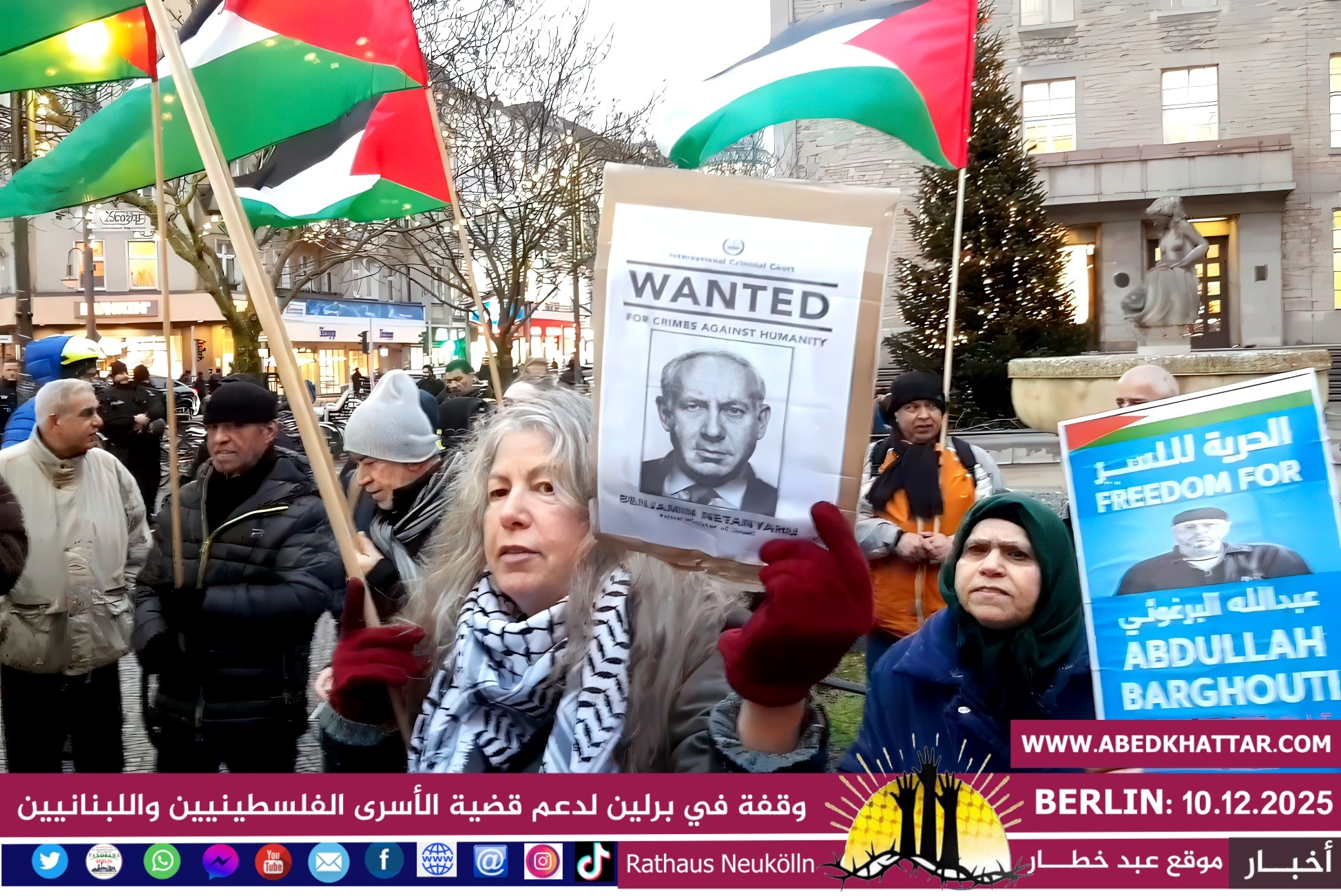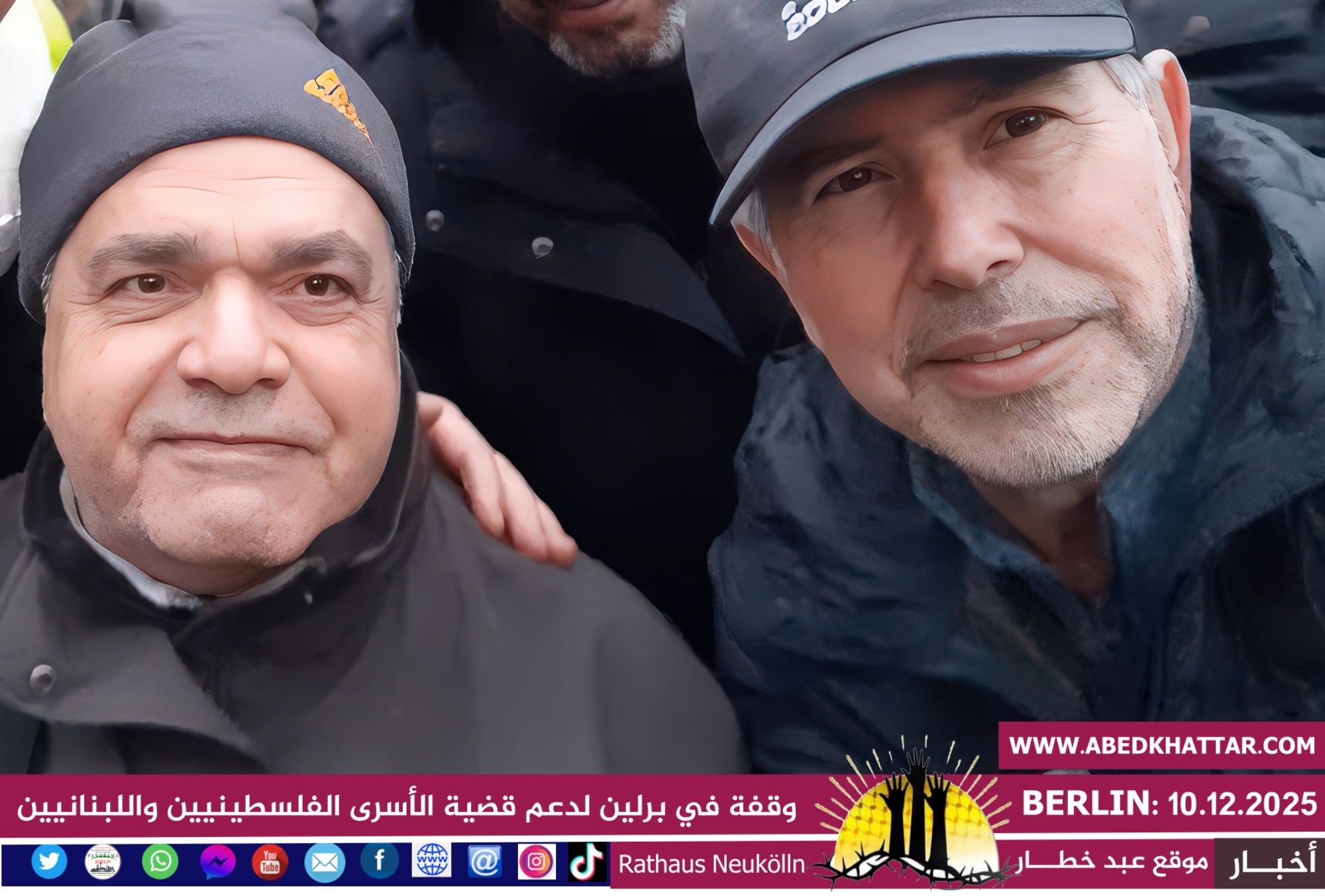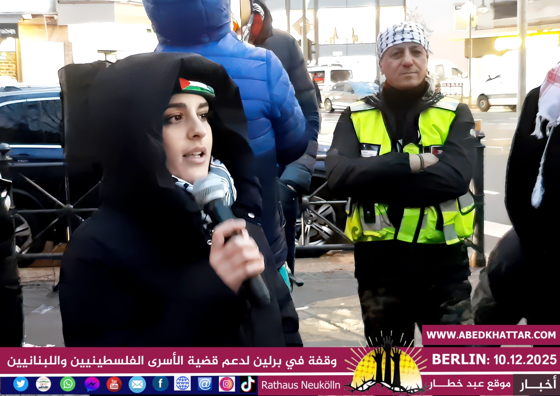 بدعوة من اللجنة الوطنية الفلسطينية في وقفة جماهيرية في برلين للتأكيد على دعم قضية الأسرى الفلسطينيين واللبنانيين، وعلى التضامن مع غزة والضفة الغربية والقدس في مواجهة العدوان المستمر