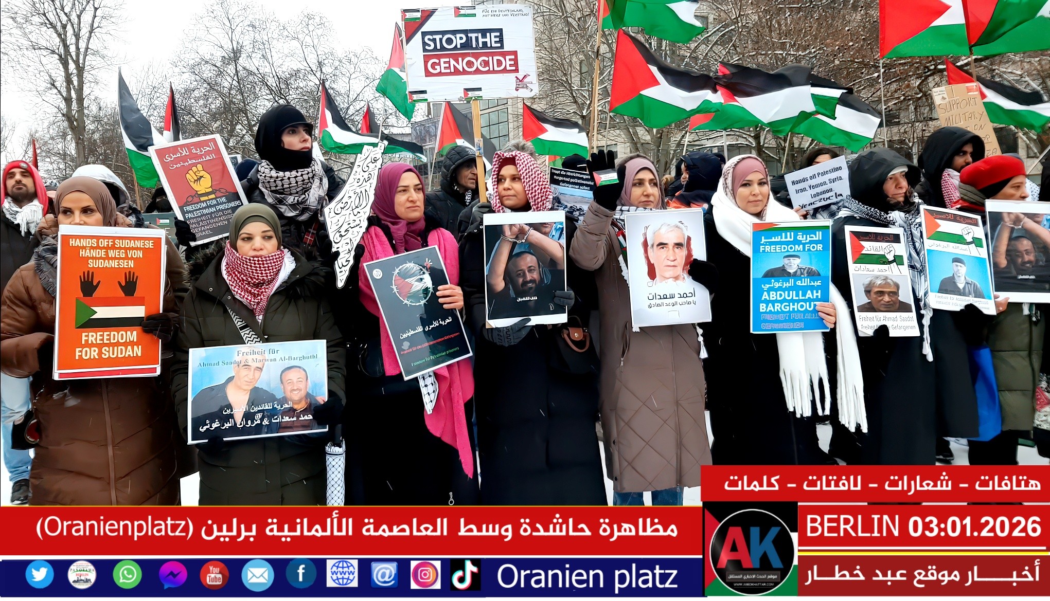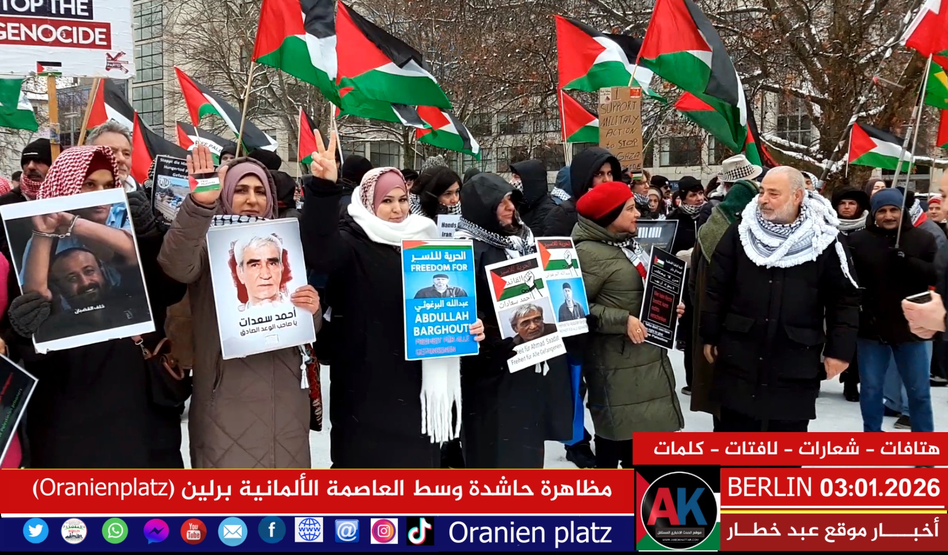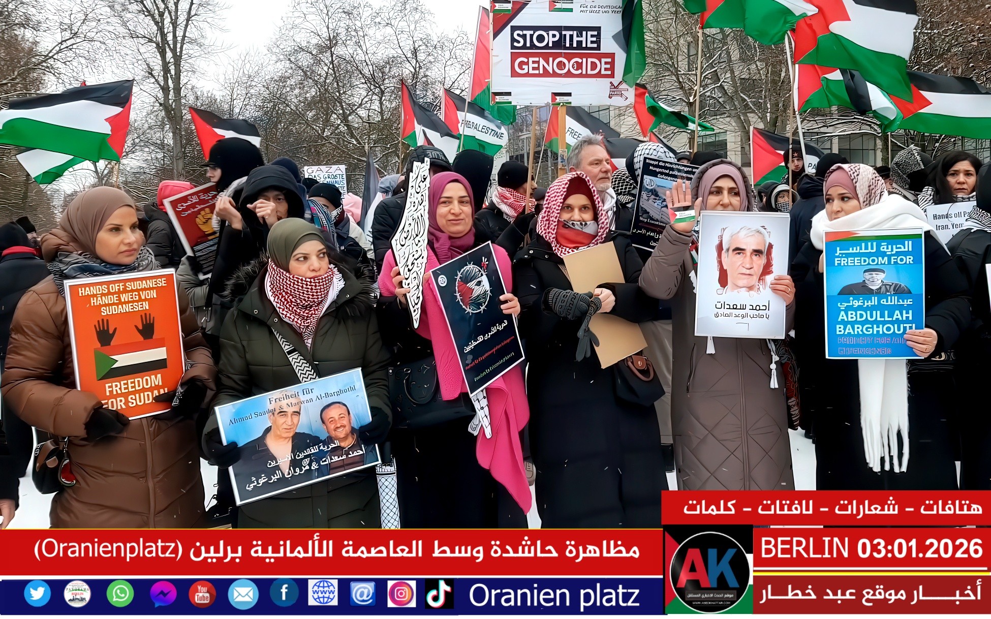 شهدت العاصمة الألمانية برلين اليوم فعالية جماهيرية دعت إليها اللجنة الوطنية الفلسطينية الموحّدة، بمشاركة واسعة من مجموعات فلسطينية متضامنة، وقوى يسارية ألمانية، والصوت اليهودي المناهض للاحتلال. وقد ركّزت الفعالية على التطورات الجارية في الأراضي الفلسطينية المحتلة، وعلى الدعوات المتصاعدة لوقف التسليح ومحاسبة المسؤولين عن الانتهاكات.