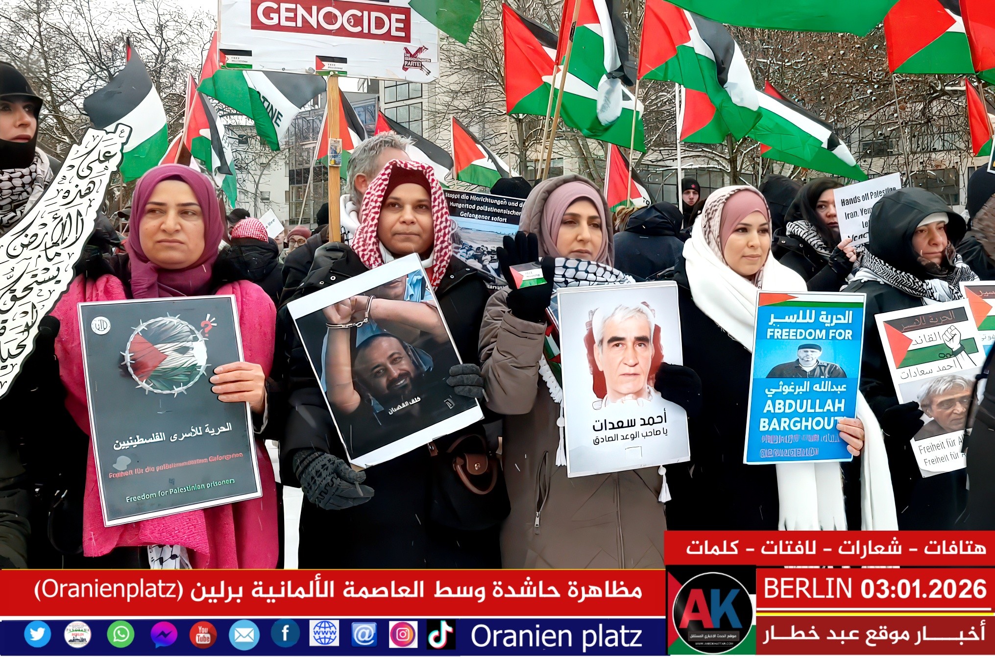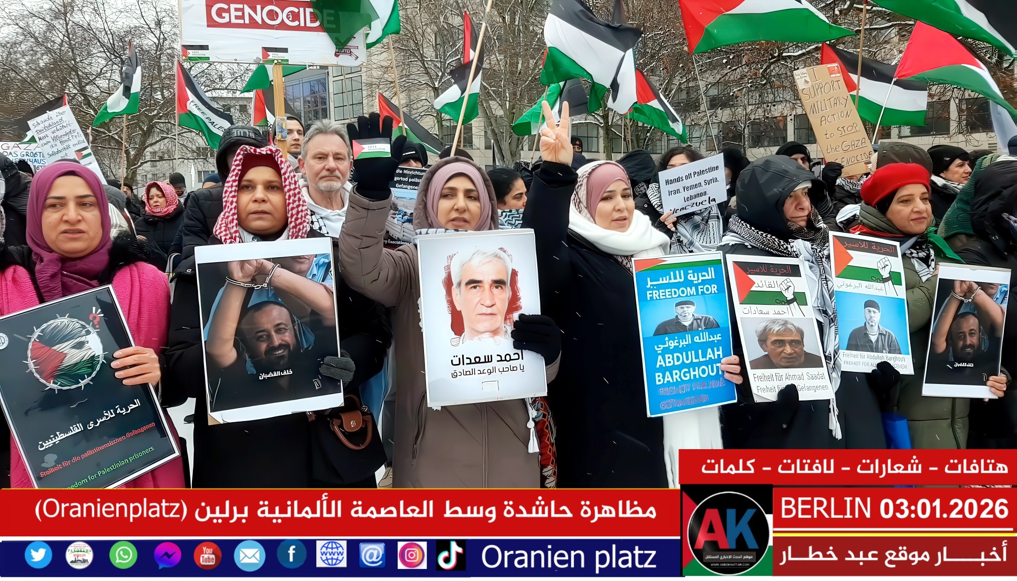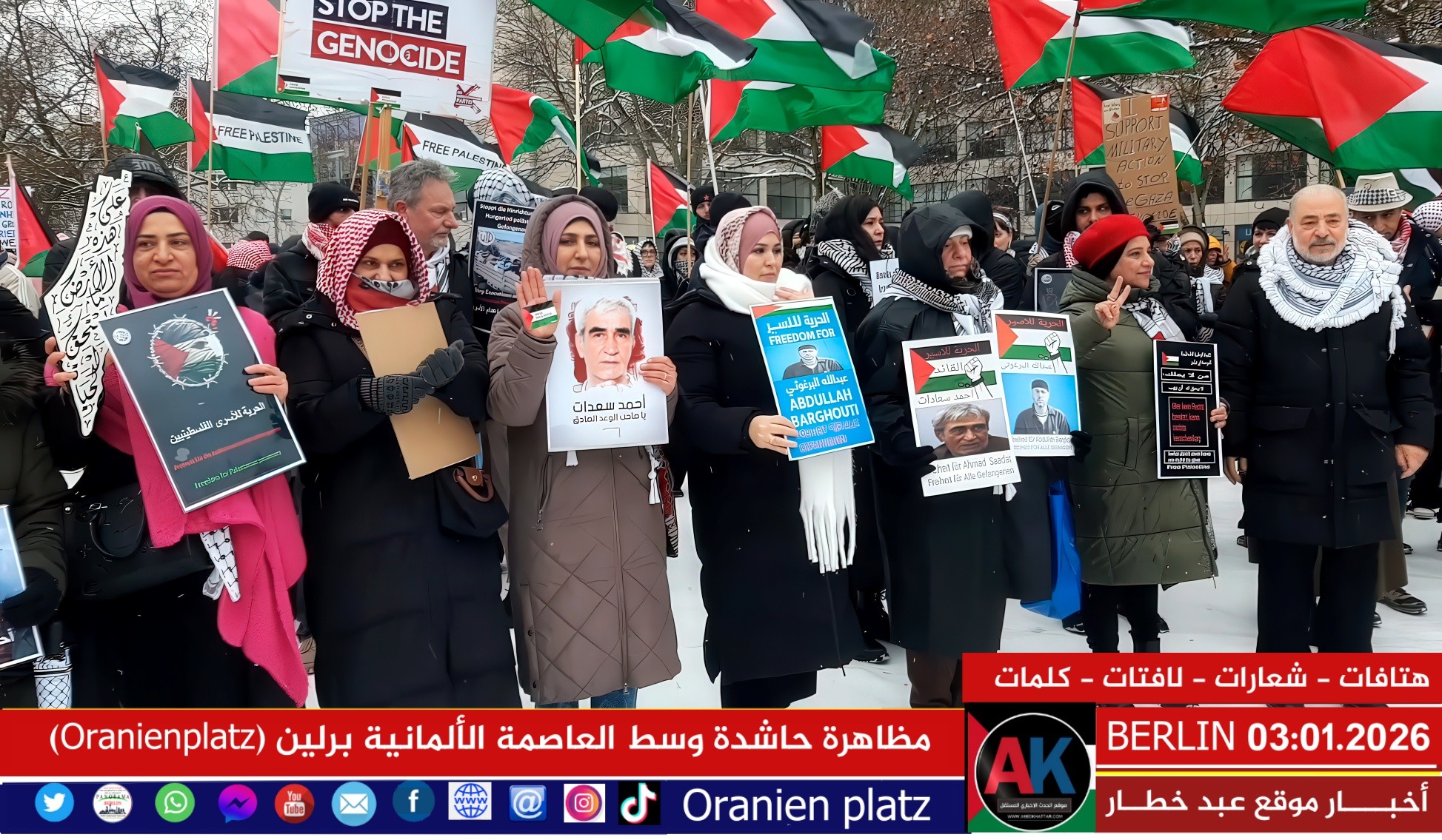 شهدت العاصمة الألمانية برلين اليوم فعالية جماهيرية دعت إليها اللجنة الوطنية الفلسطينية الموحّدة، بمشاركة واسعة من مجموعات فلسطينية متضامنة، وقوى يسارية ألمانية، والصوت اليهودي المناهض للاحتلال. وقد ركّزت الفعالية على التطورات الجارية في الأراضي الفلسطينية المحتلة، وعلى الدعوات المتصاعدة لوقف التسليح ومحاسبة المسؤولين عن الانتهاكات.