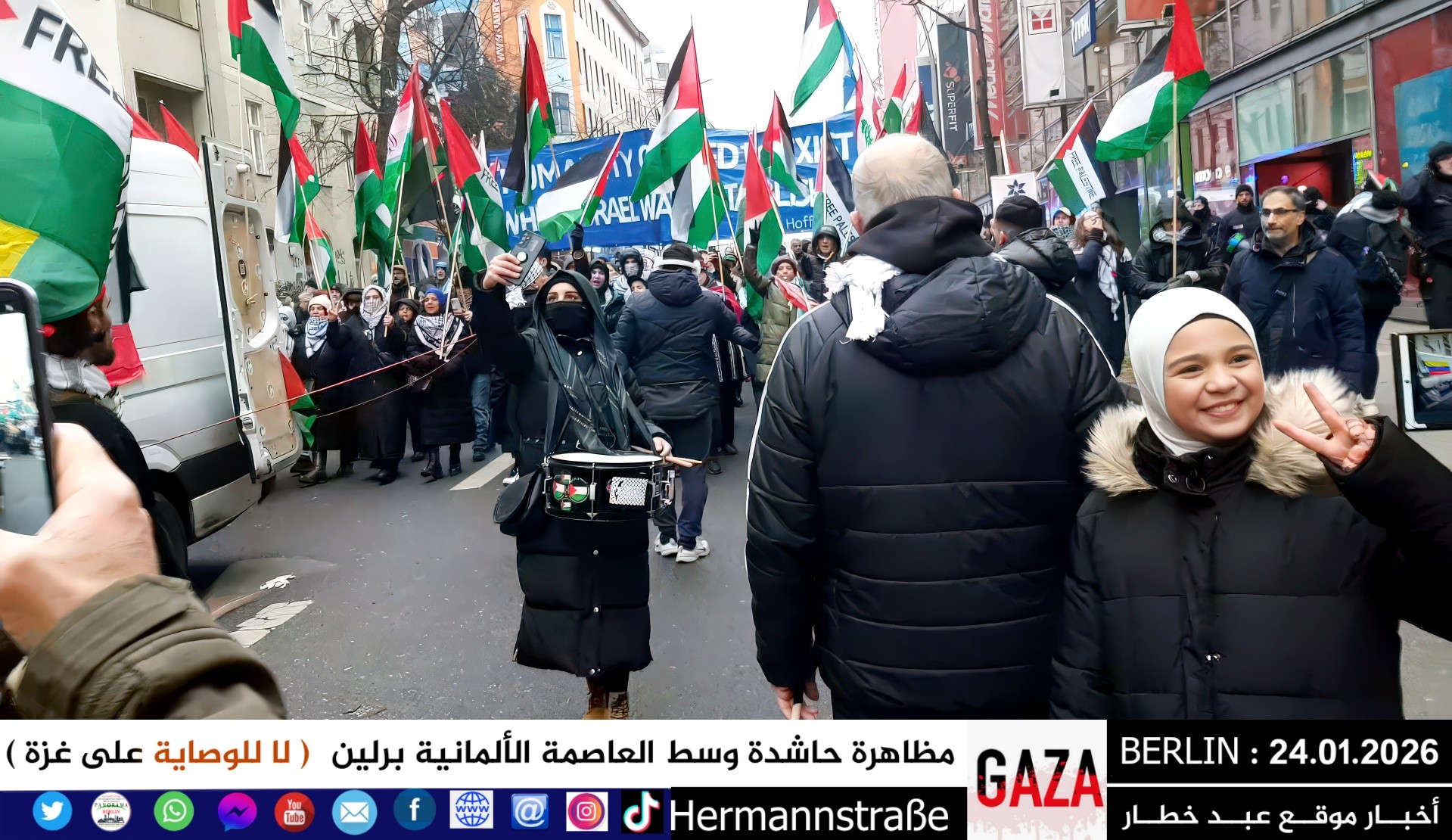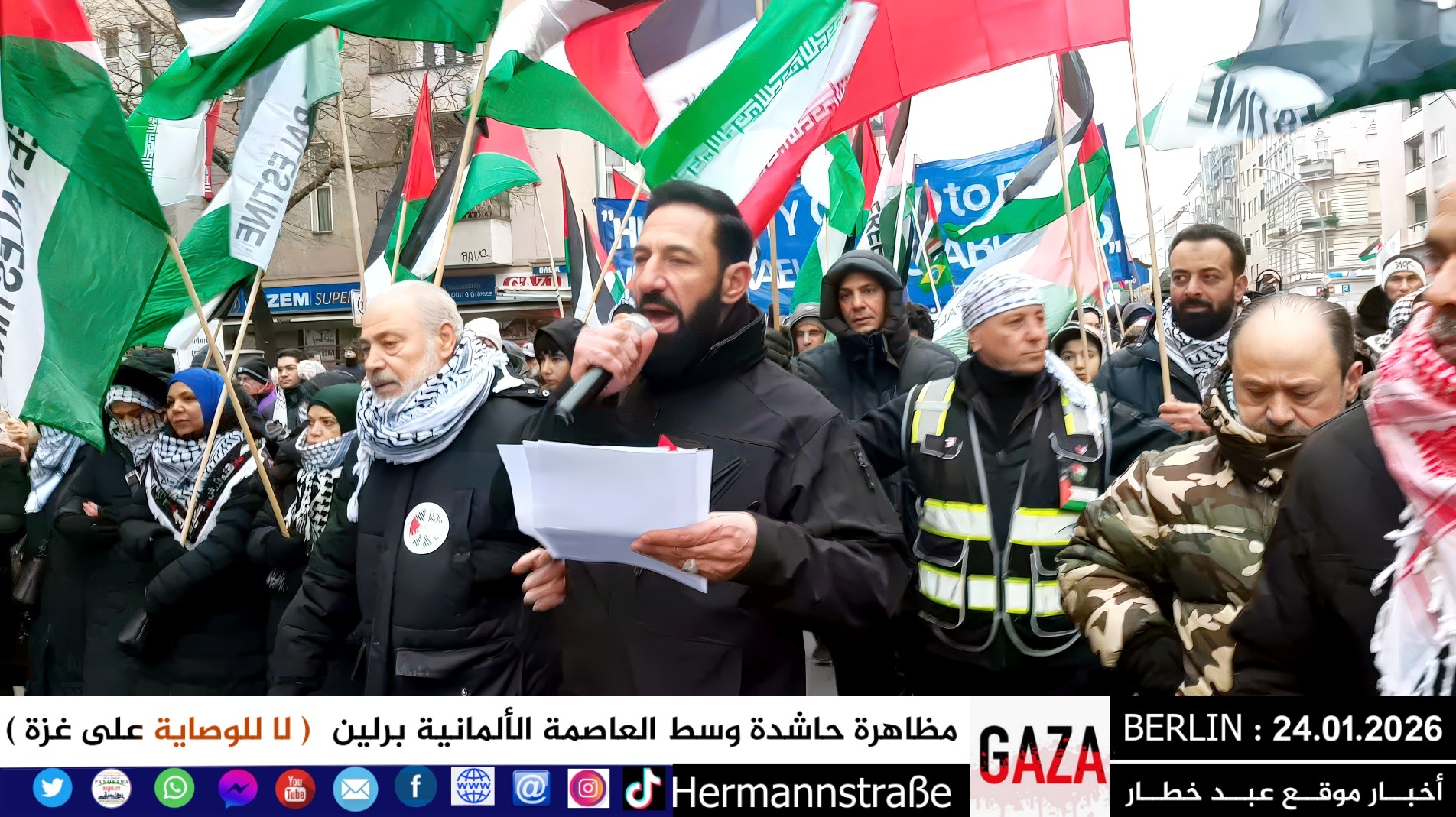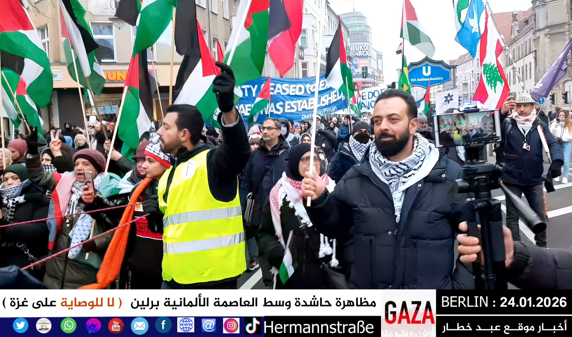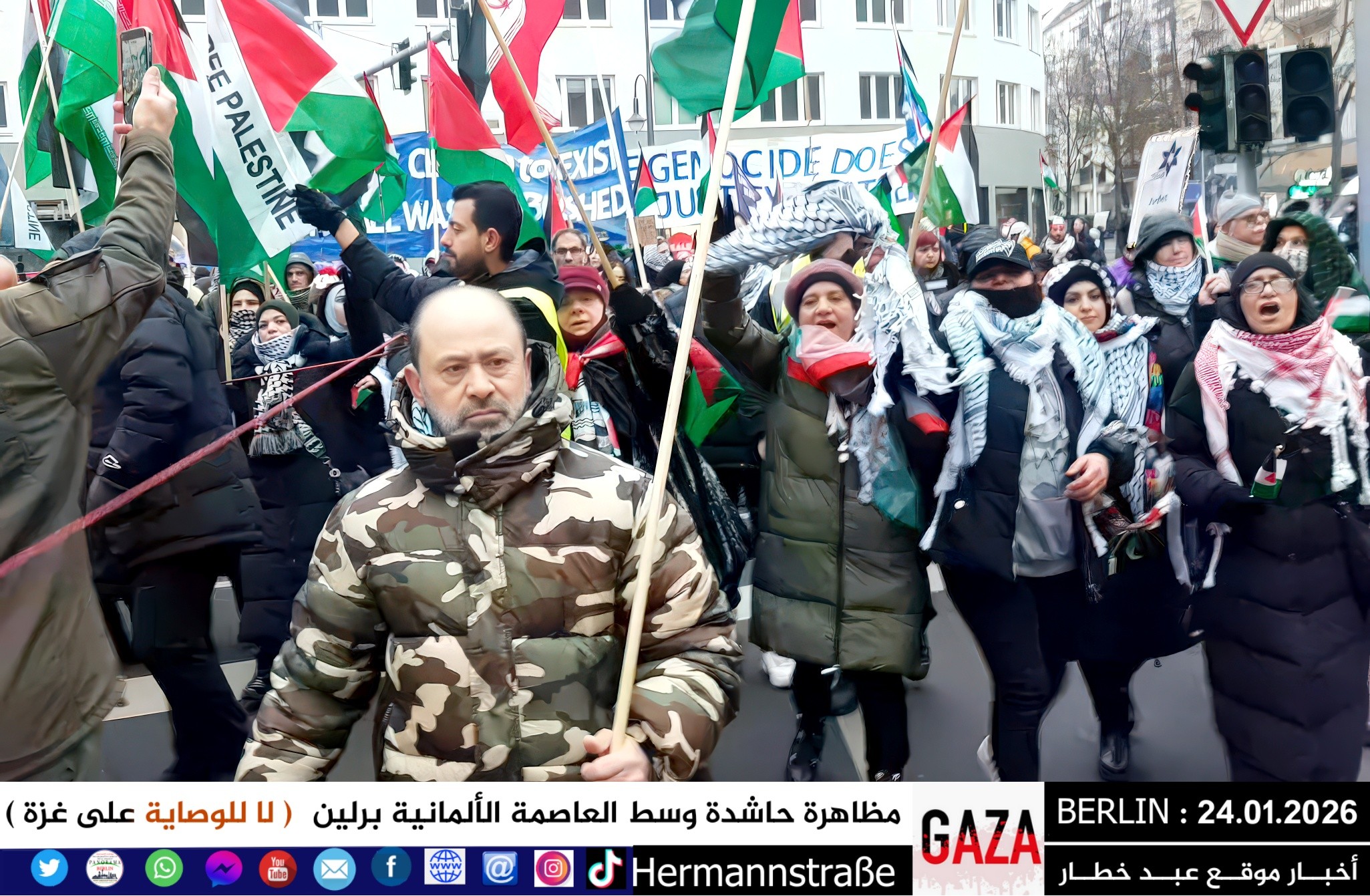 شهدت العاصمة الألمانية برلين اليوم مظاهرة جماهيرية حاشدة دعت إليها اللجنة الوطنية الفلسطينية الموحّدة، حيث تجمع المئات من أبناء الجالية الفلسطينية والعربية، إلى جانب متضامنين ألمان وأوروبيين، للتنديد بالعدوان المستمر على قطاع غزة والمطالبة بفتح المعابر فوراً وإنهاء الكارثة الإنسانية المتفاقمة.
