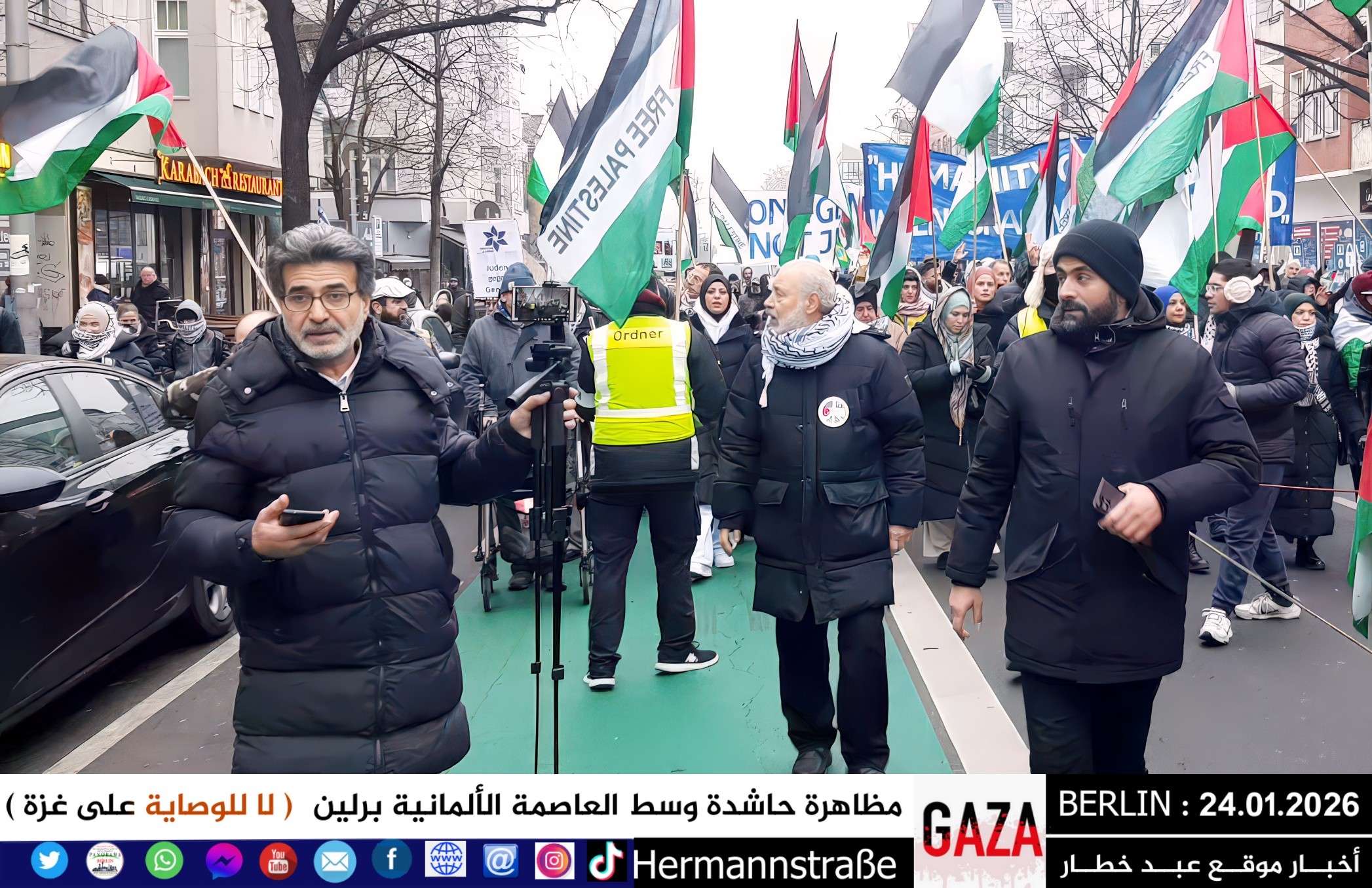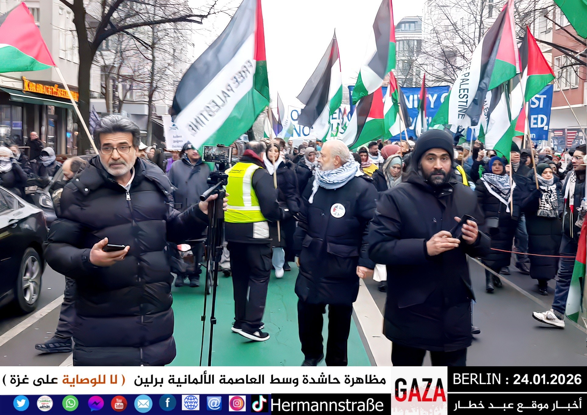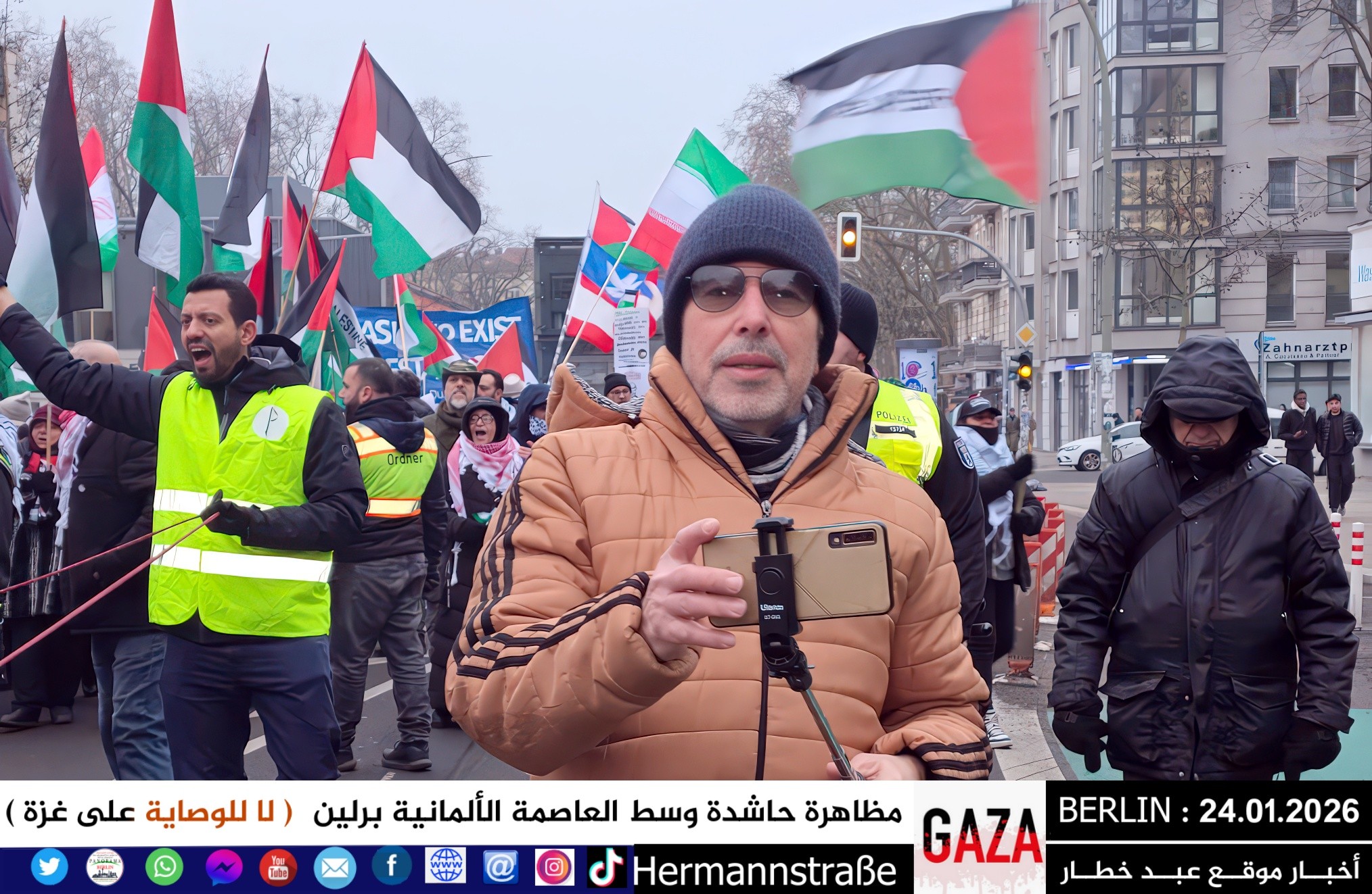 شهدت العاصمة الألمانية برلين اليوم مظاهرة جماهيرية حاشدة دعت إليها اللجنة الوطنية الفلسطينية الموحّدة، حيث تجمع المئات من أبناء الجالية الفلسطينية والعربية، إلى جانب متضامنين ألمان وأوروبيين، للتنديد بالعدوان المستمر على قطاع غزة والمطالبة بفتح المعابر فوراً وإنهاء الكارثة الإنسانية المتفاقمة.