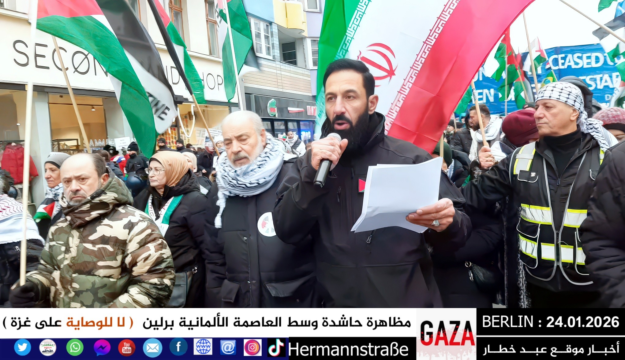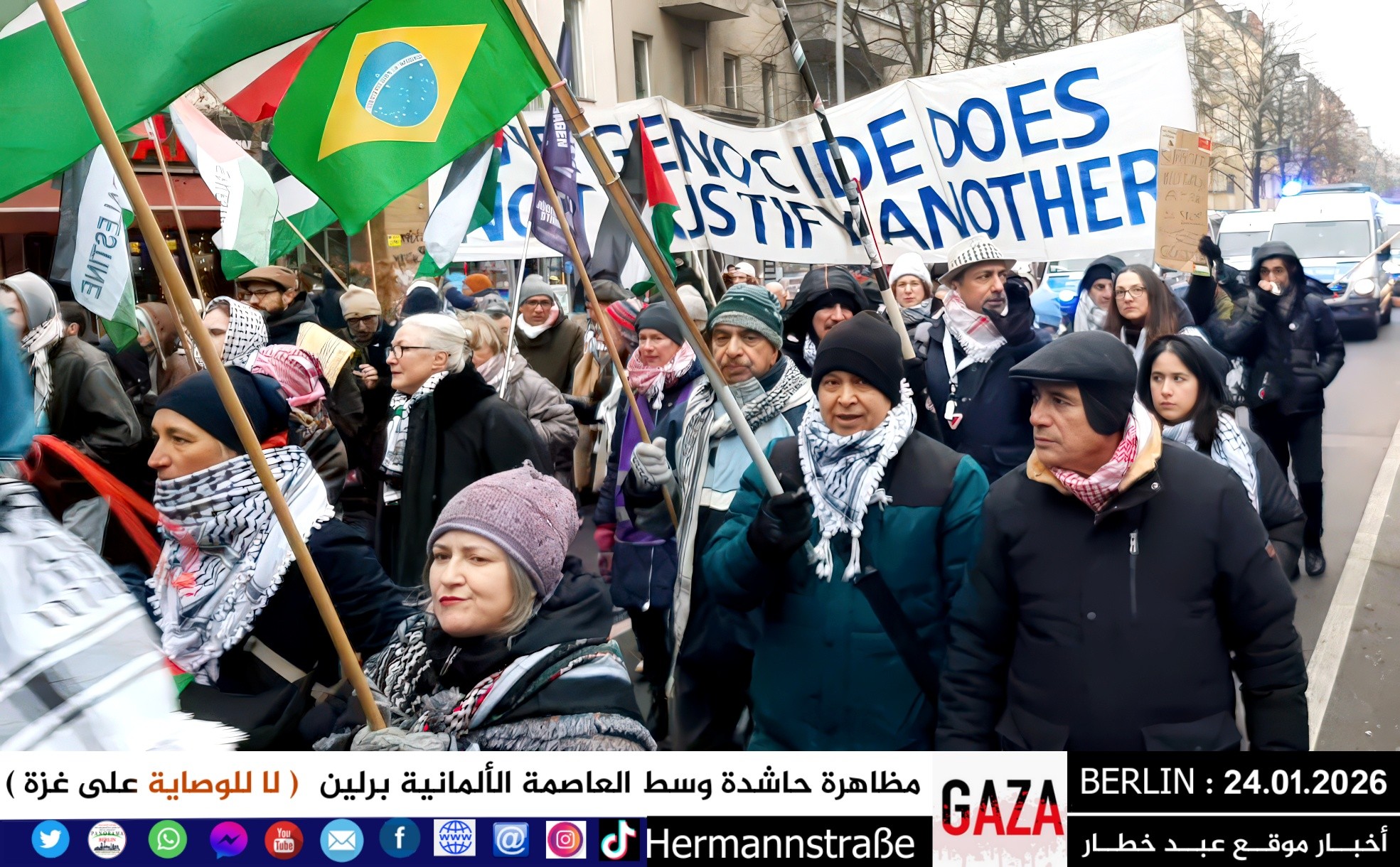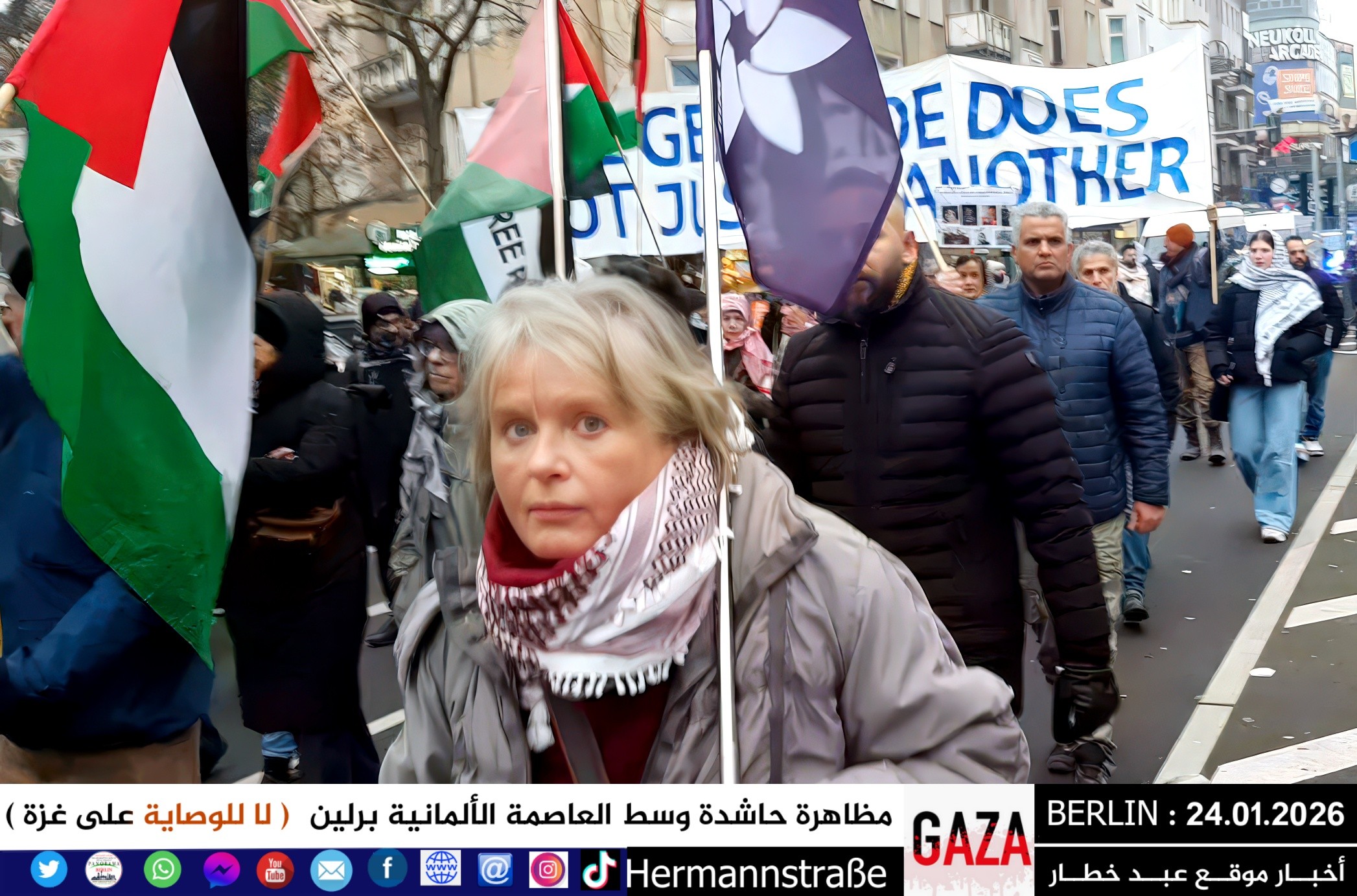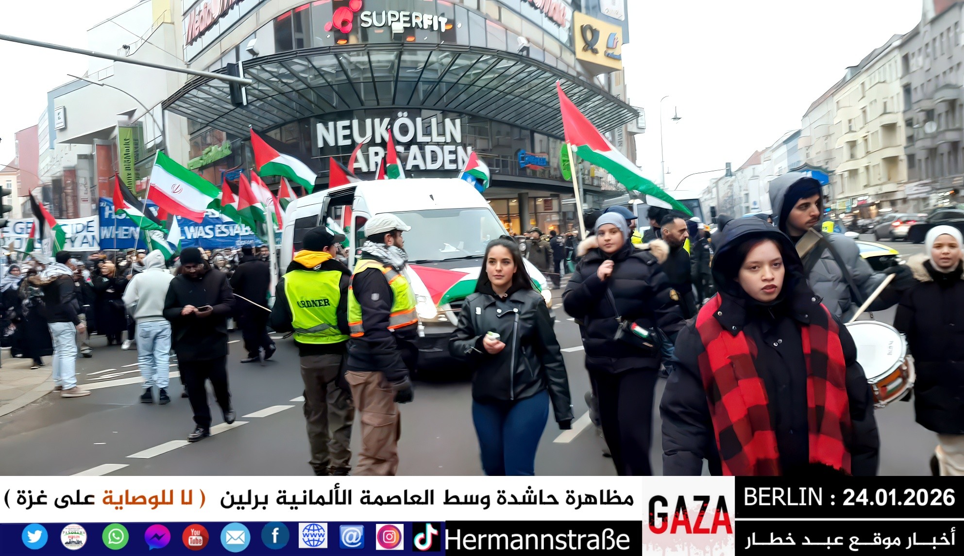 شهدت العاصمة الألمانية برلين اليوم مظاهرة جماهيرية حاشدة دعت إليها اللجنة الوطنية الفلسطينية الموحّدة، حيث تجمع المئات من أبناء الجالية الفلسطينية والعربية، إلى جانب متضامنين ألمان وأوروبيين، للتنديد بالعدوان المستمر على قطاع غزة والمطالبة بفتح المعابر فوراً وإنهاء الكارثة الإنسانية المتفاقمة.