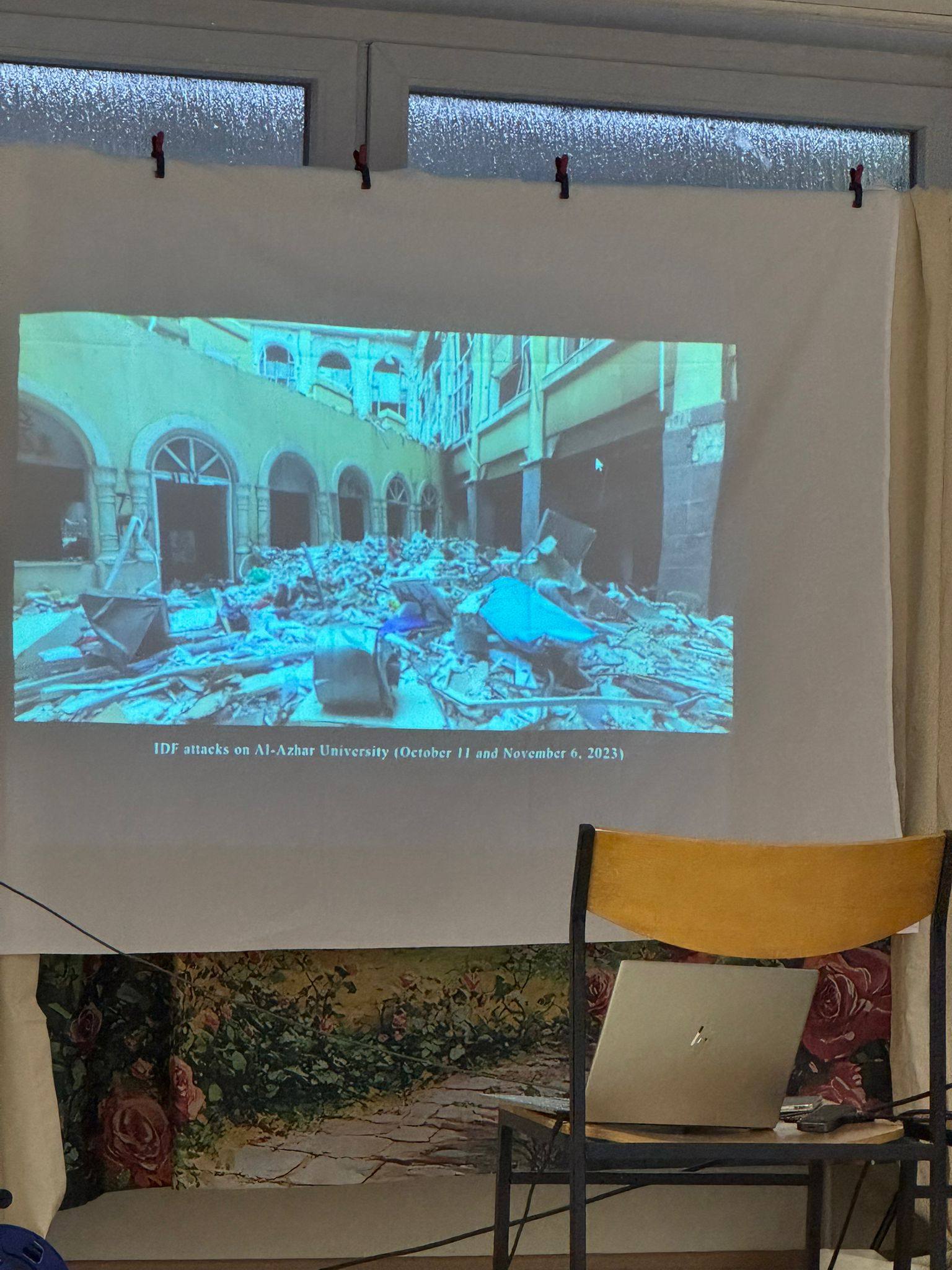 4. شاشة الحقيقة: عرضت الفعالية مقابلات حية ومسجلة لأهالي غزة من مختلف الأعمار، شرحوا خلالها الواقع المأساوي والظروف الإنسانية الصعبة في القطاع، مما ترك أثراً عميقاً لدى المتضامنين الأجانب.
