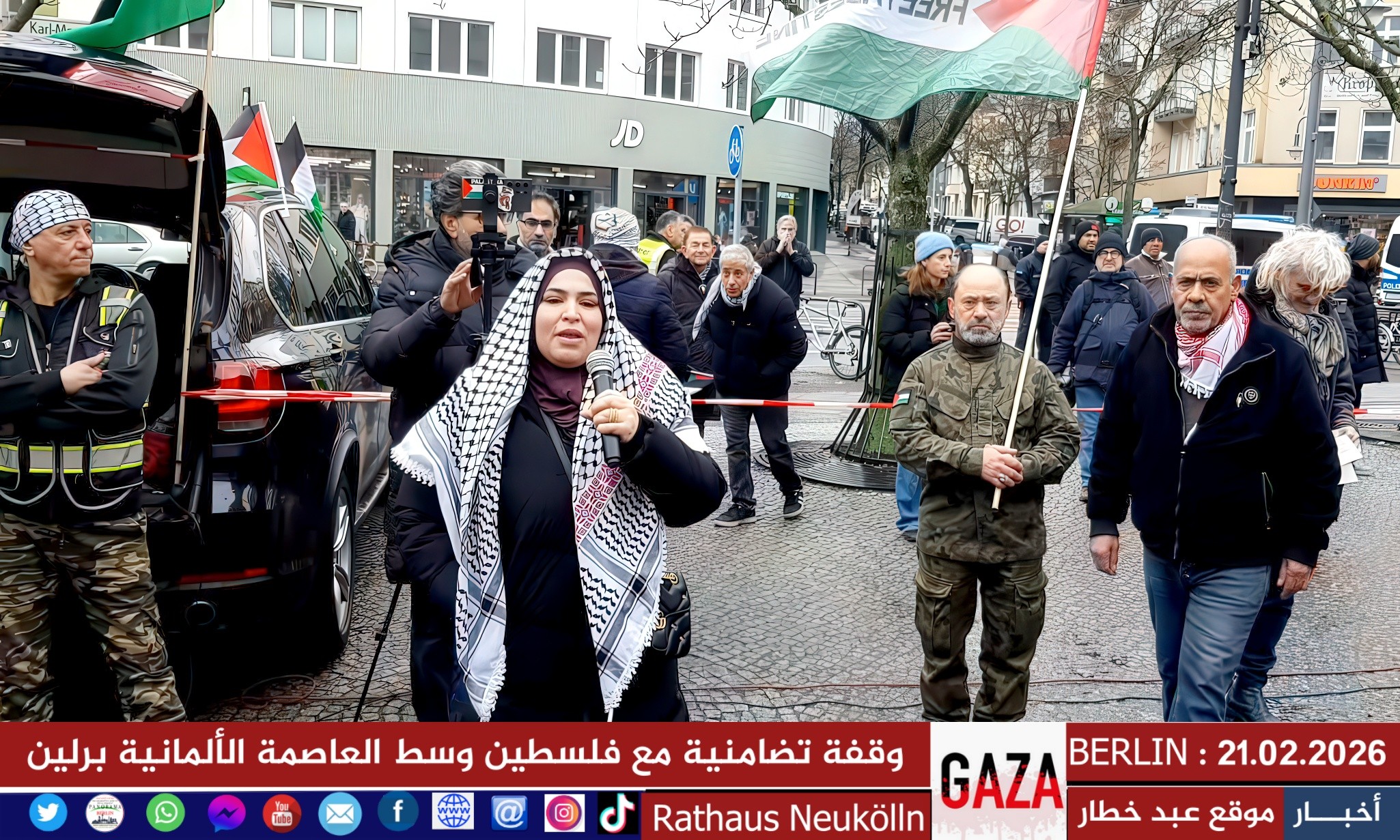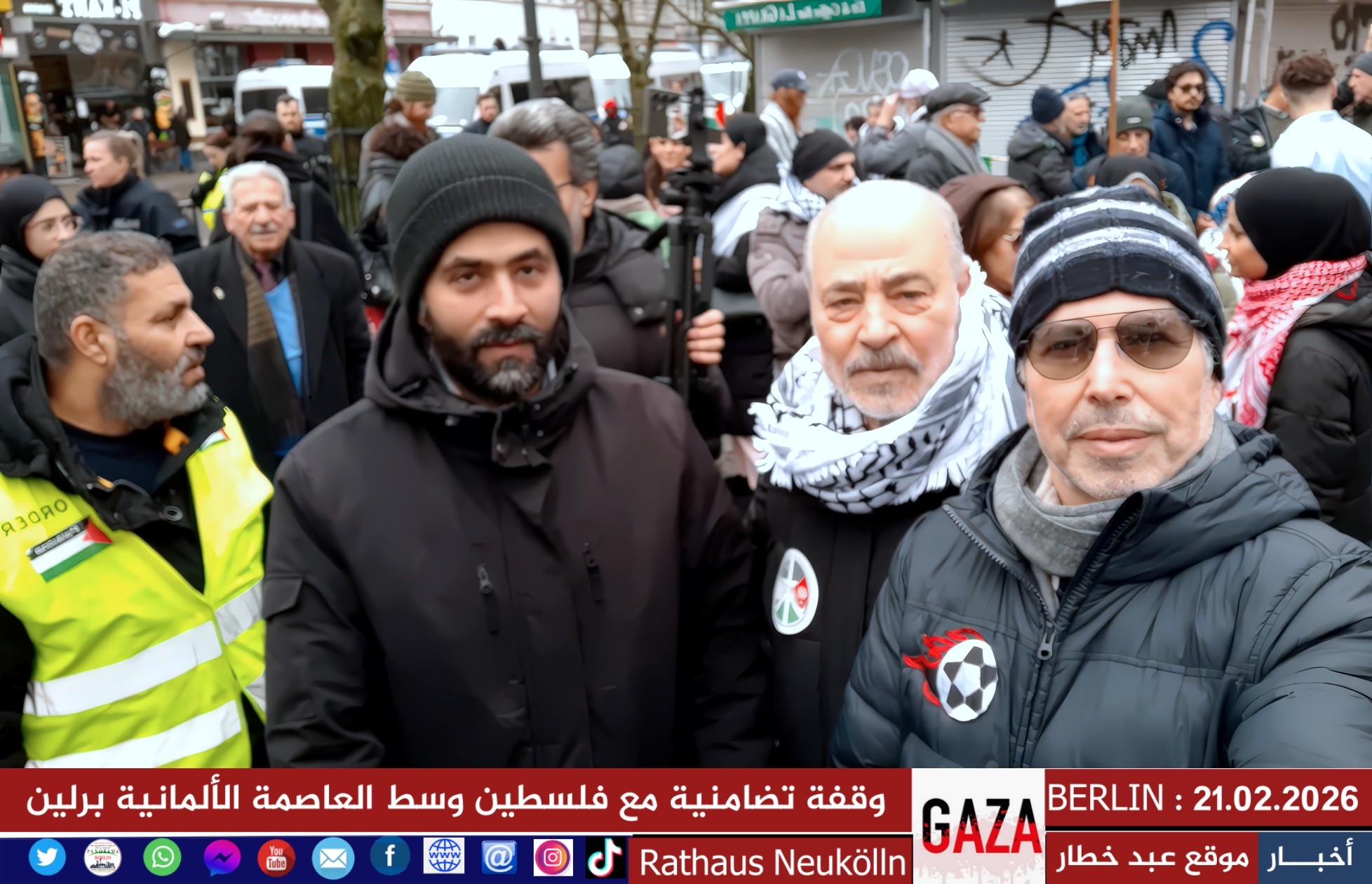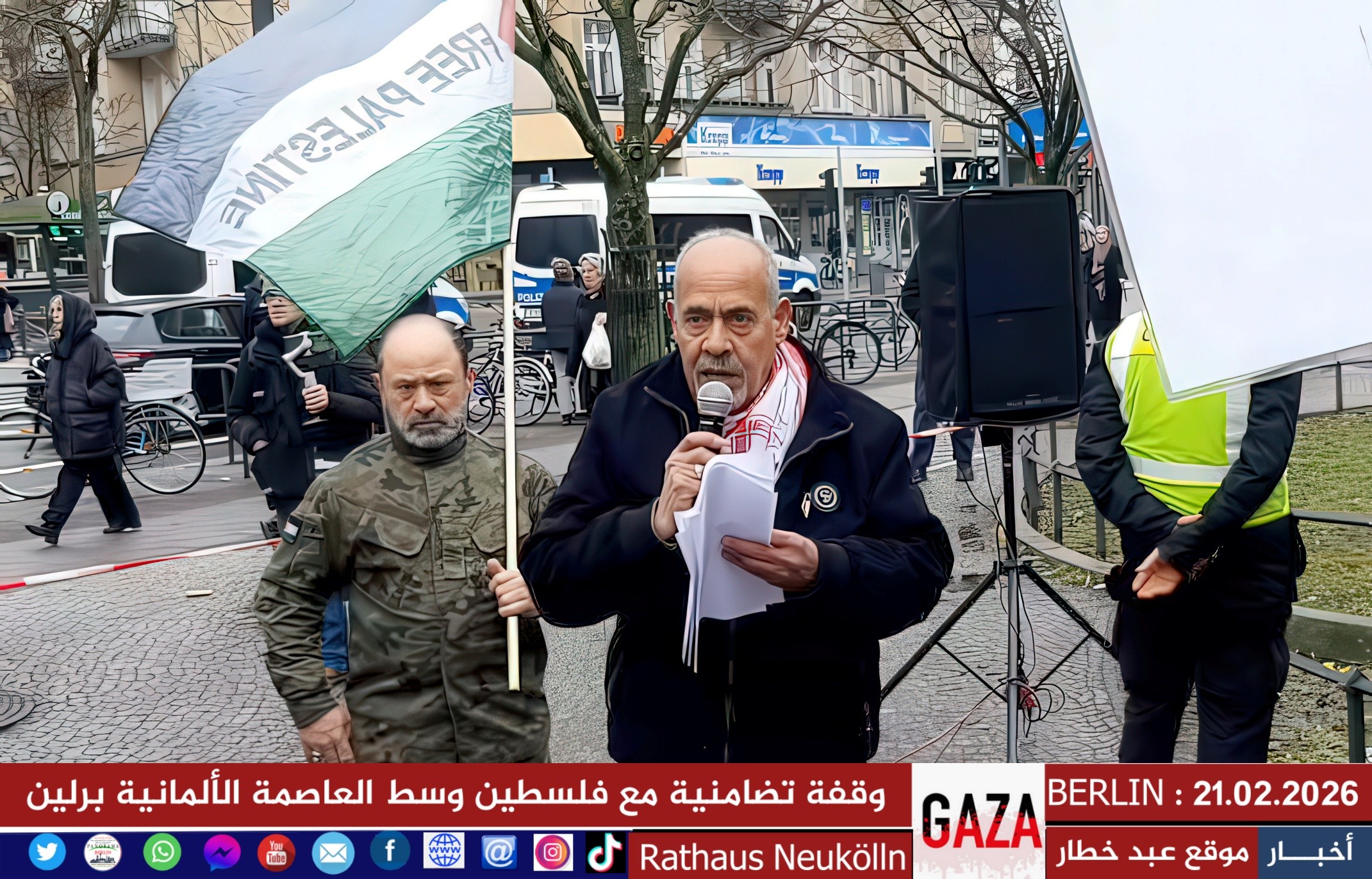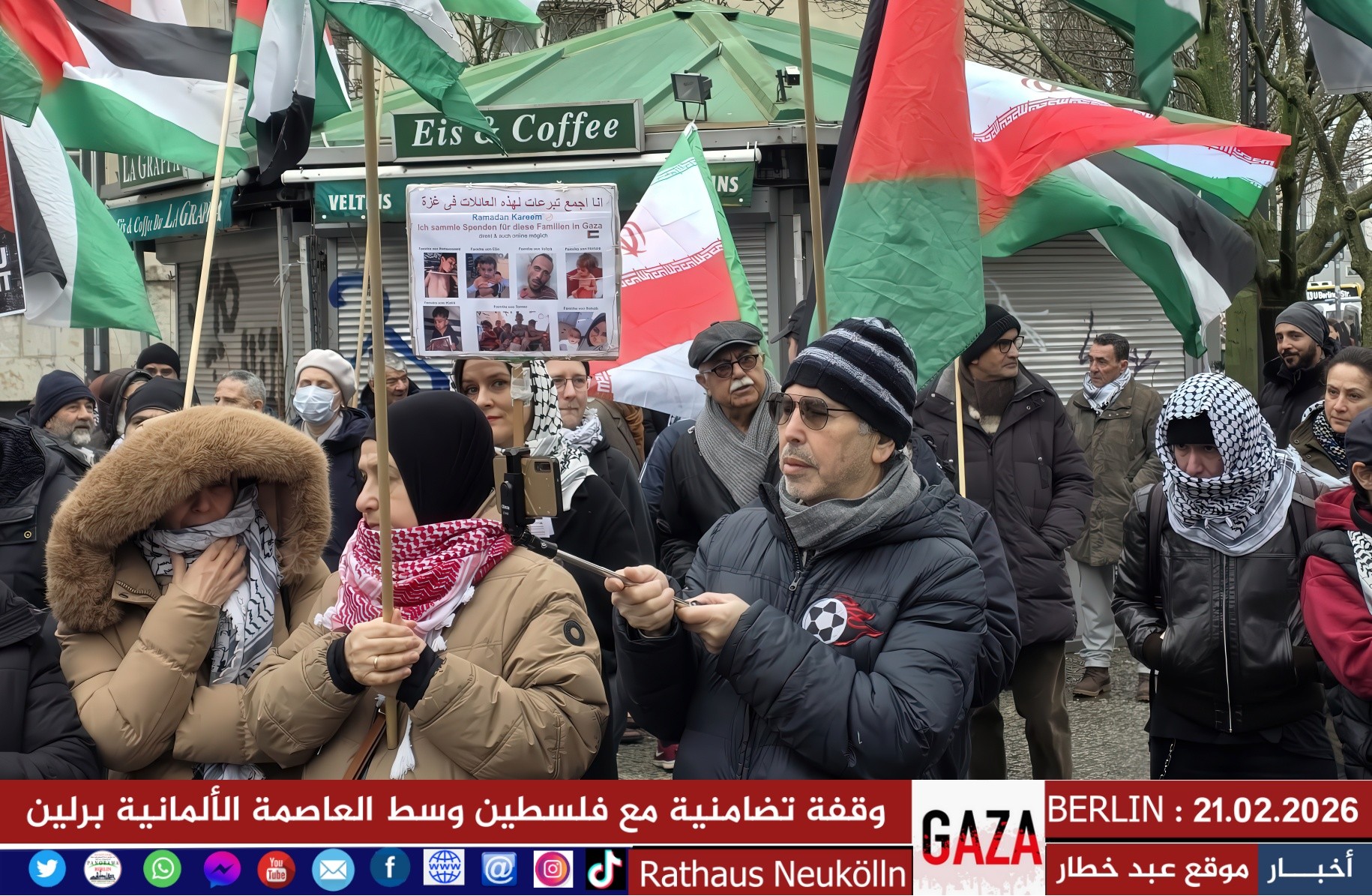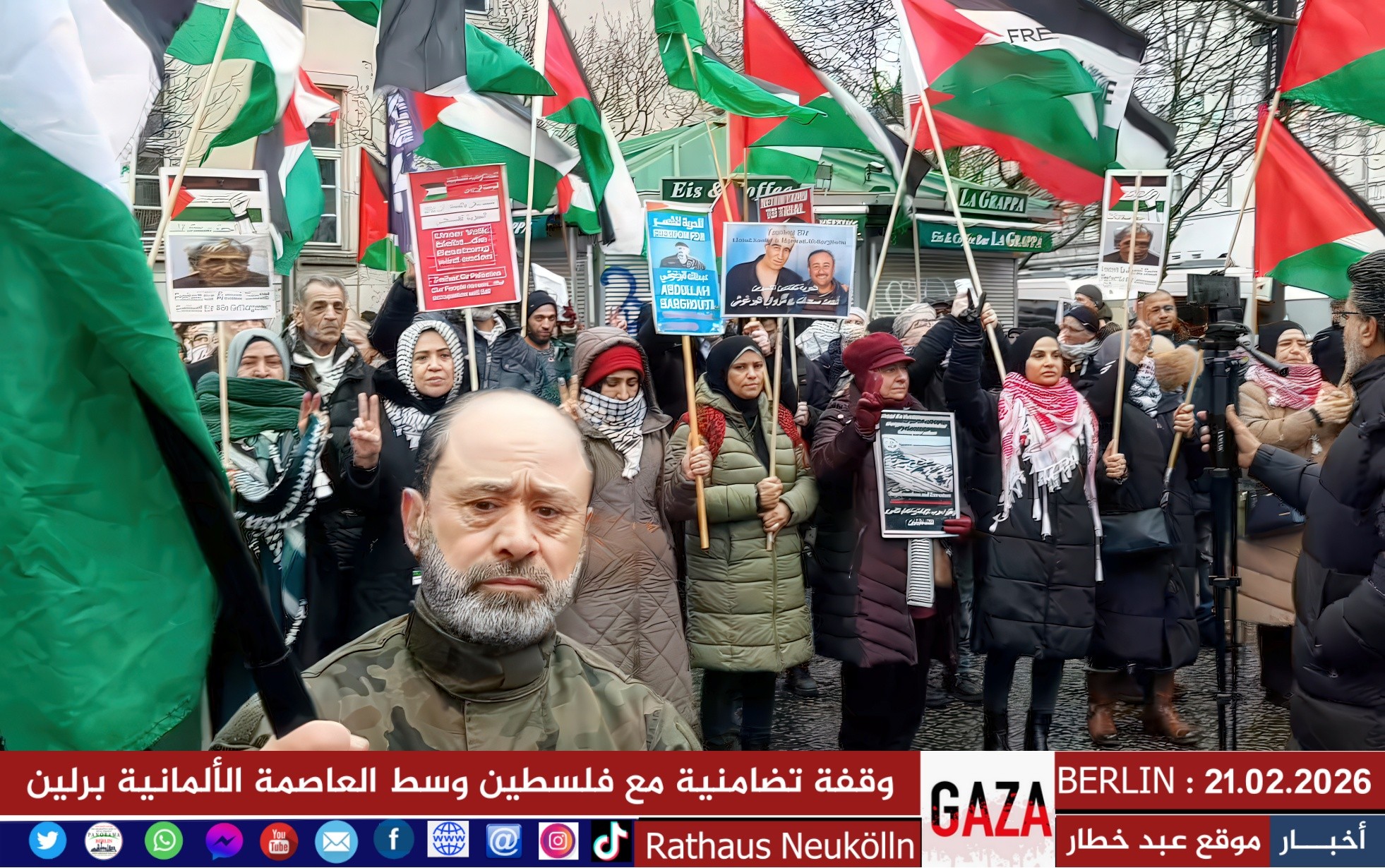 بدعوة من اللجنة الوطنية الفلسطينية الموحدة في برلين، نُظّمت يوم السبت الموافق 21 شباط/فبراير 2026 وقفة تضامن مع فلسطين وغزة