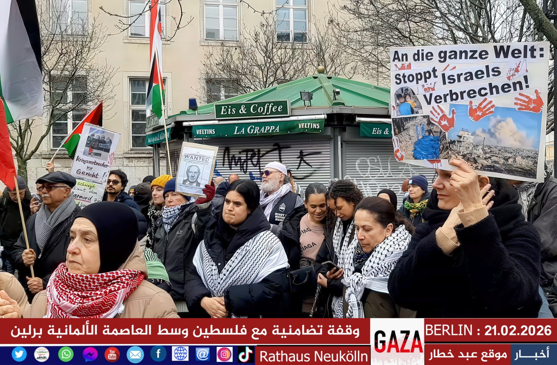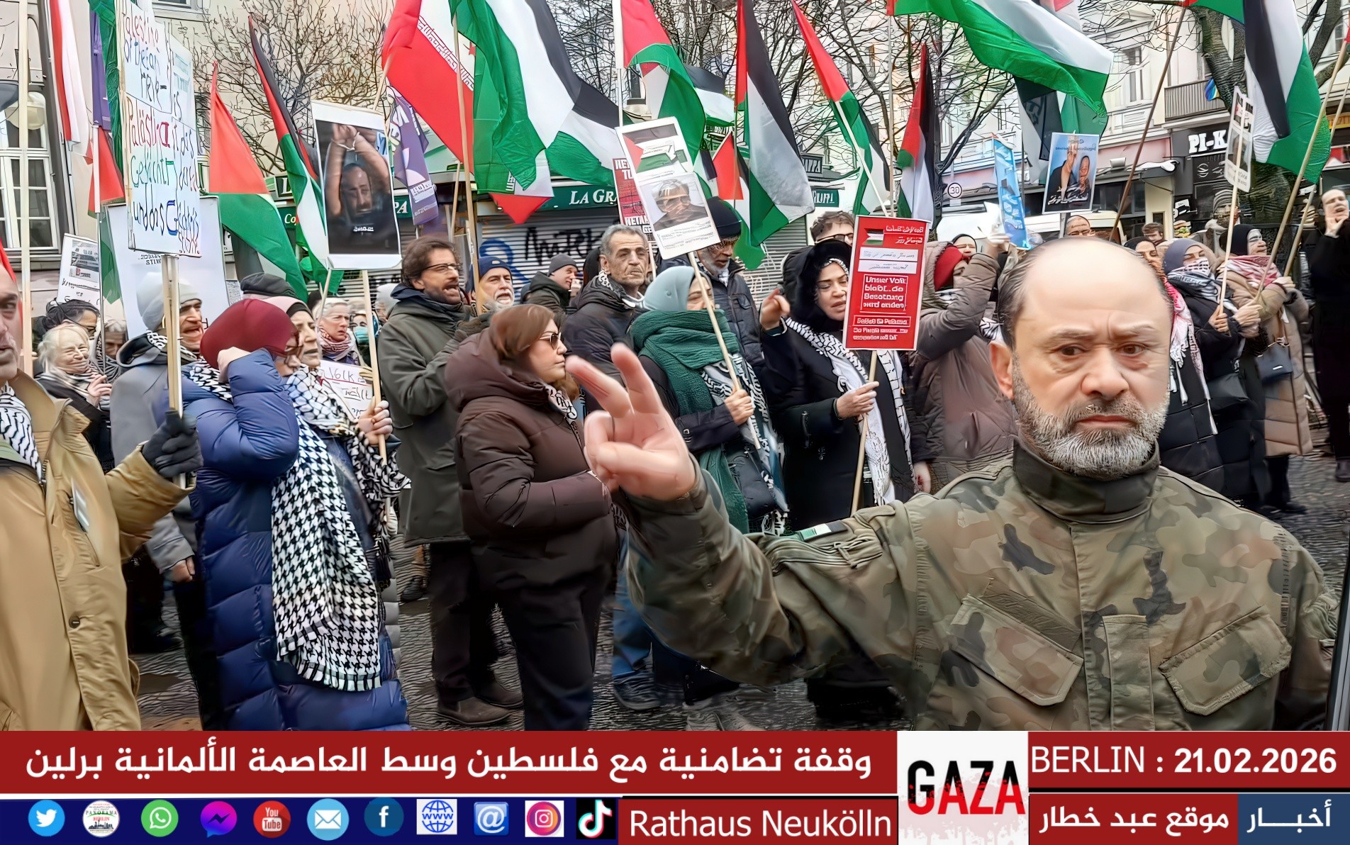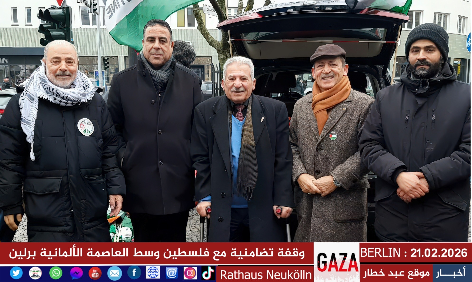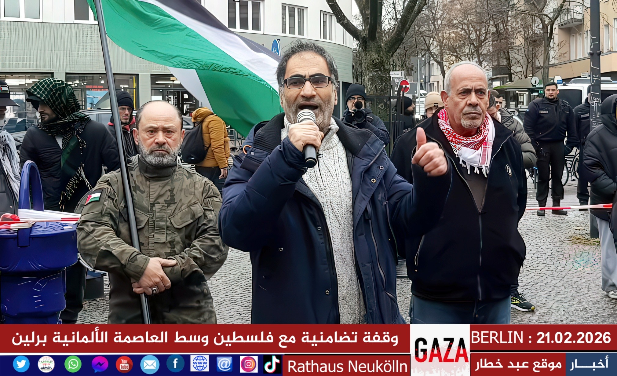 بدعوة من اللجنة الوطنية الفلسطينية الموحدة في برلين، نُظّمت يوم السبت الموافق 21 شباط/فبراير 2026 وقفة تضامن مع فلسطين وغزة
