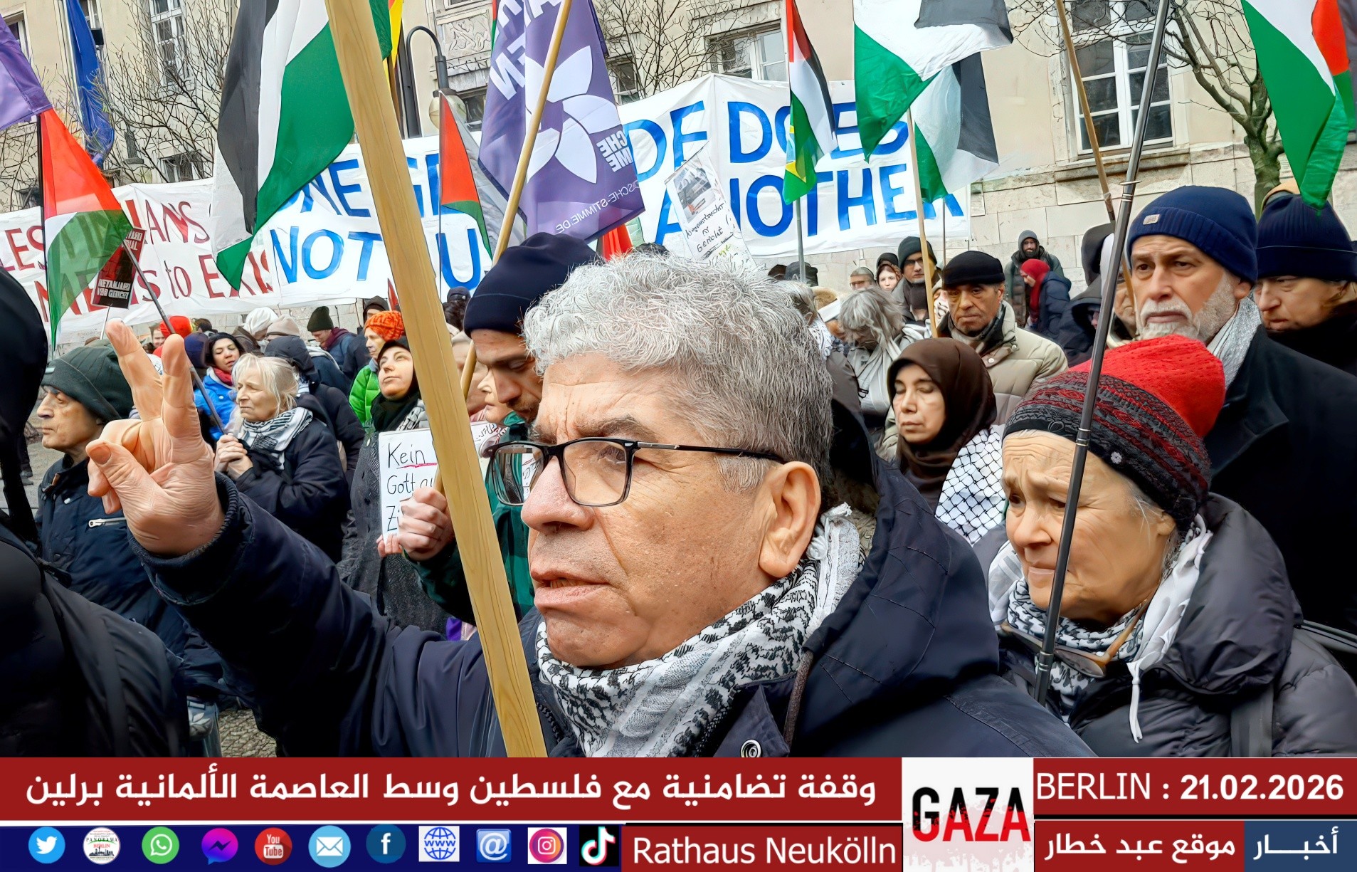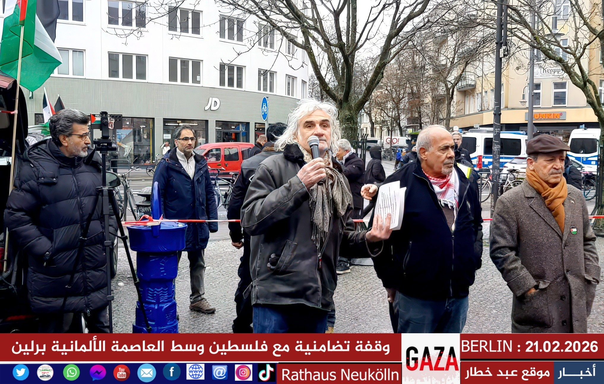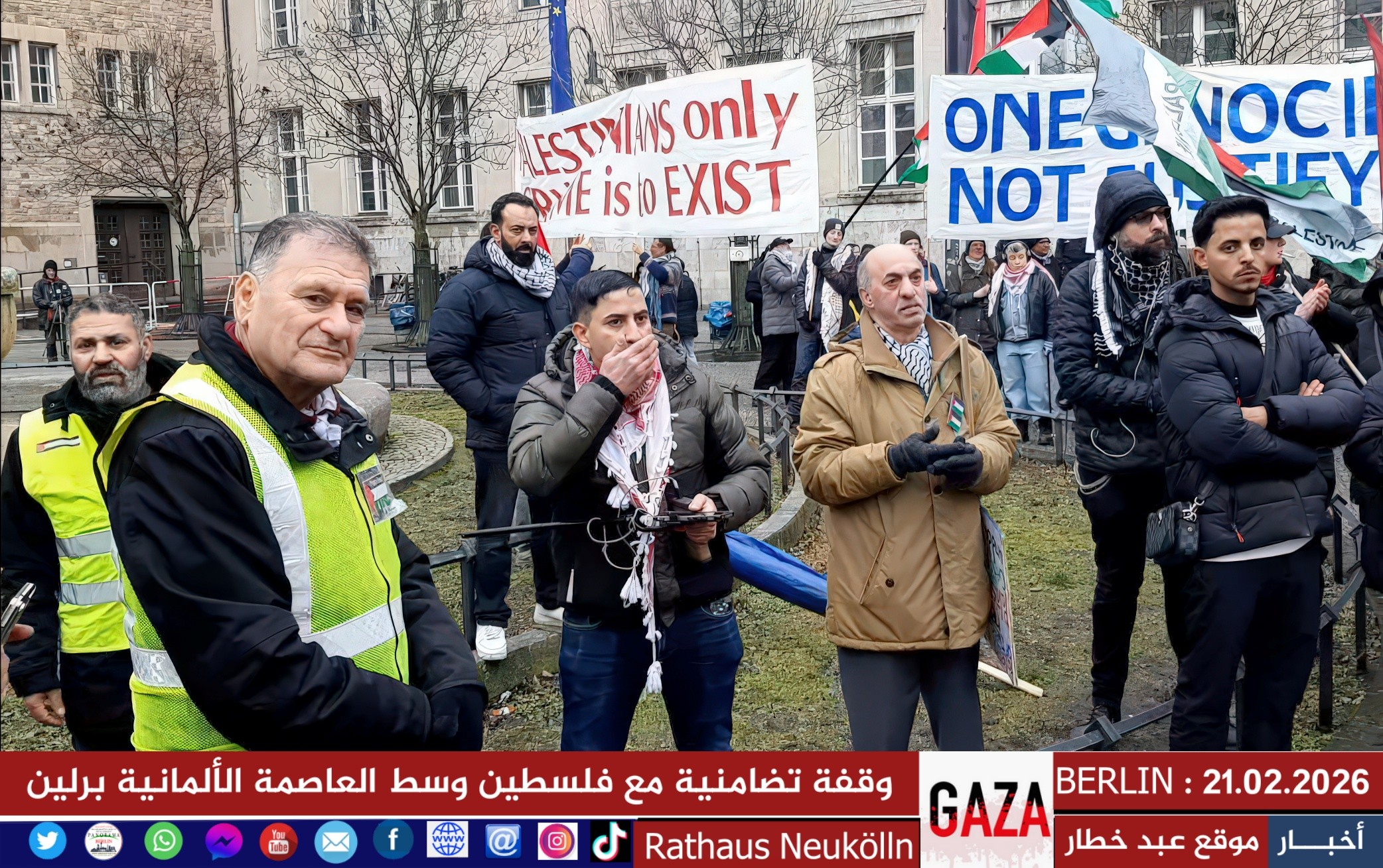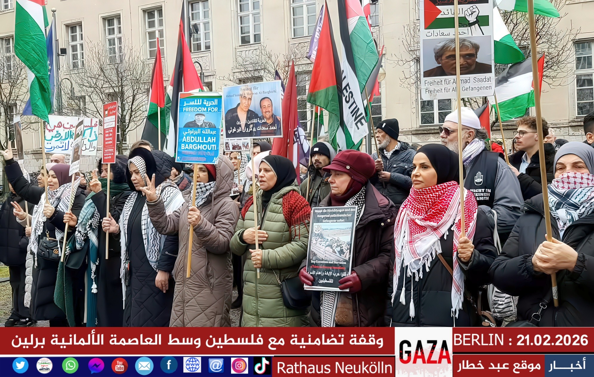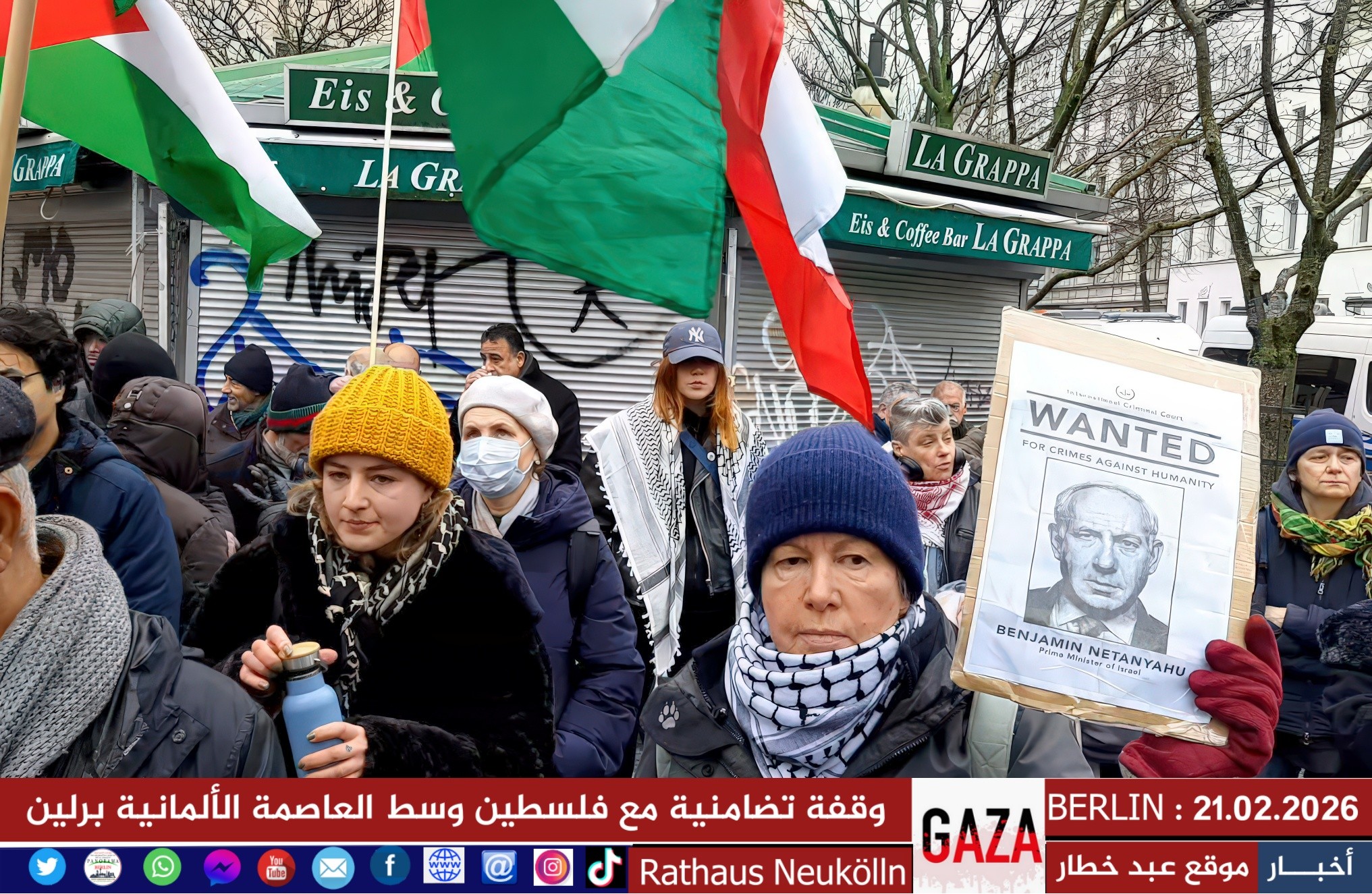 بدعوة من اللجنة الوطنية الفلسطينية الموحدة في برلين، نُظّمت يوم السبت الموافق 21 شباط/فبراير 2026 وقفة تضامن مع فلسطين وغزة