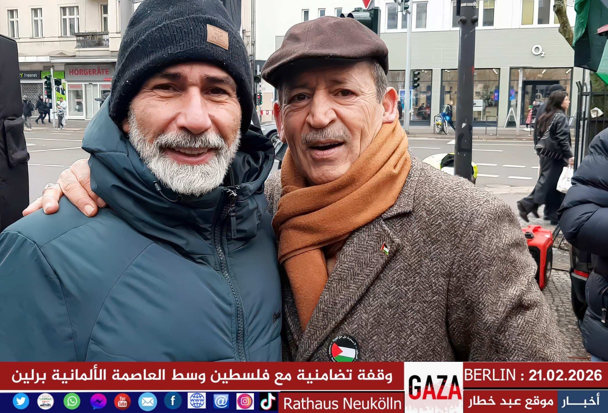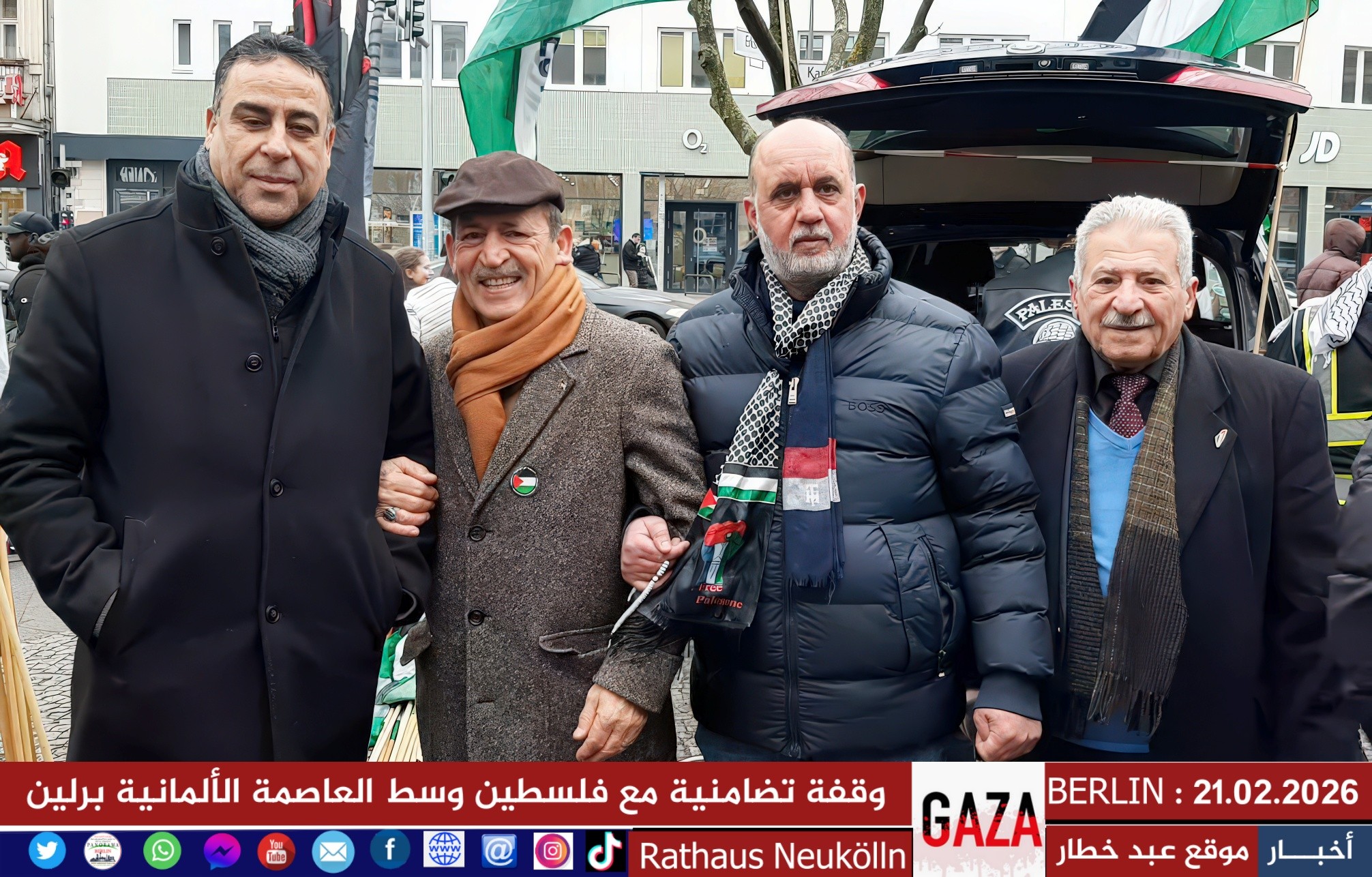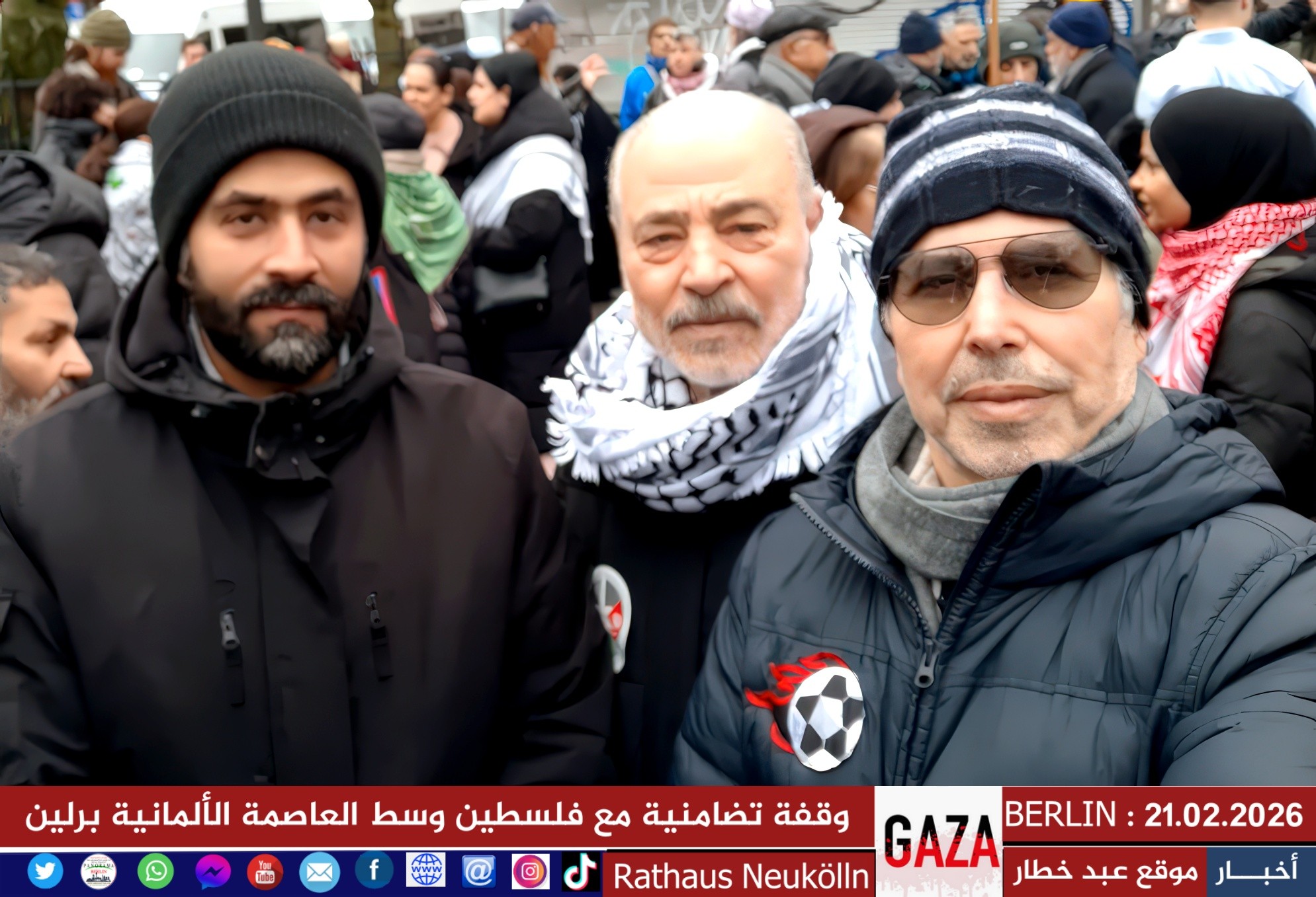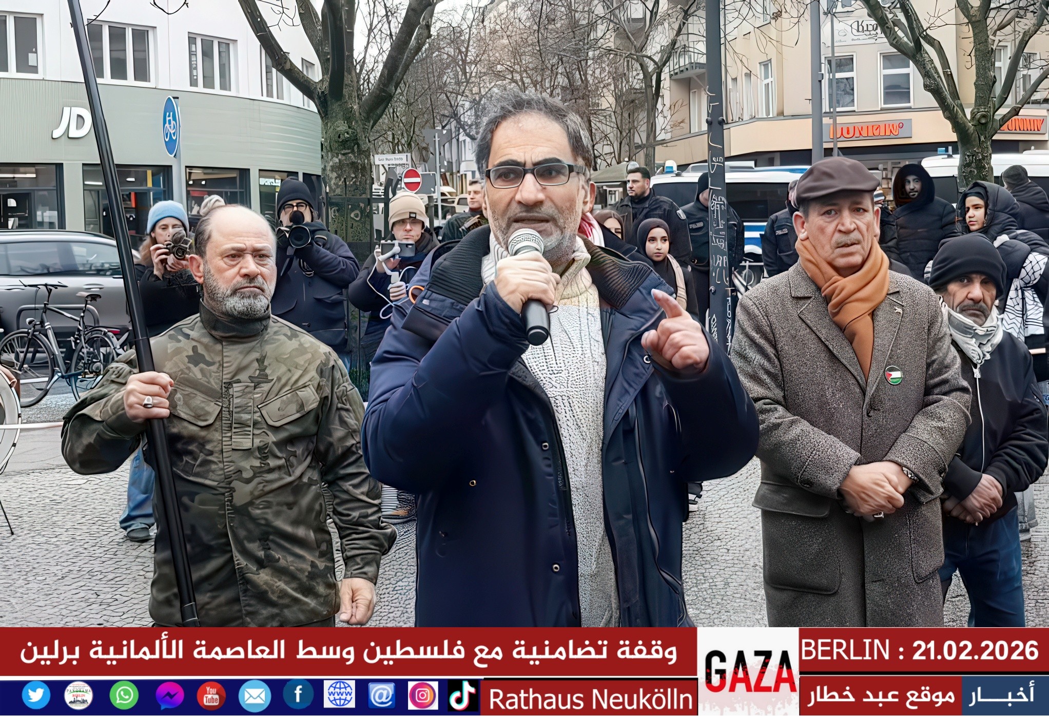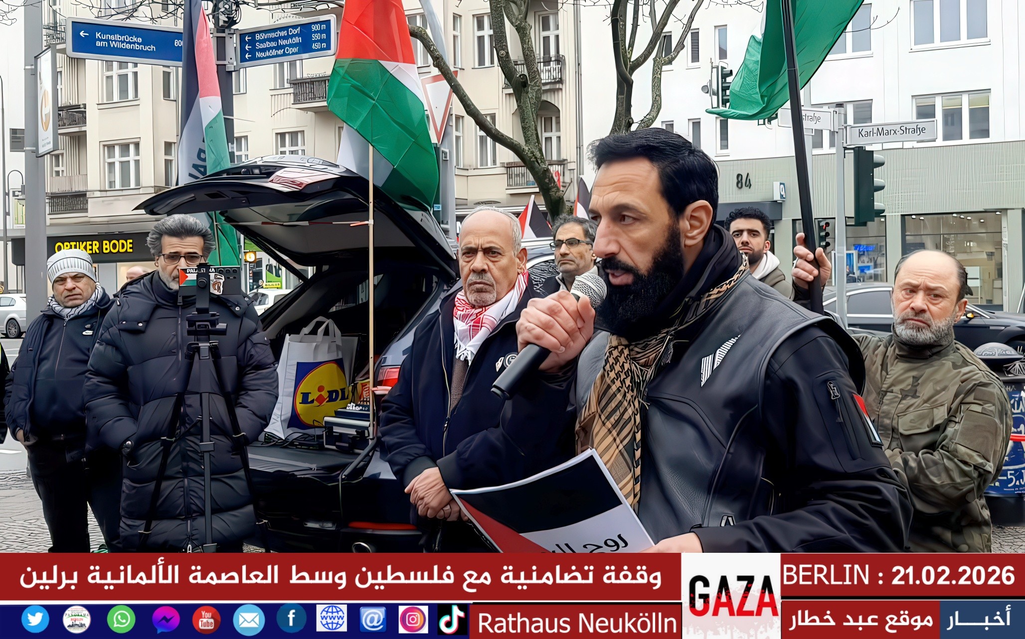 بدعوة من اللجنة الوطنية الفلسطينية الموحدة في برلين، نُظّمت يوم السبت الموافق 21 شباط/فبراير 2026 وقفة تضامن مع فلسطين وغزة