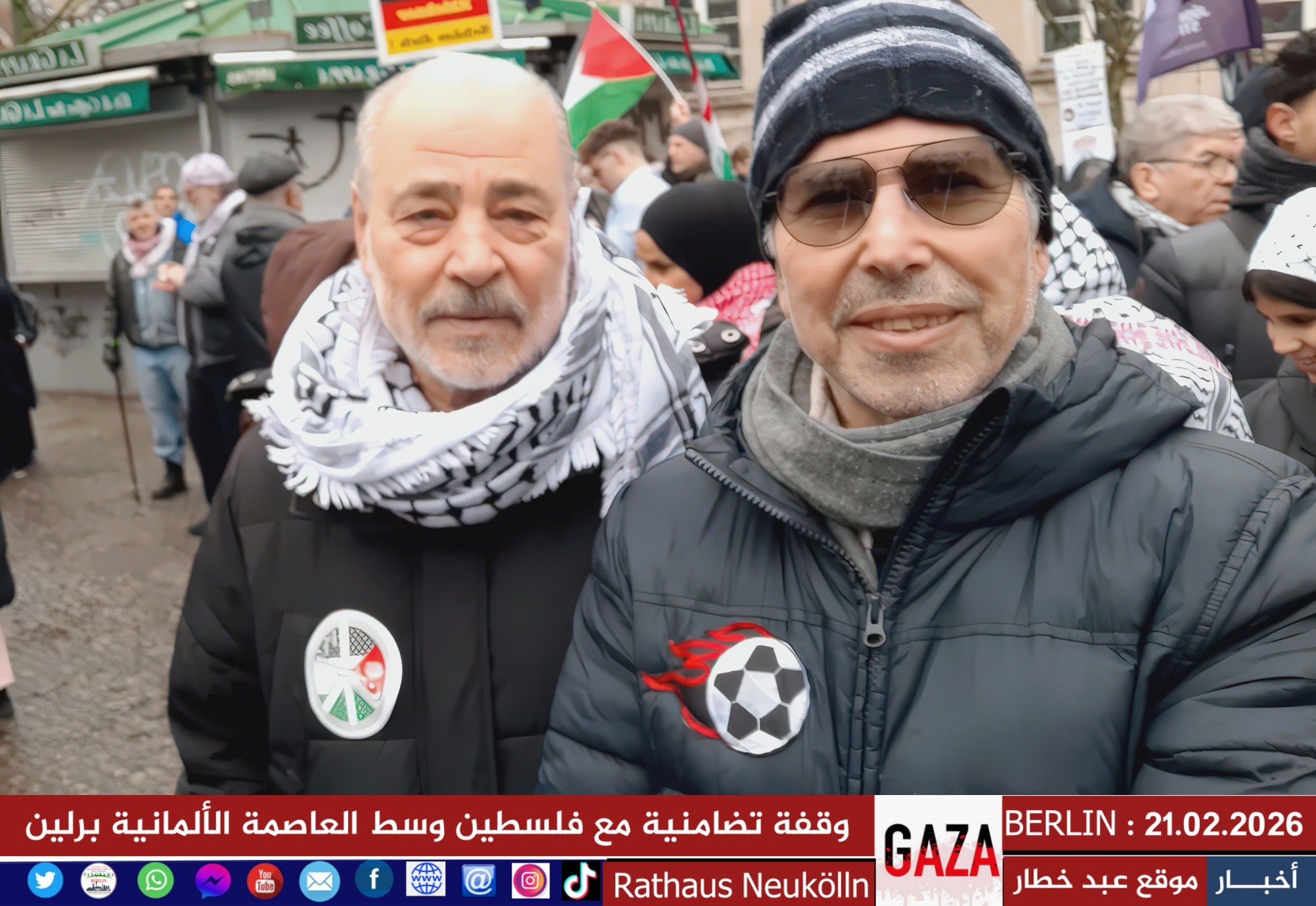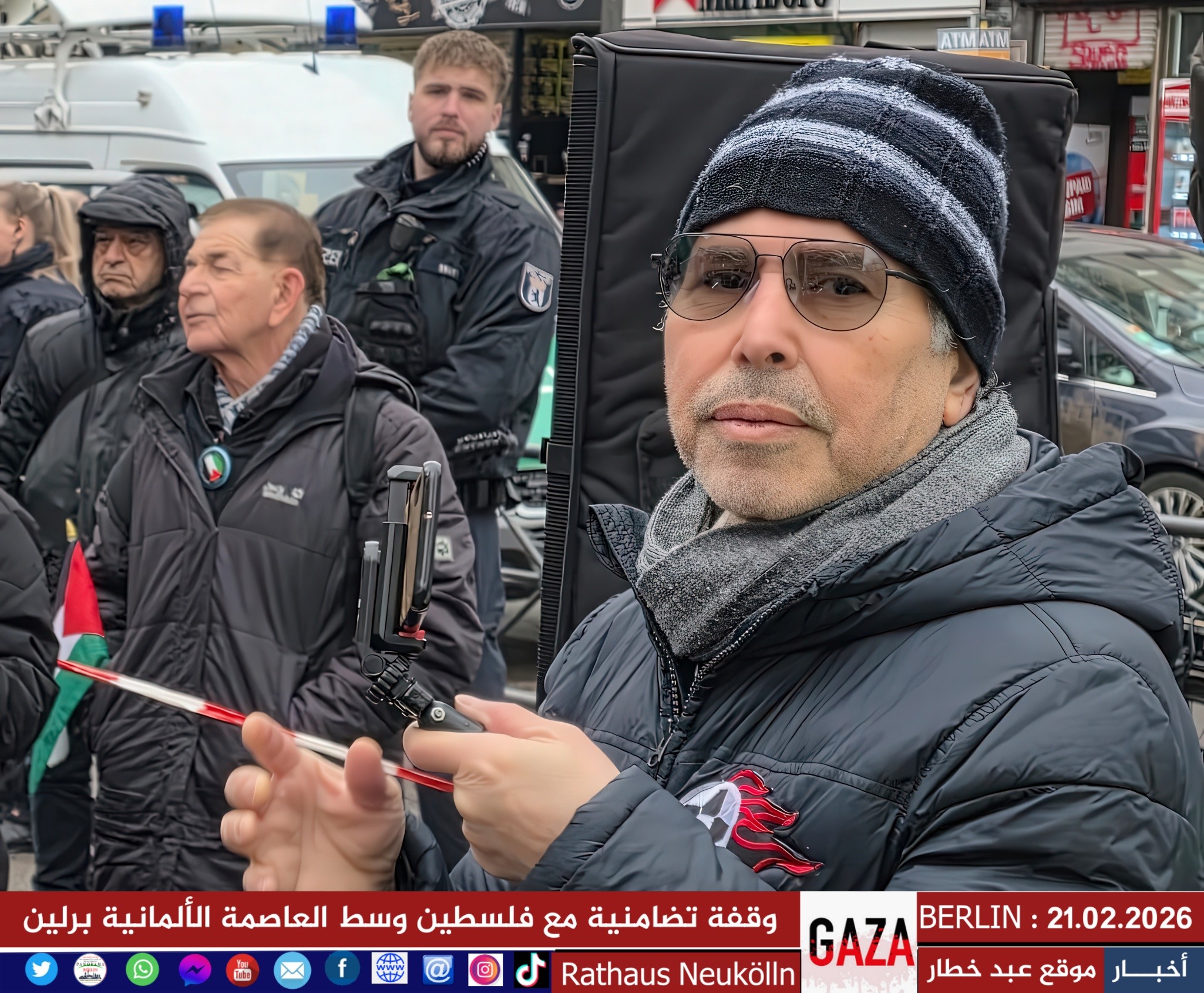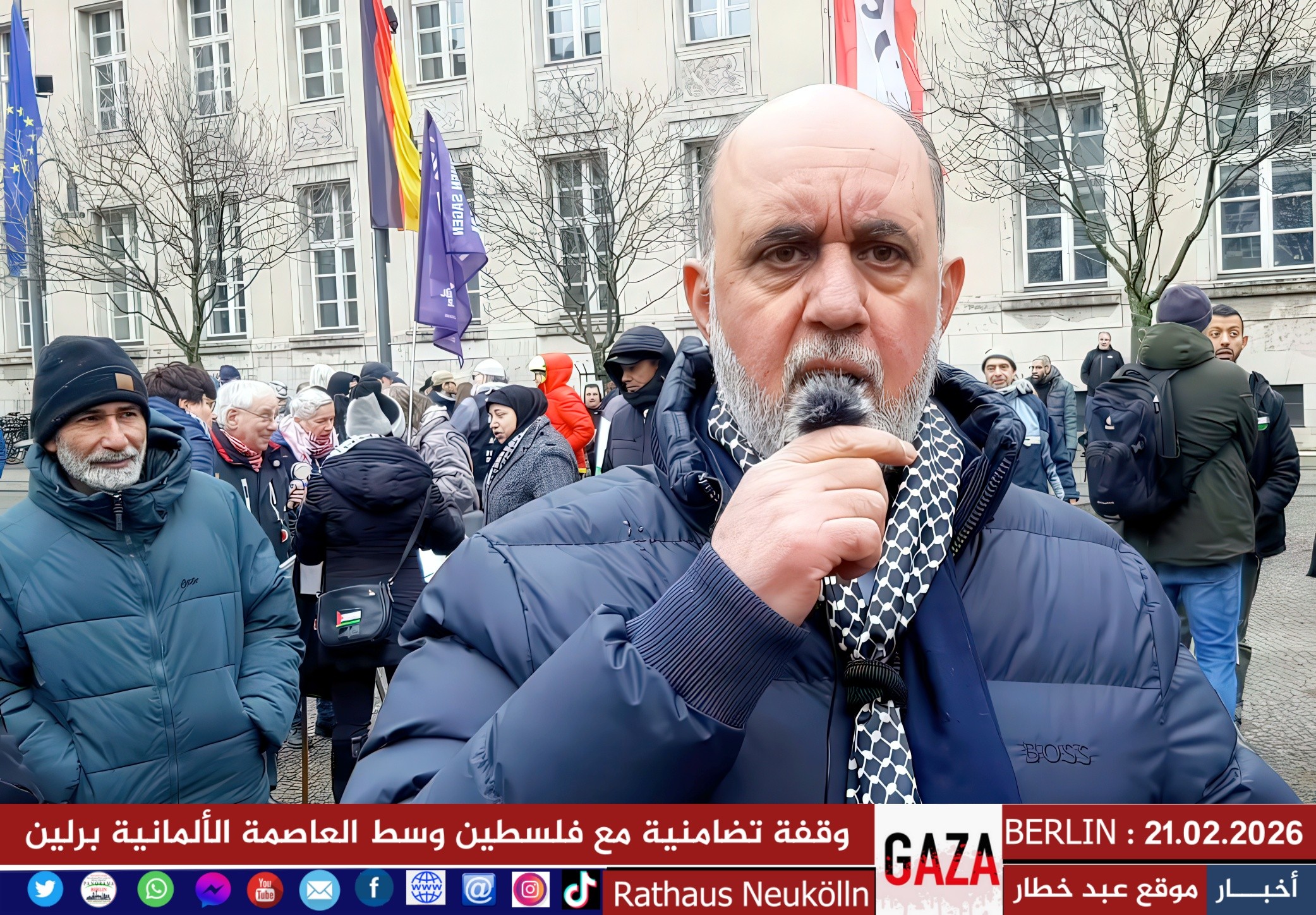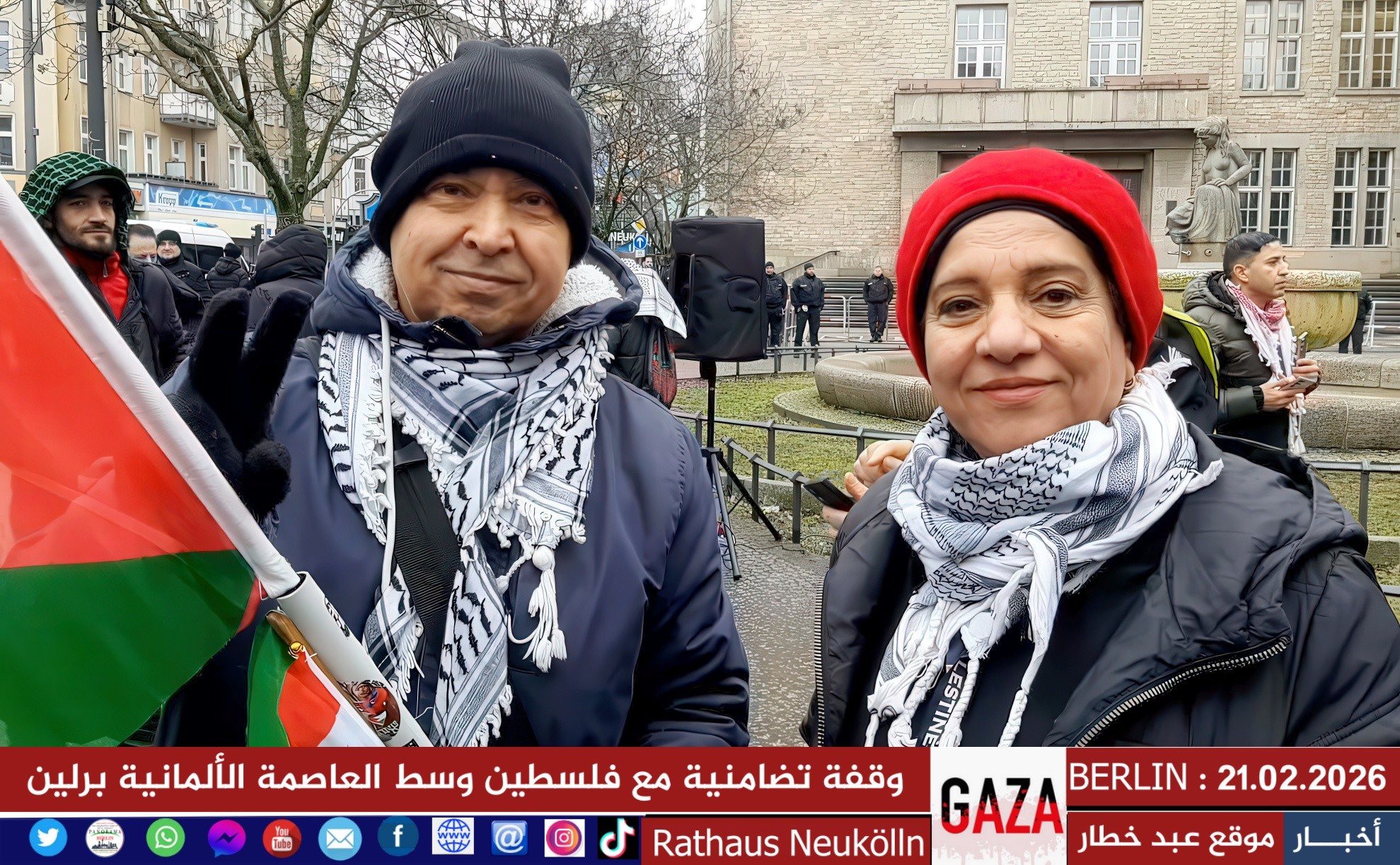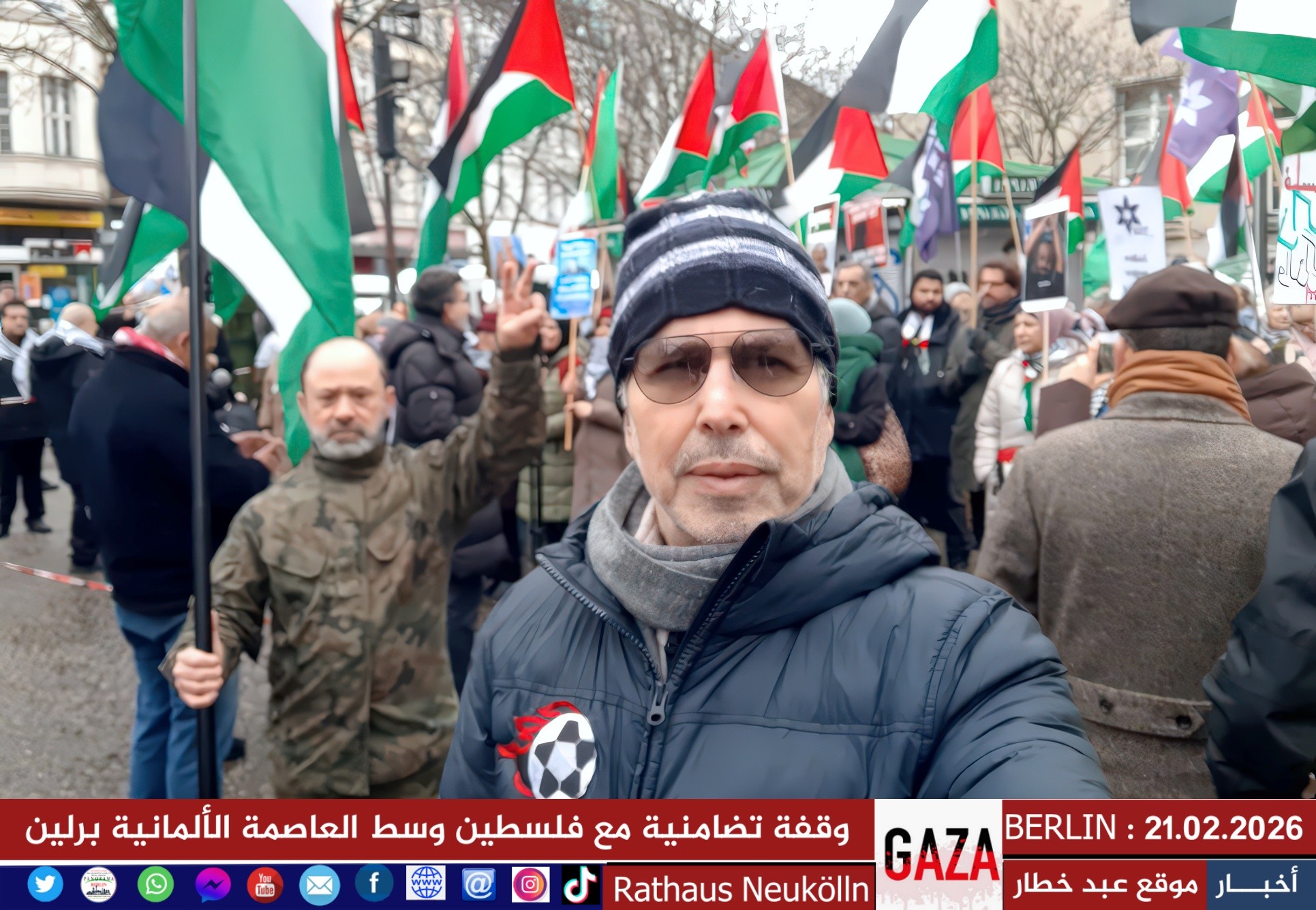 بدعوة من اللجنة الوطنية الفلسطينية الموحدة في برلين، نُظّمت يوم السبت الموافق 21 شباط/فبراير 2026 وقفة تضامن مع فلسطين وغزة