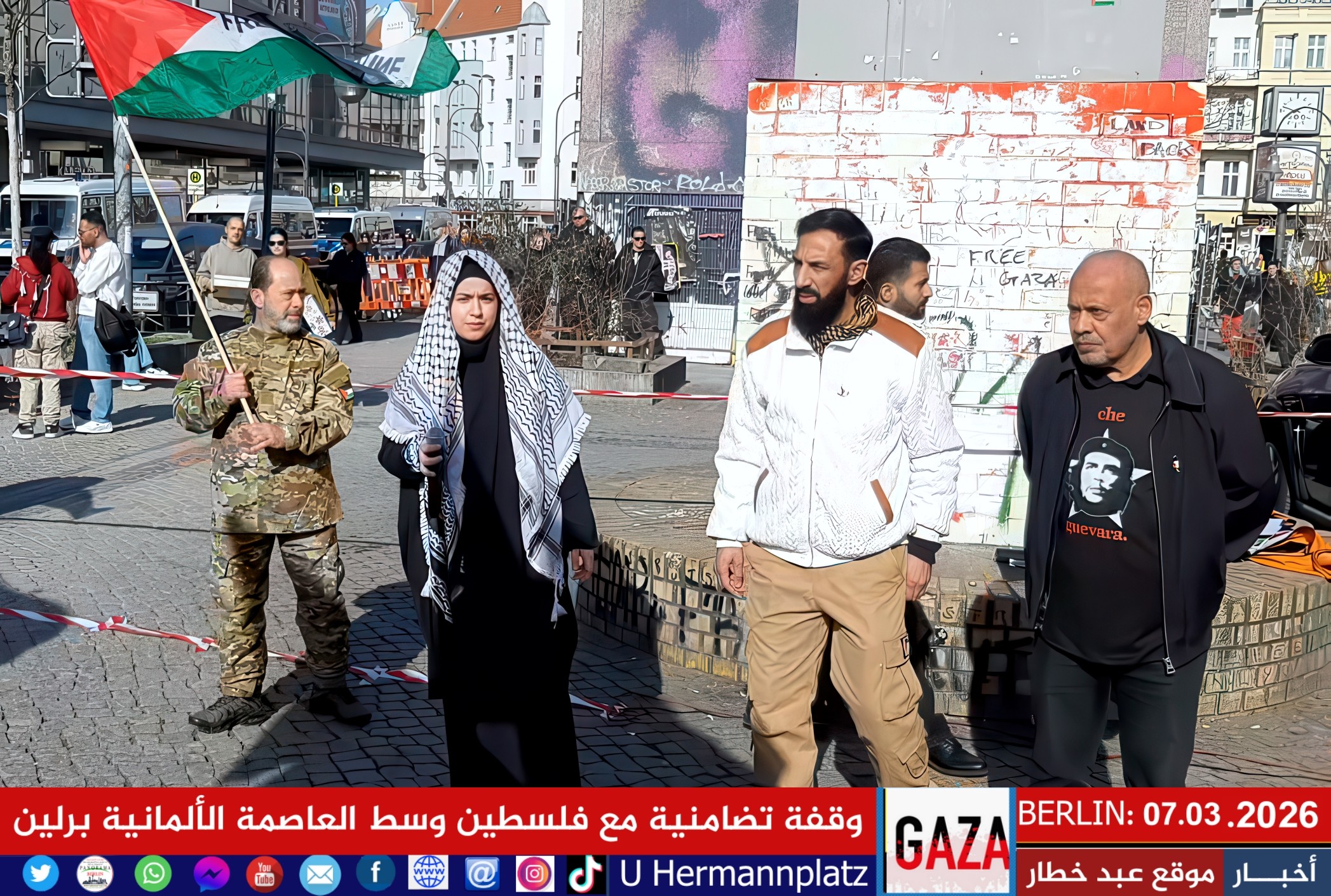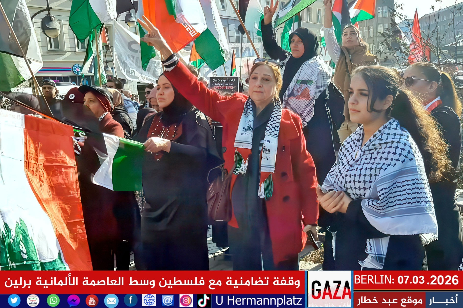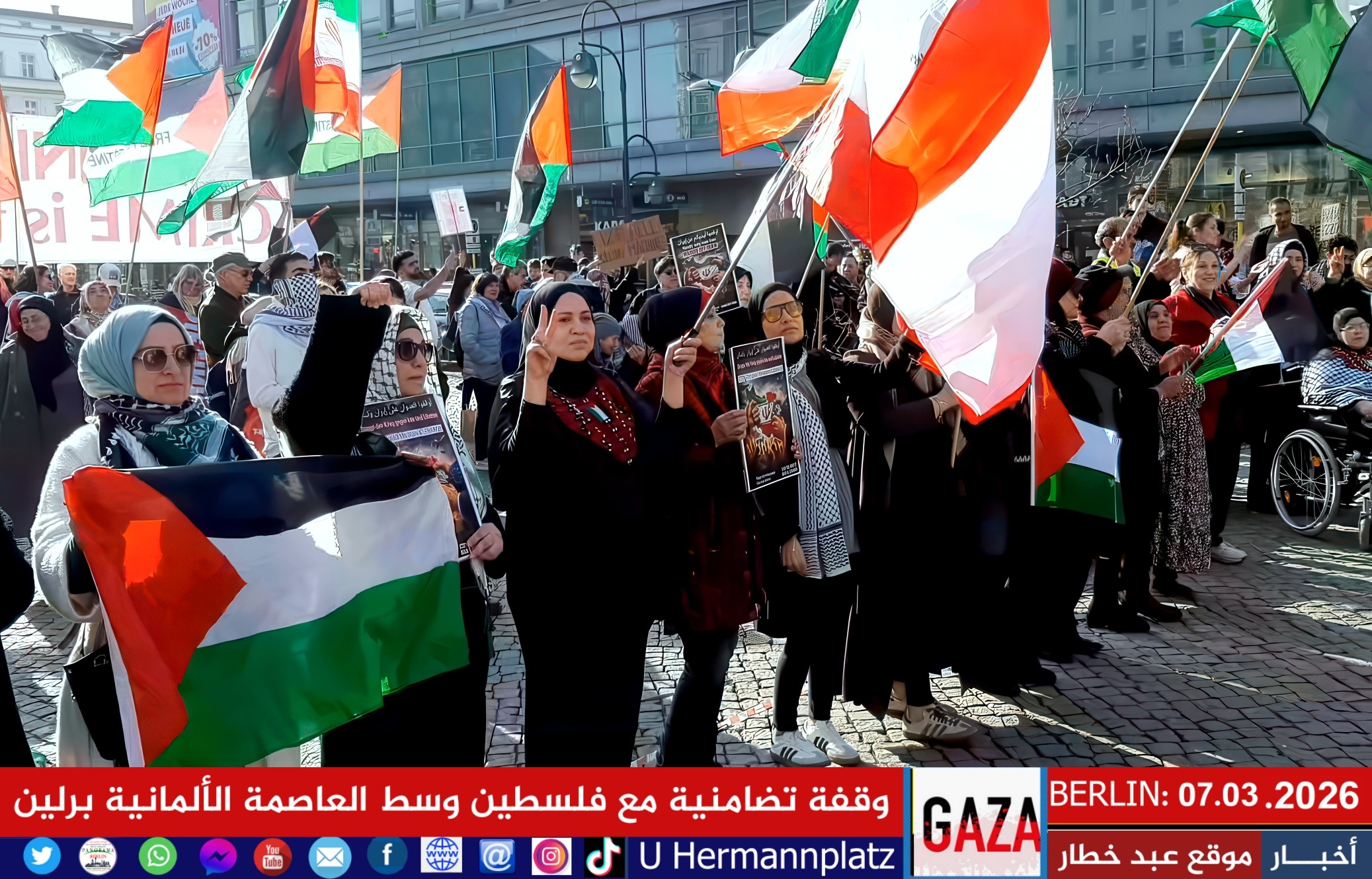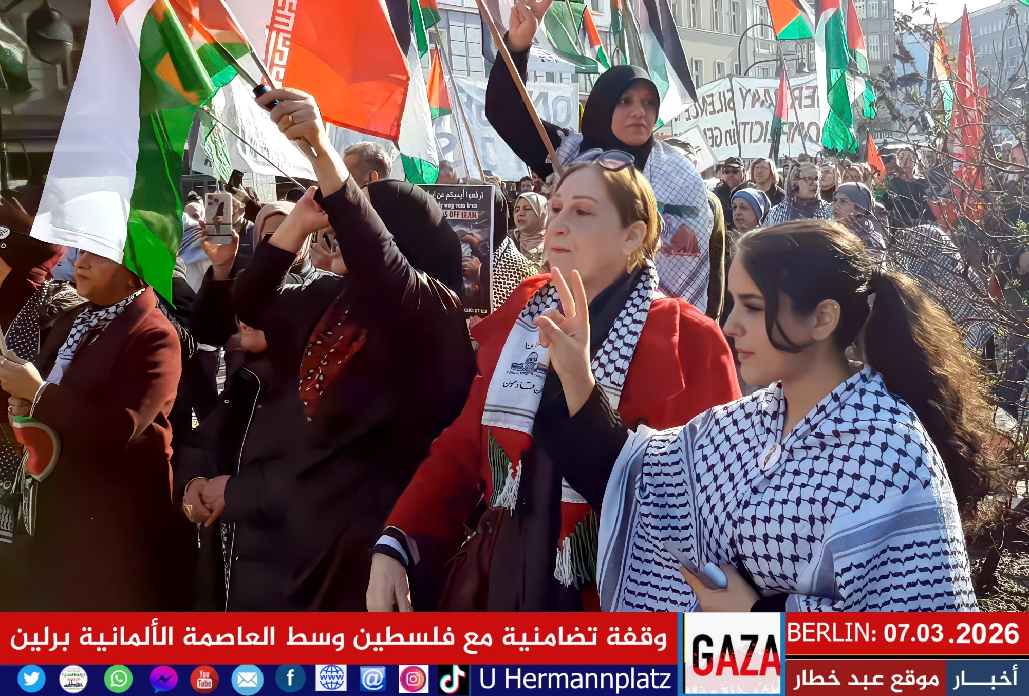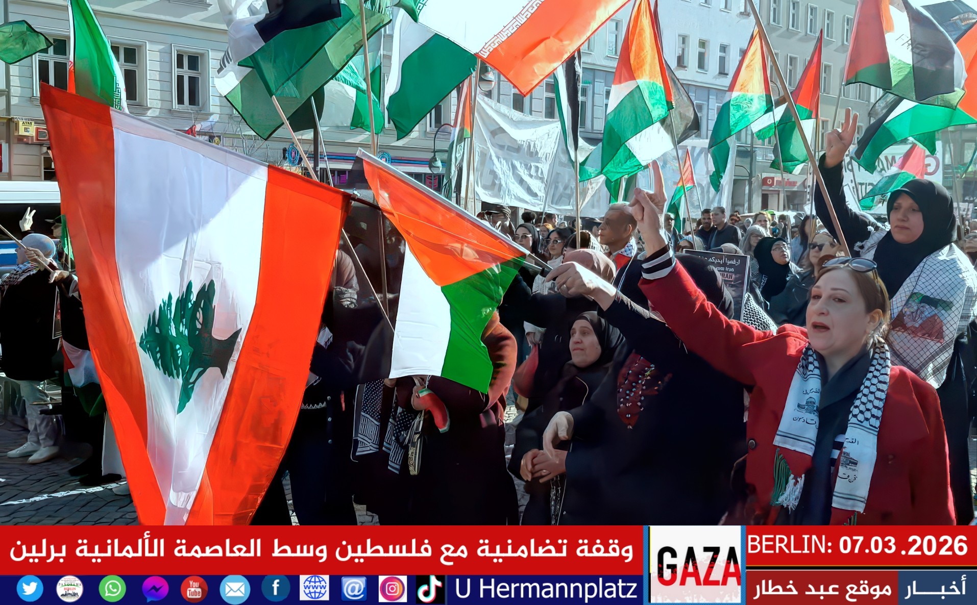 بدعوة من اللجنة الوطنية الفلسطينية الموحّدة في برلين، نُظّمت اليوم وقفة جماهيرية حاشدة في ساحة Hermannplatz، شاركت فيها مجموعات ألمانية وعربية ودولية للتنديد بالعدوان المتواصل على إيران ولبنان، وللمطالبة بإنهاء الاحتلال الإسرائيلي وانسحاب قواته من فلسطين، ووقف تزويد ألمانيا لإسرائيل بالسلاح.