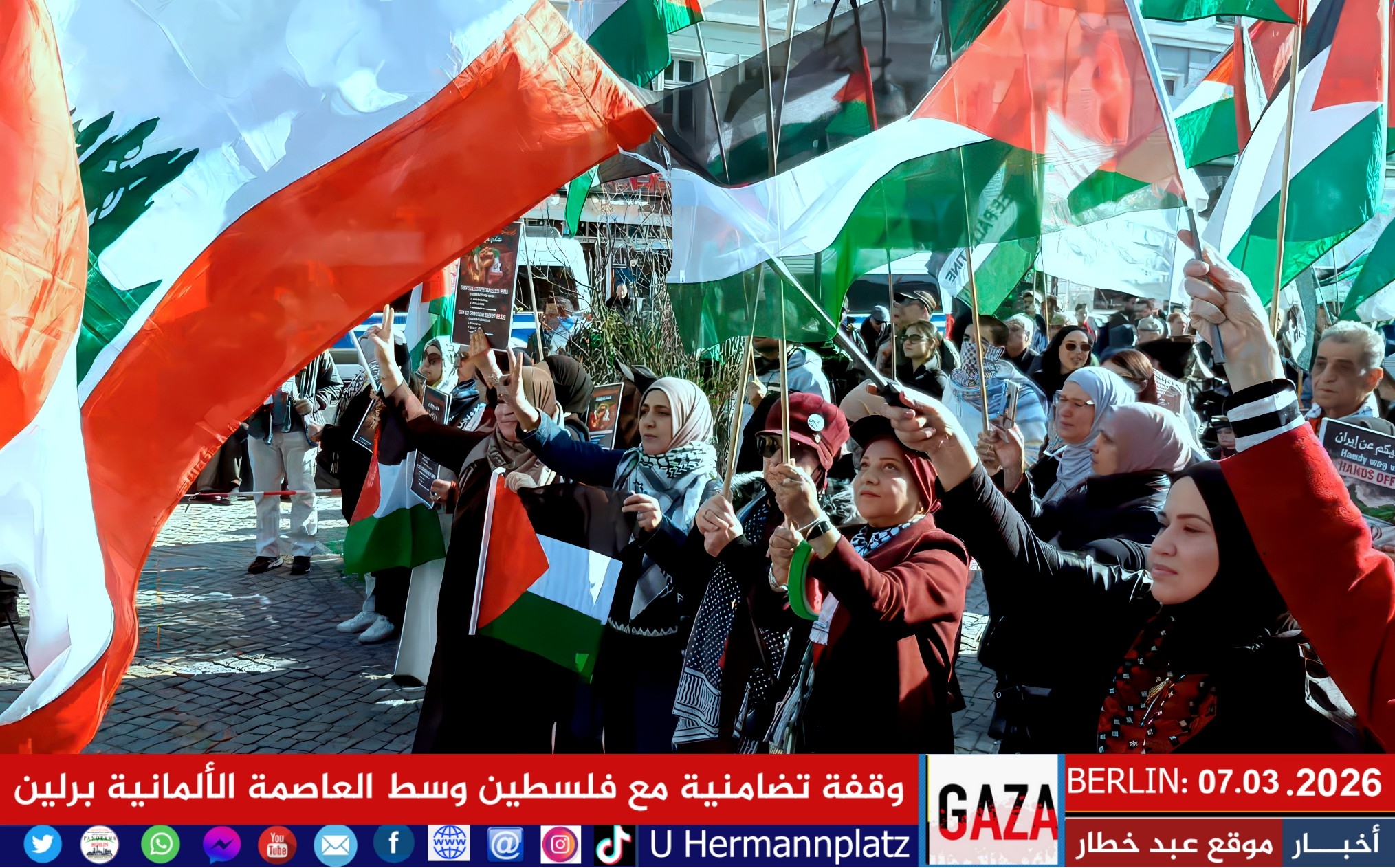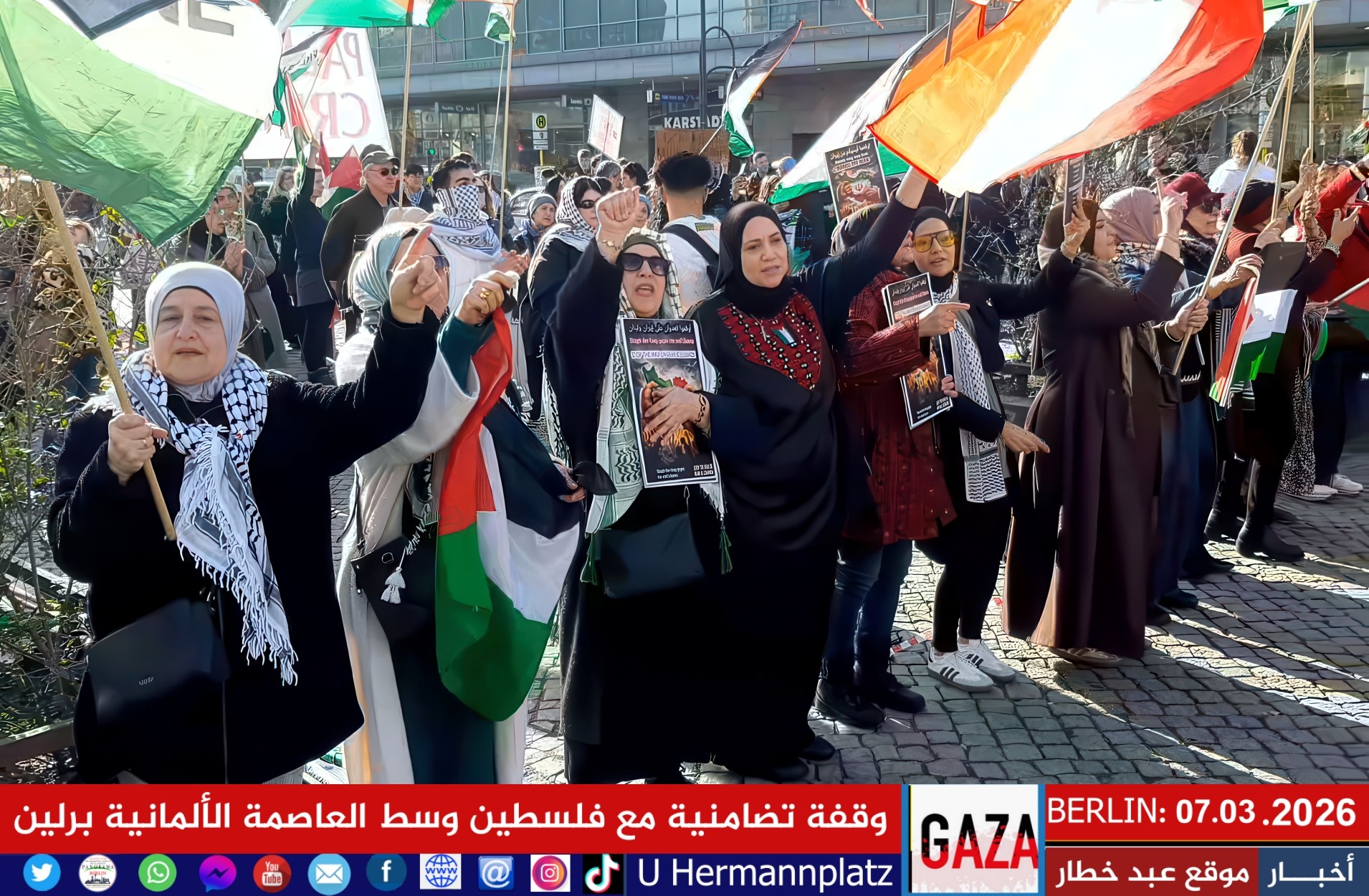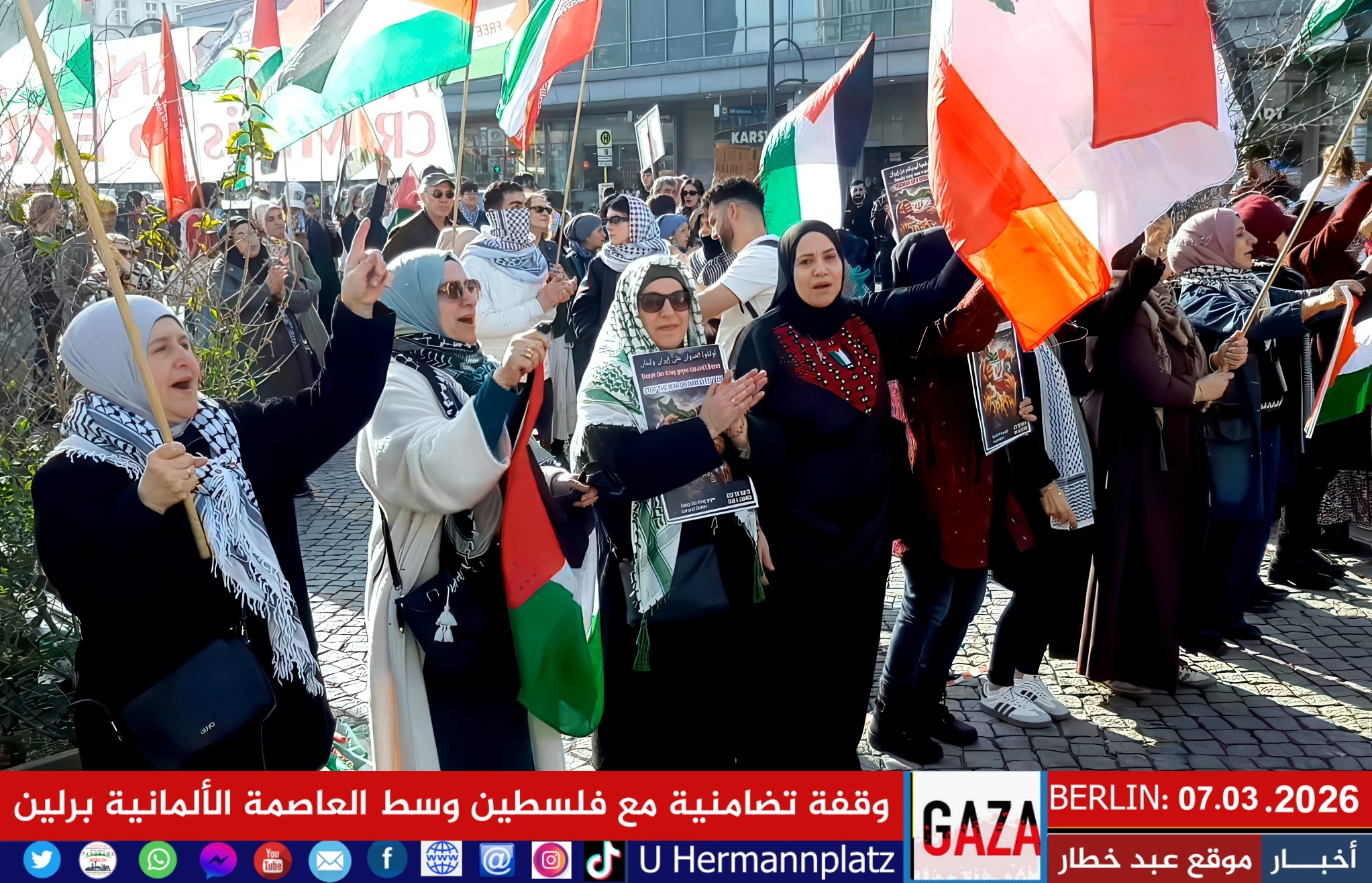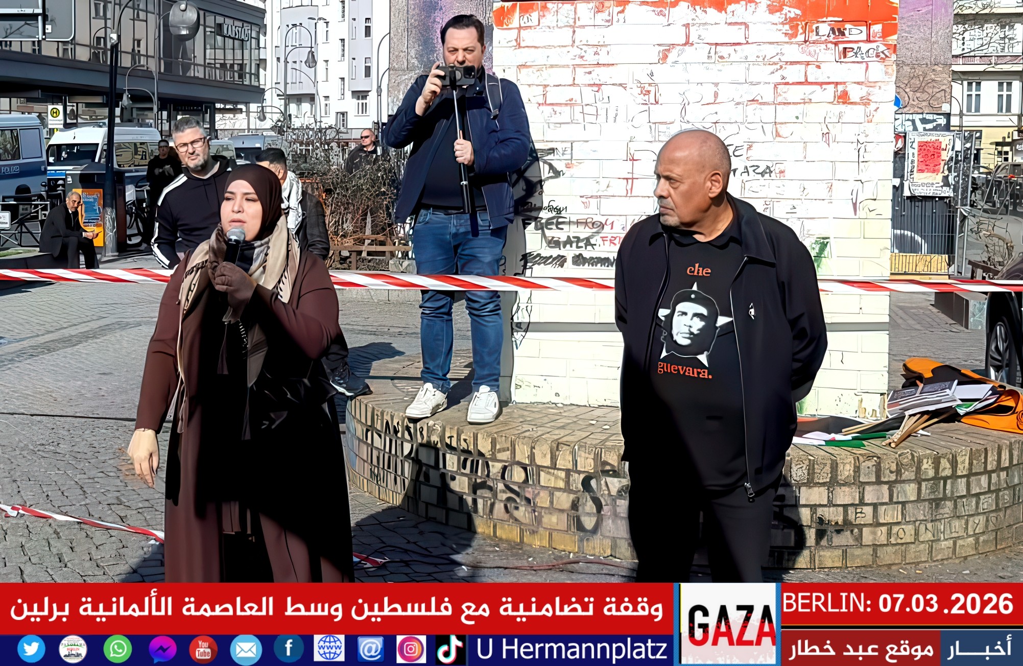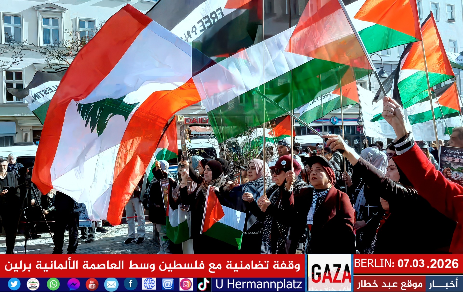 بدعوة من اللجنة الوطنية الفلسطينية الموحّدة في برلين، نُظّمت اليوم وقفة جماهيرية حاشدة في ساحة Hermannplatz، شاركت فيها مجموعات ألمانية وعربية ودولية للتنديد بالعدوان المتواصل على إيران ولبنان، وللمطالبة بإنهاء الاحتلال الإسرائيلي وانسحاب قواته من فلسطين، ووقف تزويد ألمانيا لإسرائيل بالسلاح.