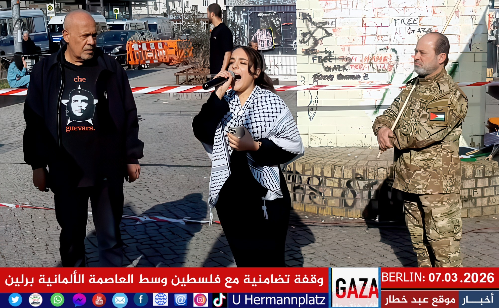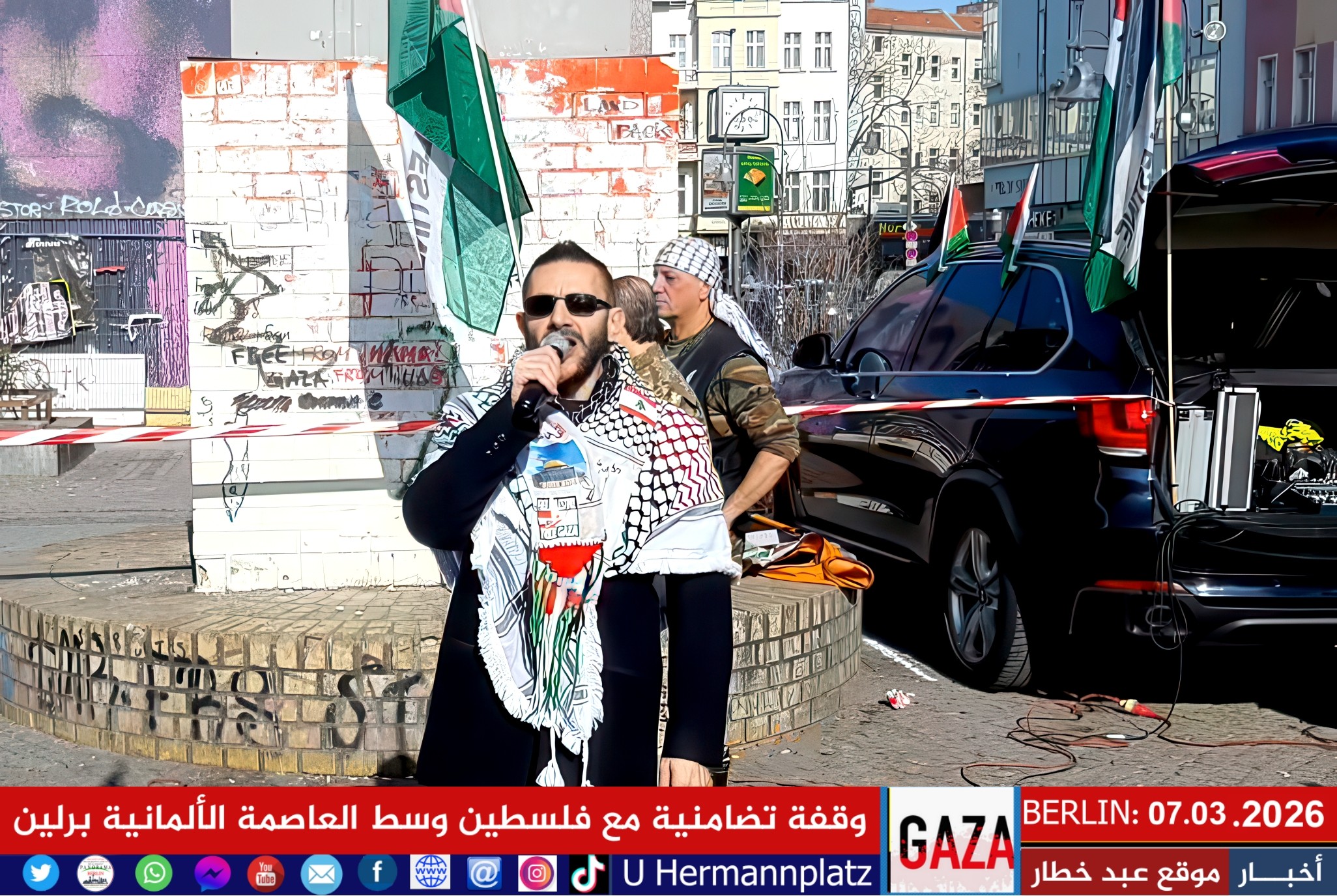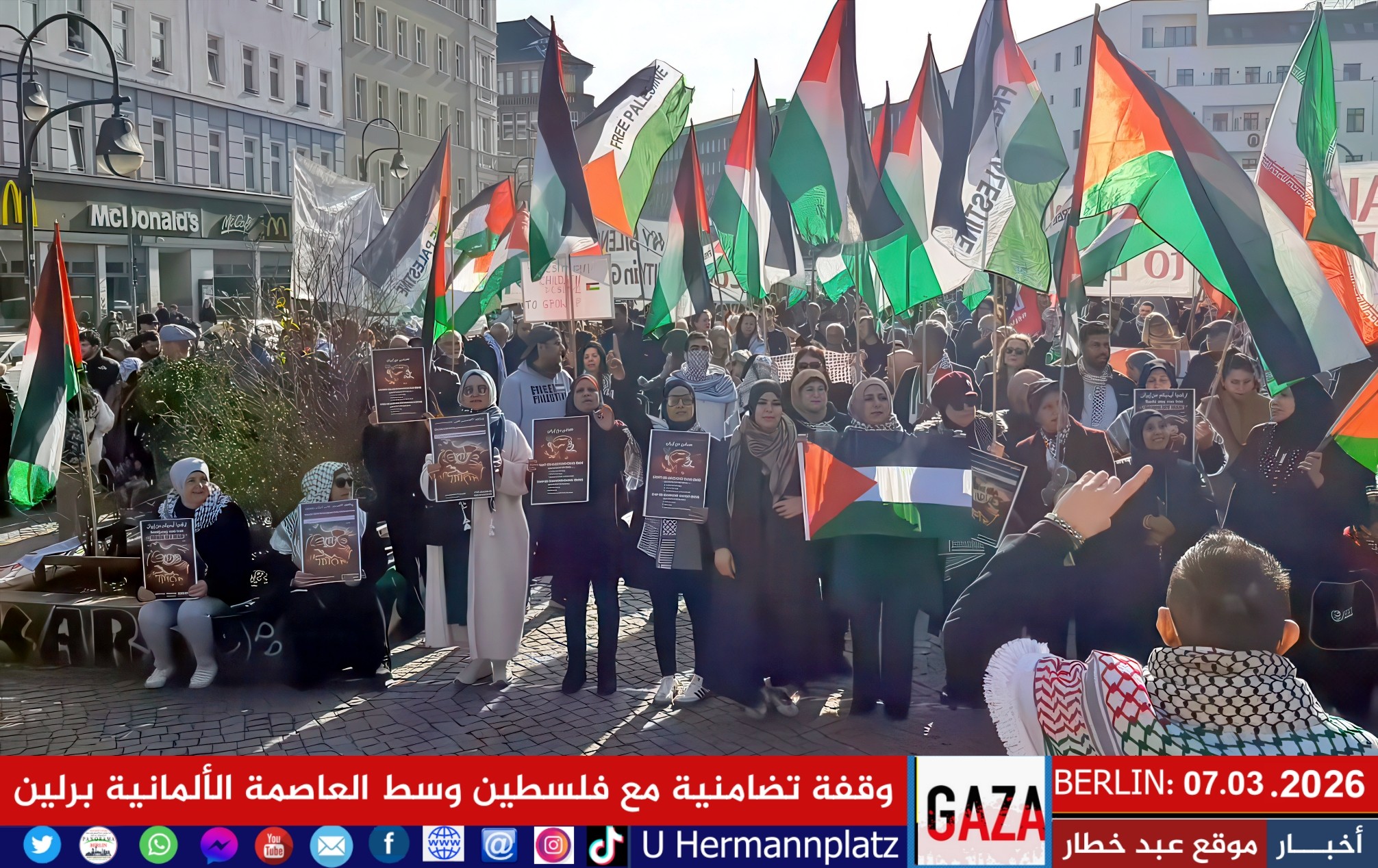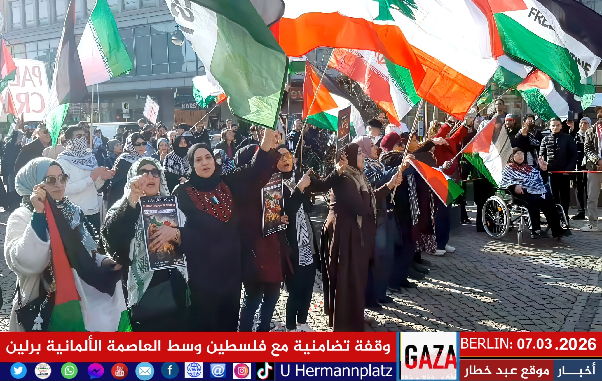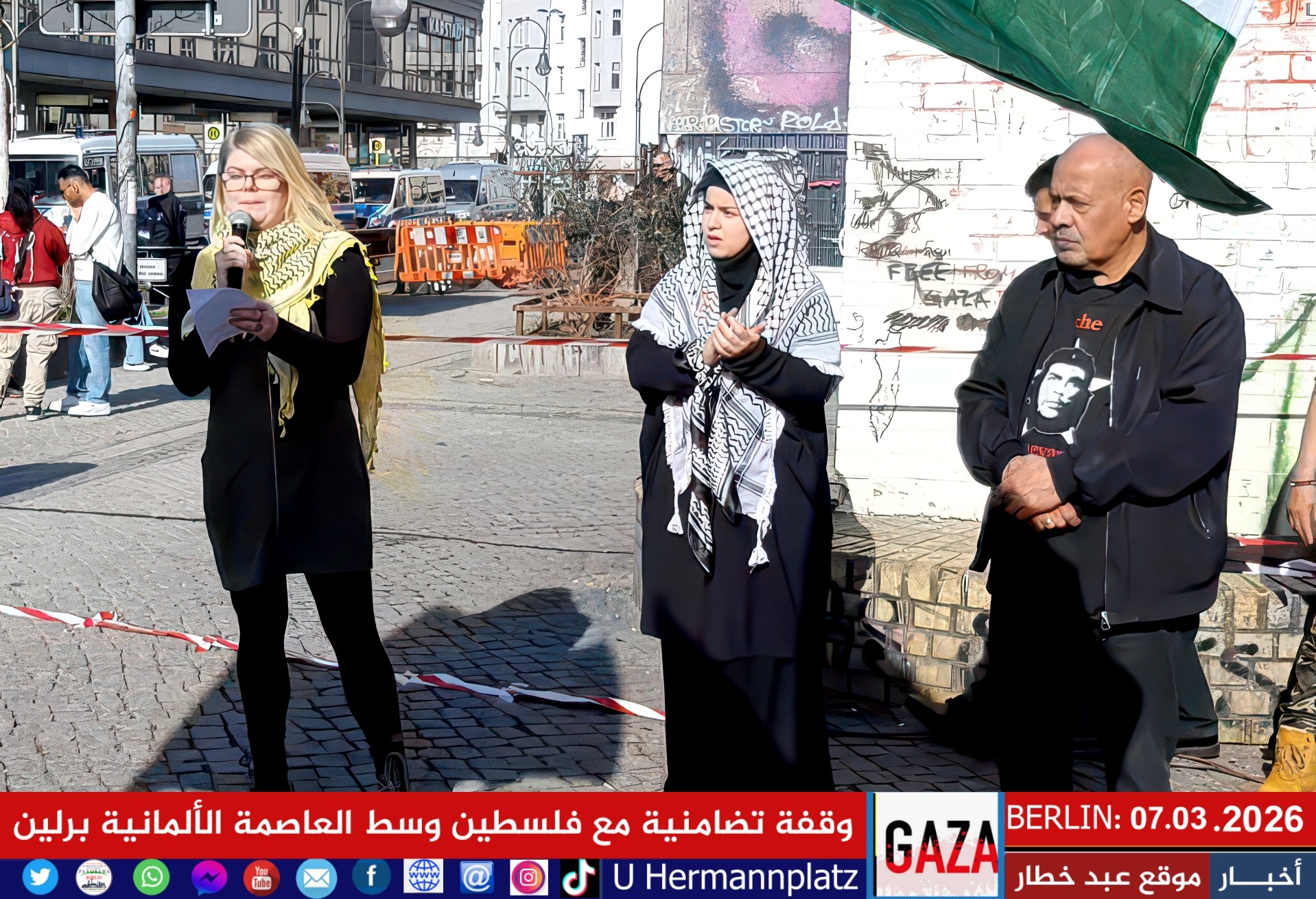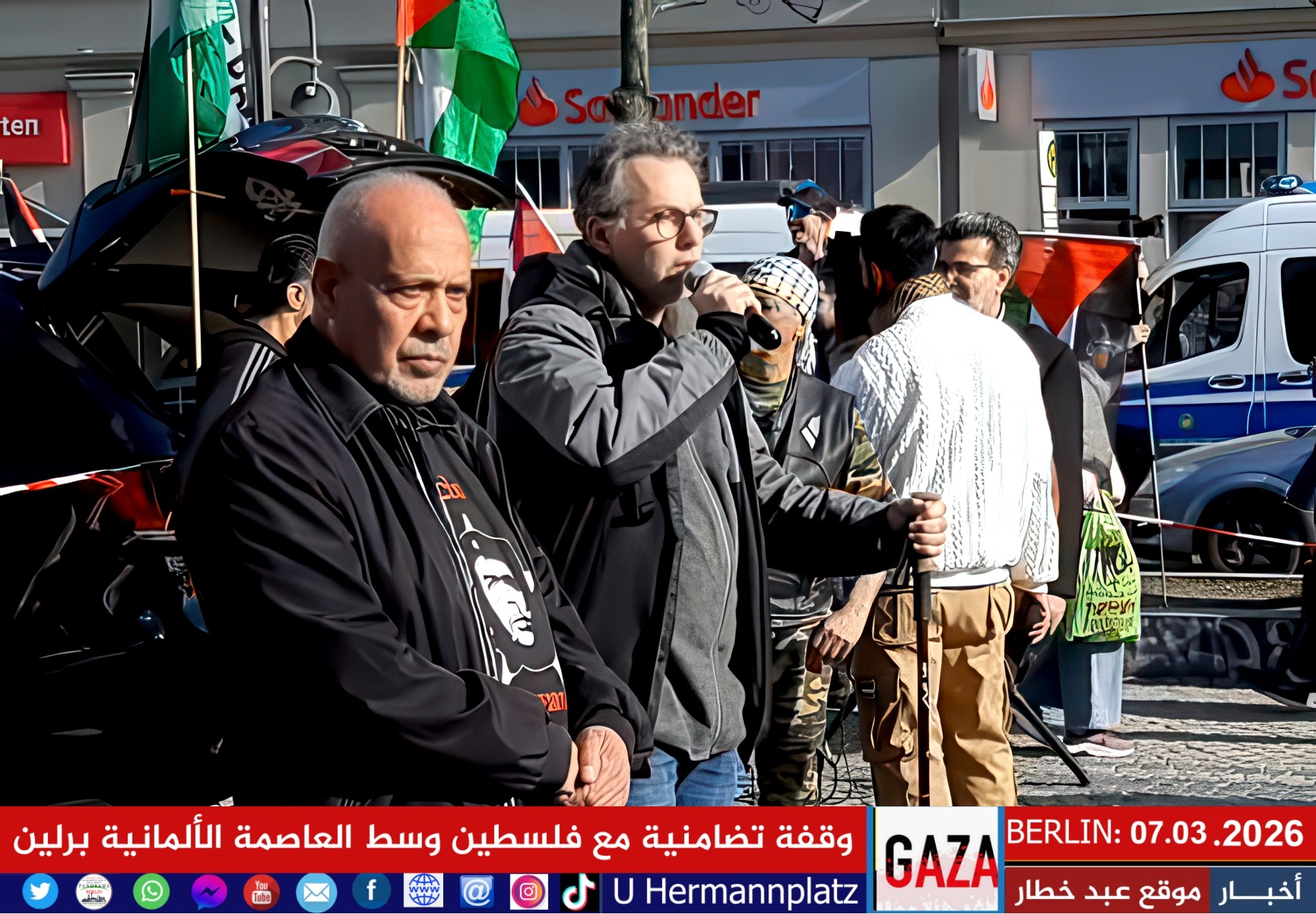 بدعوة من اللجنة الوطنية الفلسطينية الموحّدة في برلين، نُظّمت اليوم وقفة جماهيرية حاشدة في ساحة Hermannplatz، شاركت فيها مجموعات ألمانية وعربية ودولية للتنديد بالعدوان المتواصل على إيران ولبنان، وللمطالبة بإنهاء الاحتلال الإسرائيلي وانسحاب قواته من فلسطين، ووقف تزويد ألمانيا لإسرائيل بالسلاح.