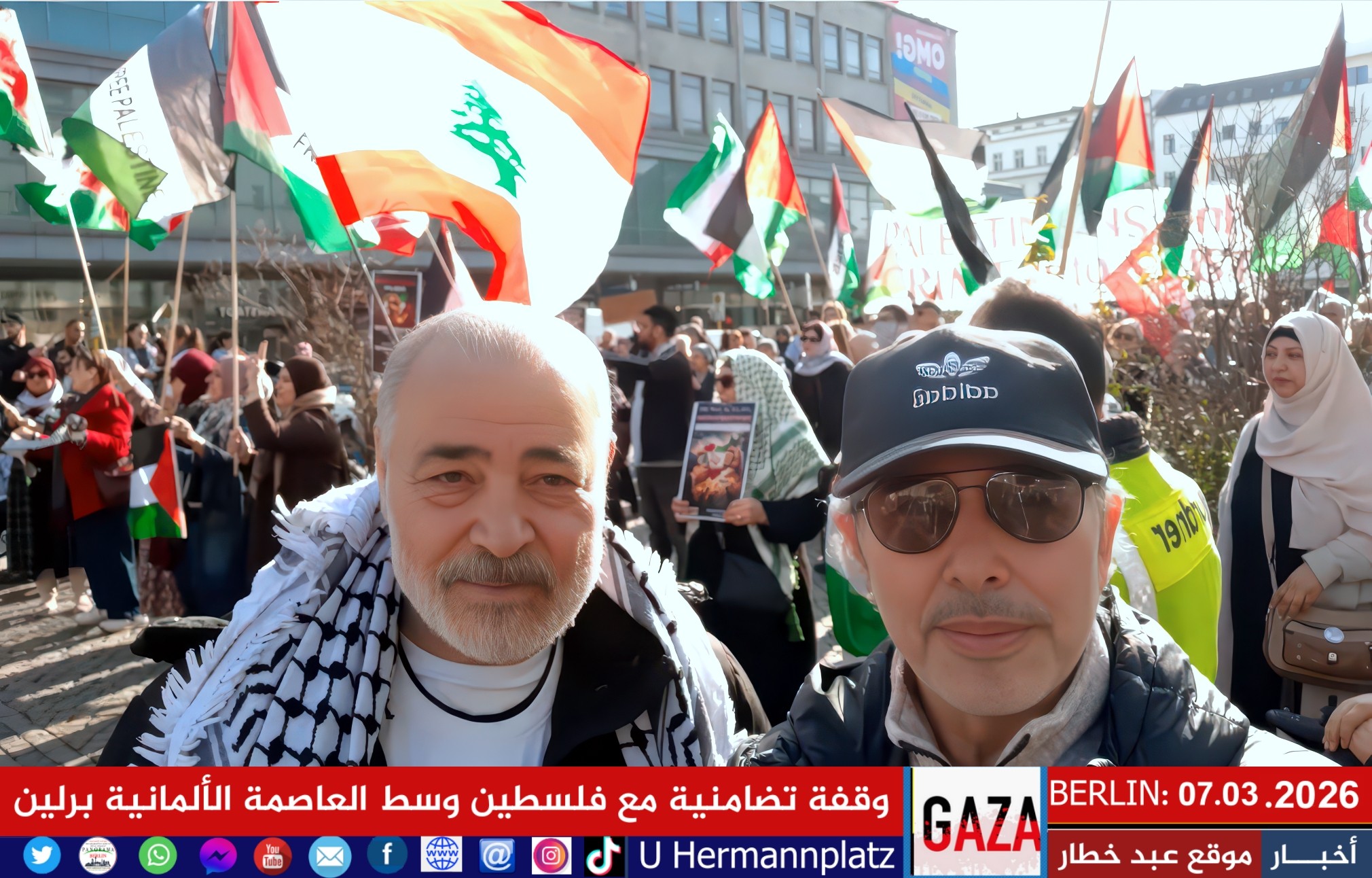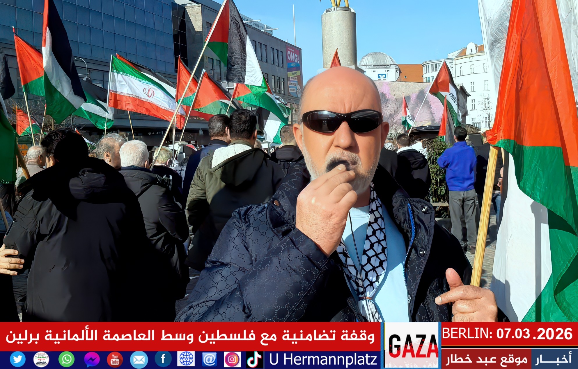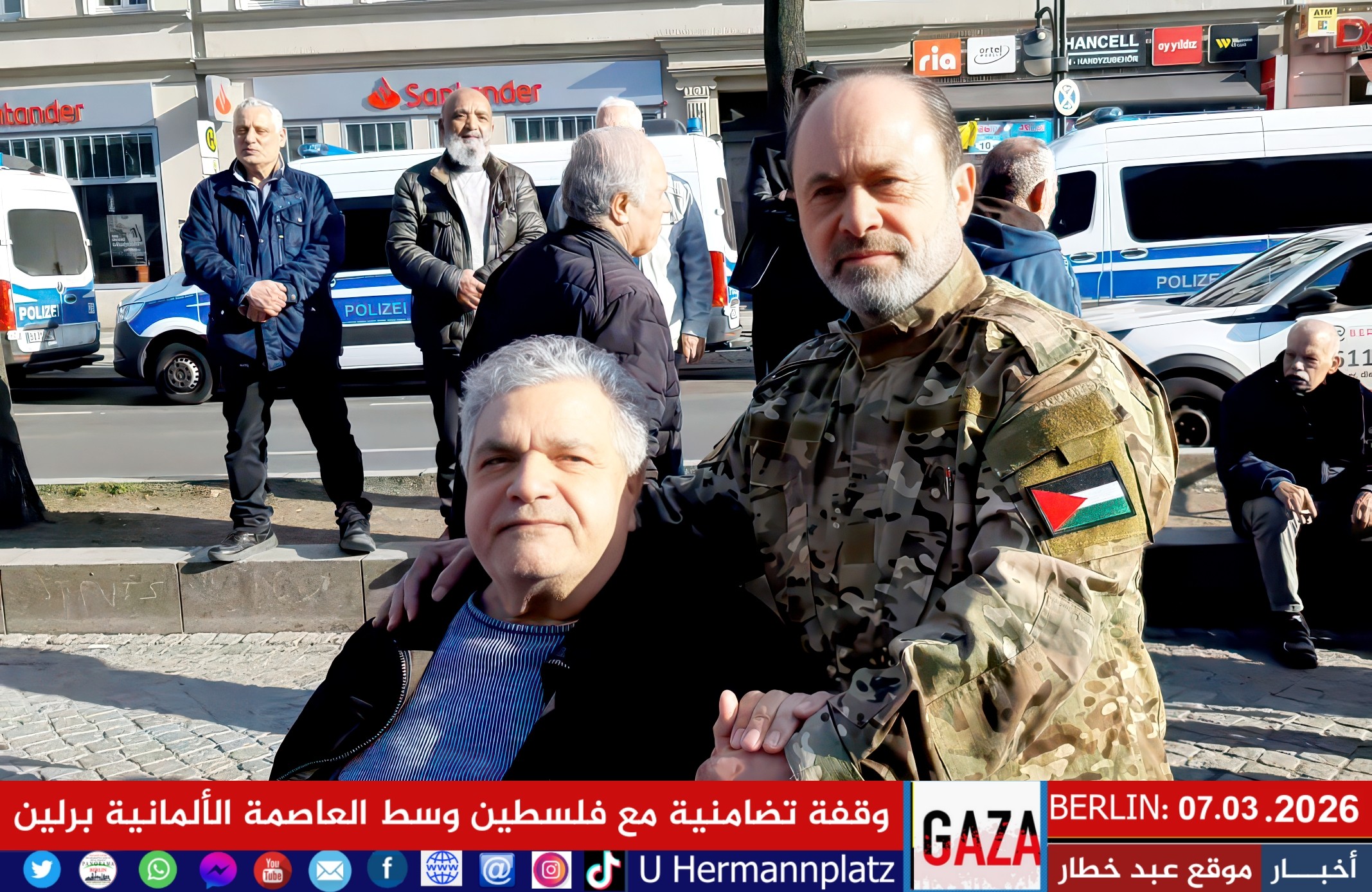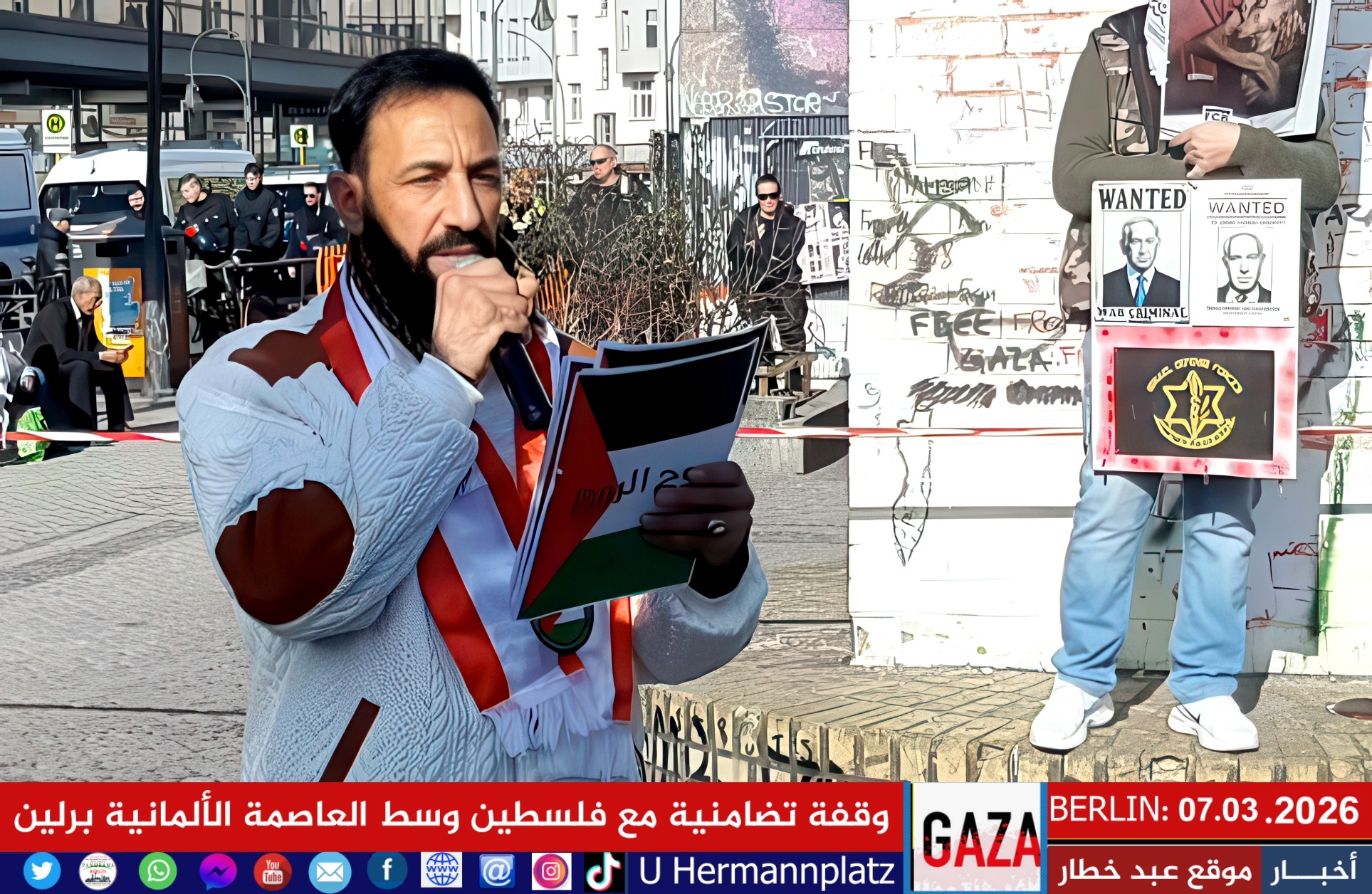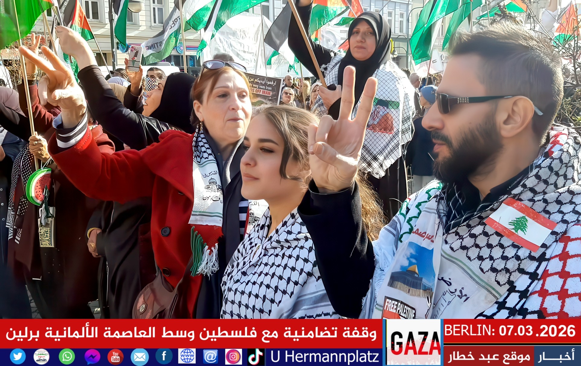 بدعوة من اللجنة الوطنية الفلسطينية الموحّدة في برلين، نُظّمت اليوم وقفة جماهيرية حاشدة في ساحة Hermannplatz، شاركت فيها مجموعات ألمانية وعربية ودولية للتنديد بالعدوان المتواصل على إيران ولبنان، وللمطالبة بإنهاء الاحتلال الإسرائيلي وانسحاب قواته من فلسطين، ووقف تزويد ألمانيا لإسرائيل بالسلاح.