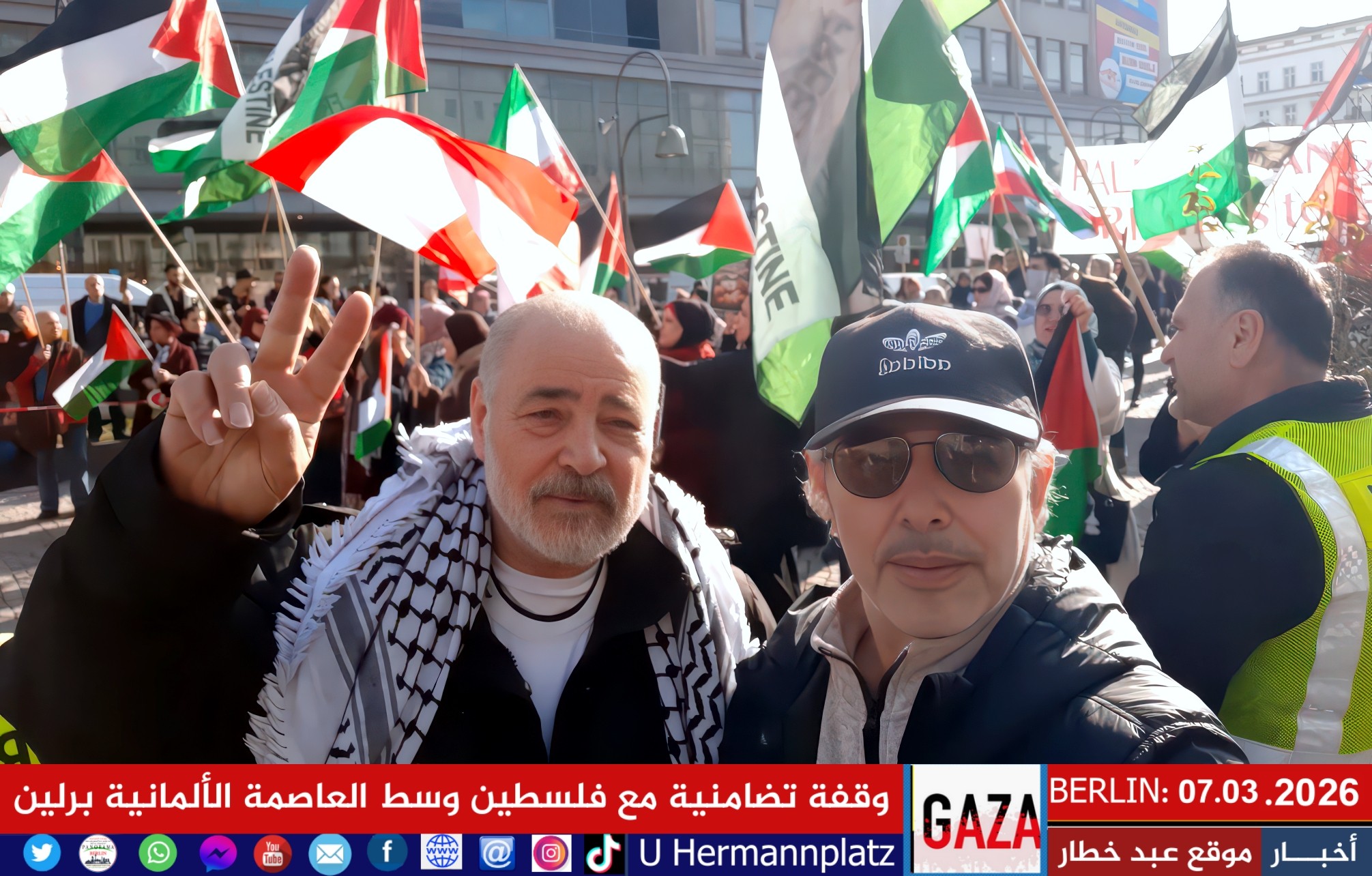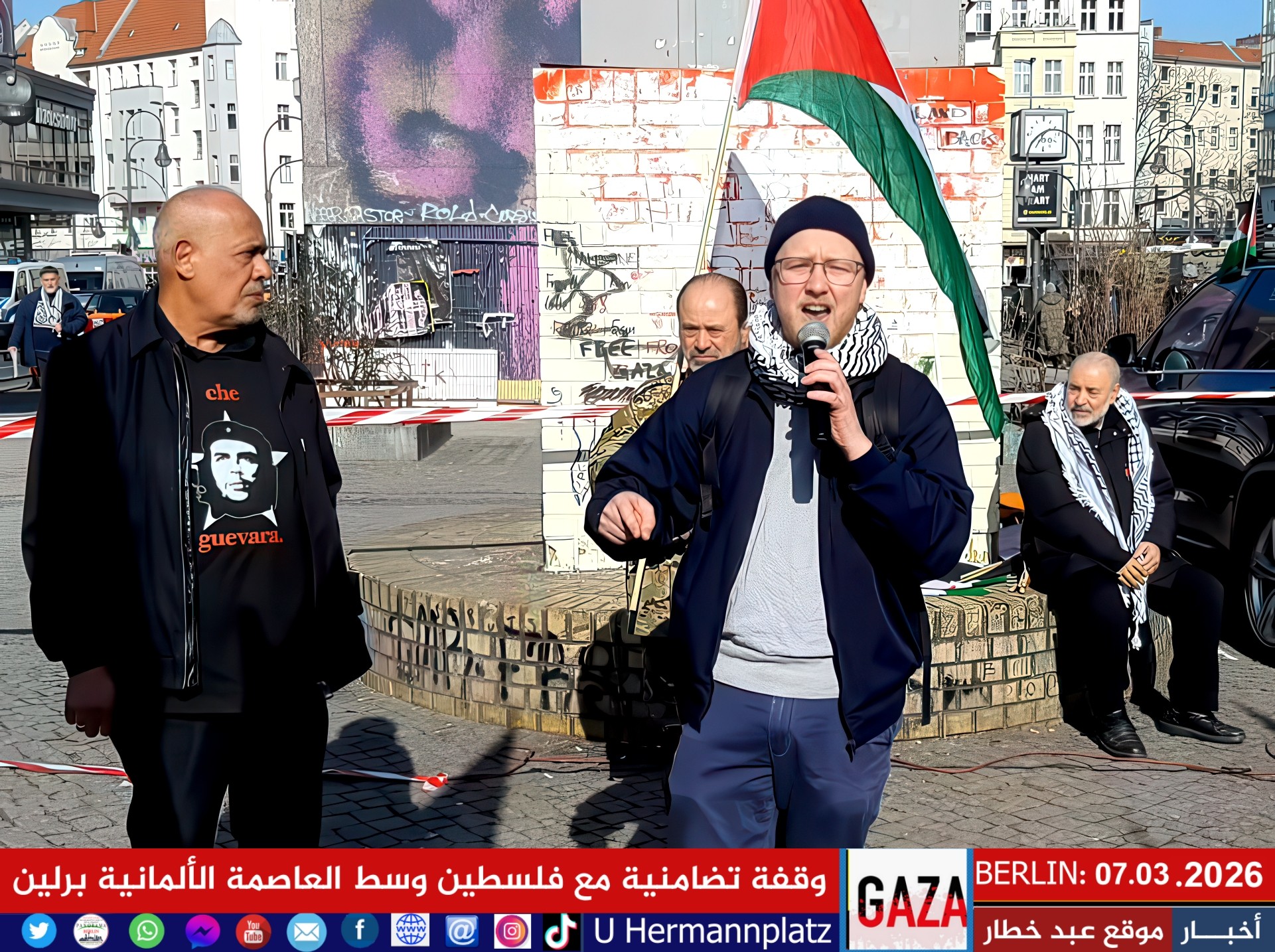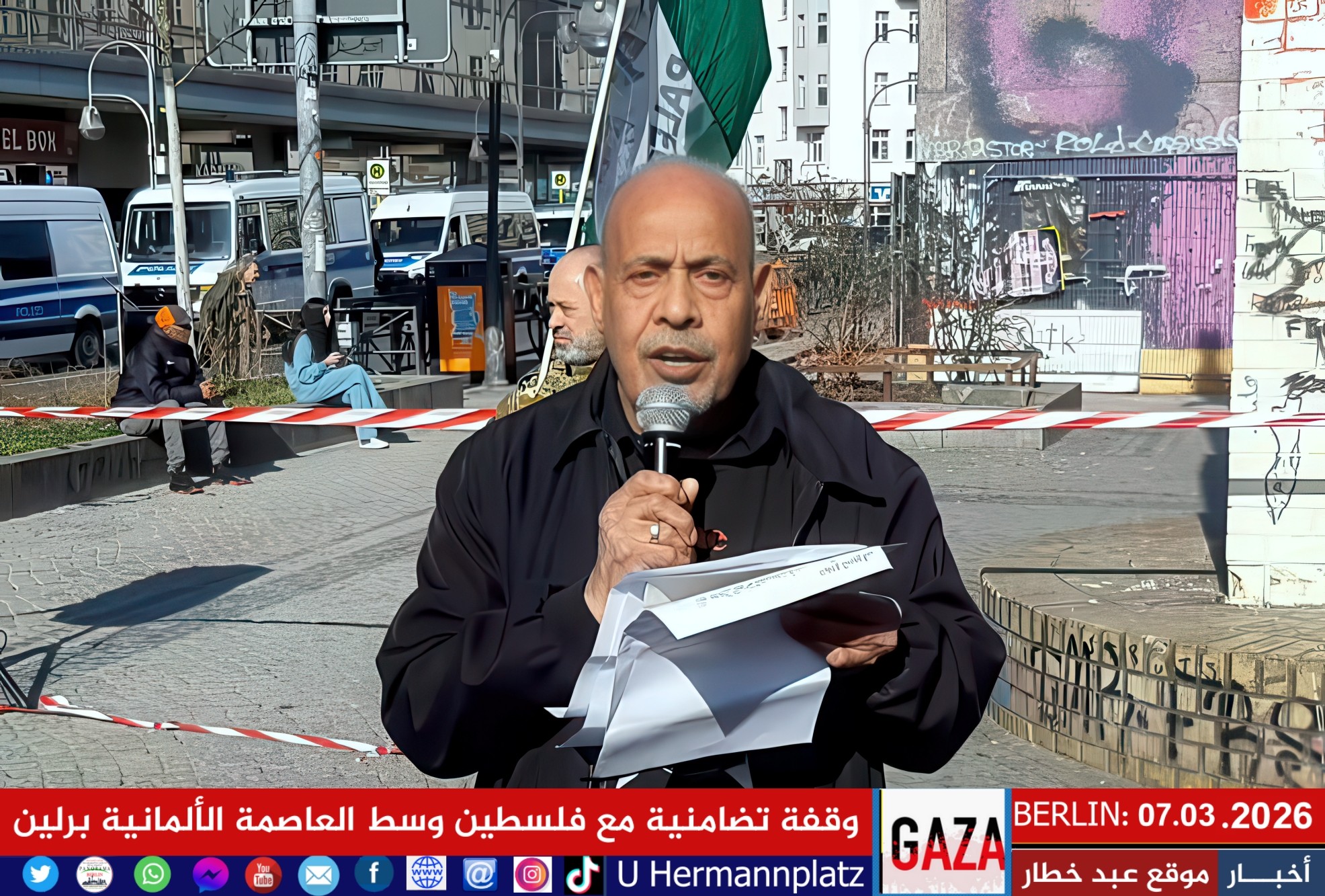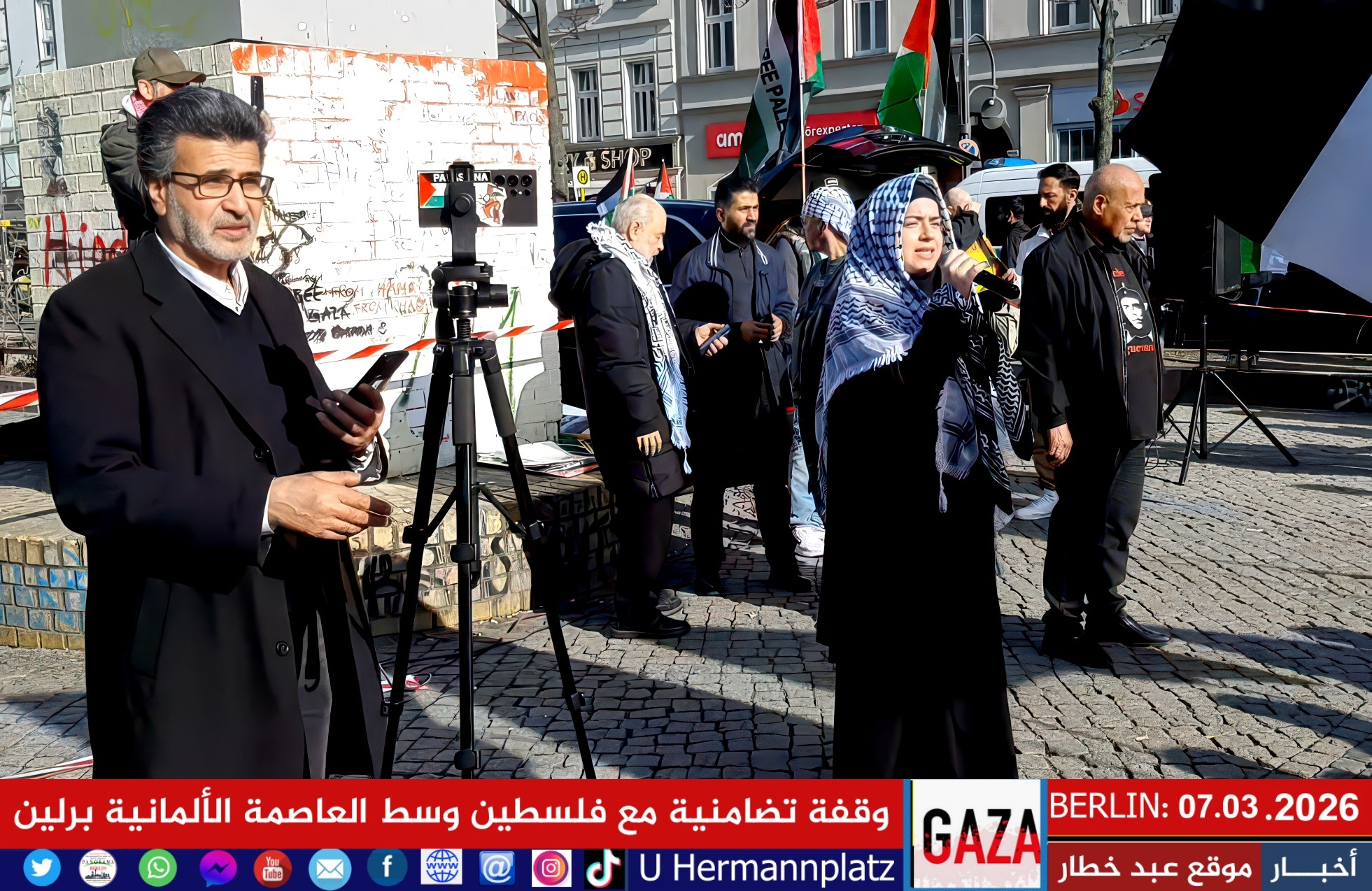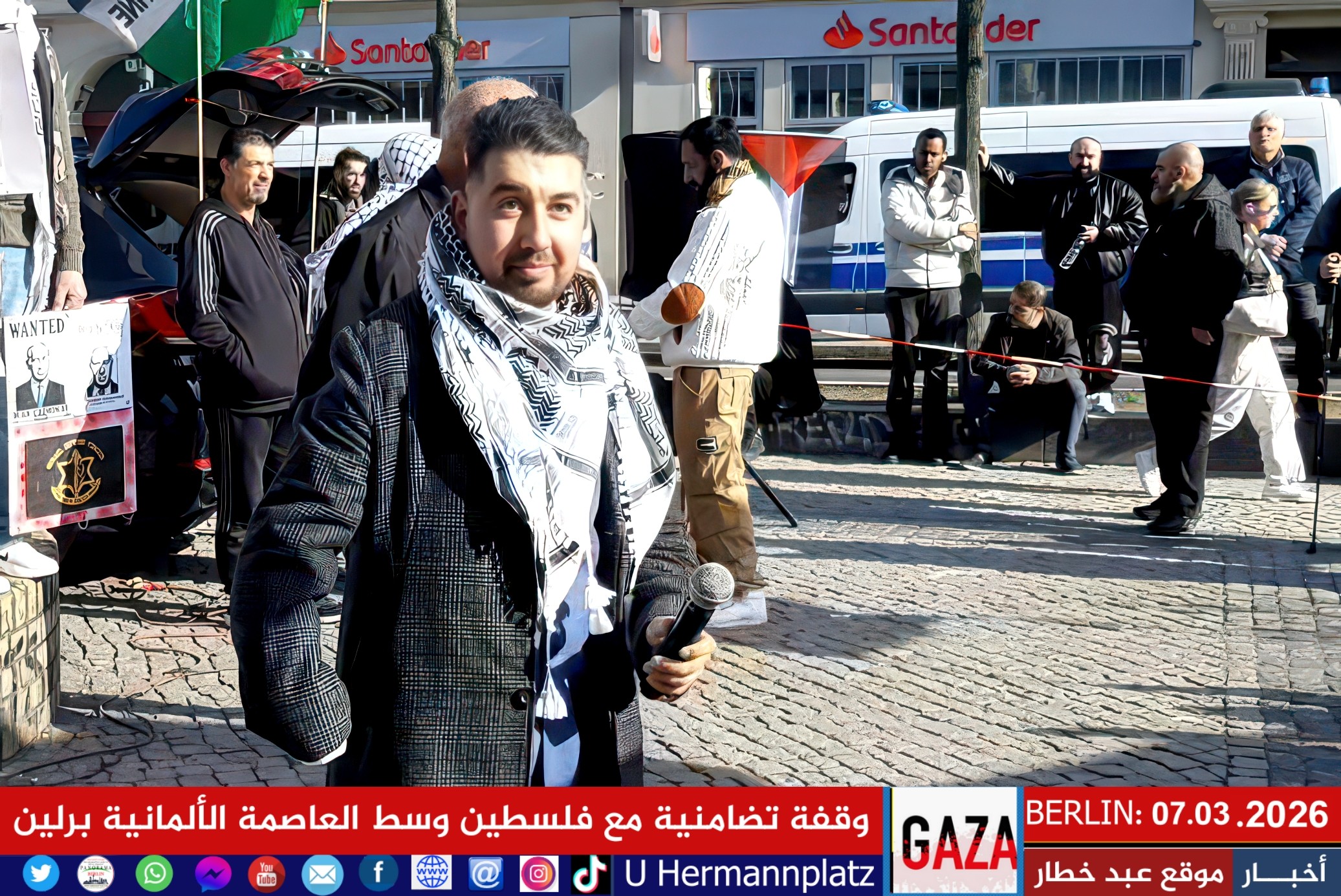 بدعوة من اللجنة الوطنية الفلسطينية الموحّدة في برلين، نُظّمت اليوم وقفة جماهيرية حاشدة في ساحة Hermannplatz، شاركت فيها مجموعات ألمانية وعربية ودولية للتنديد بالعدوان المتواصل على إيران ولبنان، وللمطالبة بإنهاء الاحتلال الإسرائيلي وانسحاب قواته من فلسطين، ووقف تزويد ألمانيا لإسرائيل بالسلاح.