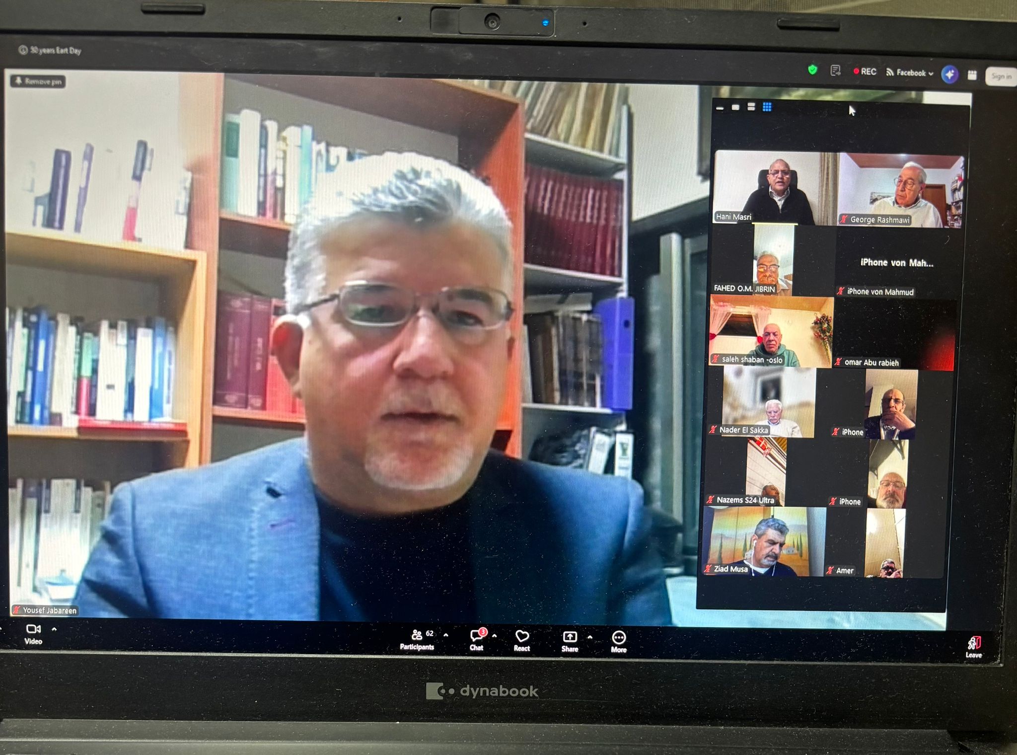 وفي مداخلته، تحدّث د. يوسف جبارين حول الحالة الفلسطينيّة العامّة عبر طرفي الخط الأخضر، متطرقًا إلى التّحديات الجسام الّتي يواجهها المجتمع الفلسطينيّ في الجليل والمثلث والنقب والساحل، وخاصّة في ظل سياسات تضييق الخناق وتقليص هامش الحريّات السياسيّة، إضافةً ما يعانيه الاهالي في النّقب من هجمة ممنهجة تستهدف وجوده على أراضيه التّاريخيّة.