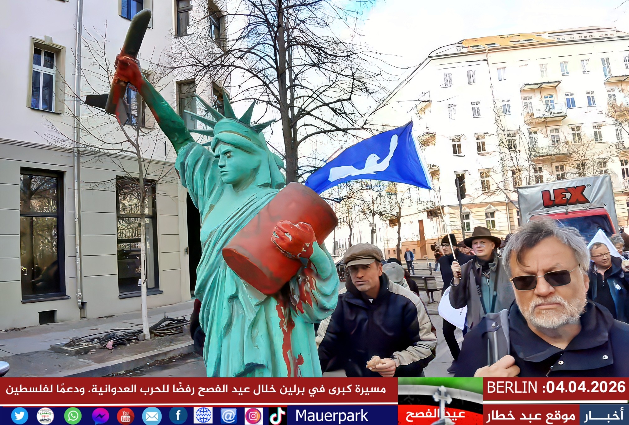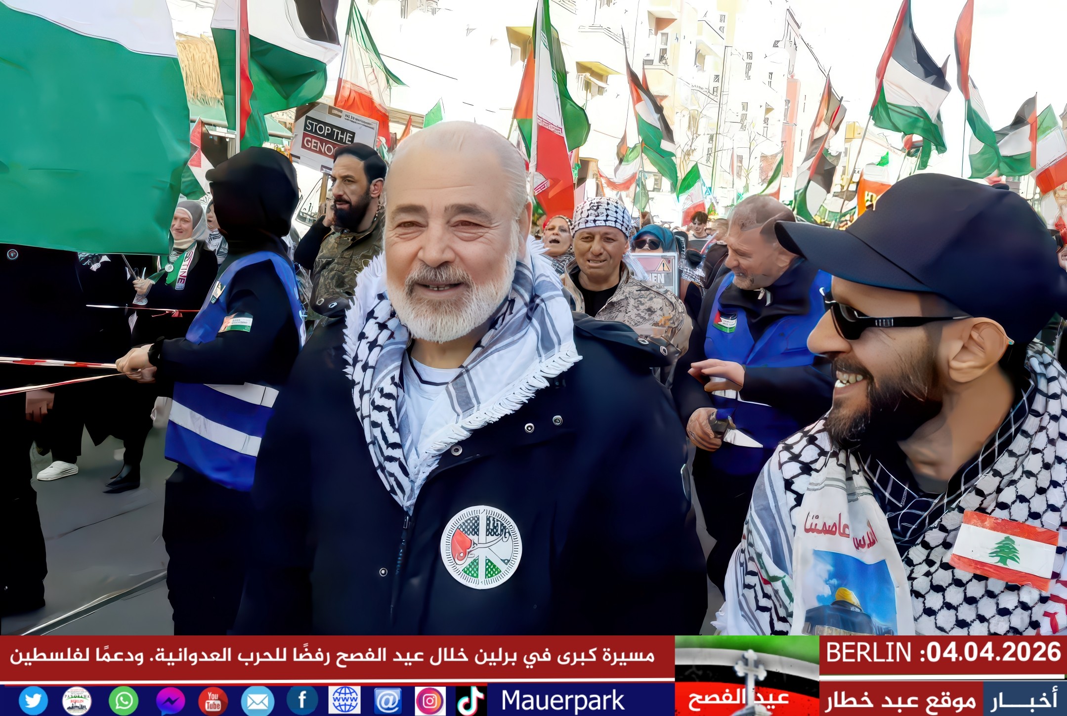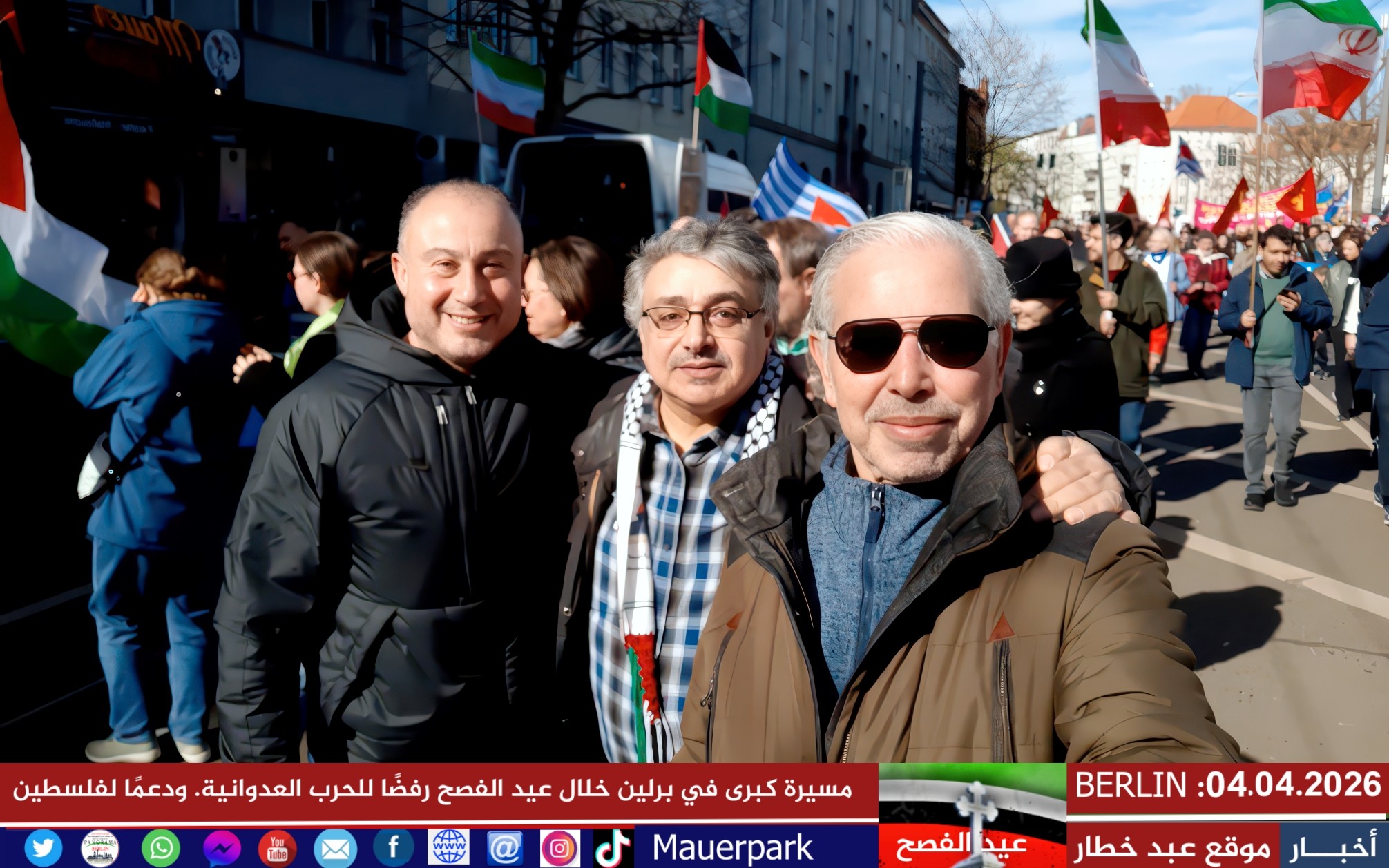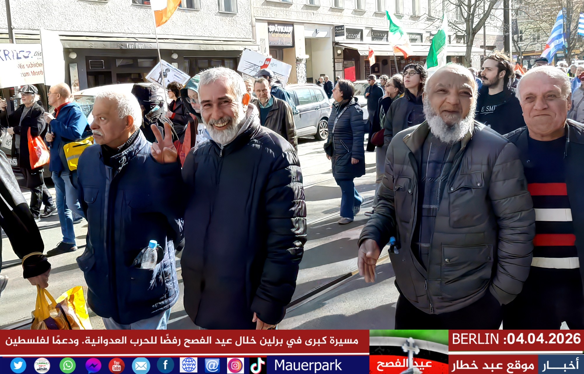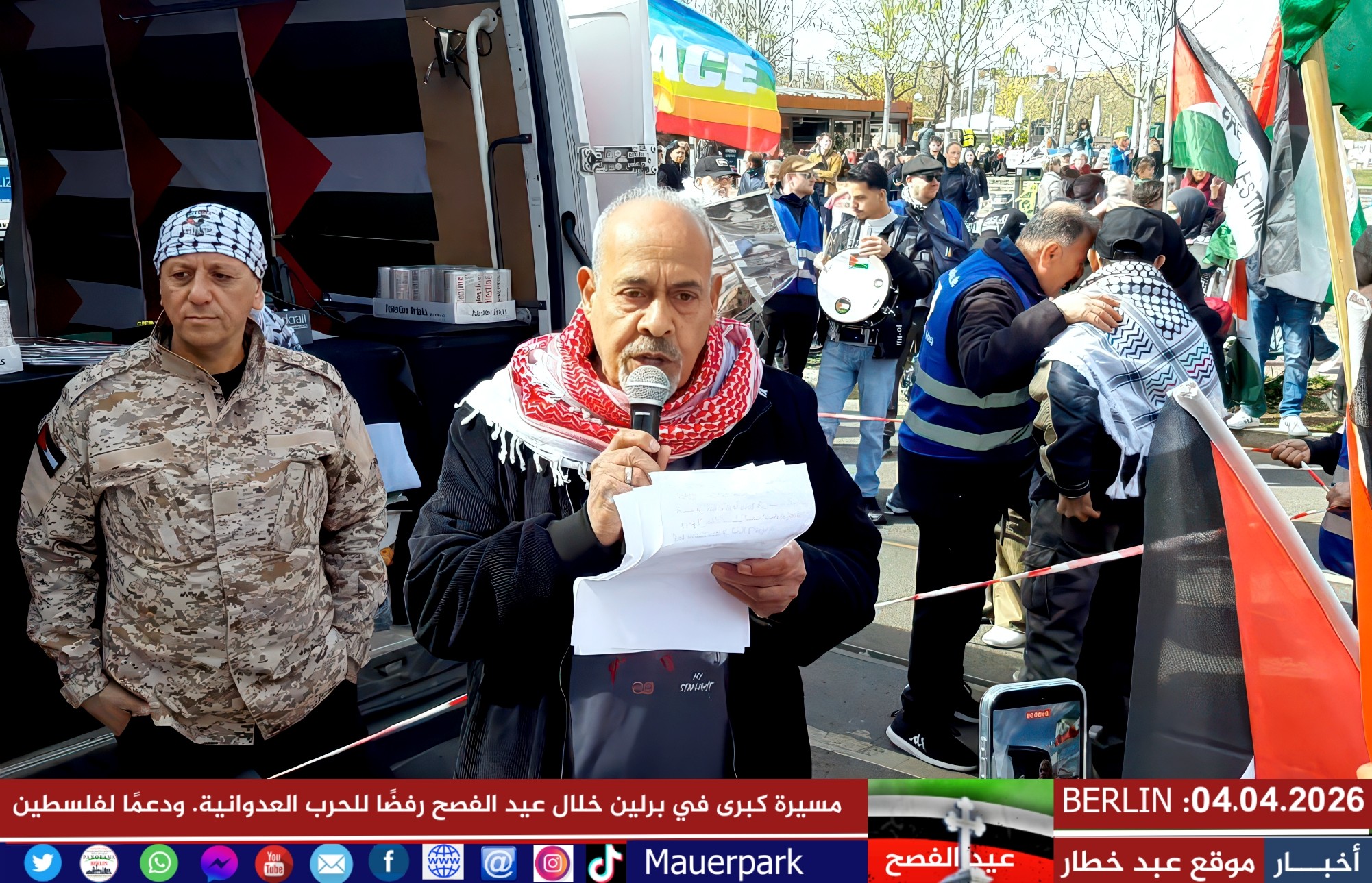 شهدت العاصمة الألمانية برلين اليوم السبت، الموافق 04 أبريل 2026، واحدة من أكبر المسيرات السياسية التي تشهدها المدينة خلال عطلة عيد الفصح، حيث احتشد آلاف المتظاهرين في شوارع وسط المدينة استجابة لدعوات أطلقتها عدة قوى سياسية واجتماعية ألمانية ودولية، من بينها حركة السلام الألمانية، ومجموعات يسارية وتقدمية مثل KDP، إضافة إلى اللجنة الوطنية الفلسطينية الموحّدة في برلين، والتحالف الأممي المناهض للإمبريالية والصهيونية.
