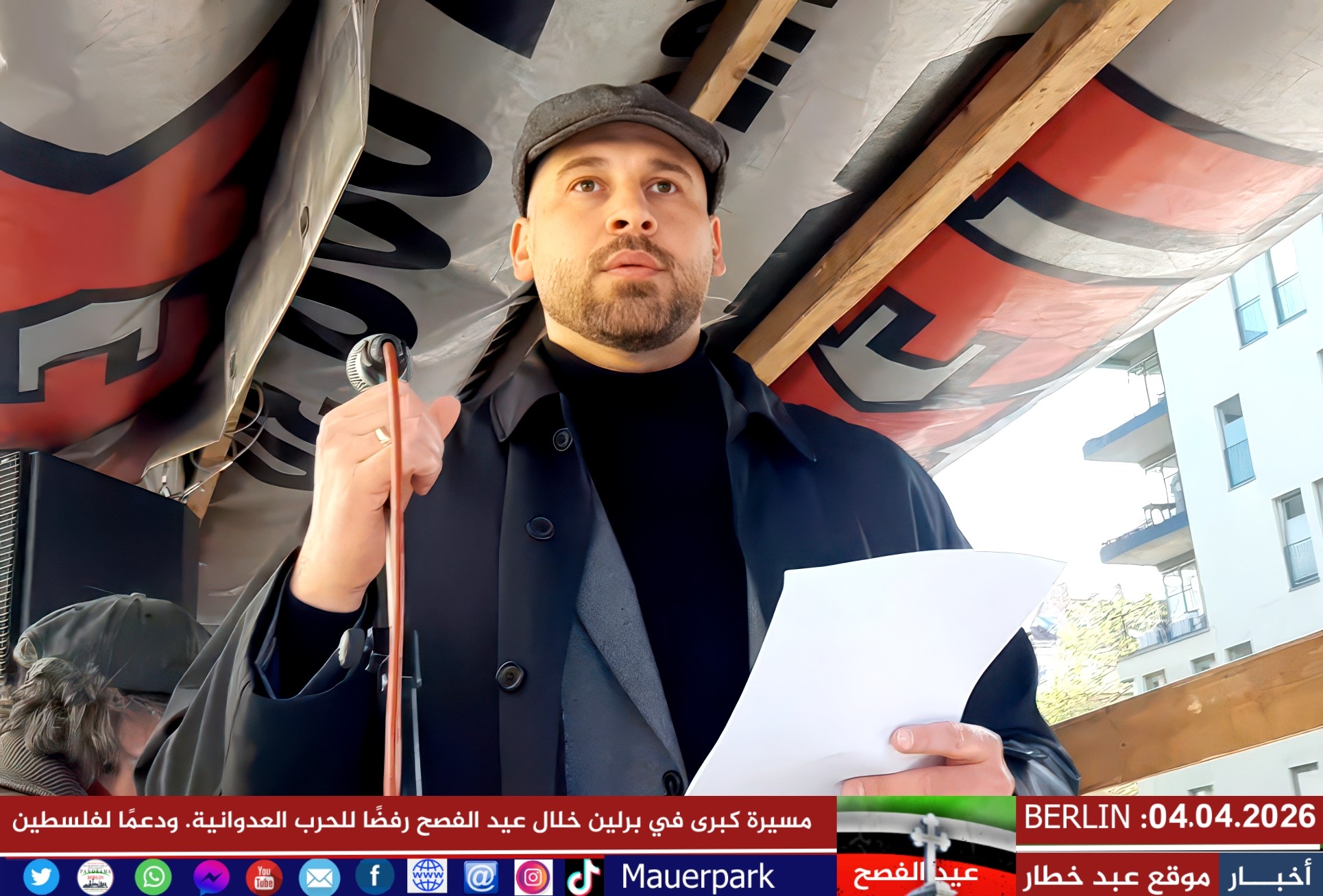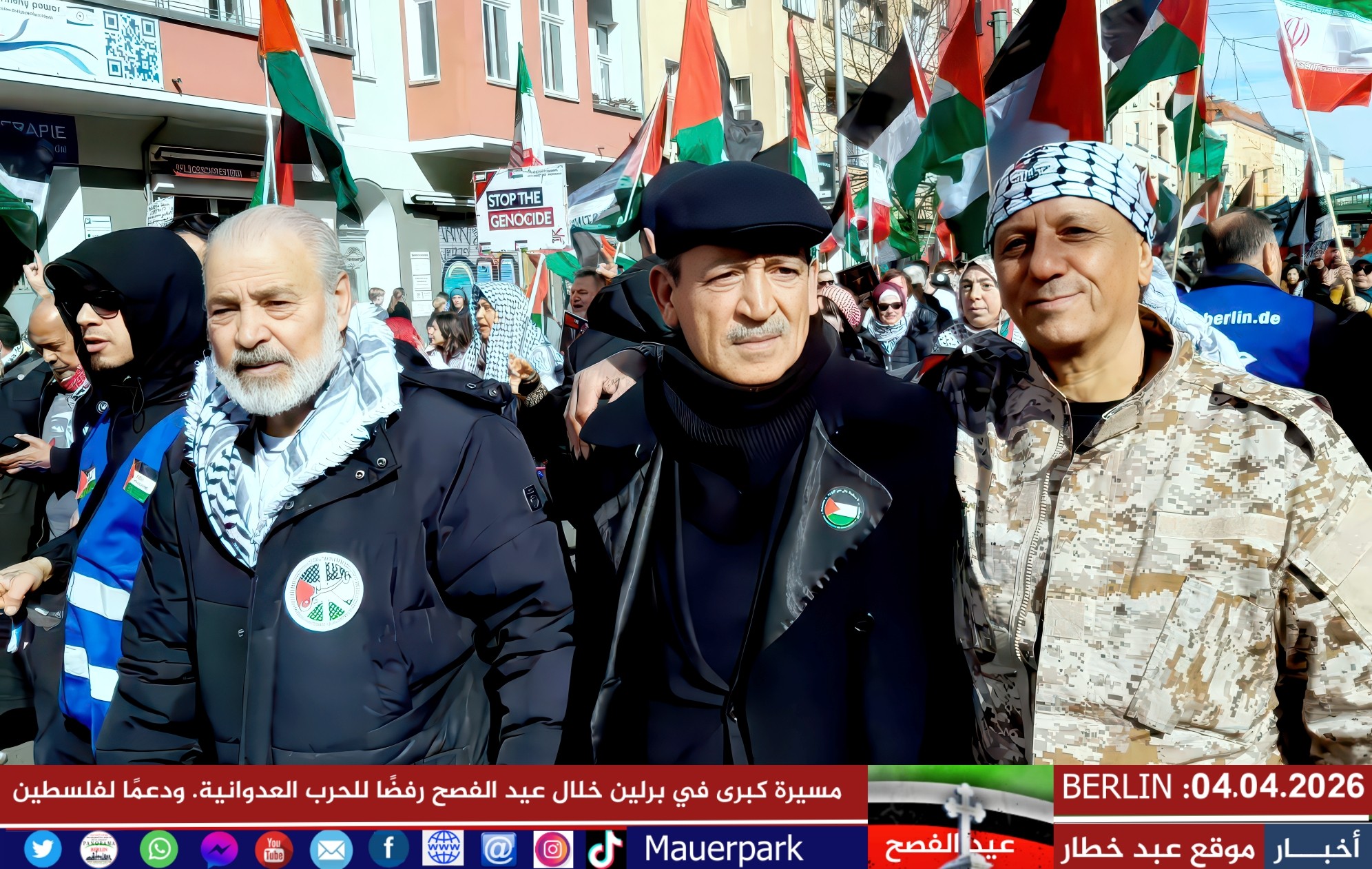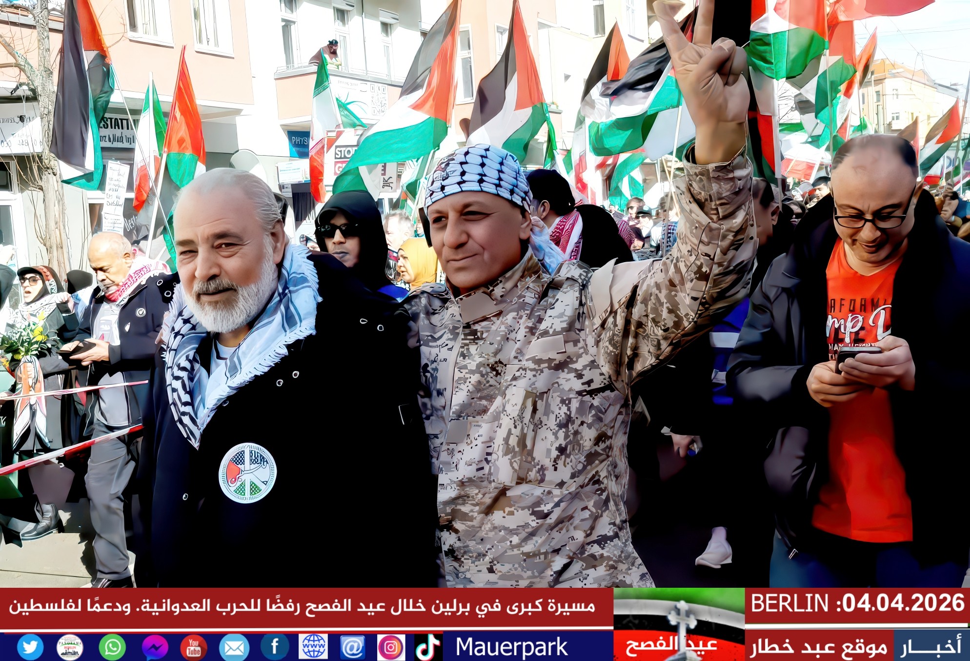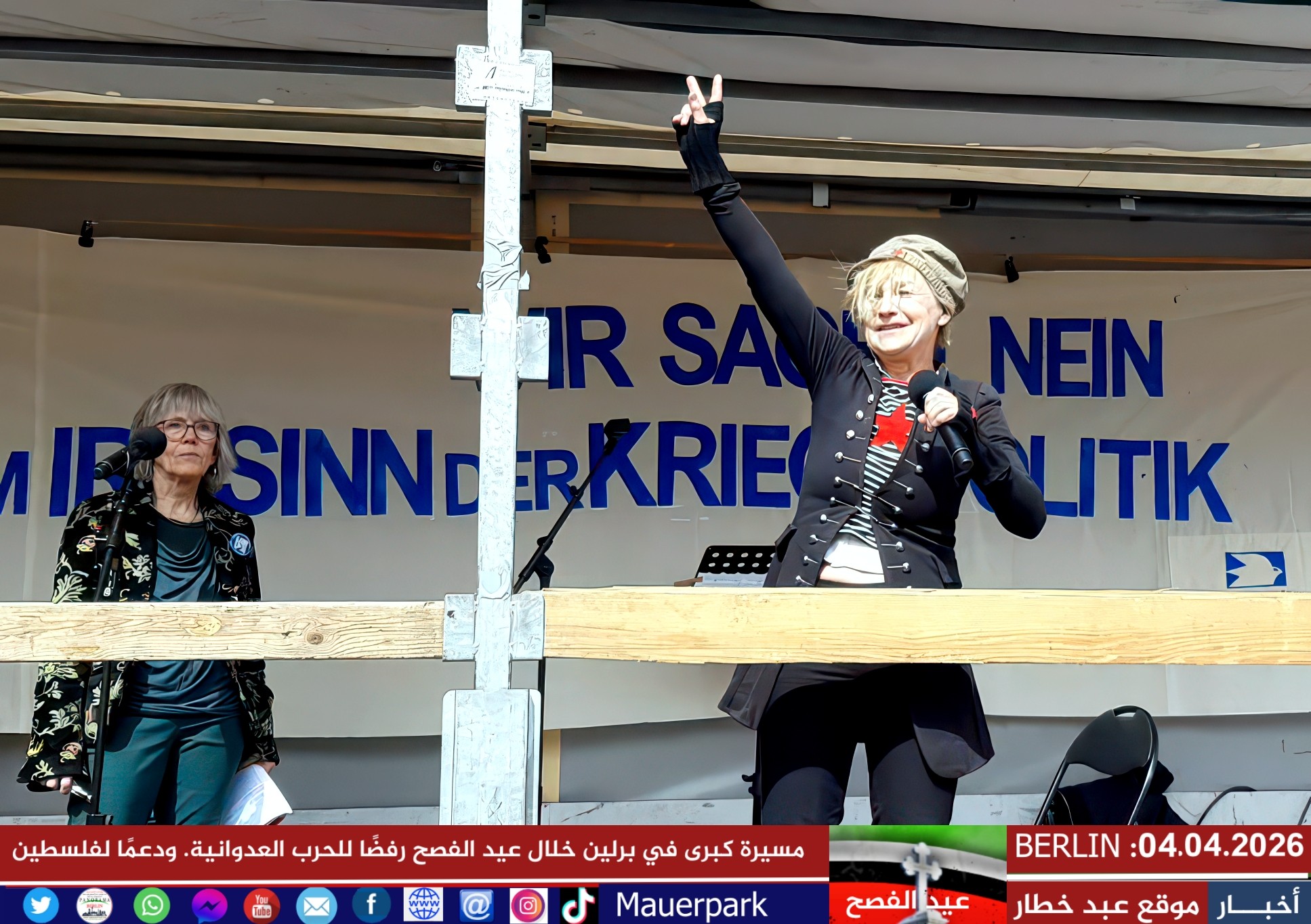 شهدت العاصمة الألمانية برلين اليوم السبت، الموافق 04 أبريل 2026، واحدة من أكبر المسيرات السياسية التي تشهدها المدينة خلال عطلة عيد الفصح، حيث احتشد آلاف المتظاهرين في شوارع وسط المدينة استجابة لدعوات أطلقتها عدة قوى سياسية واجتماعية ألمانية ودولية، من بينها حركة السلام الألمانية، ومجموعات يسارية وتقدمية مثل KDP، إضافة إلى اللجنة الوطنية الفلسطينية الموحّدة في برلين، والتحالف الأممي المناهض للإمبريالية والصهيونية.